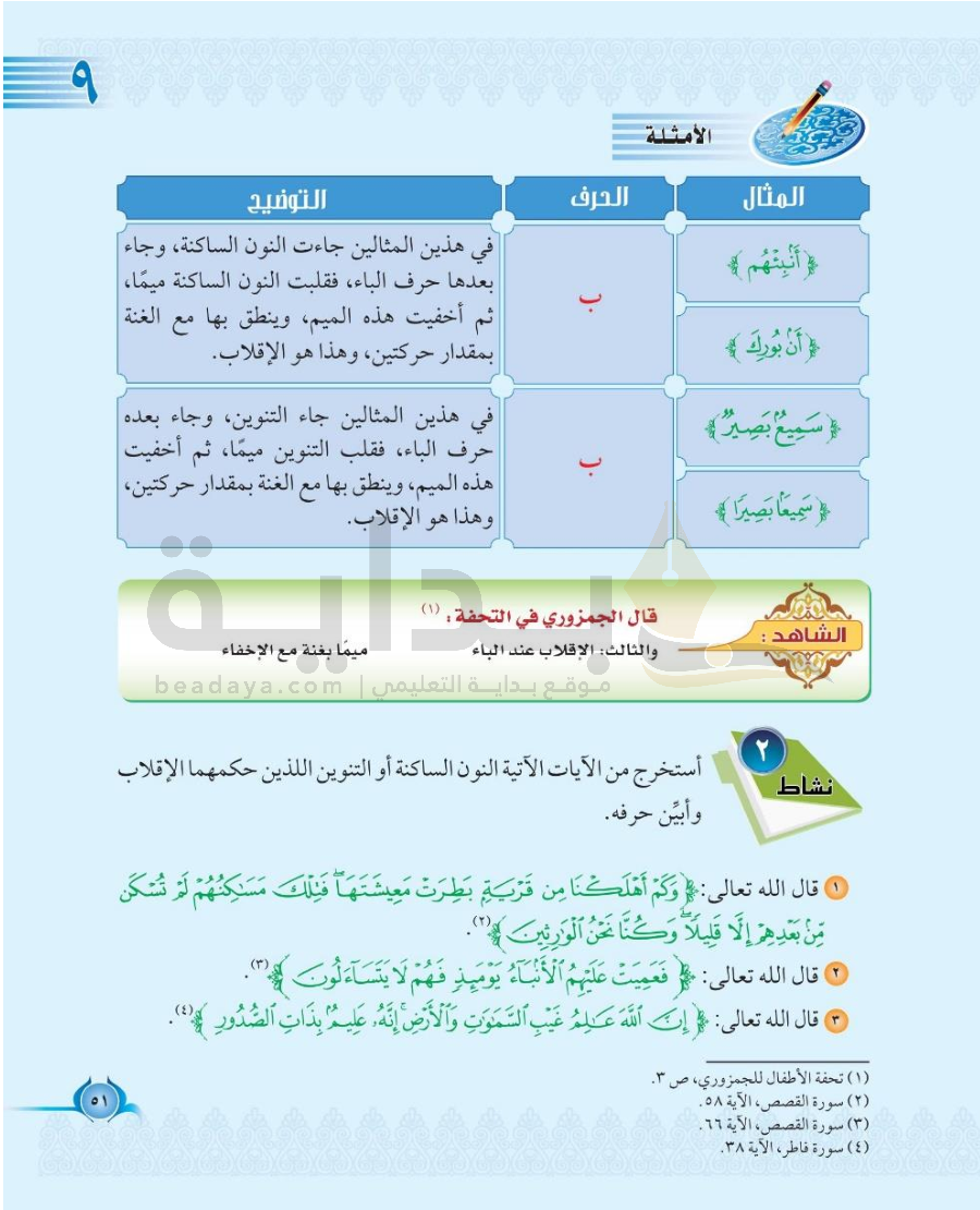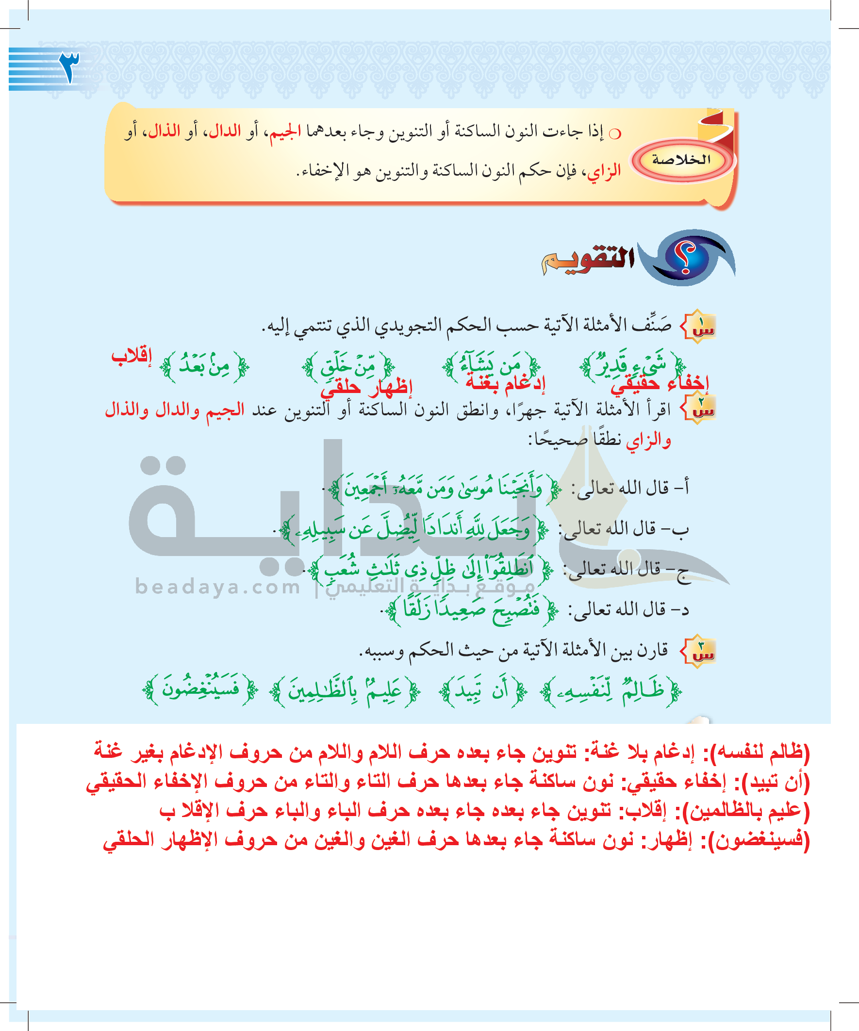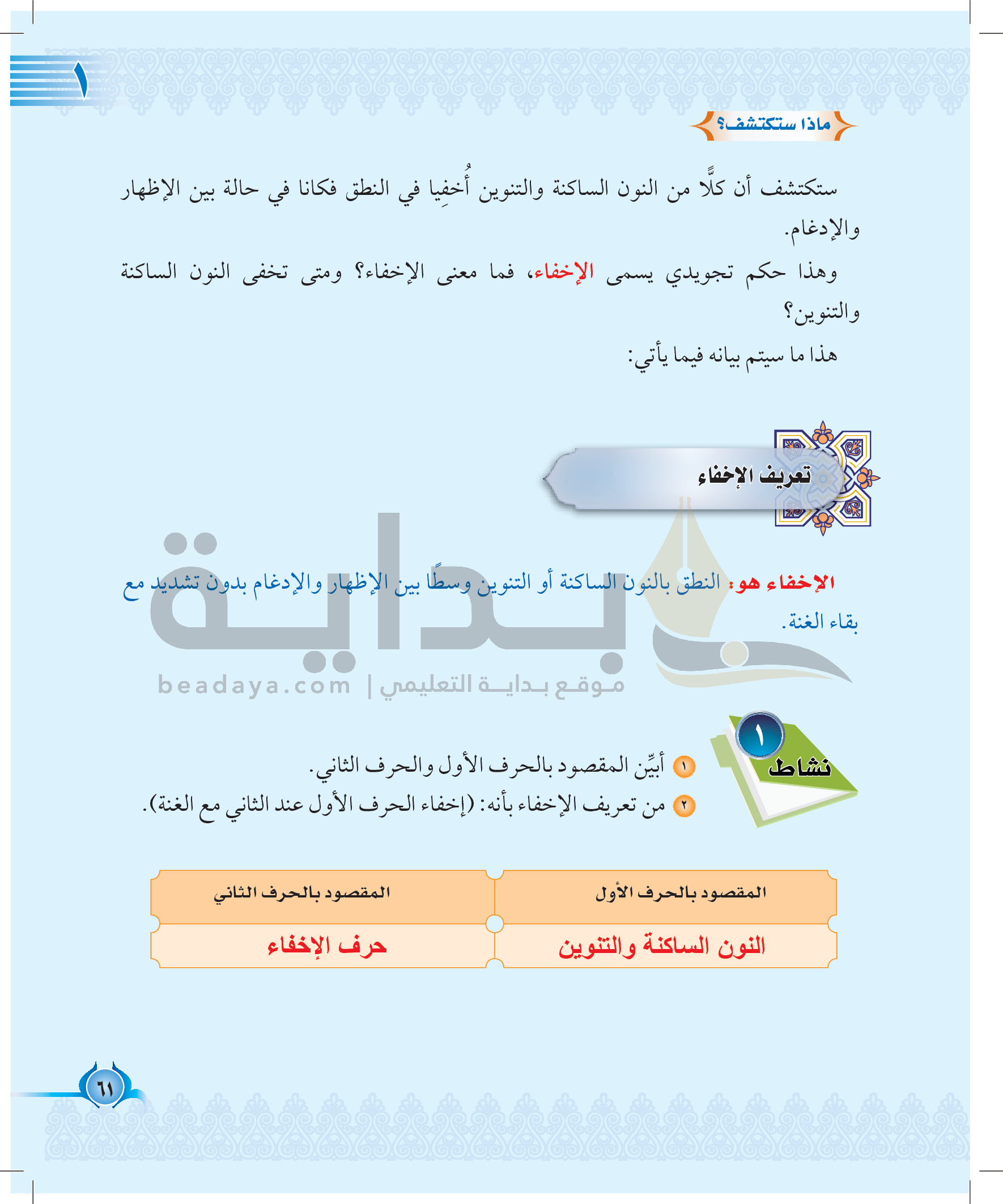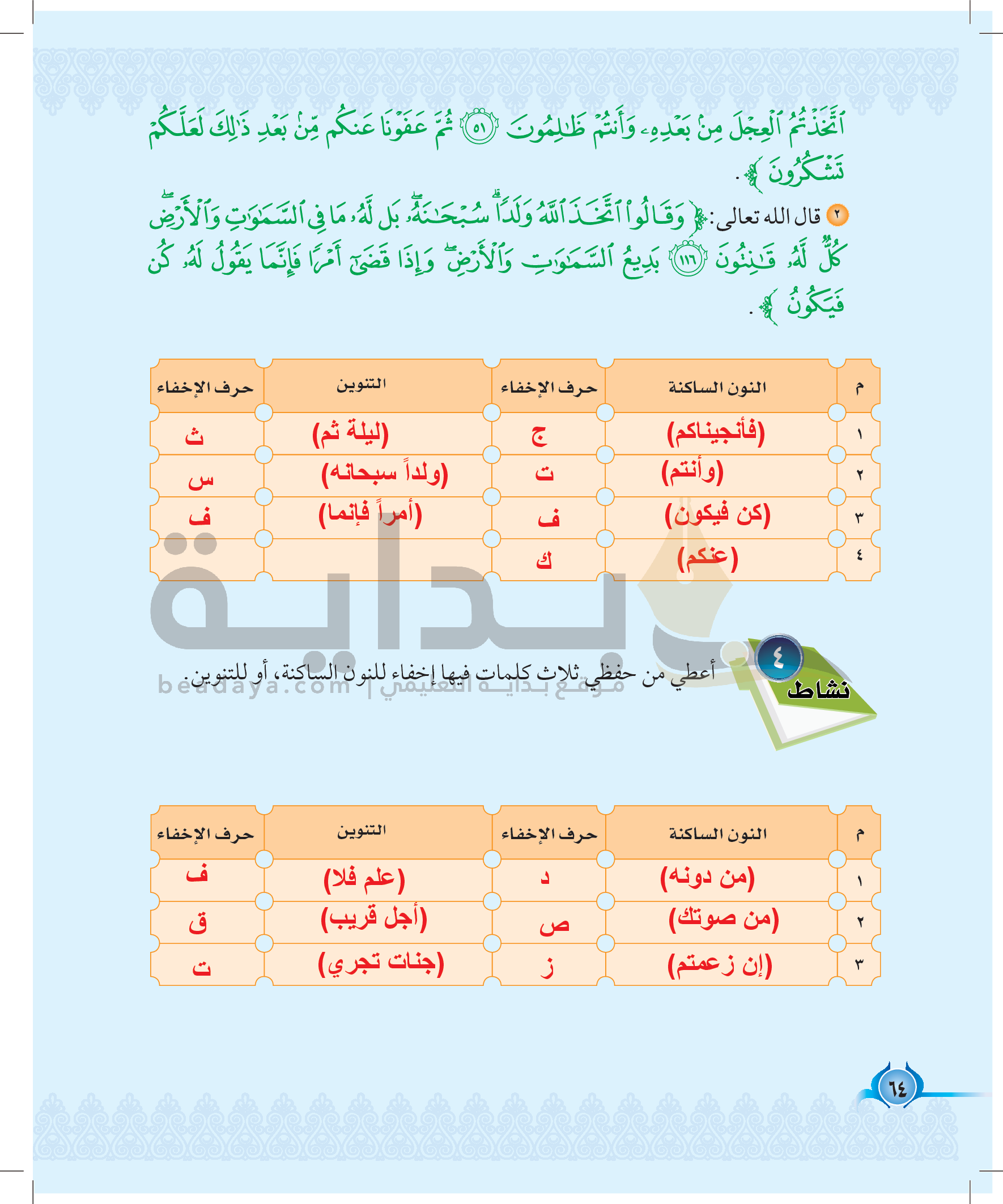 حروف الإخفاء (ت - ث - ف - ق - ك)
