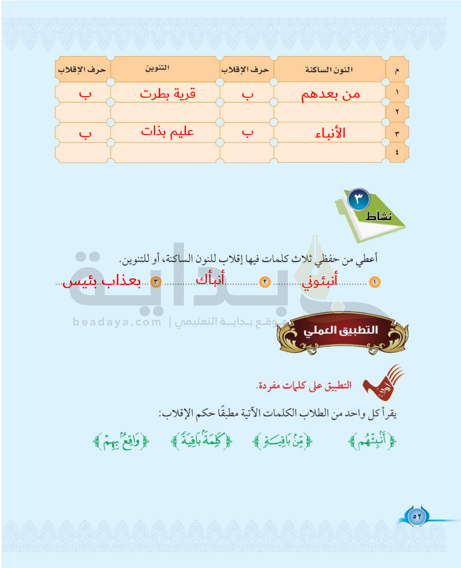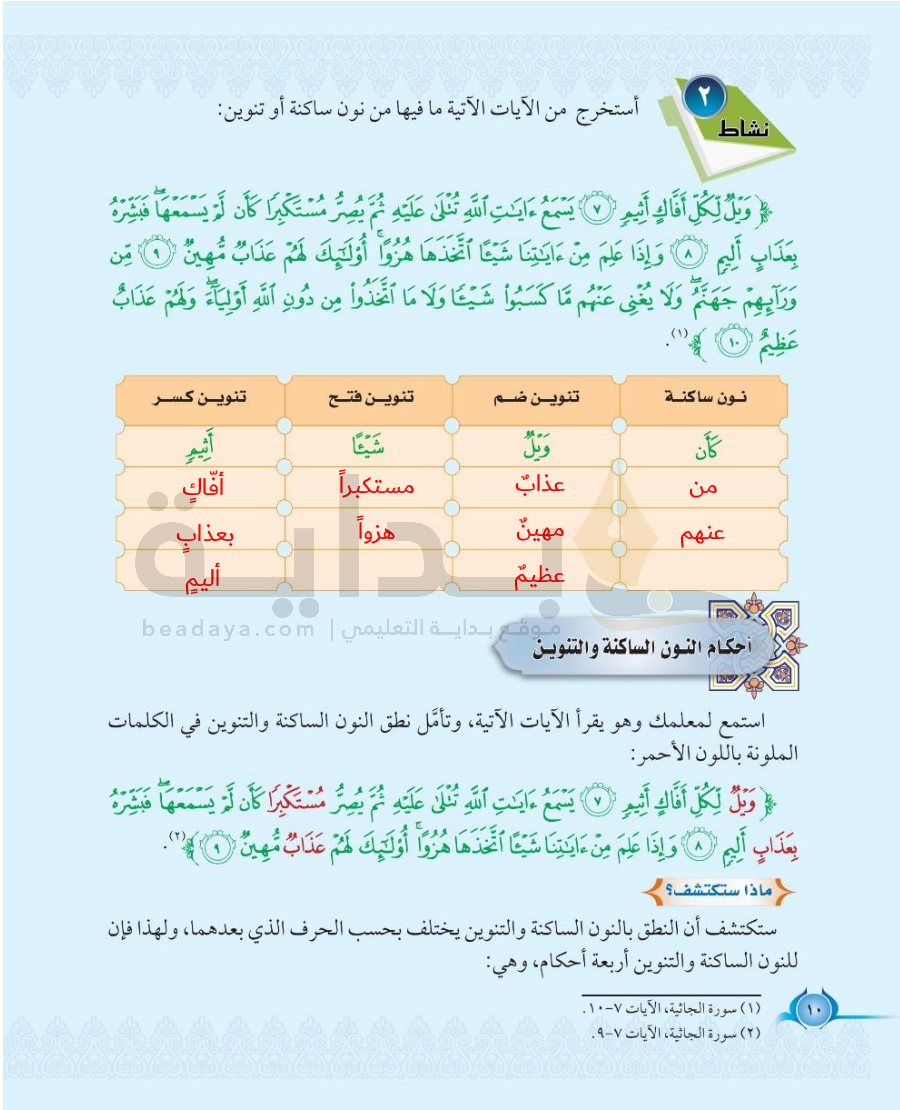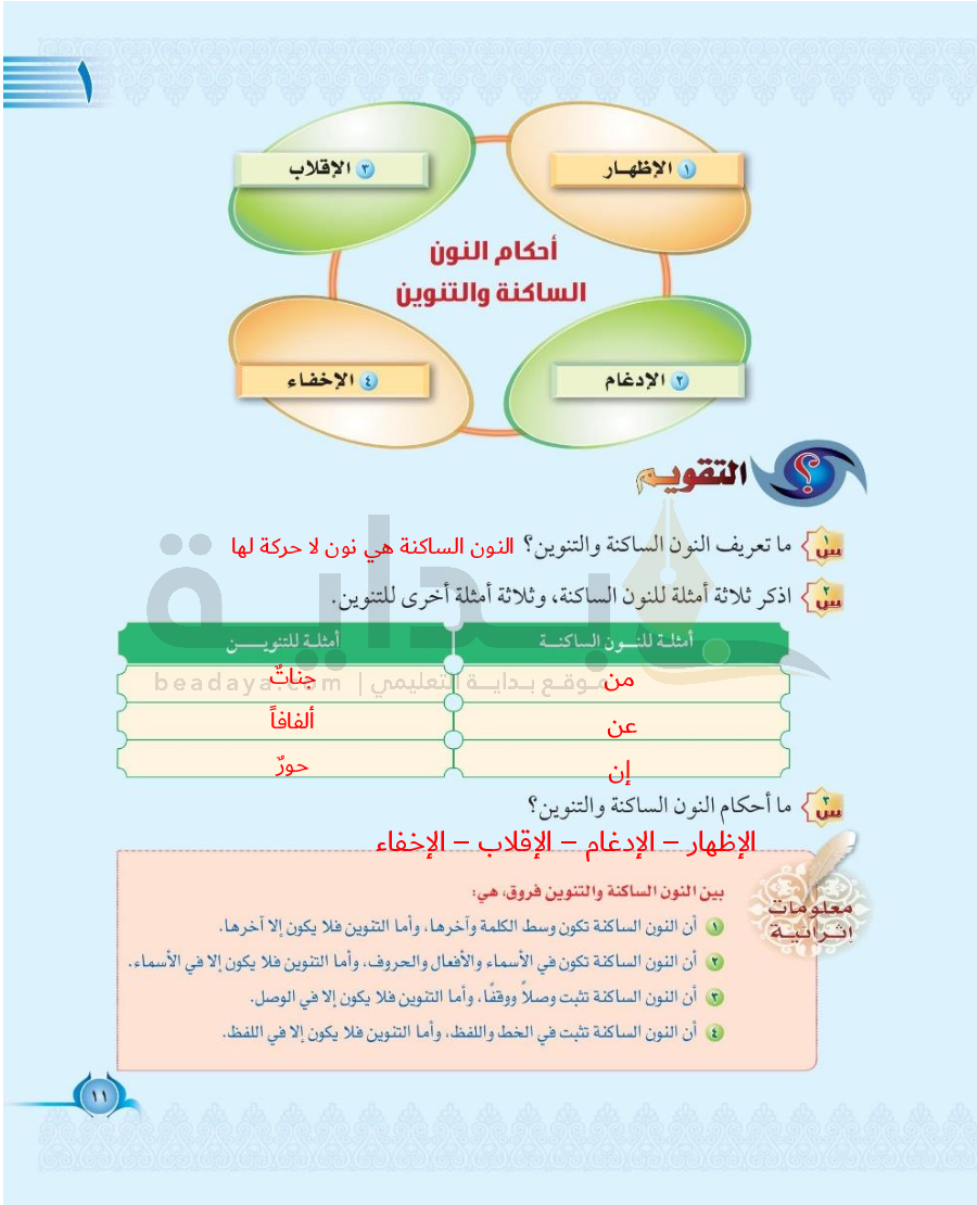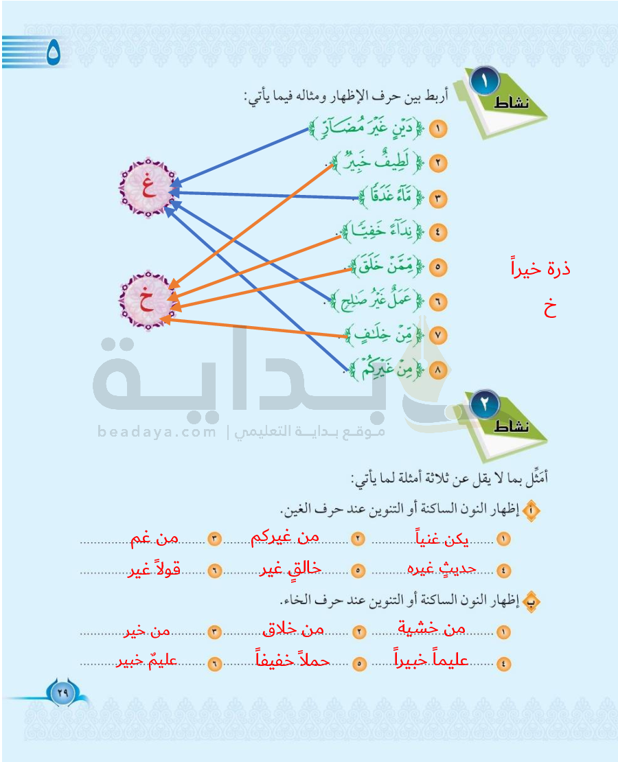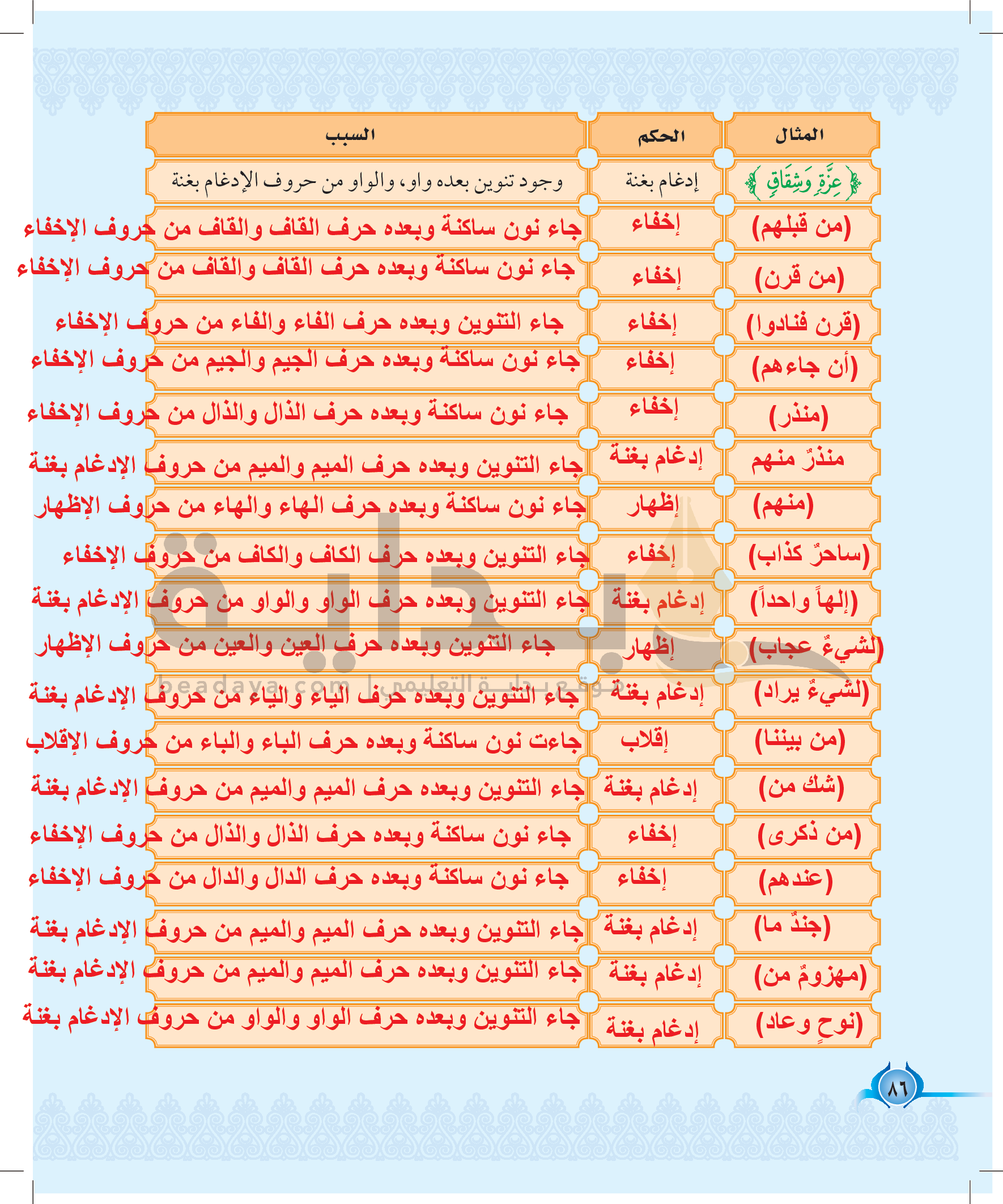 حروف الإخفاء (ت - ث - ف - ق - ك)