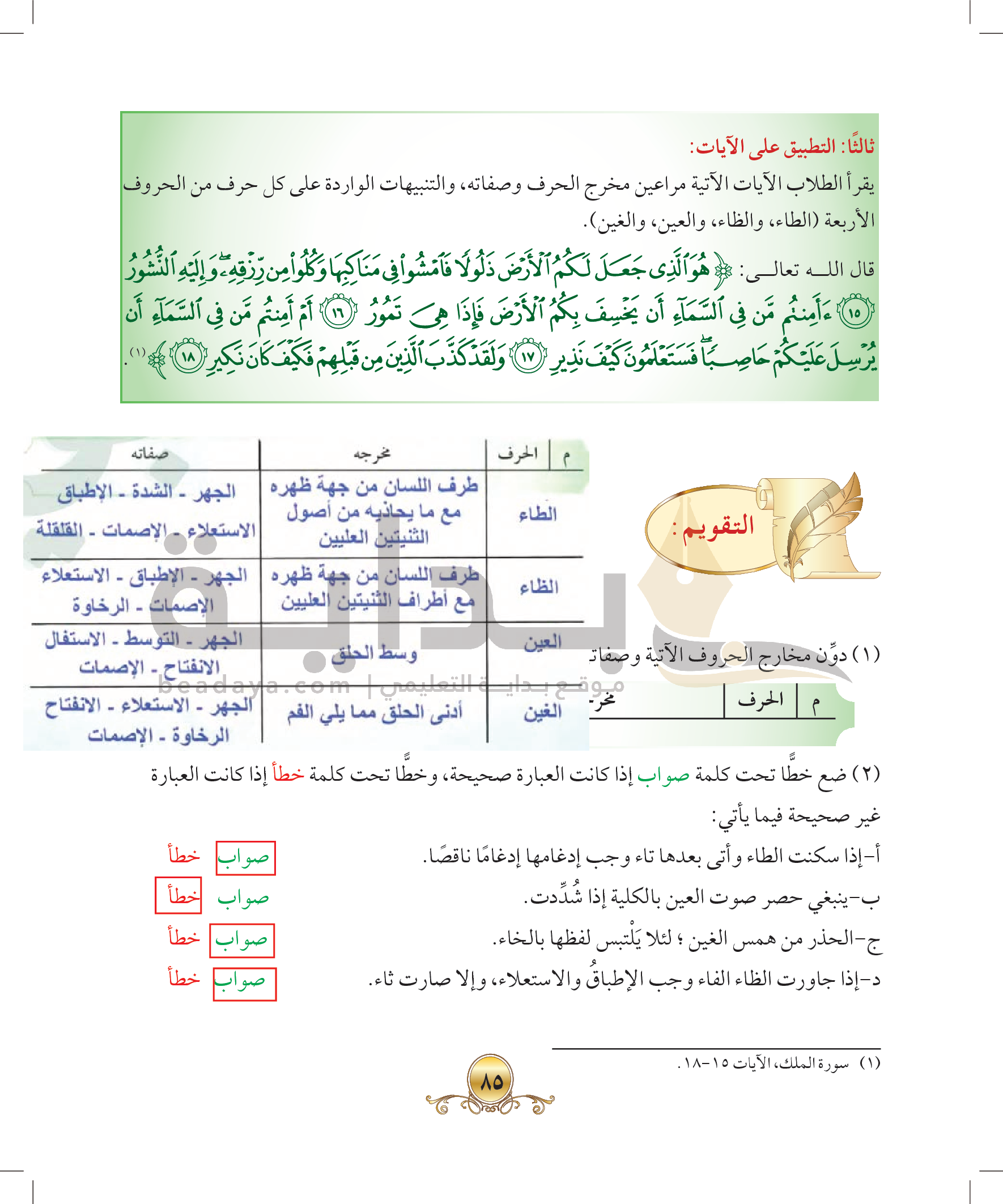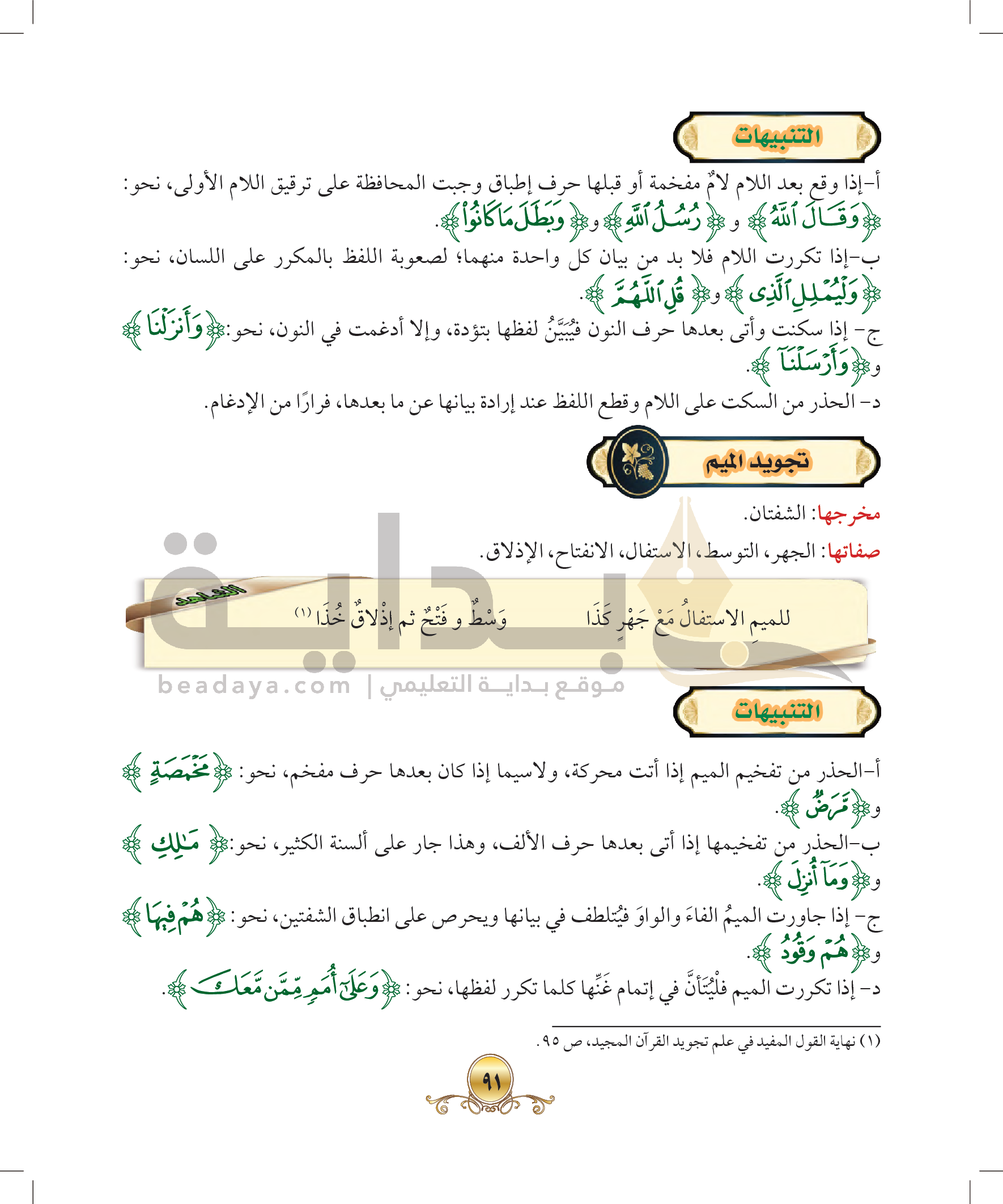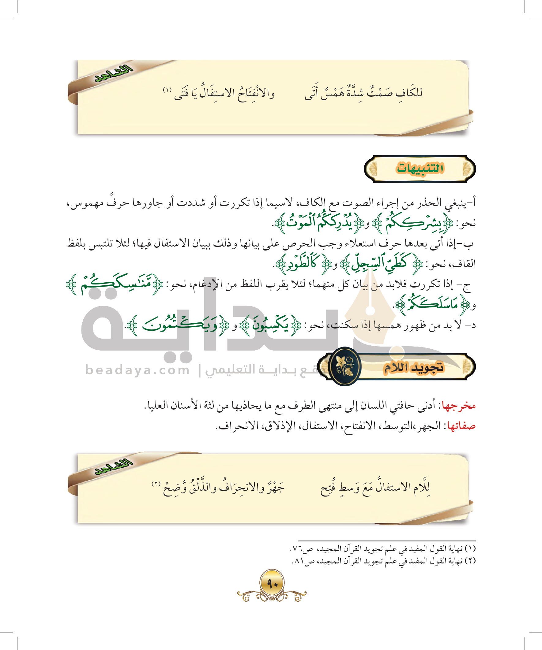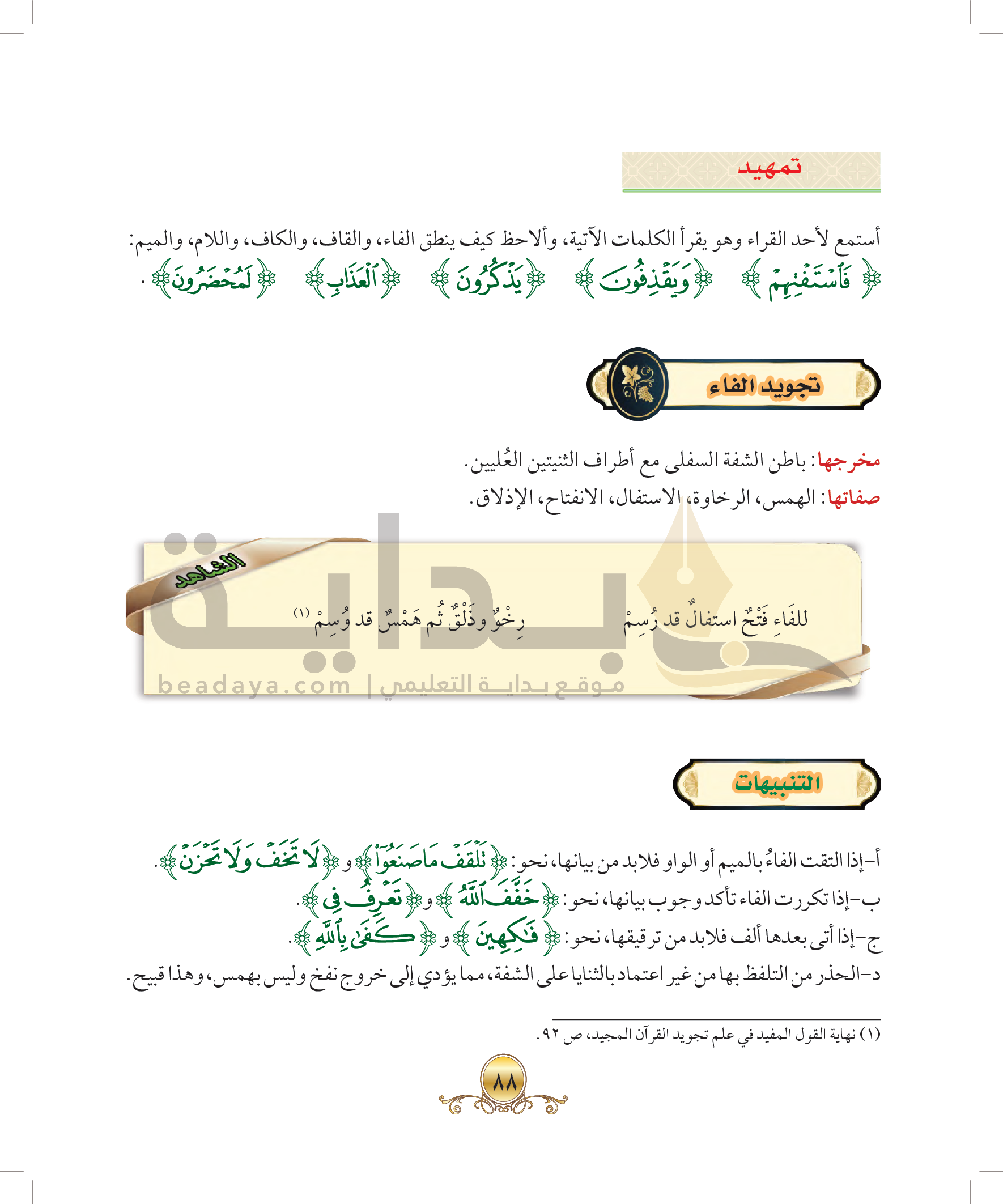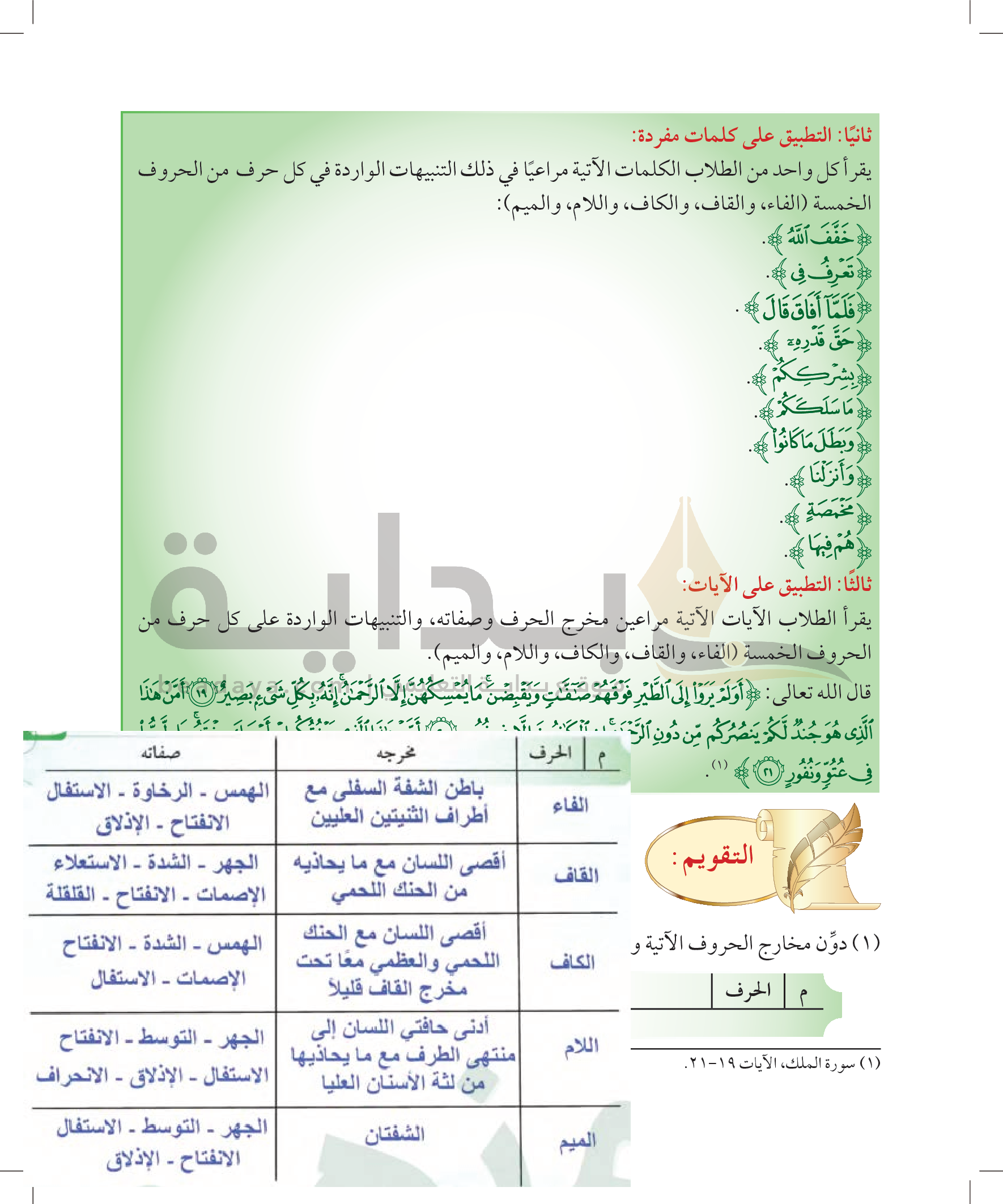 تجويد حروف الفاء والقاف والكاف واللام والميم