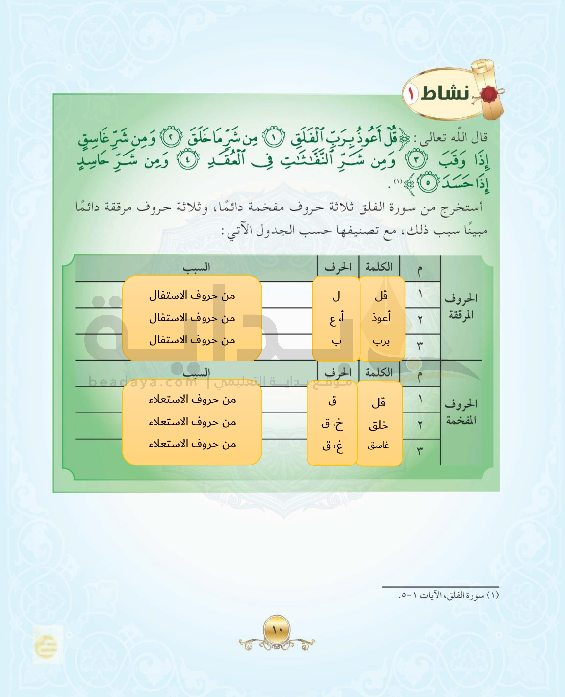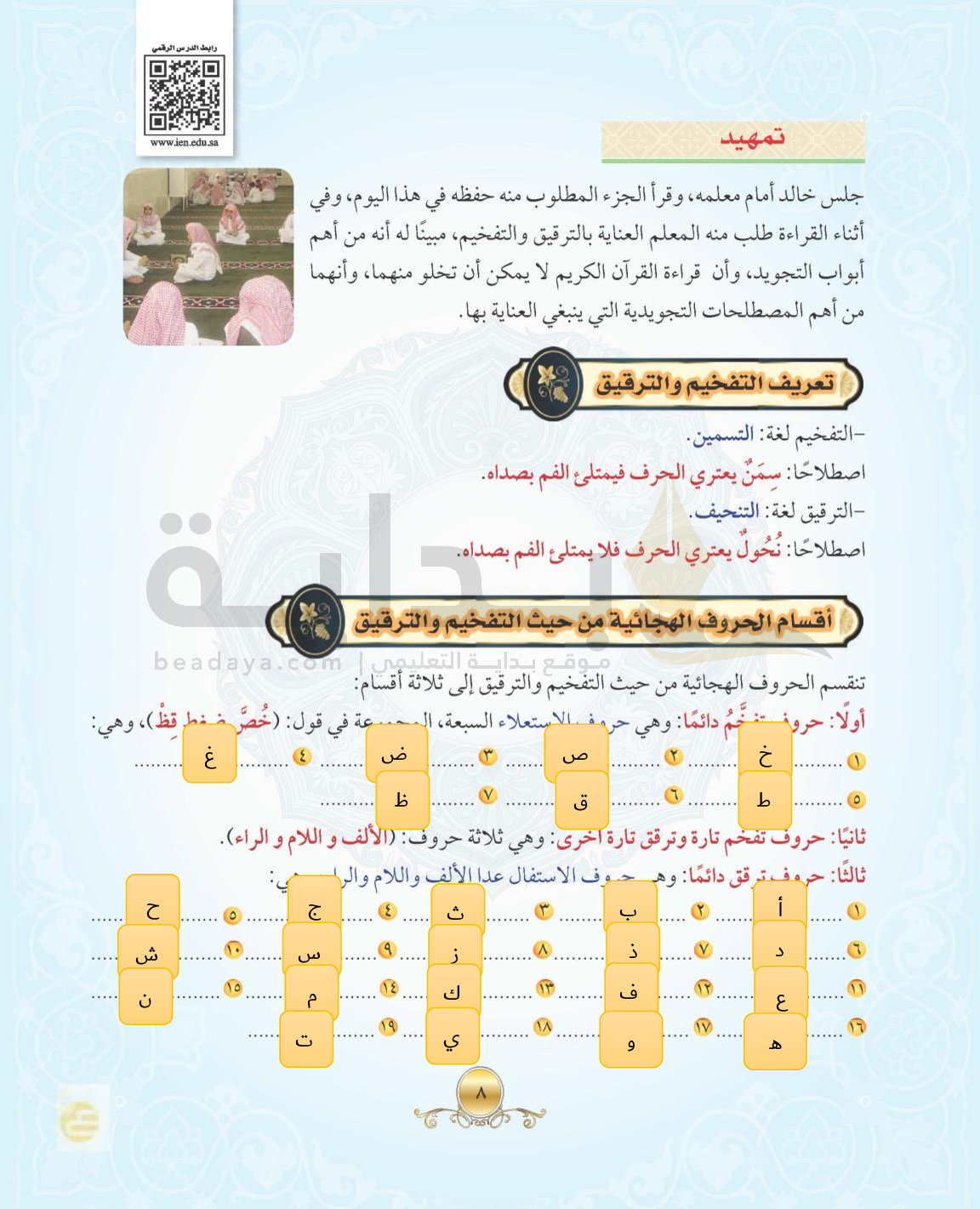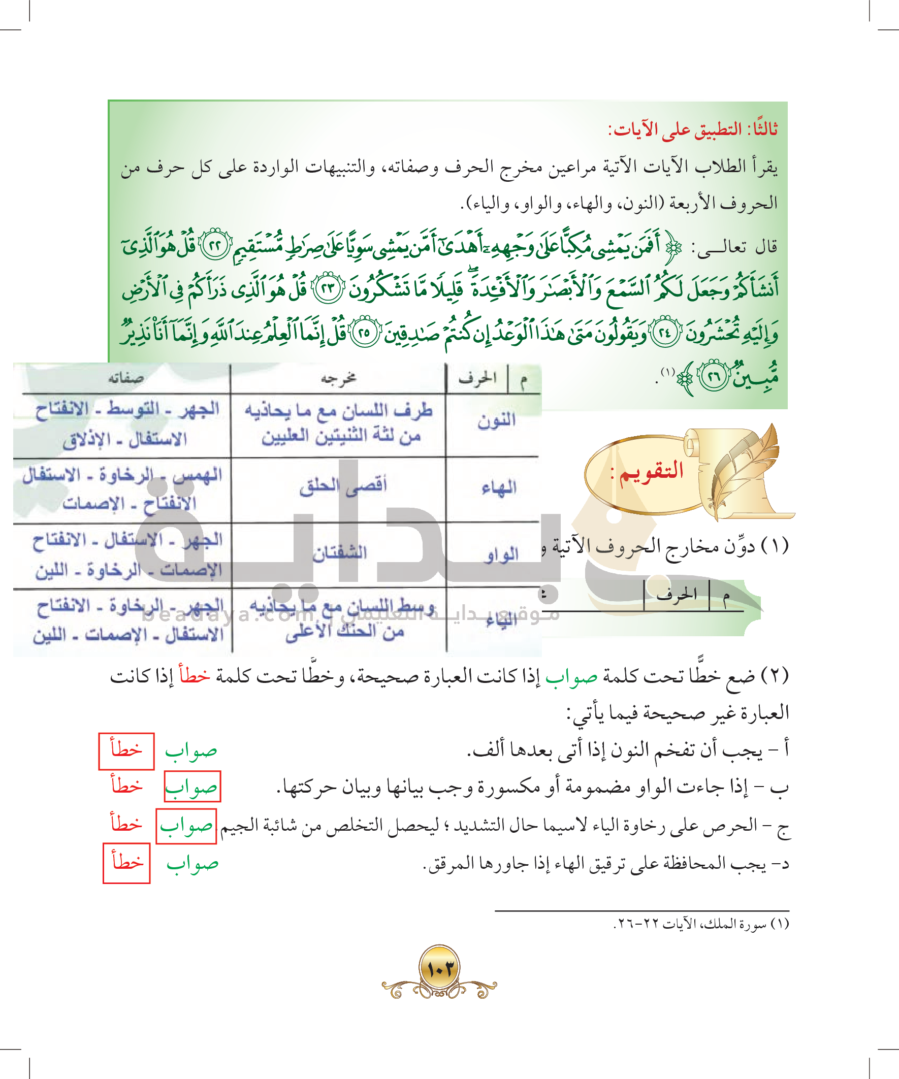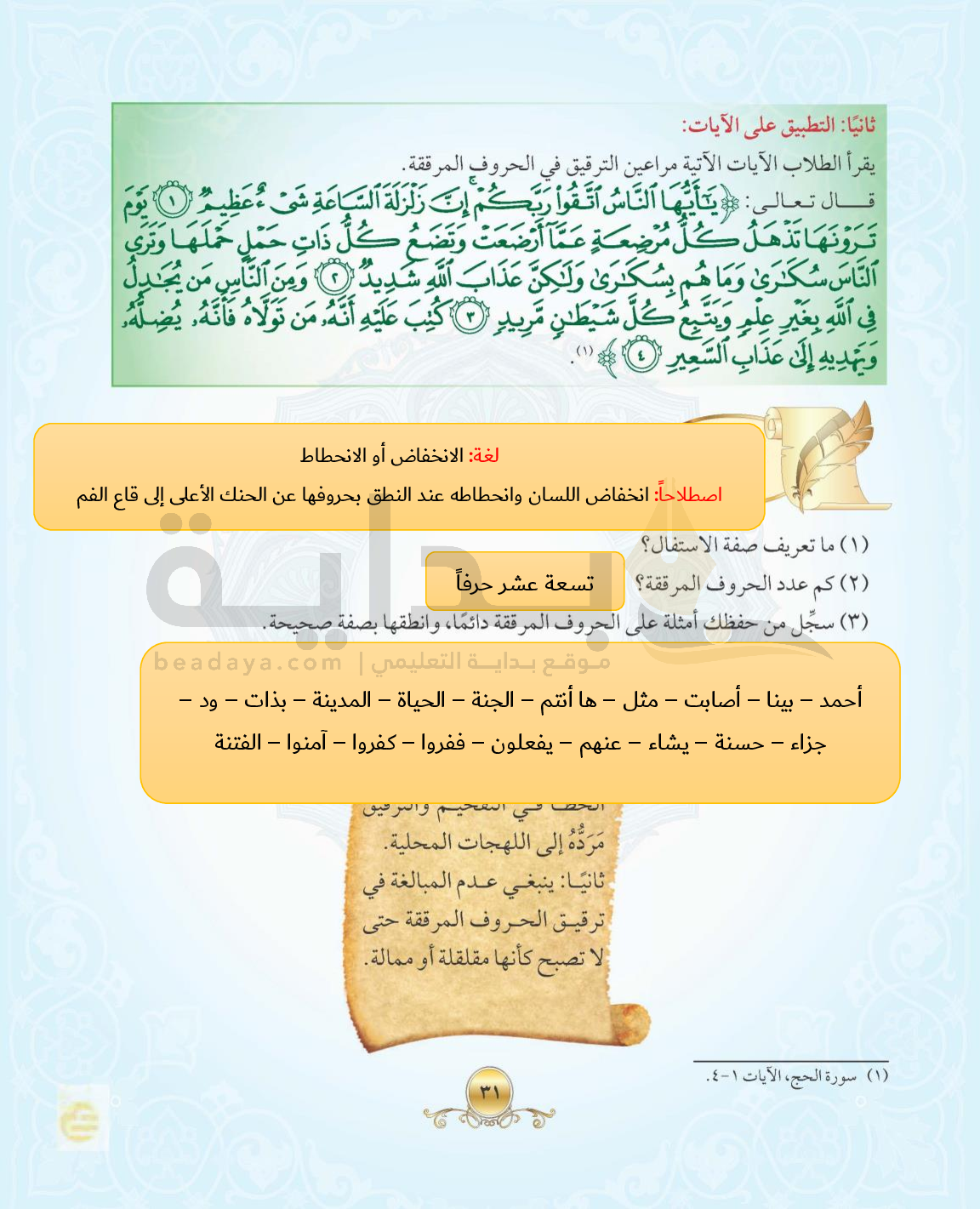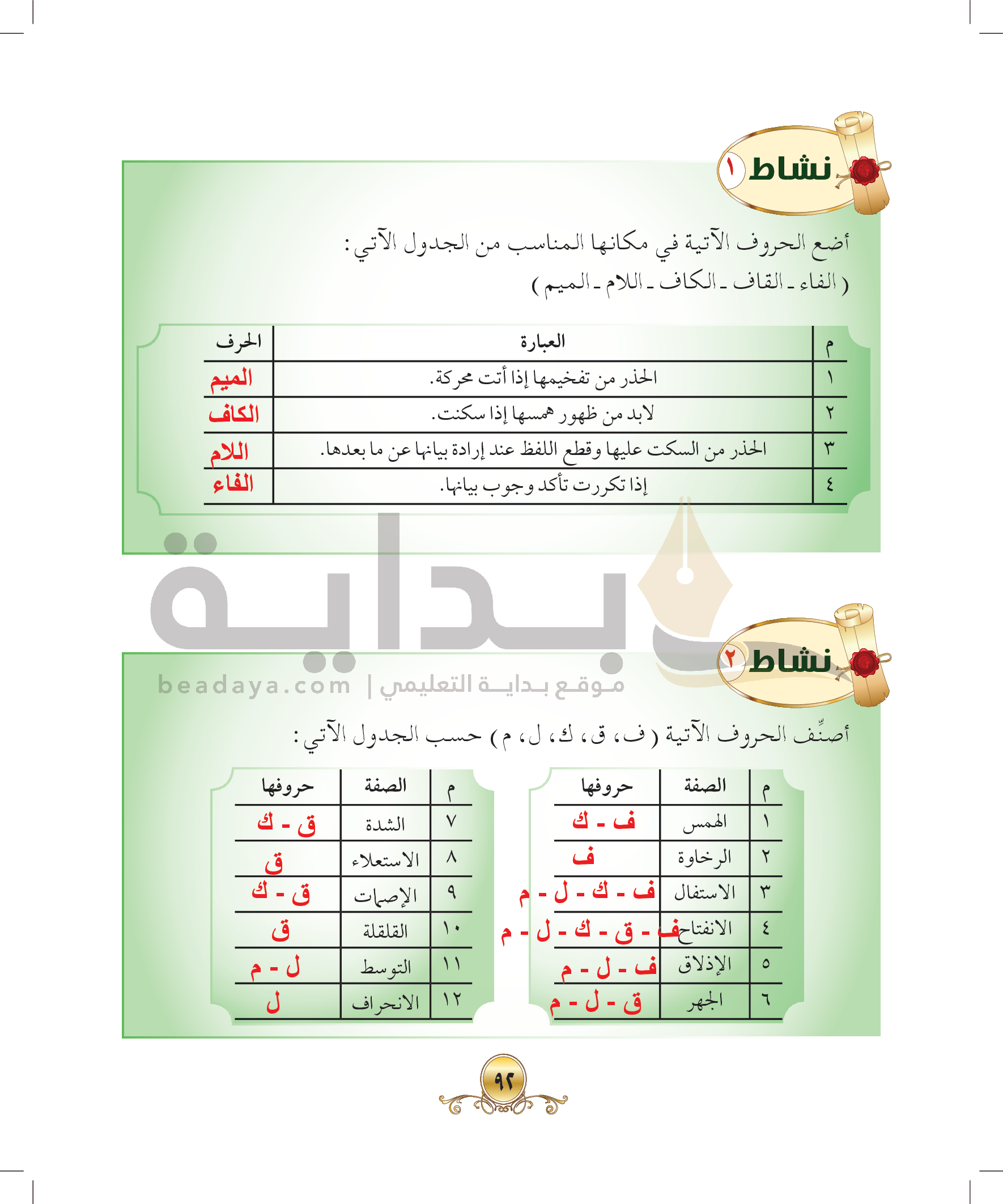 تجويد حروف الفاء والقاف والكاف واللام والميم