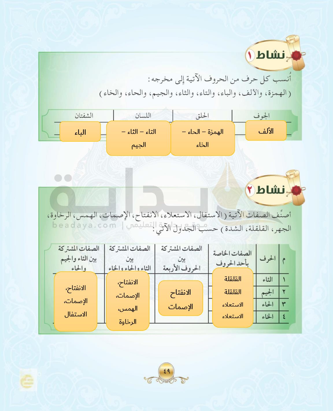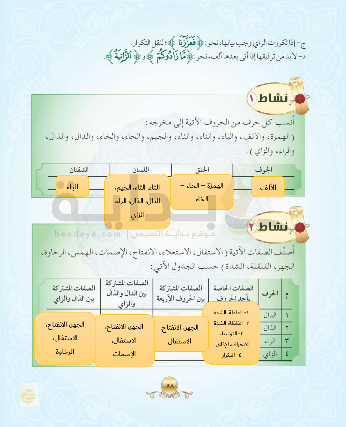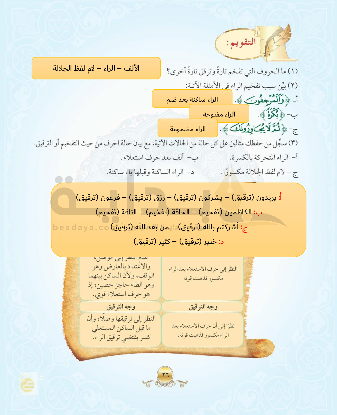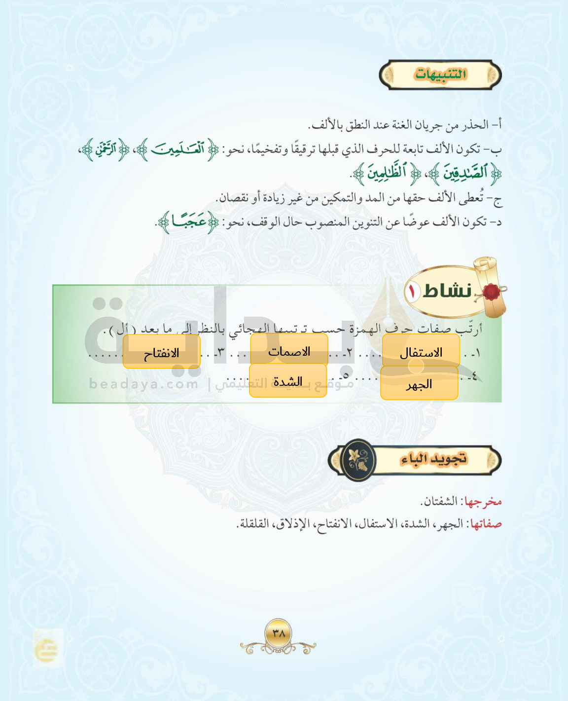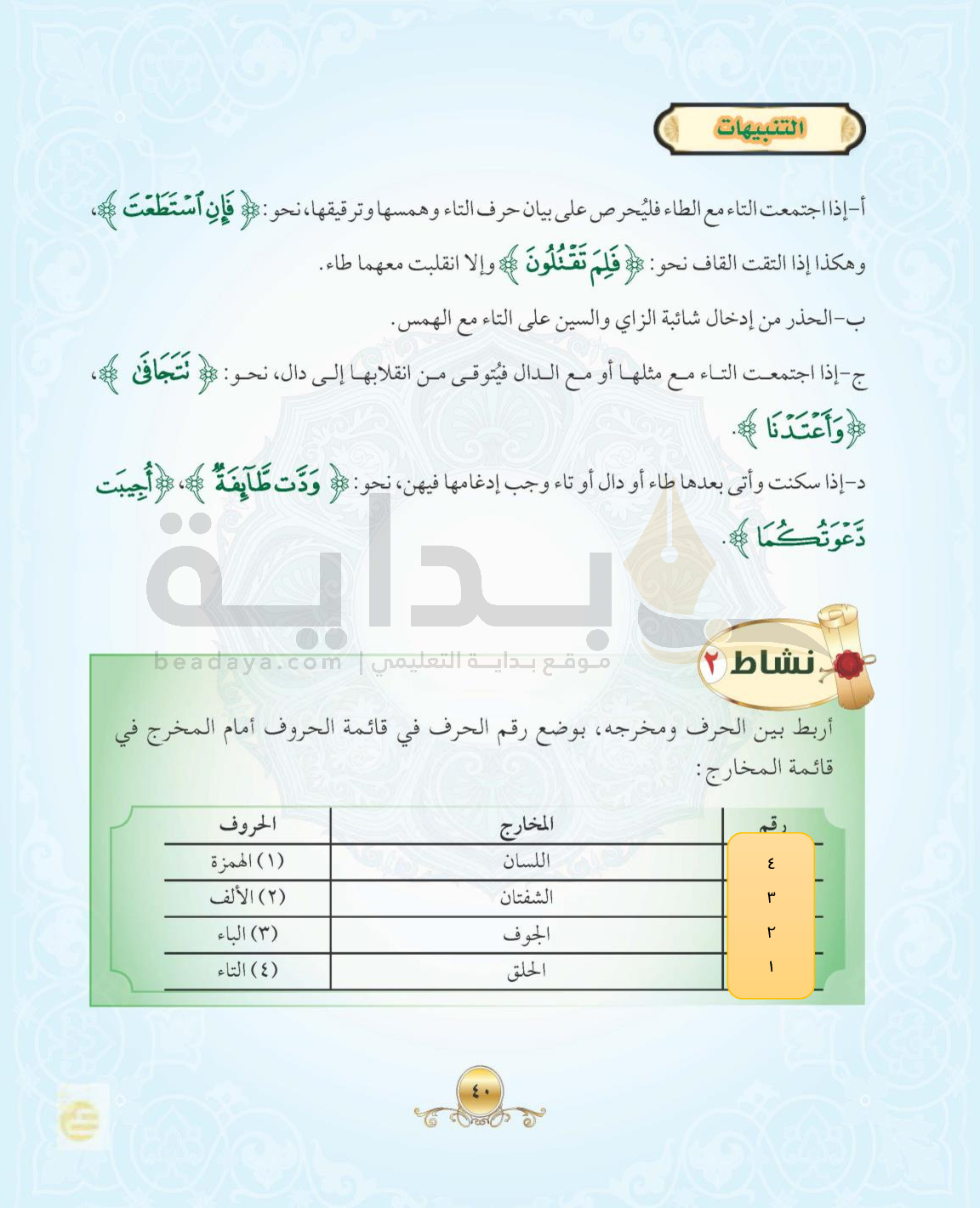 تجويد حروف الفاء والقاف والكاف واللام والميم
