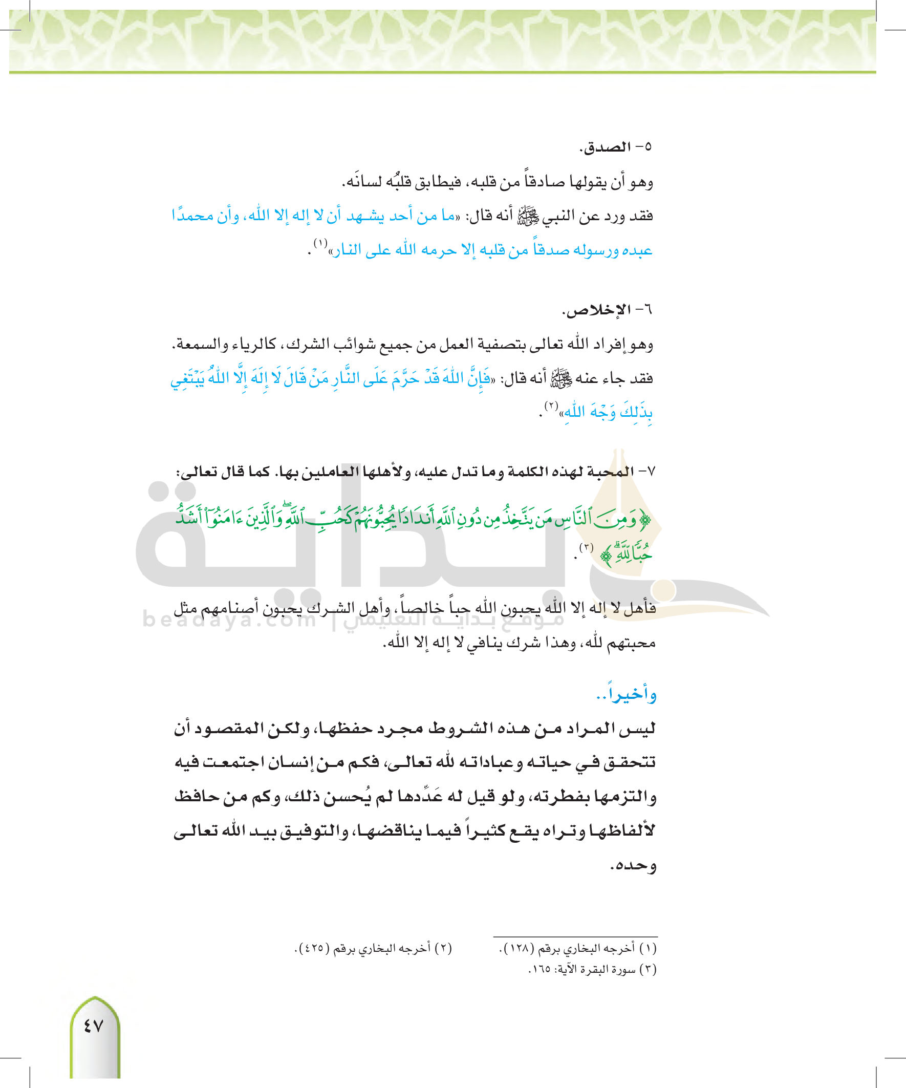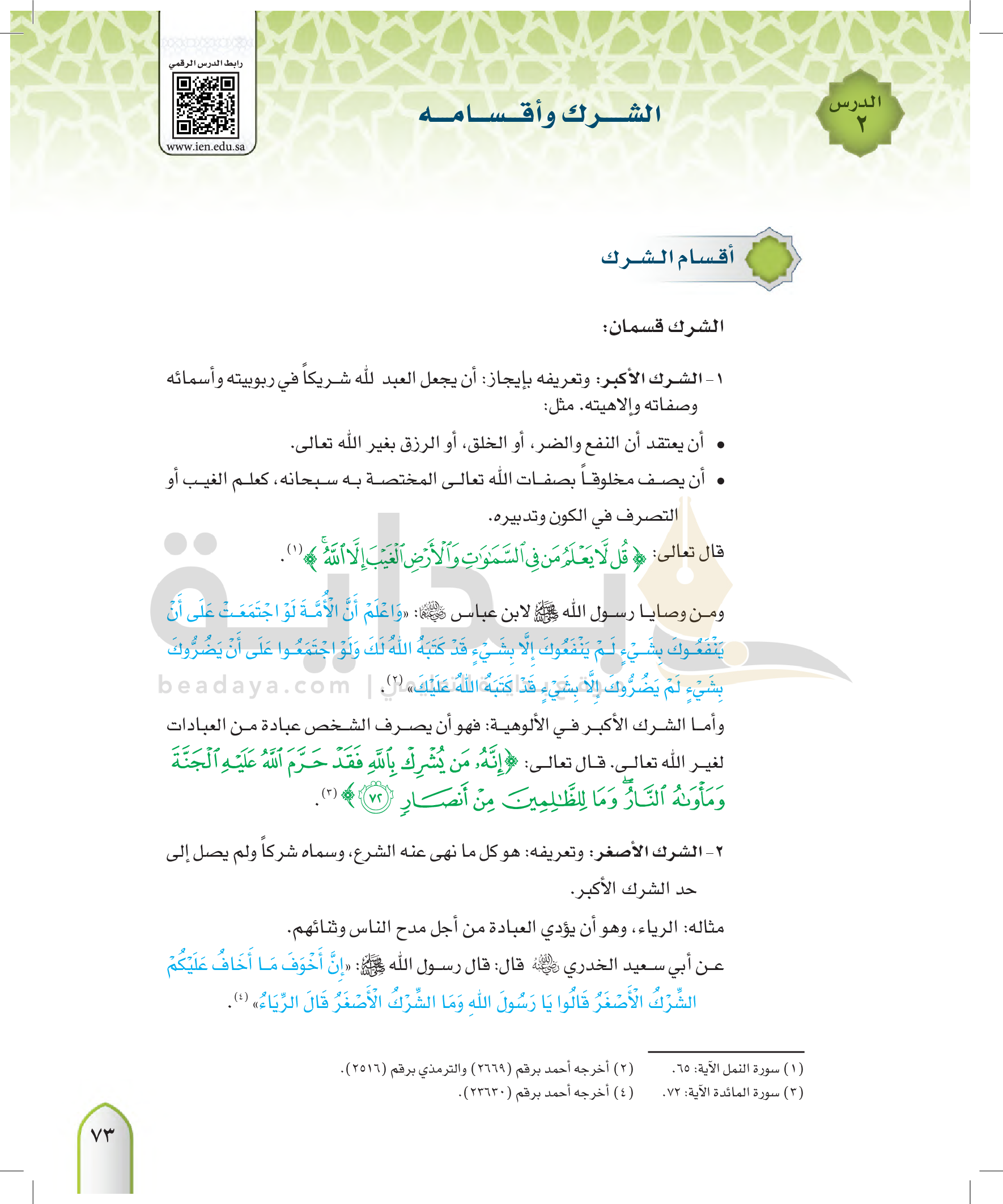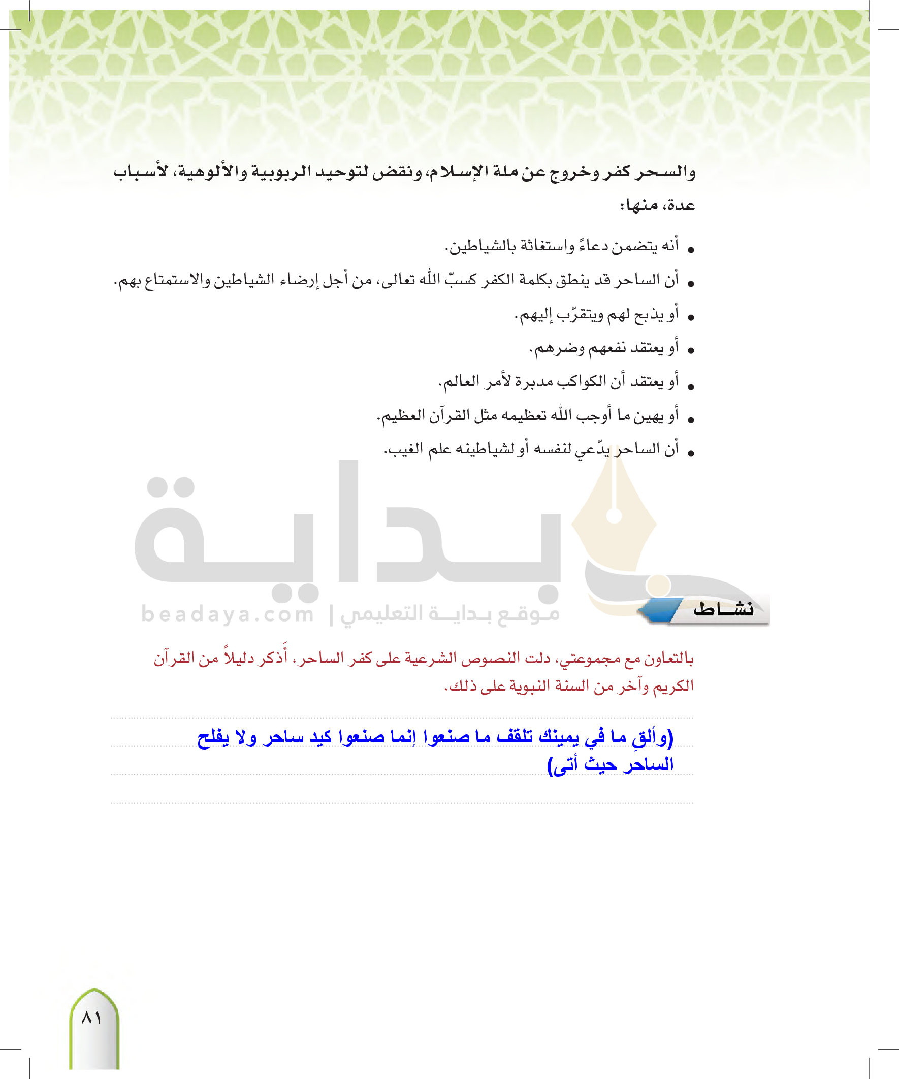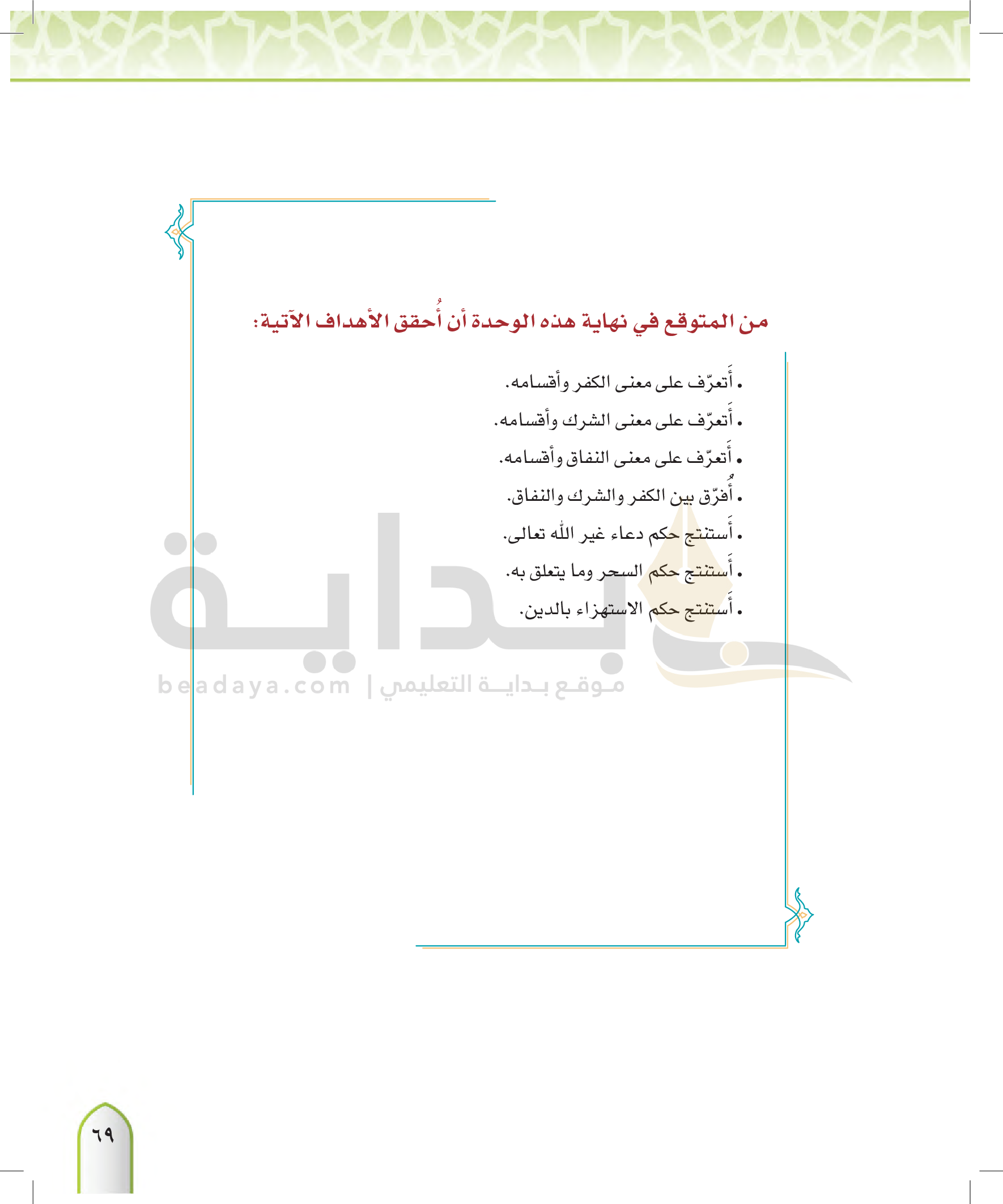 الوحدة 5: عقائد وأقوال وأفعال تنافي التوحيد