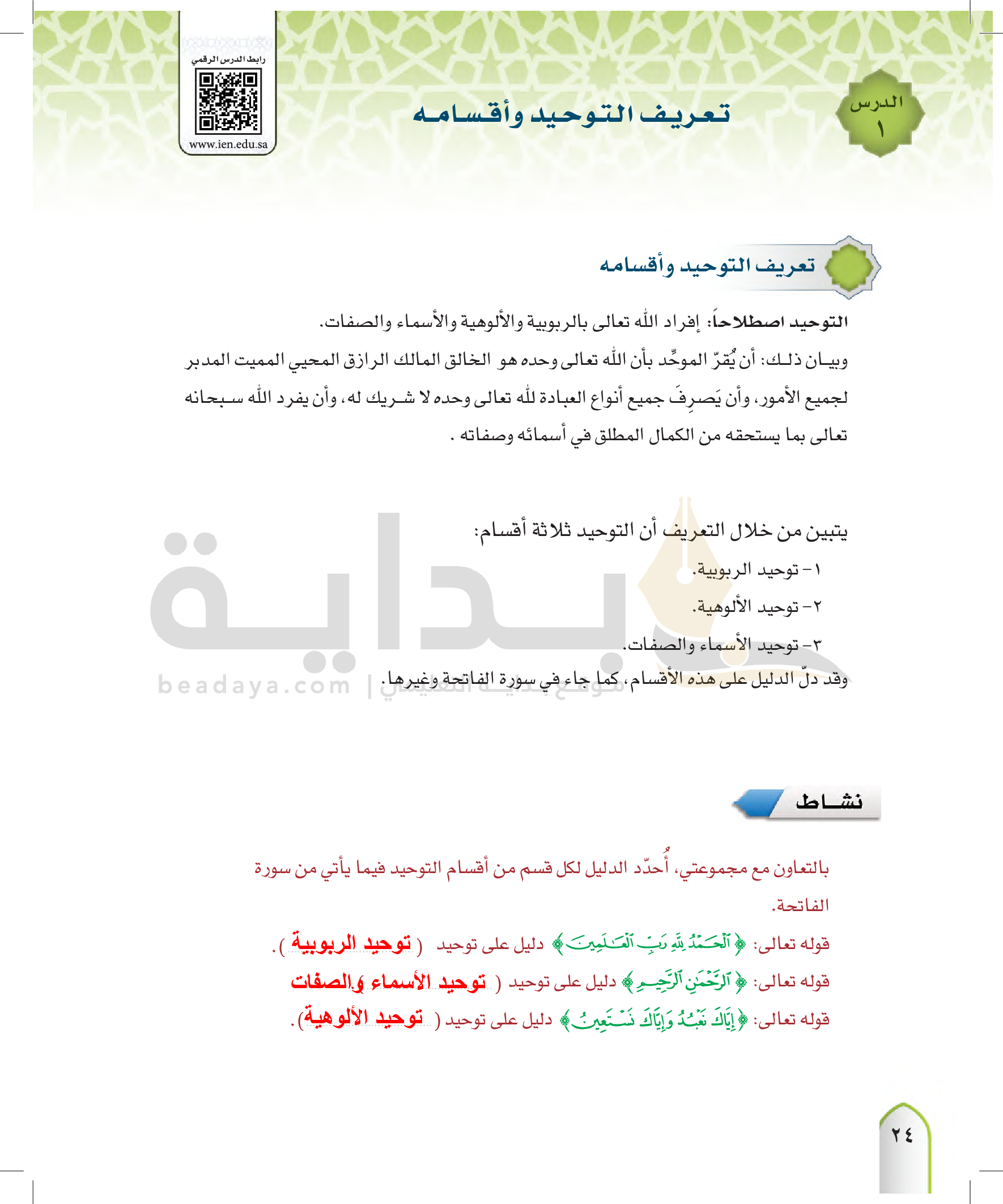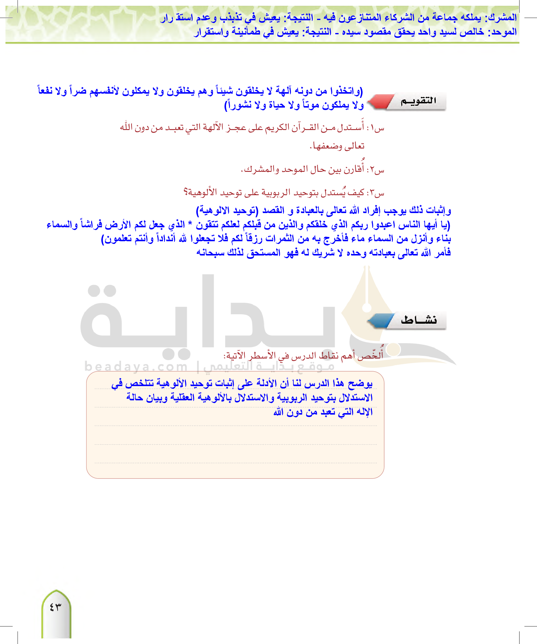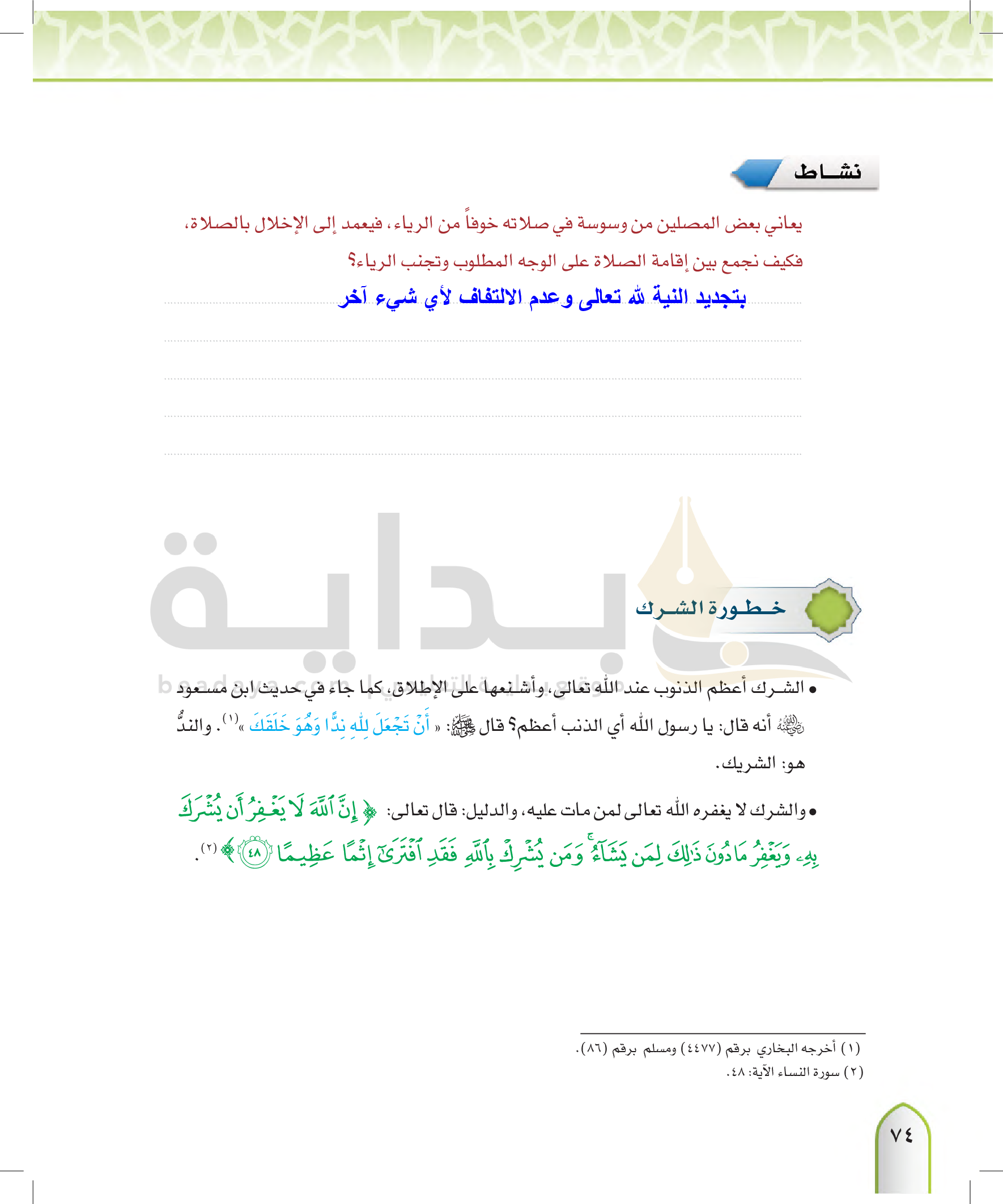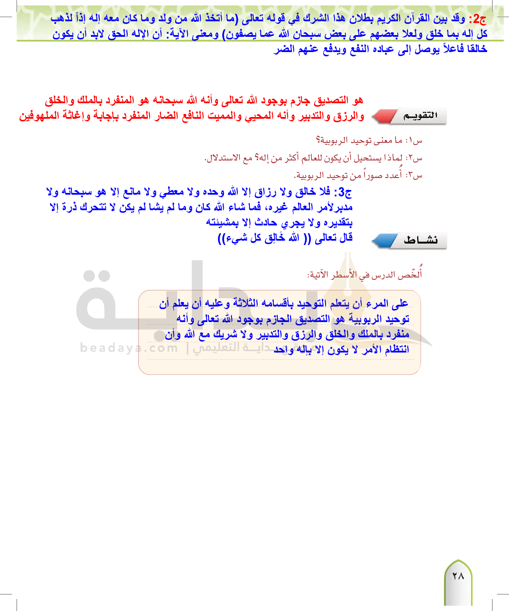 الوحدة 5: عقائد وأقوال وأفعال تنافي التوحيد