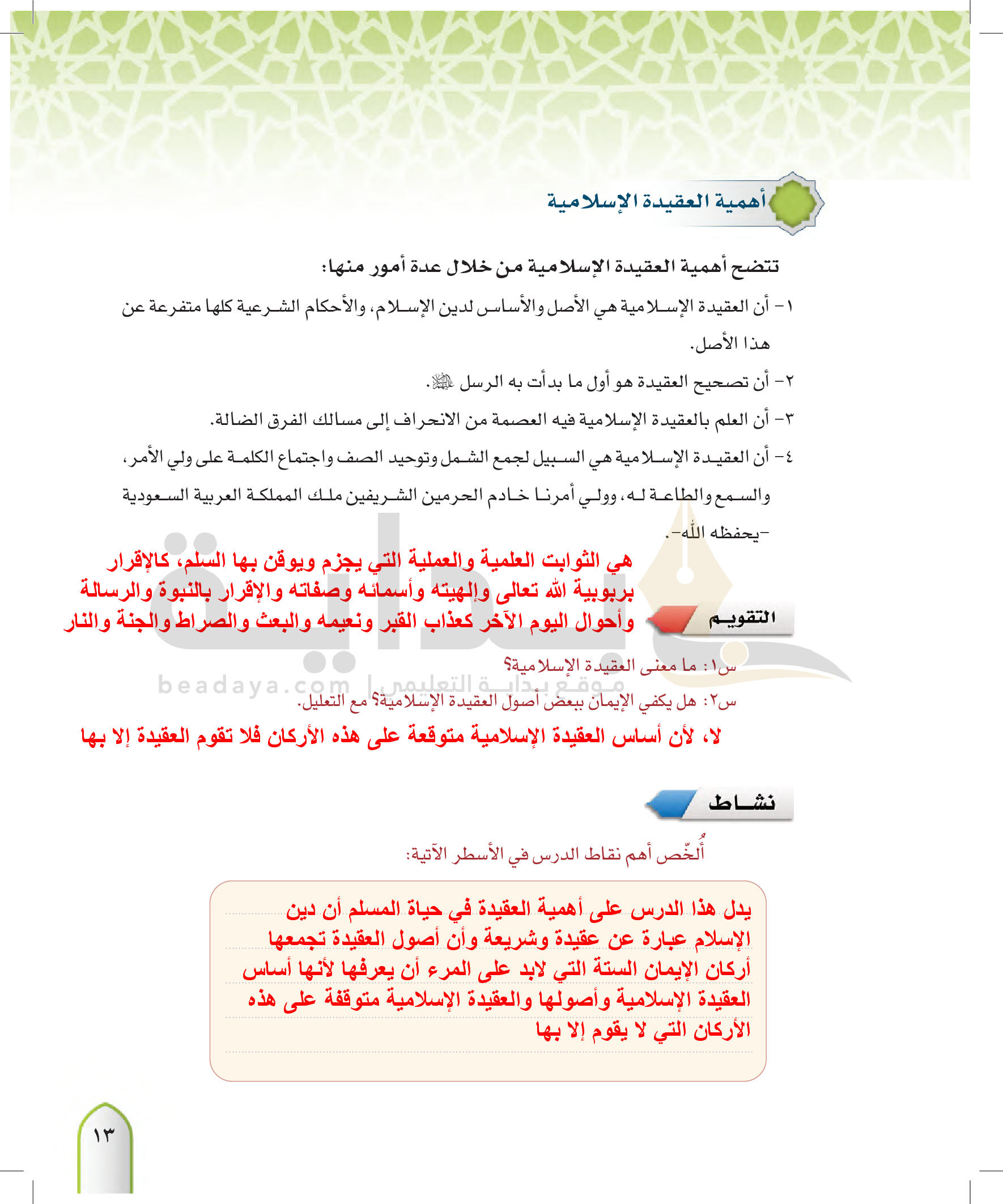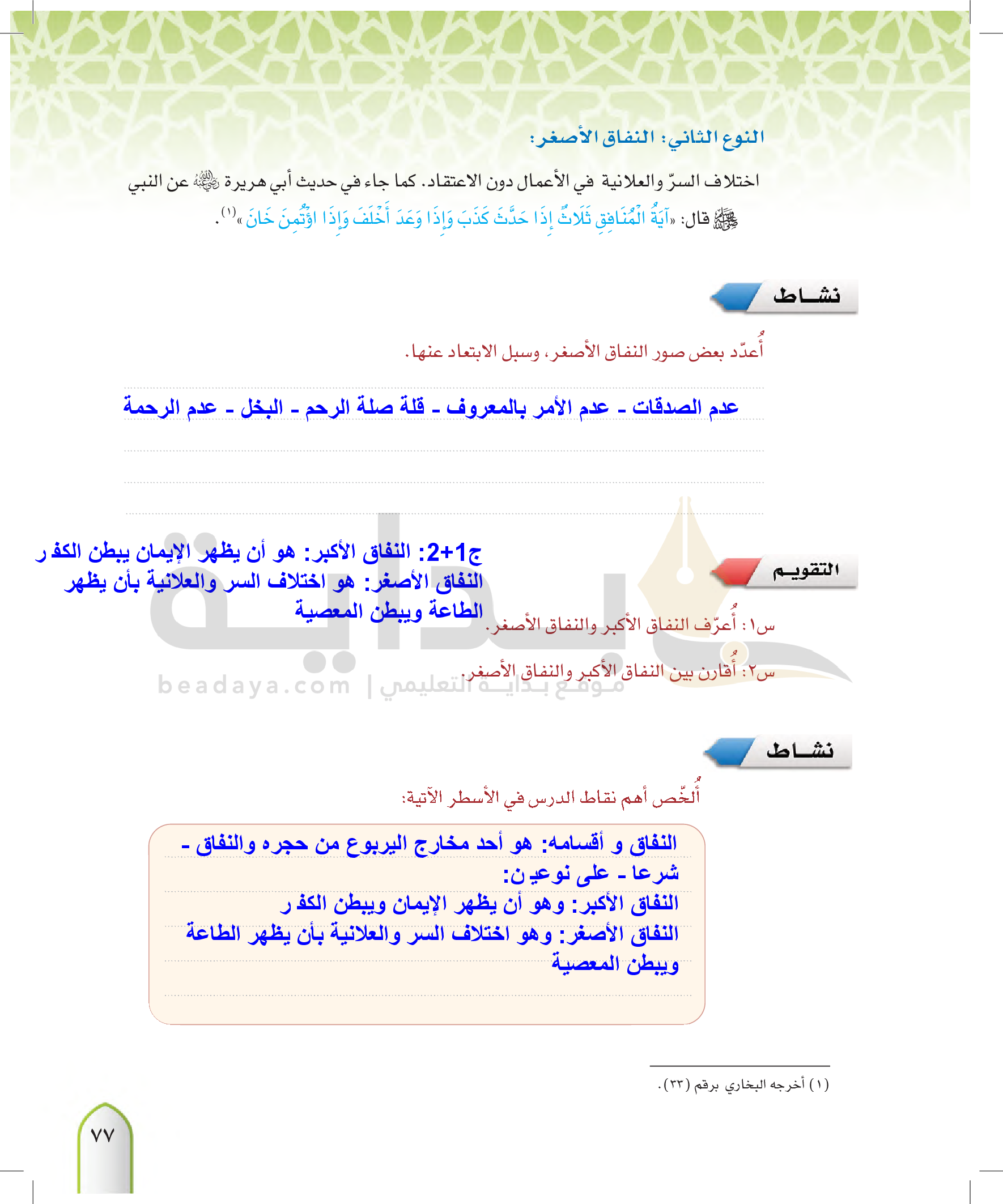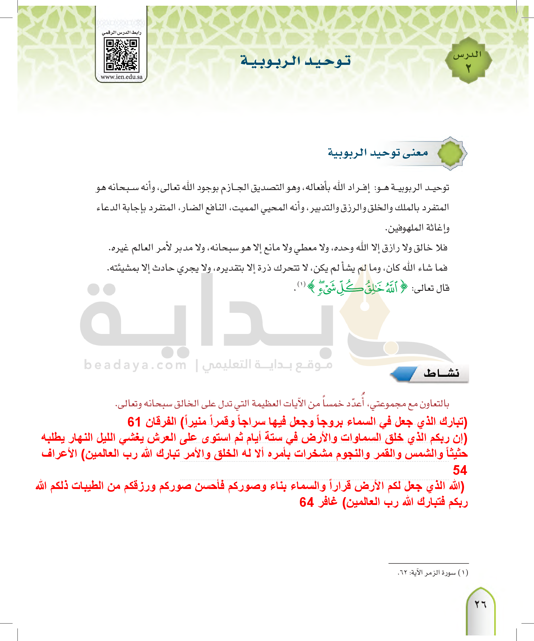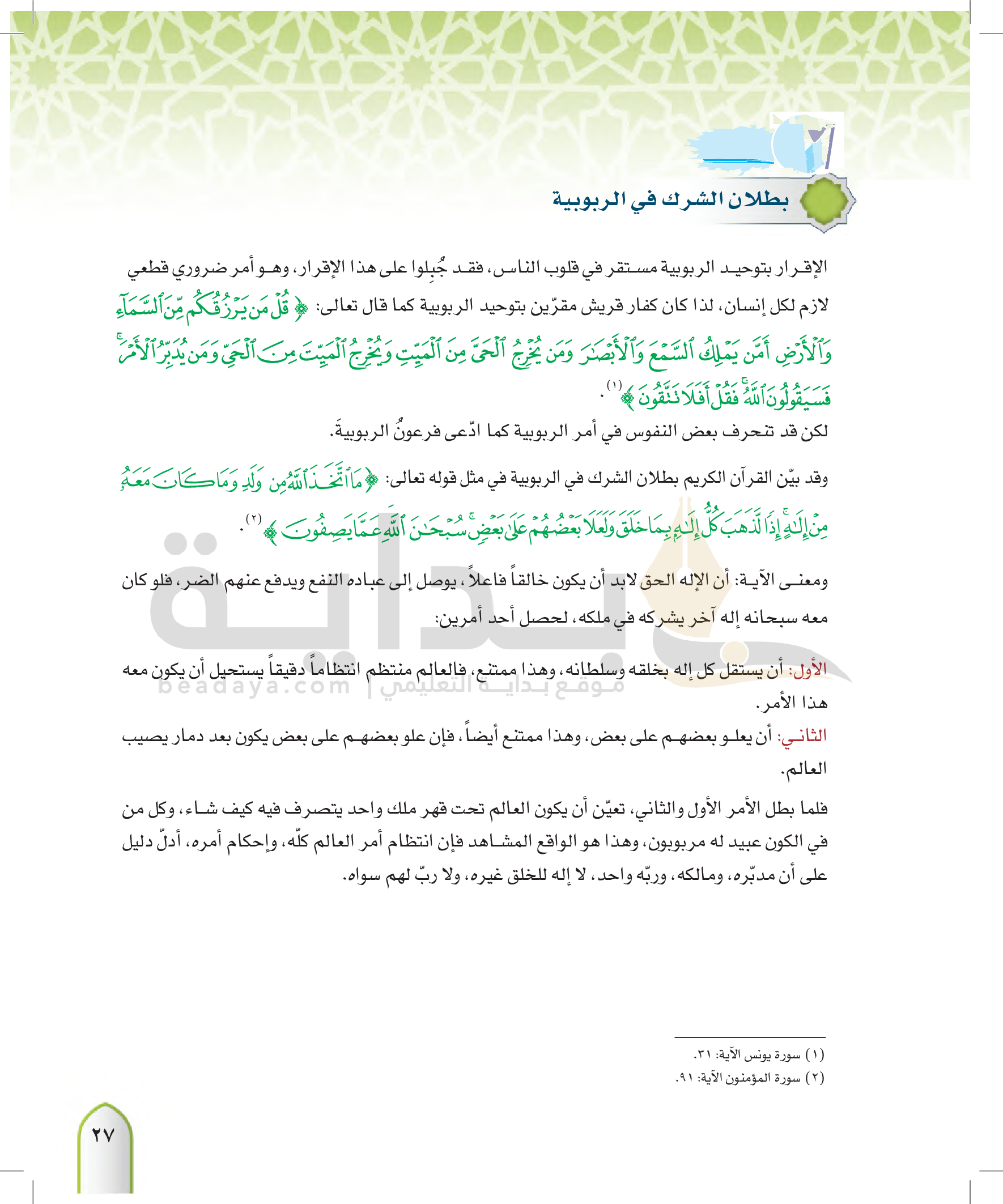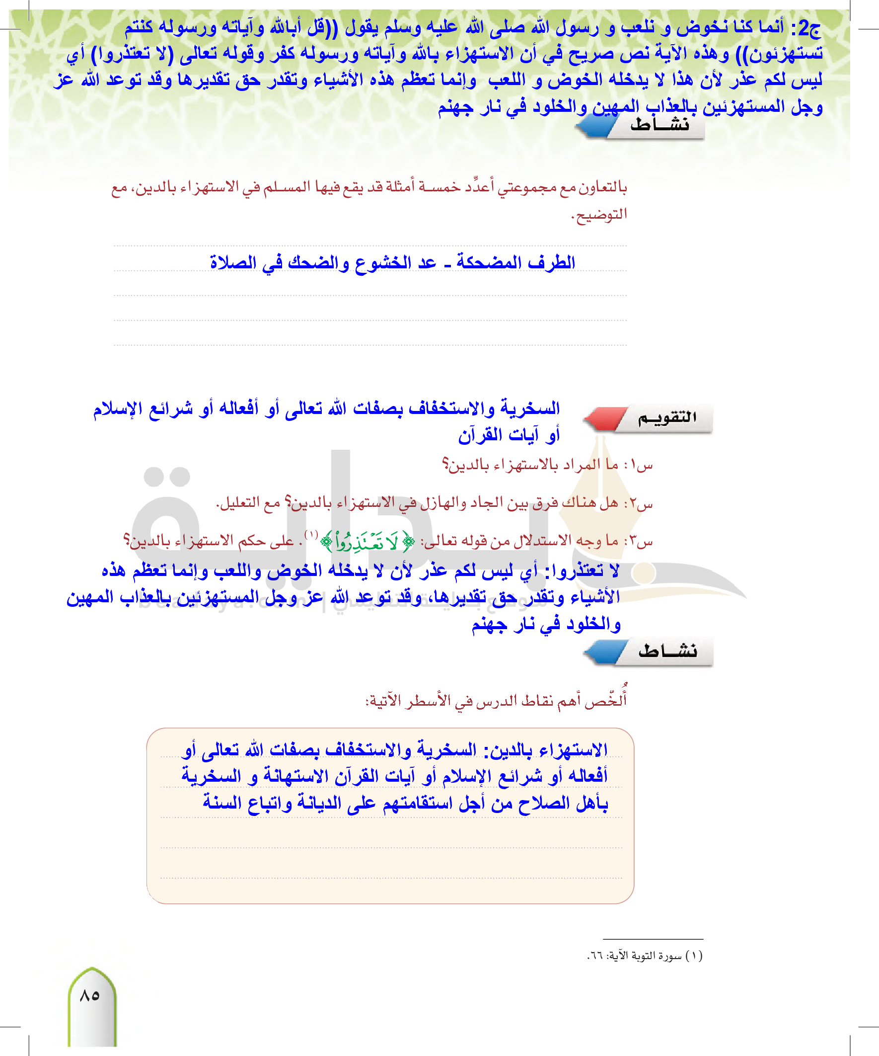 الوحدة 5: عقائد وأقوال وأفعال تنافي التوحيد