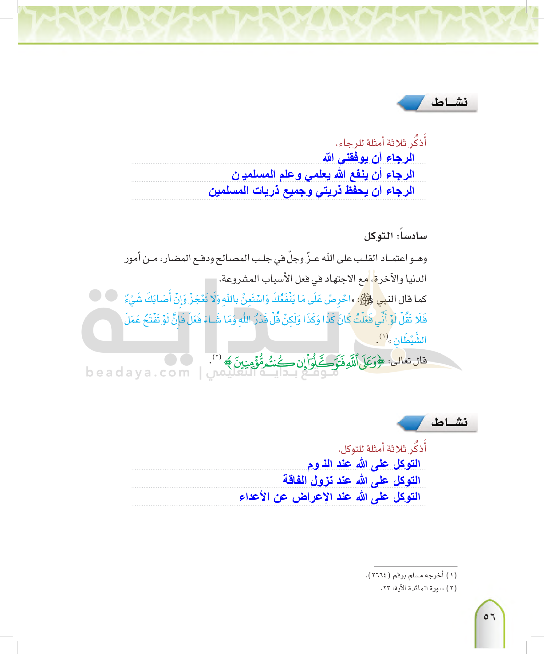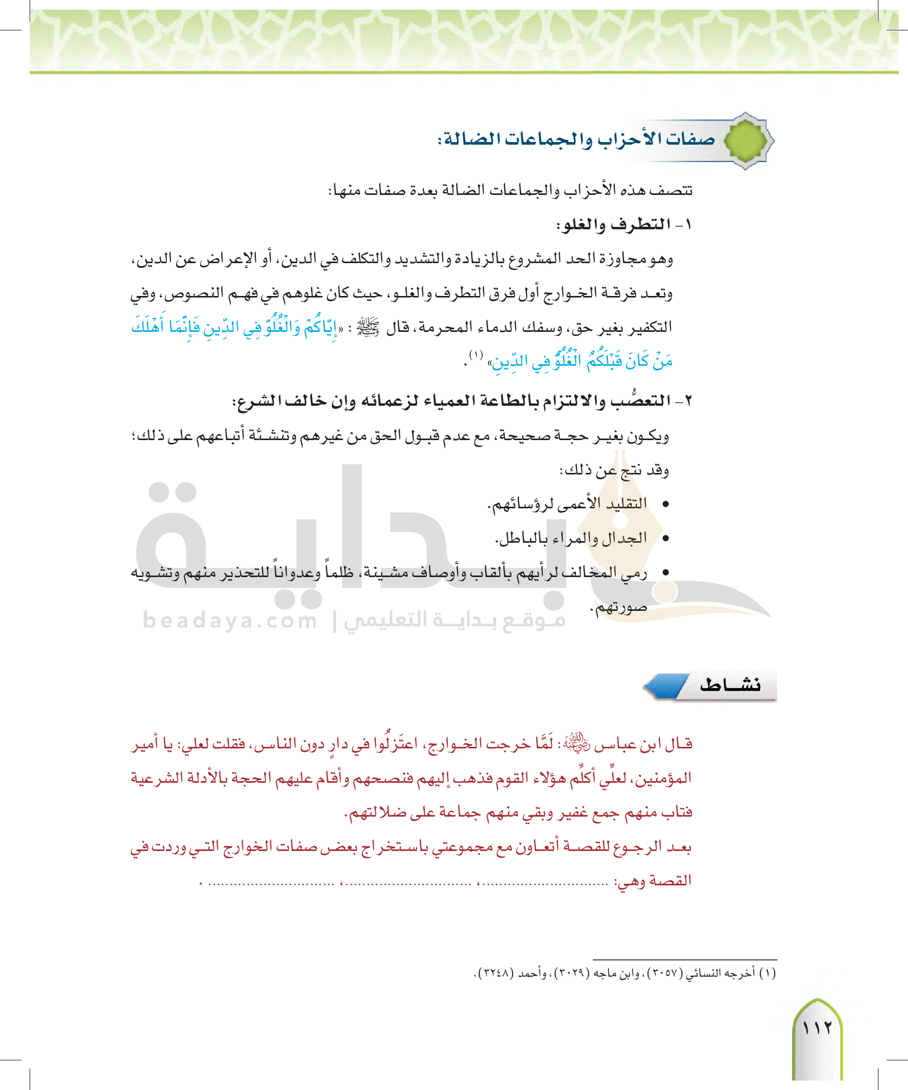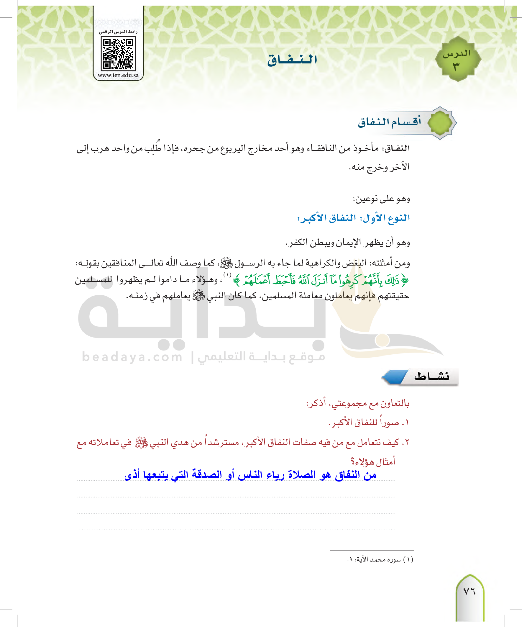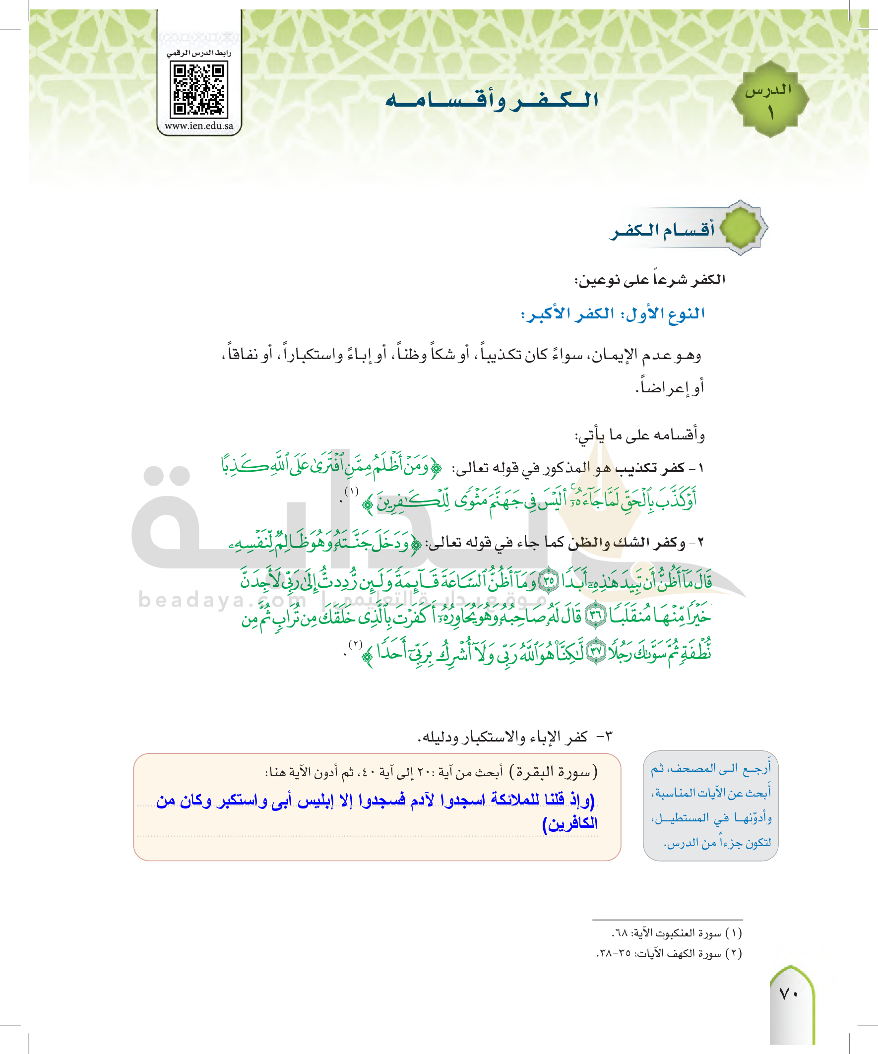 الوحدة 5: عقائد وأقوال وأفعال تنافي التوحيد