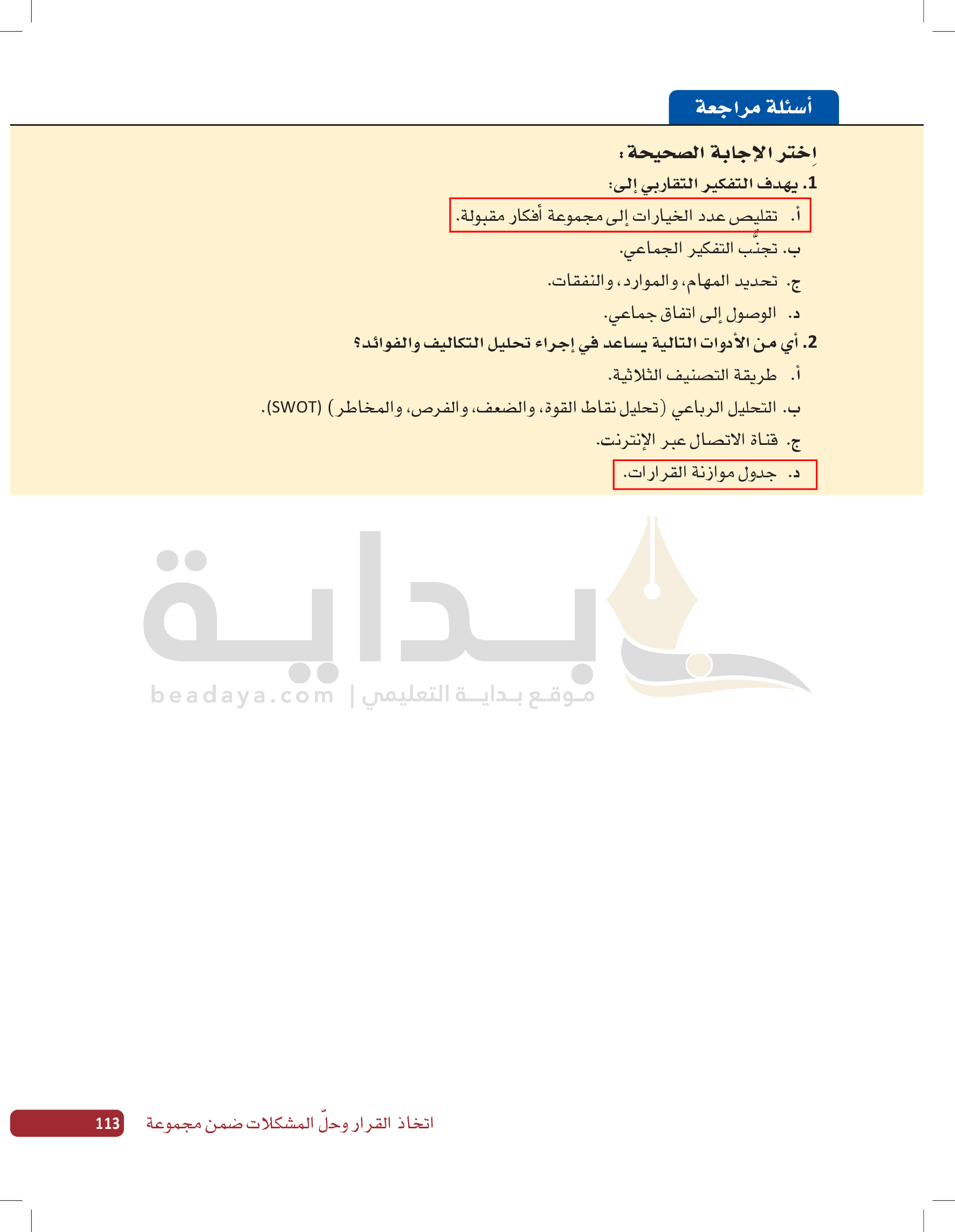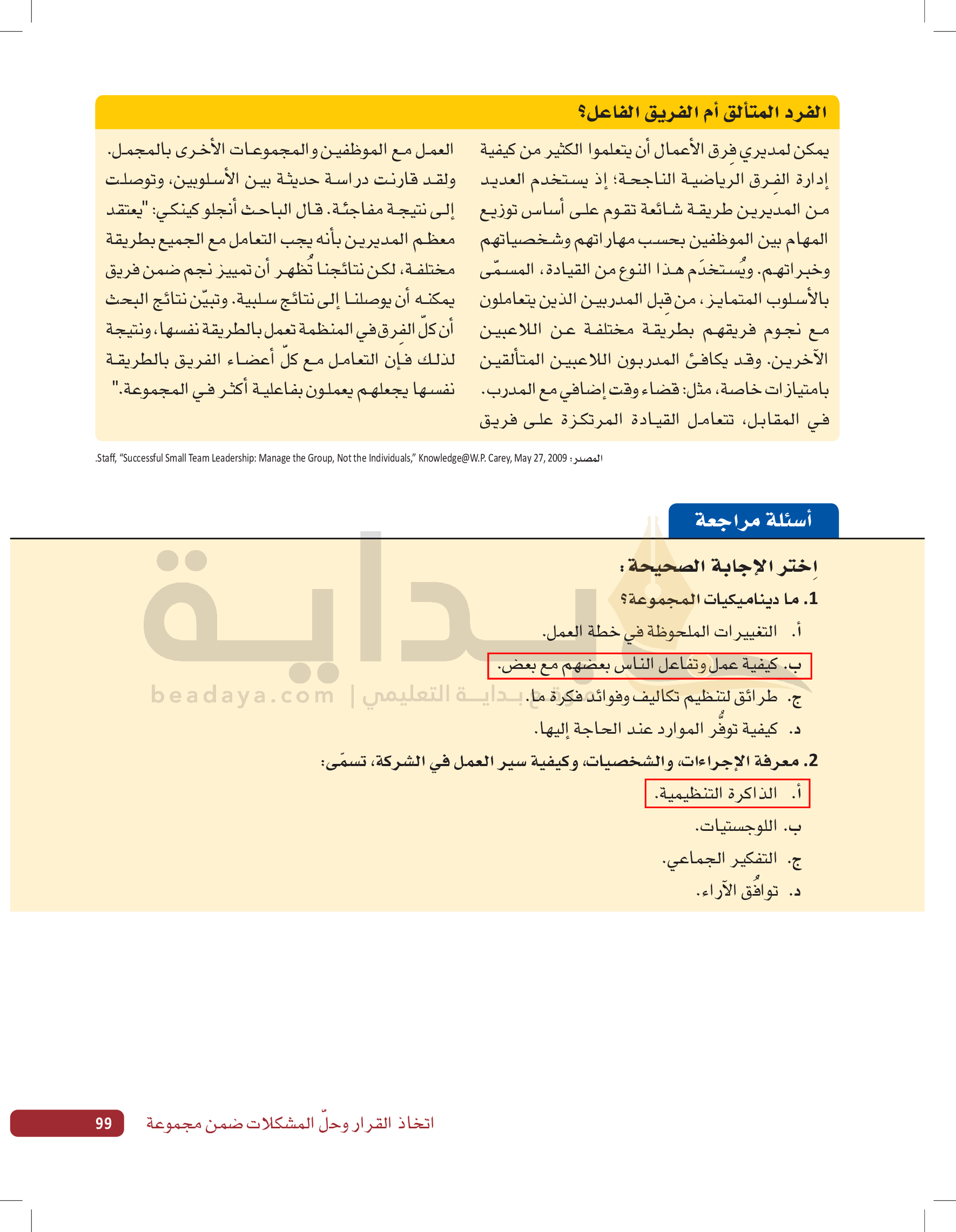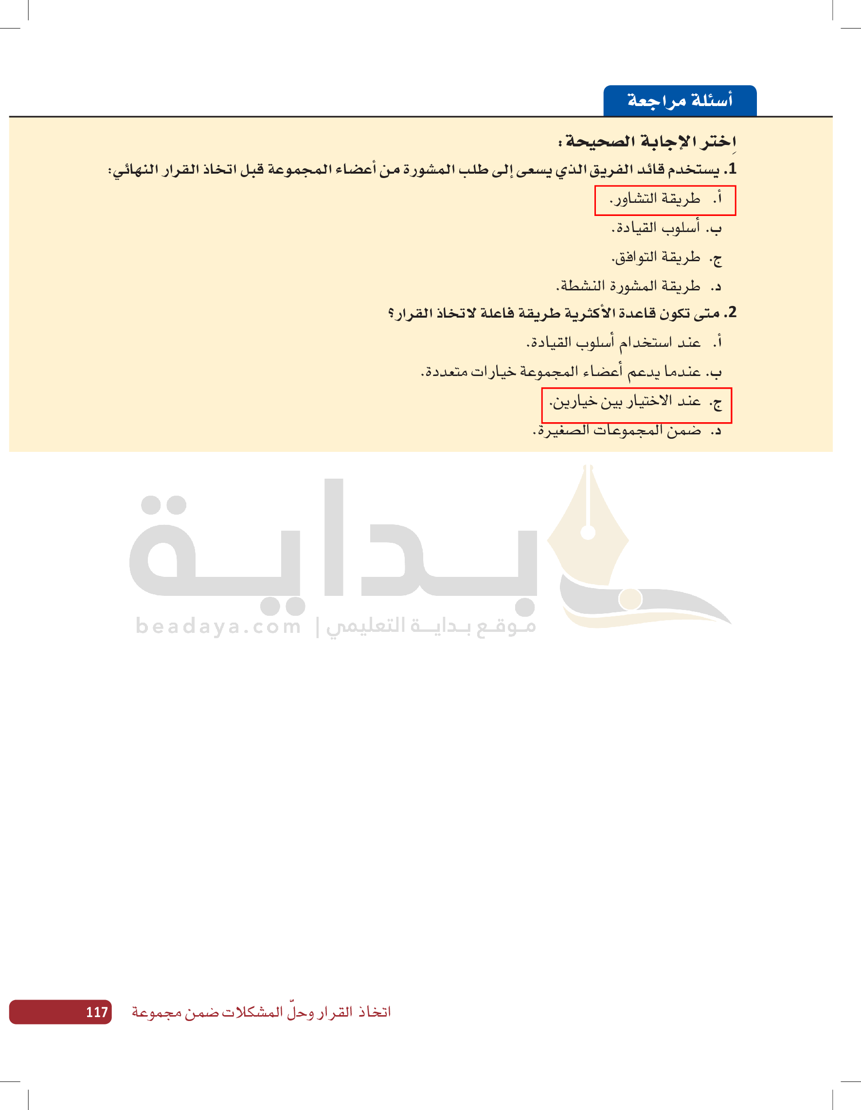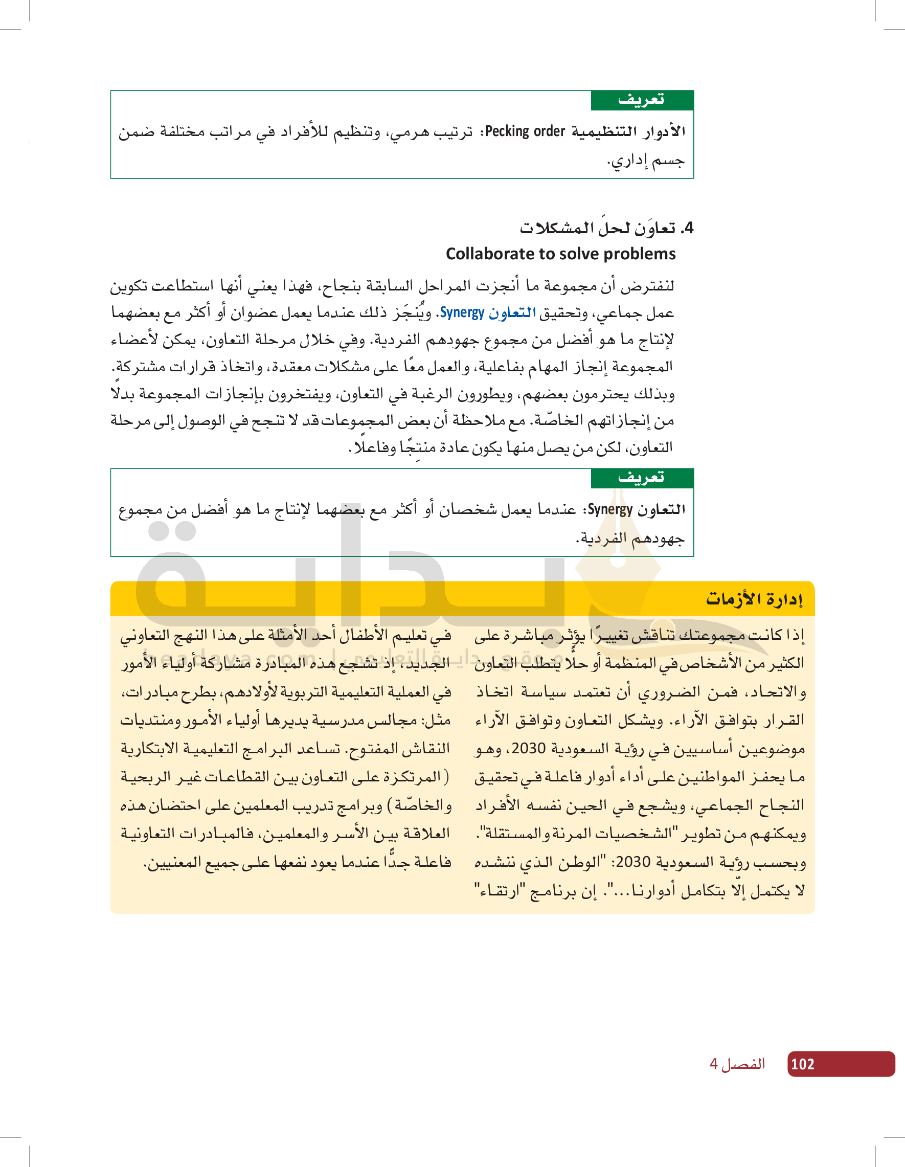 الفصل 4:/ اتخاذ القرار وحل المشكلات ضمن مجموعة