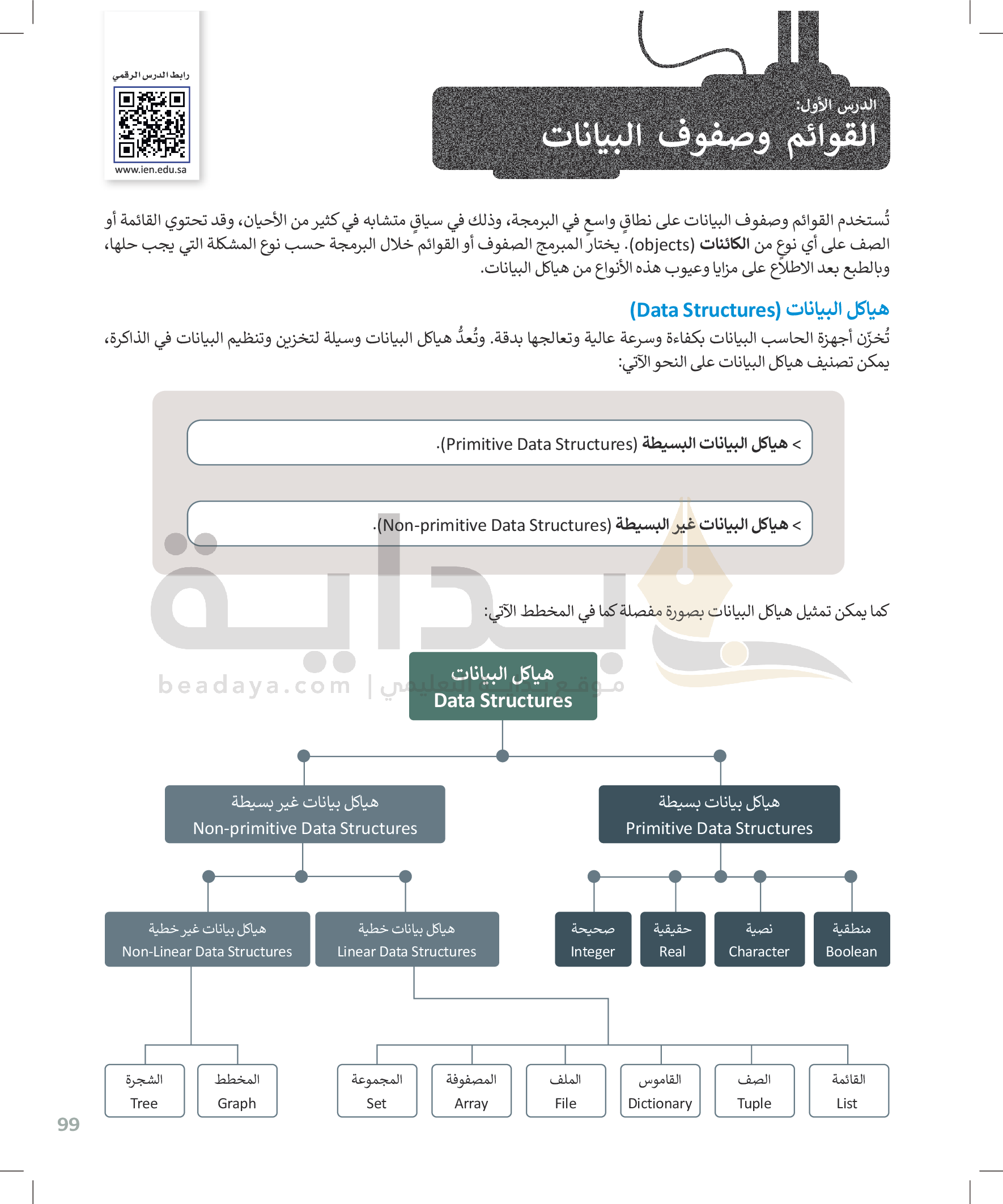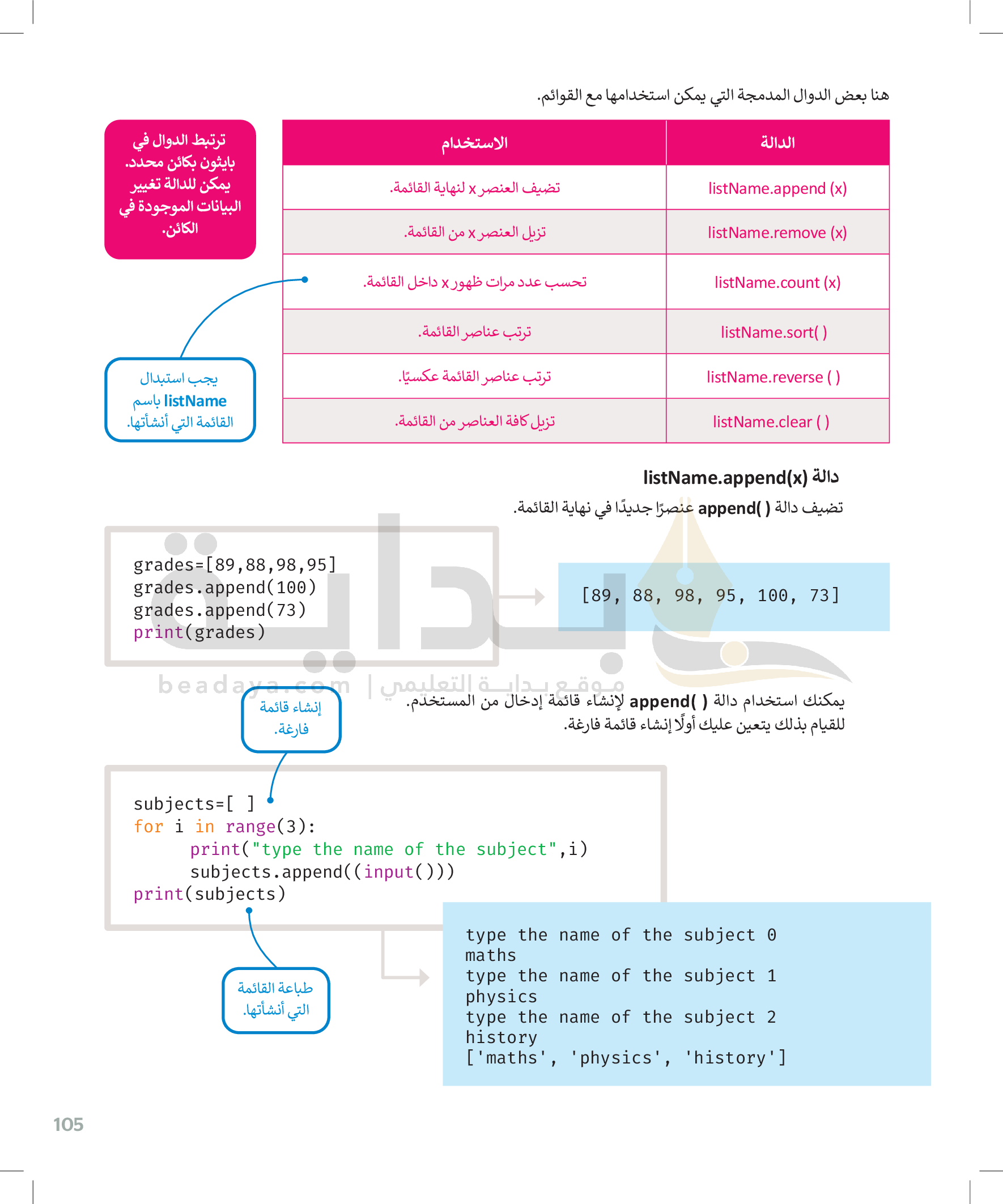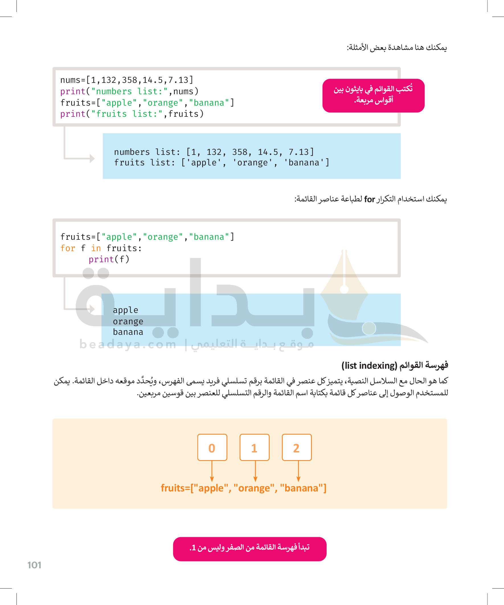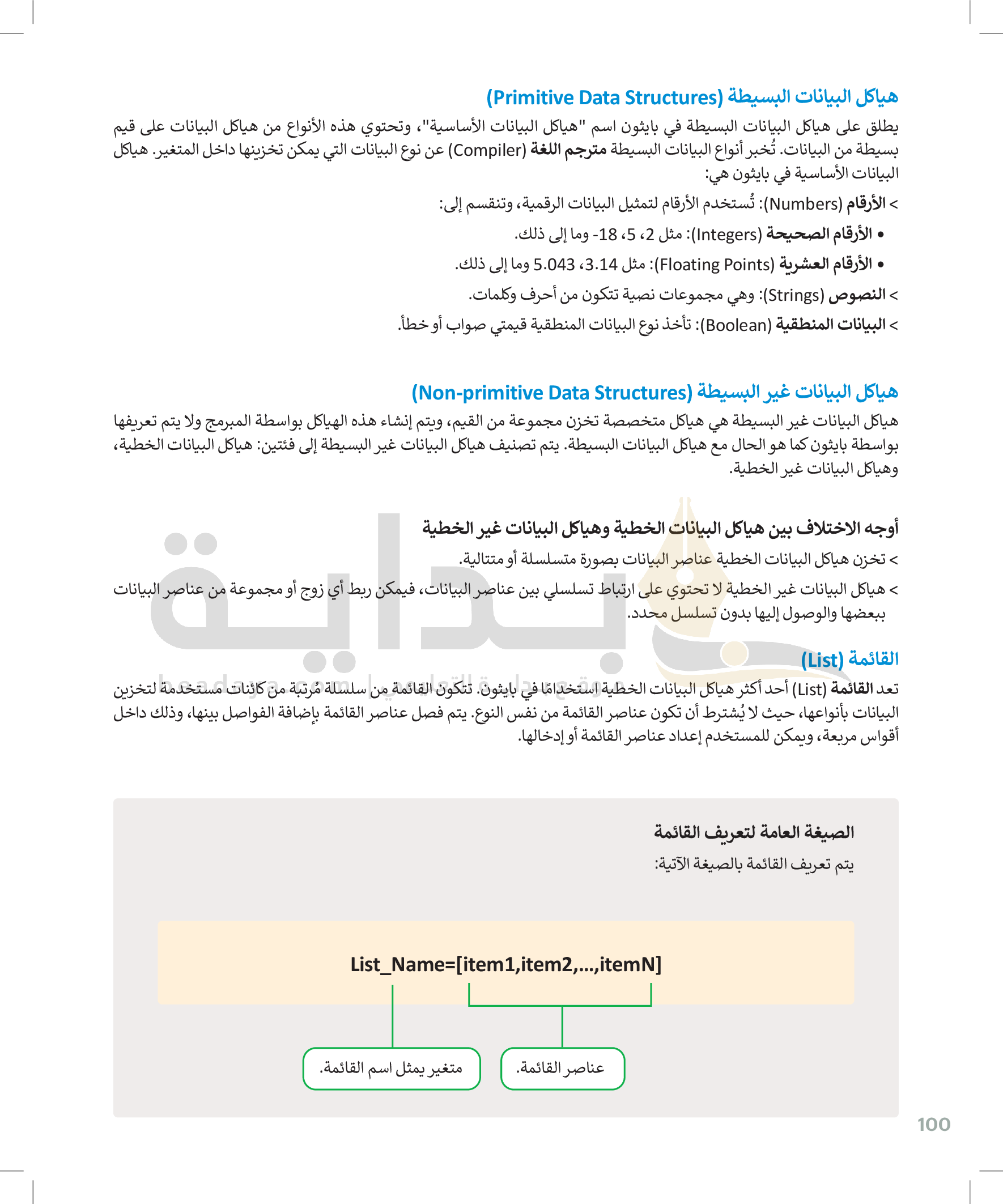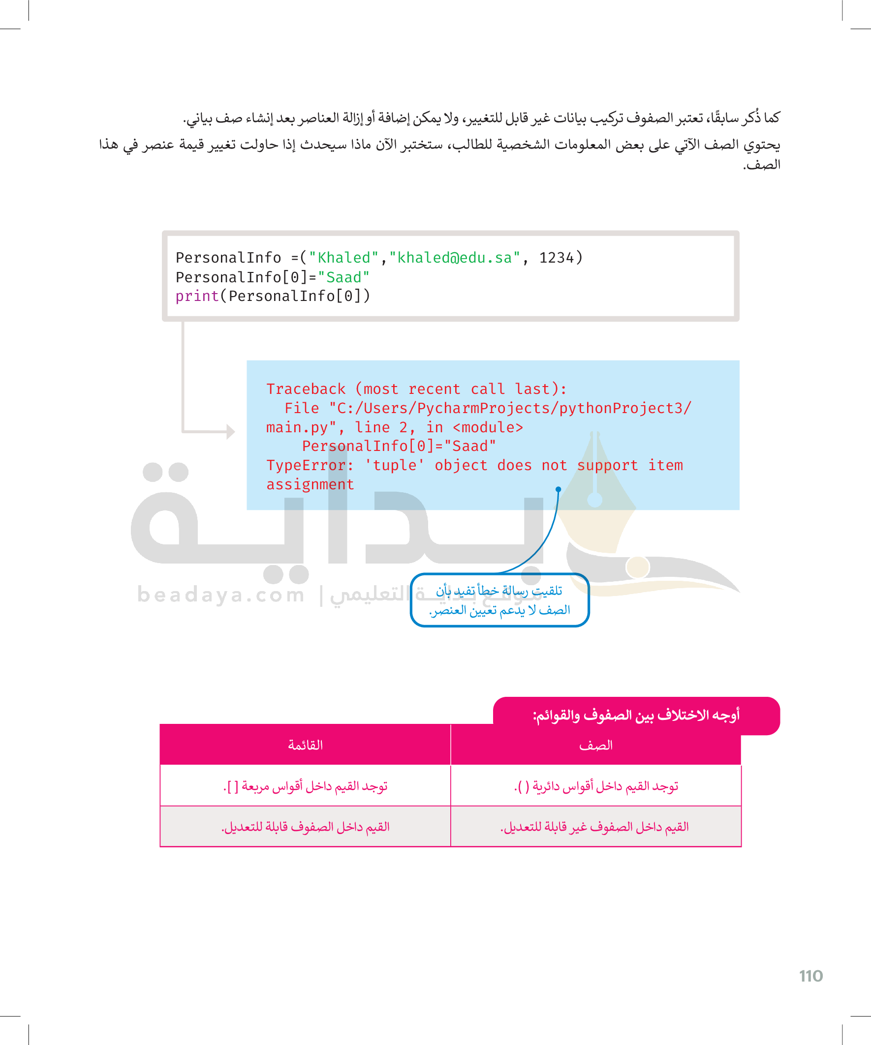 القوائم وصفوف البيانات
