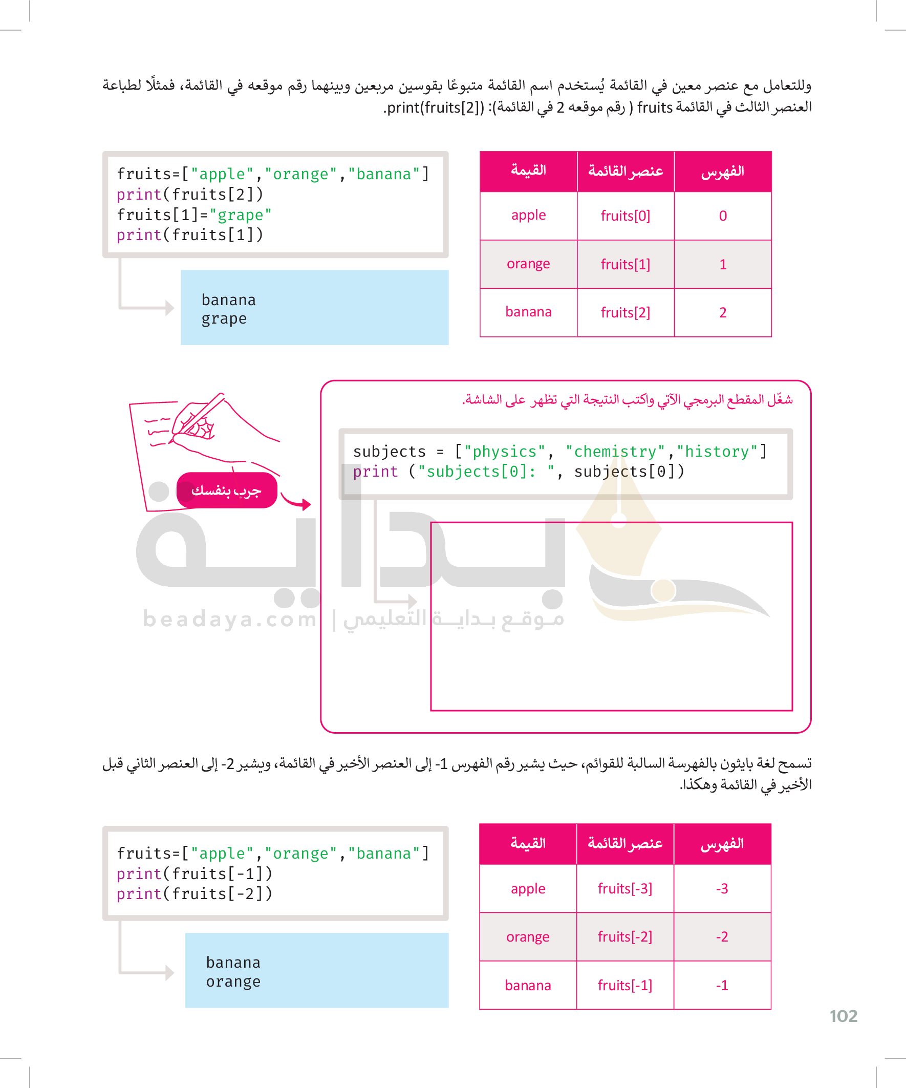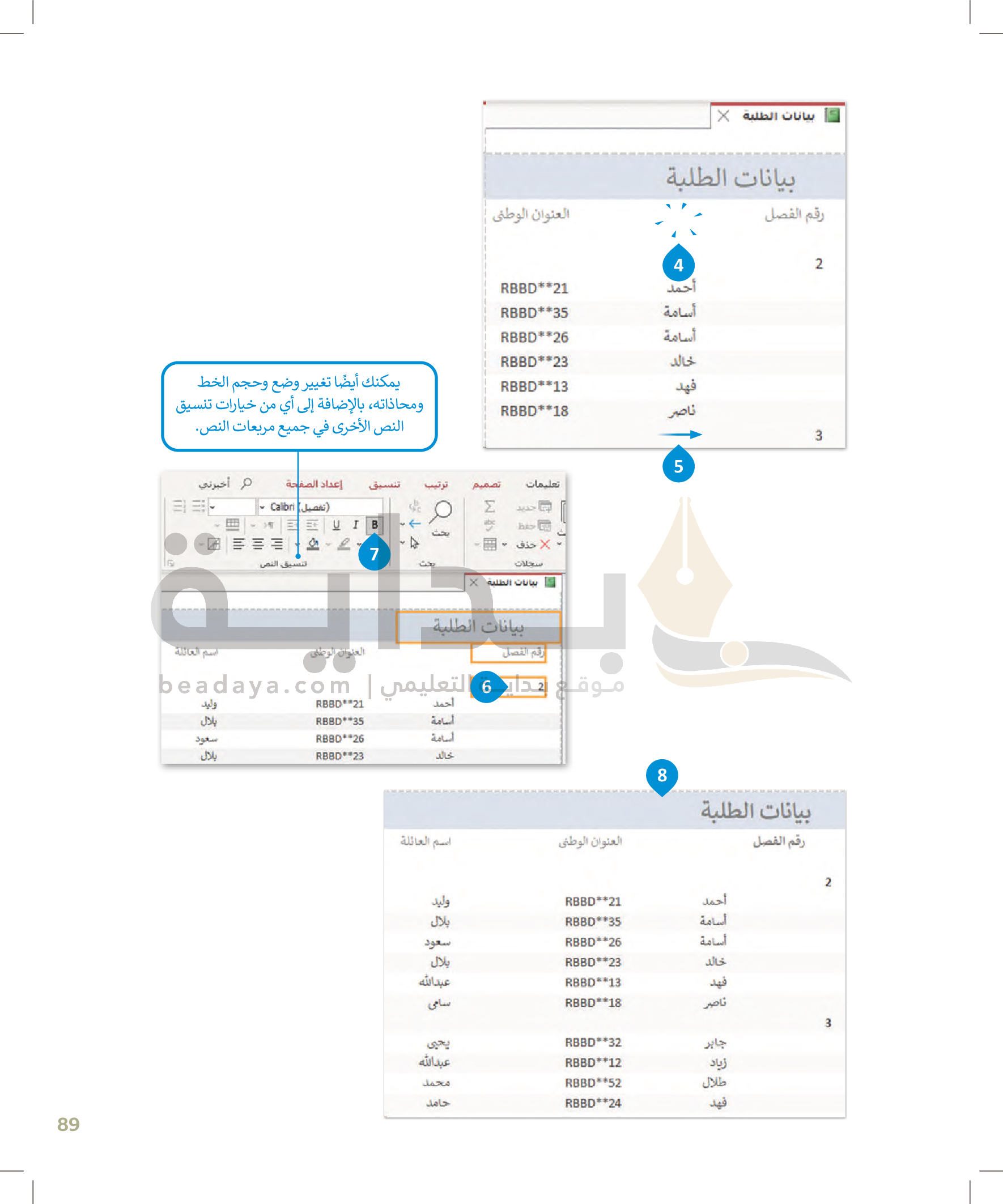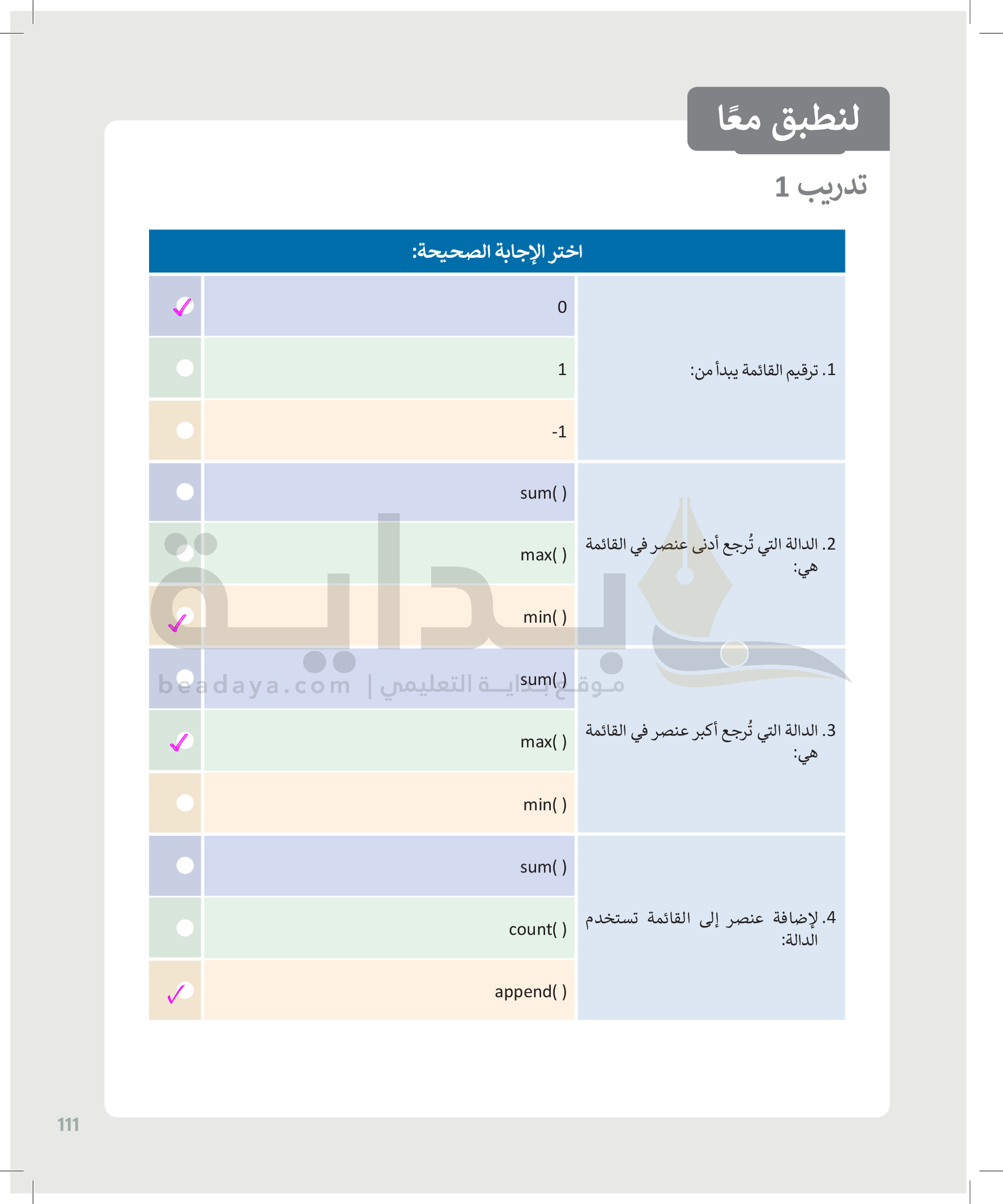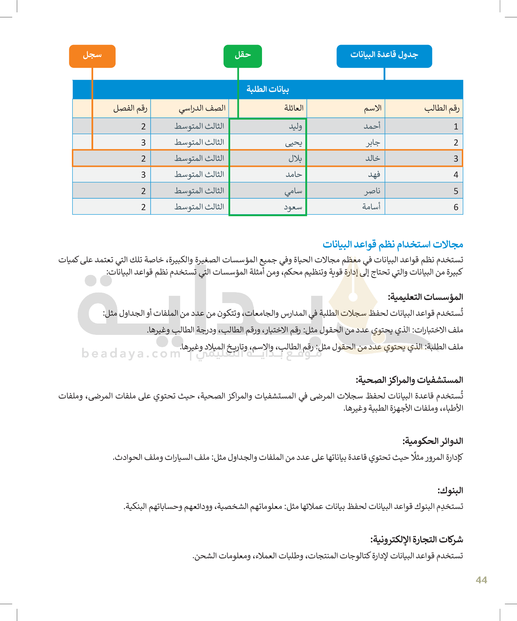 القوائم وصفوف البيانات