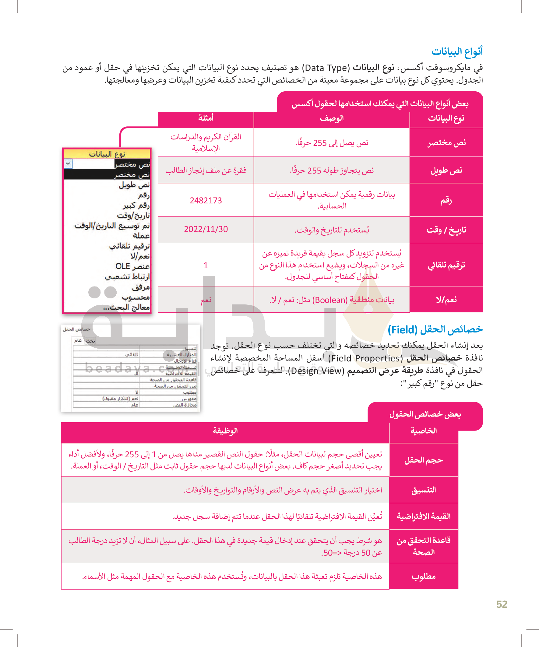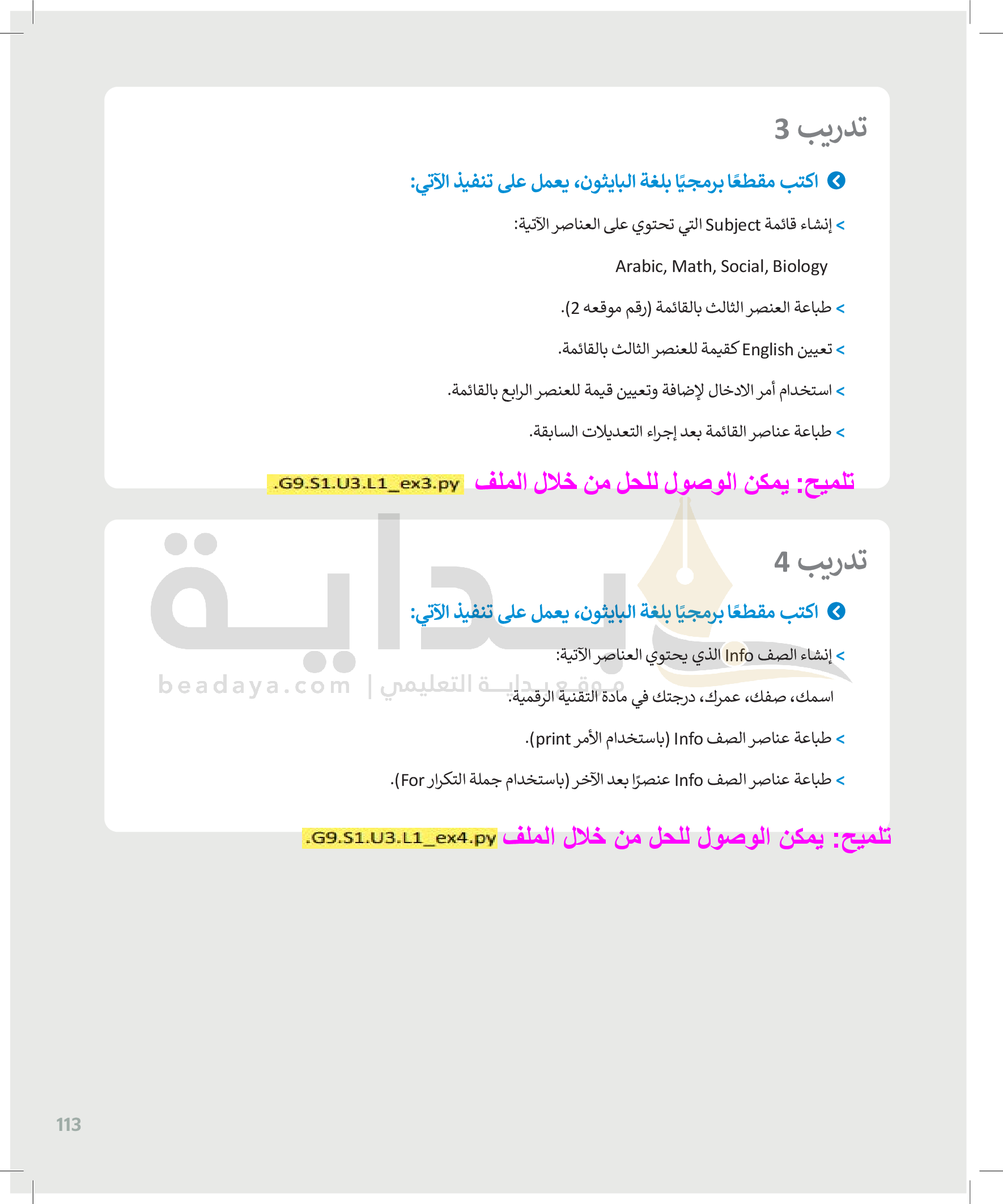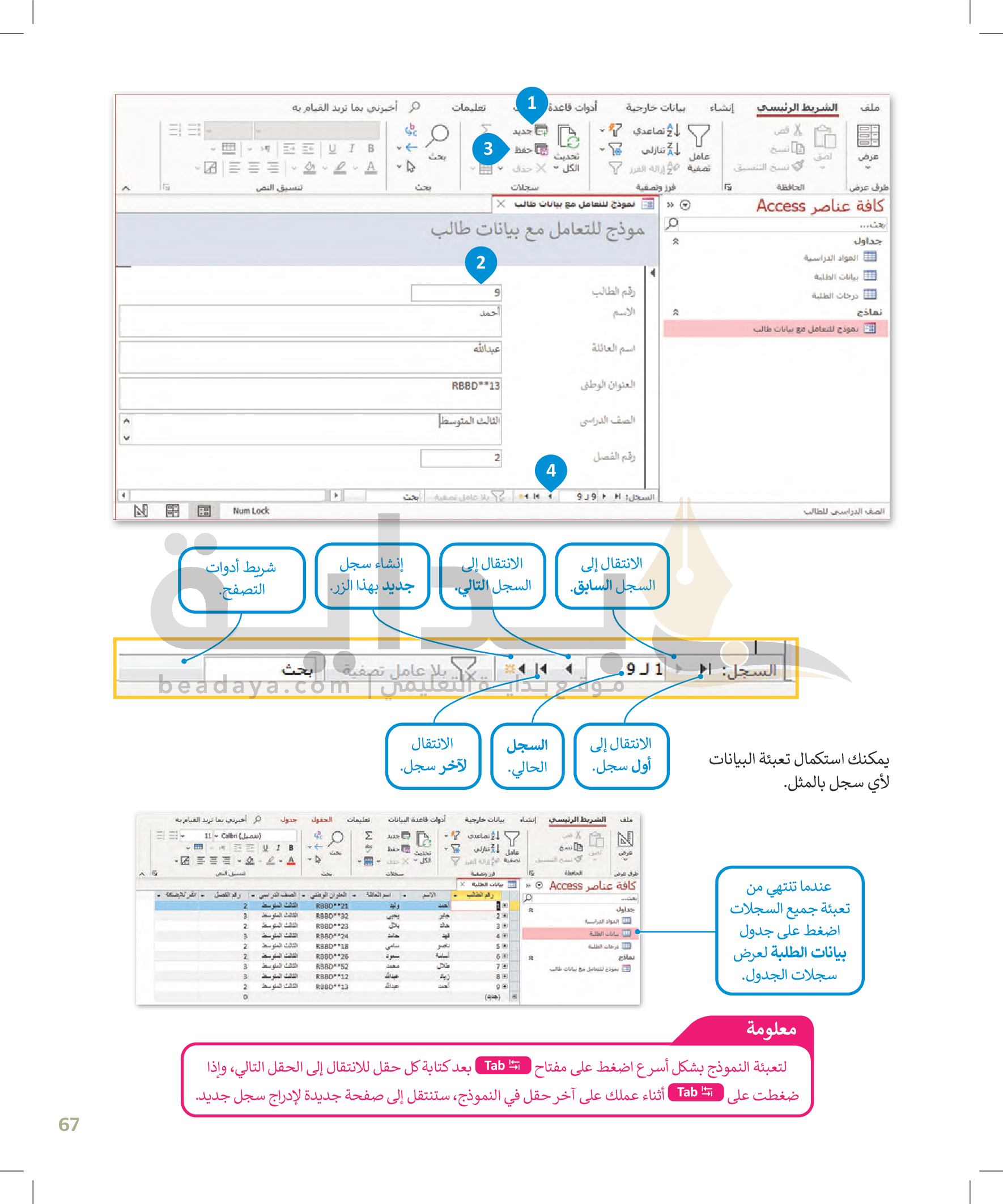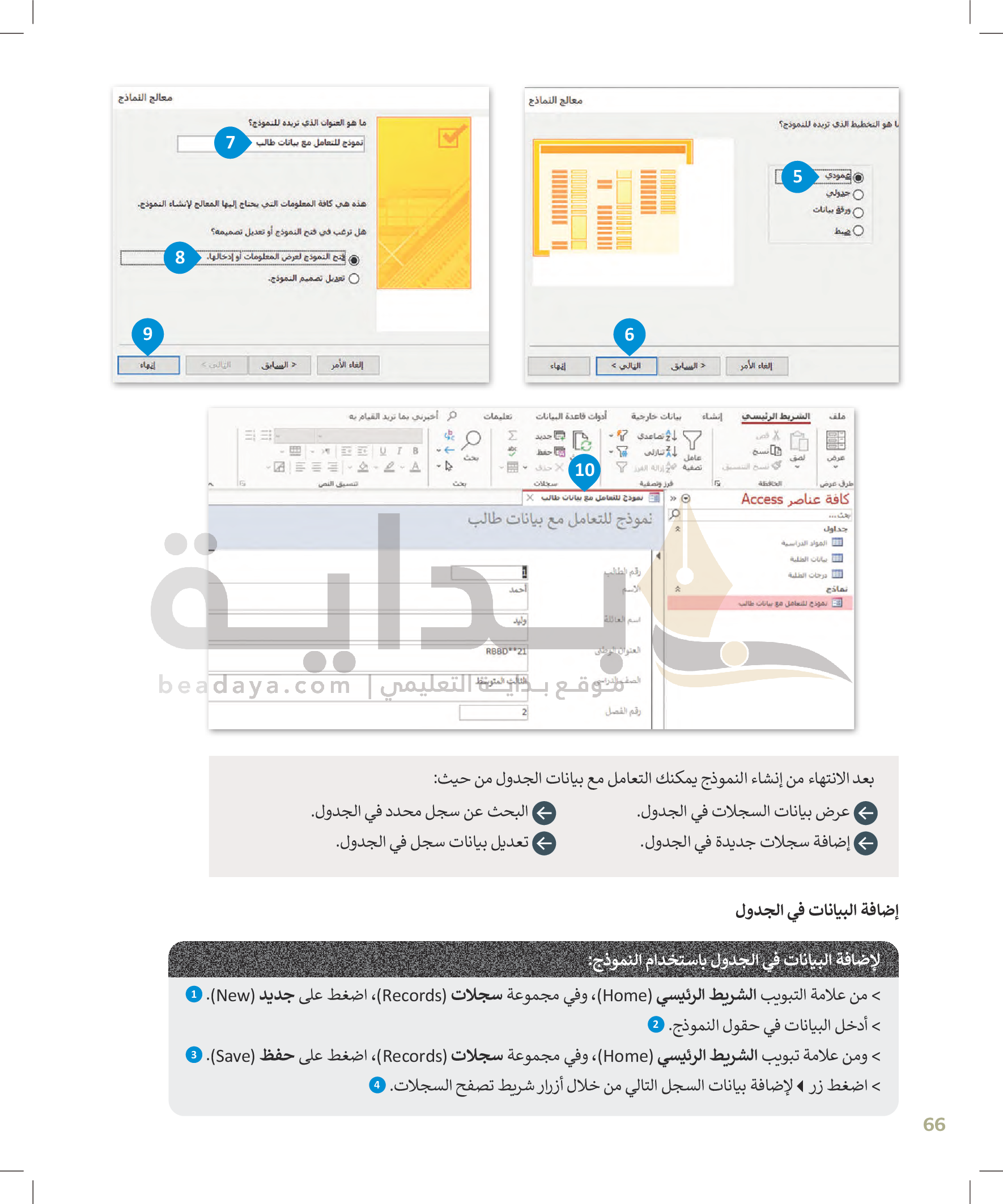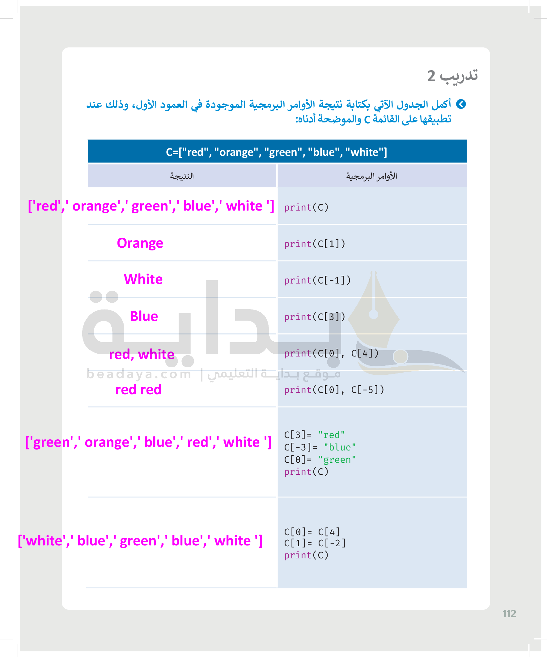 القوائم وصفوف البيانات