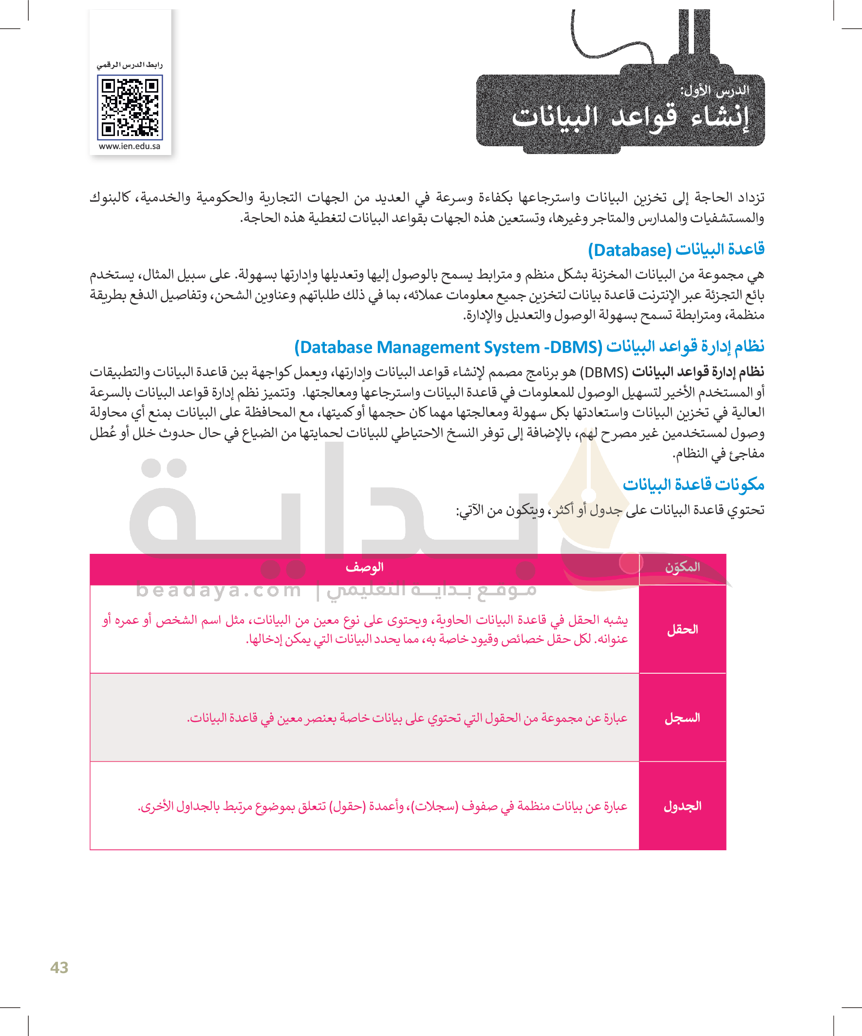 إنشاء قواعد البيانات