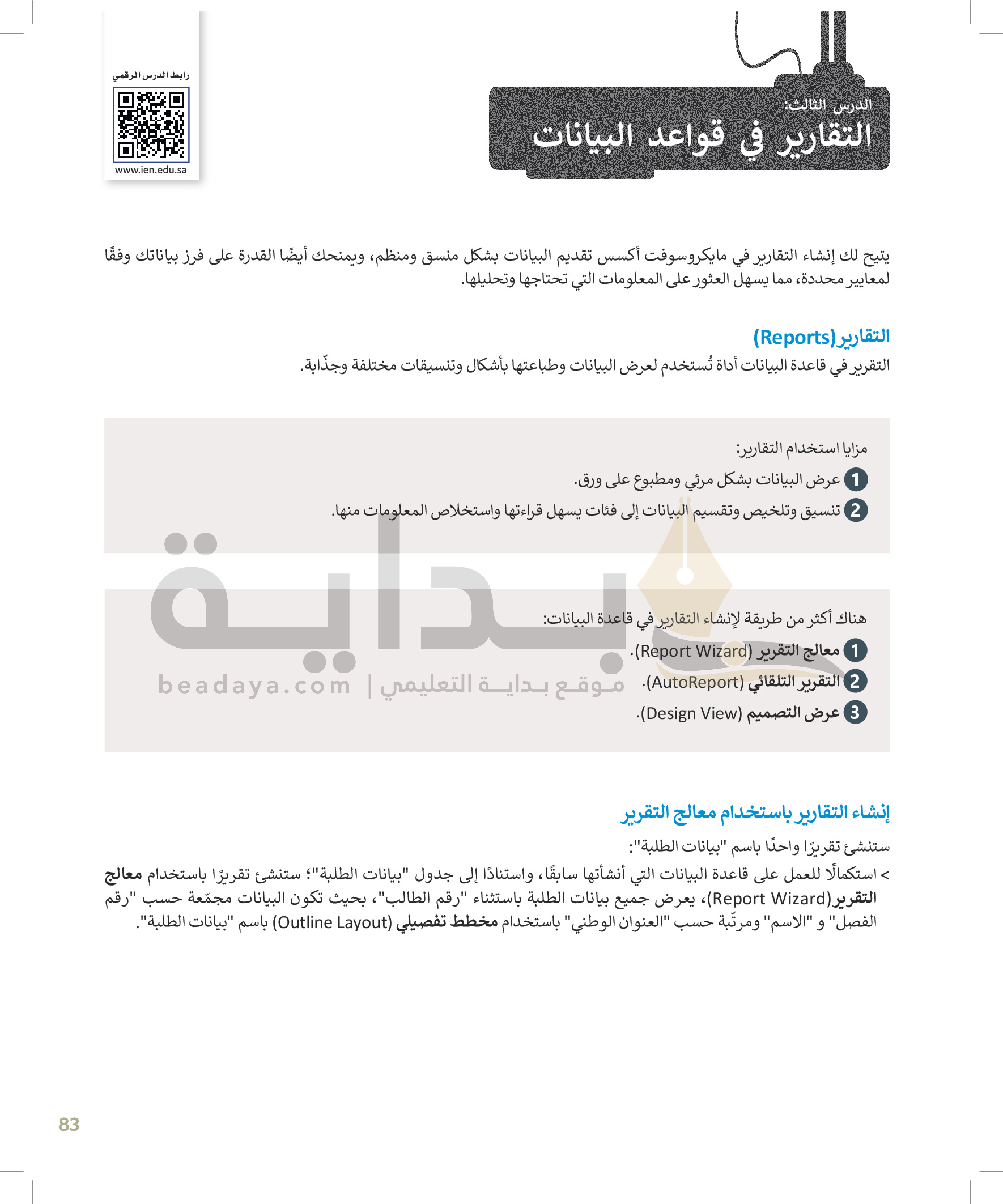 التقارير في قواعد البيانات