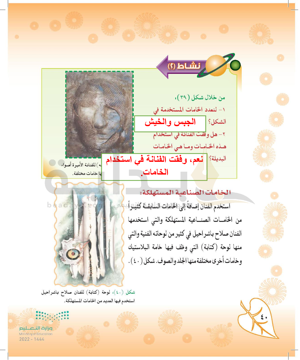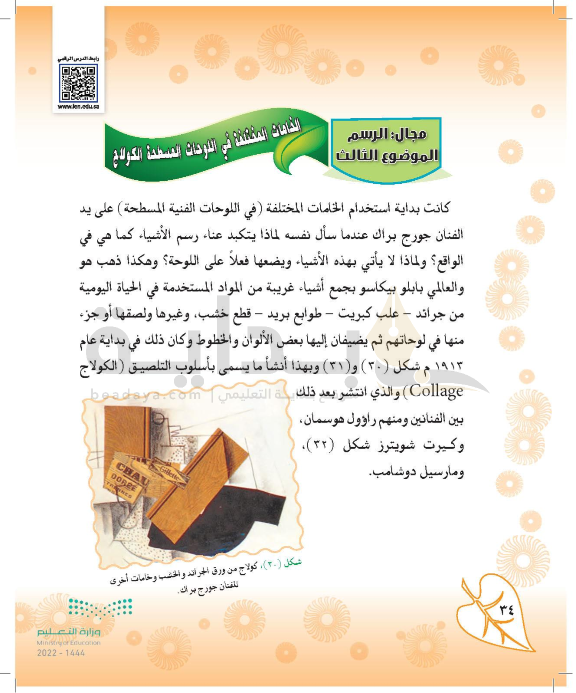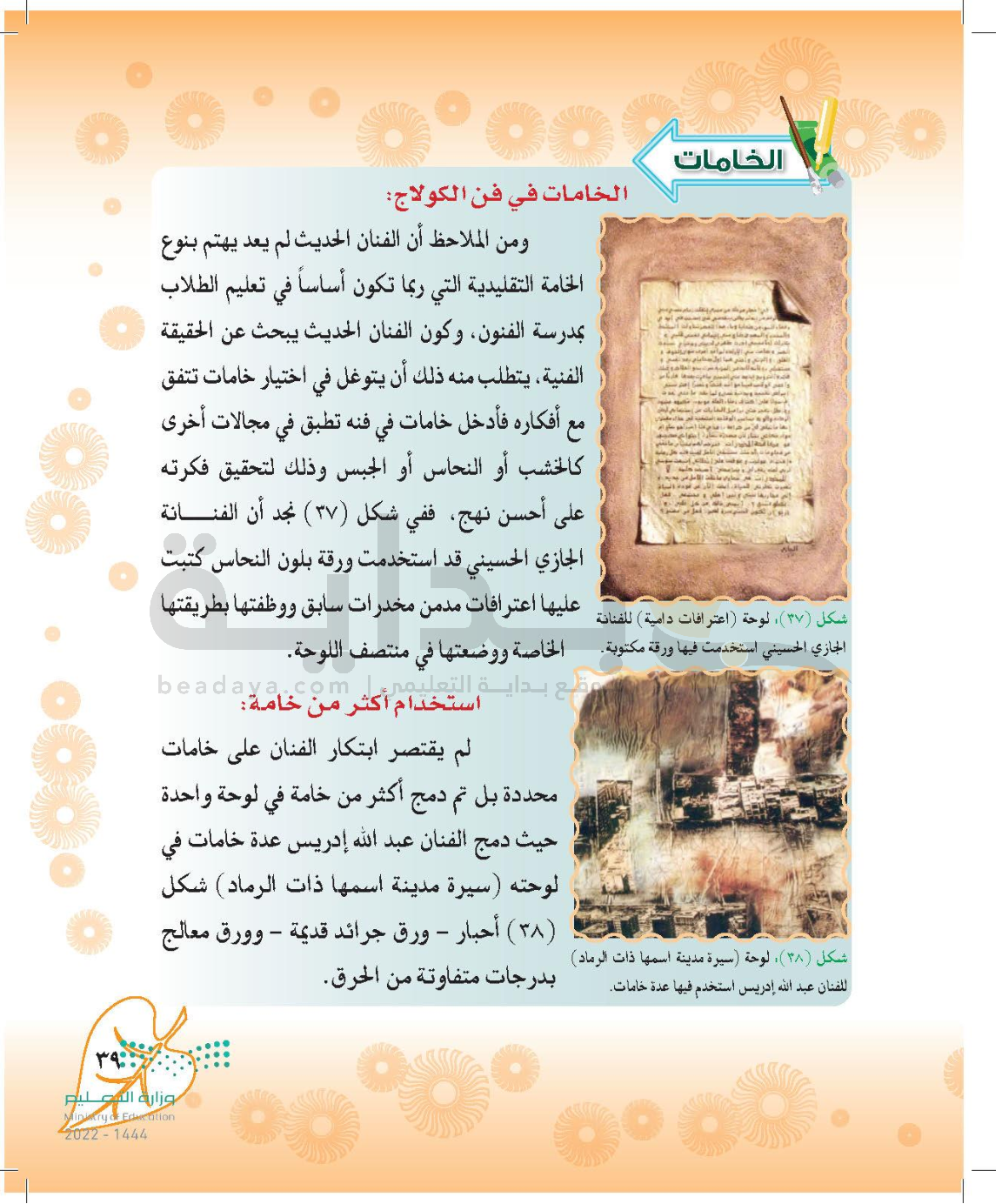الخامات المختلفة في اللوحات المسطحة (الكولاج)