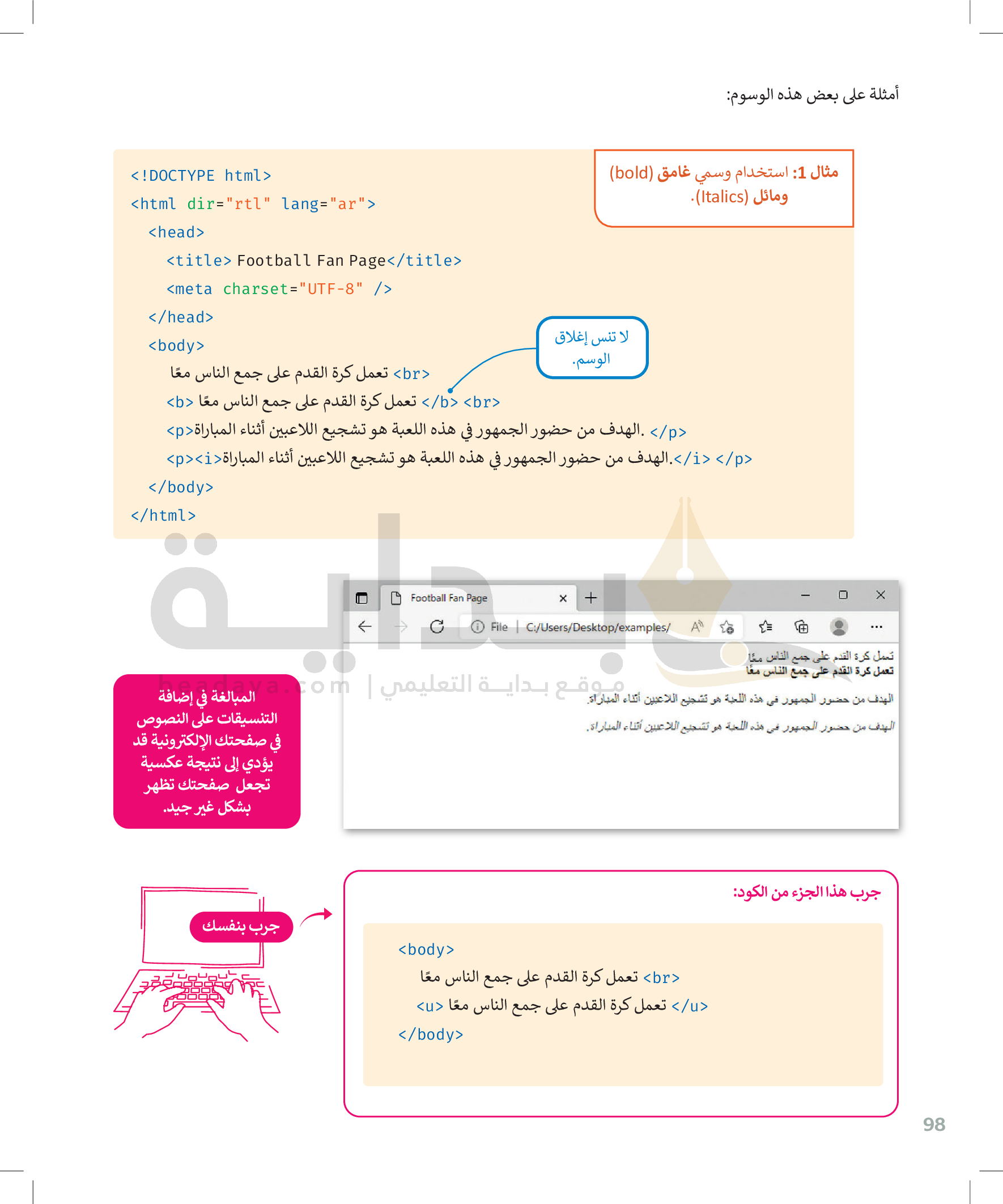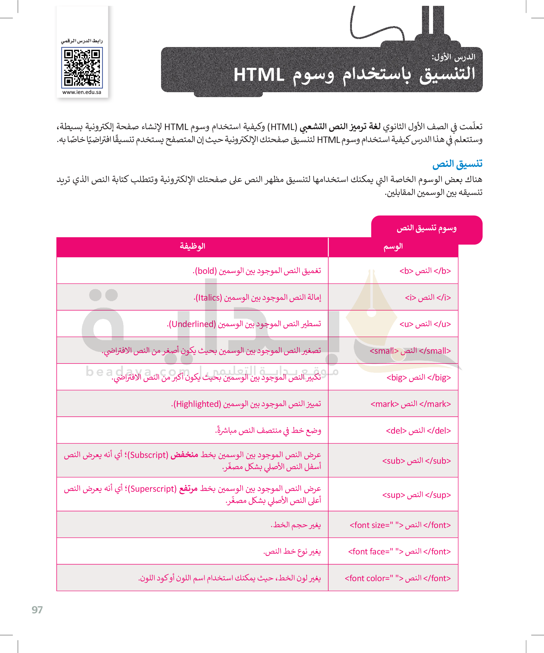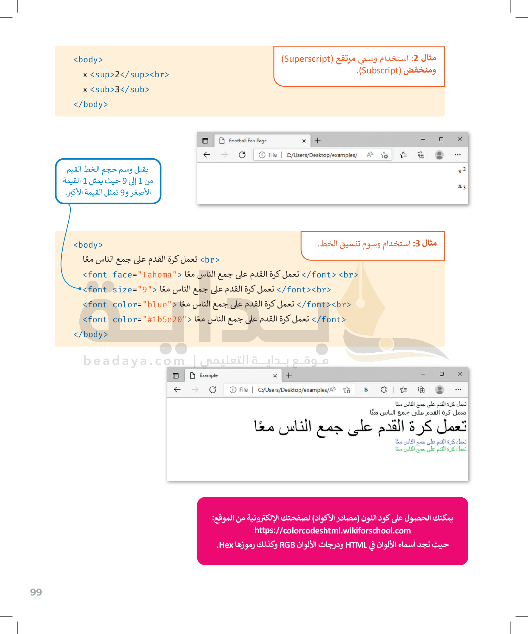 الوحدة 3 - التنسيق باستخدام وسوم HTML