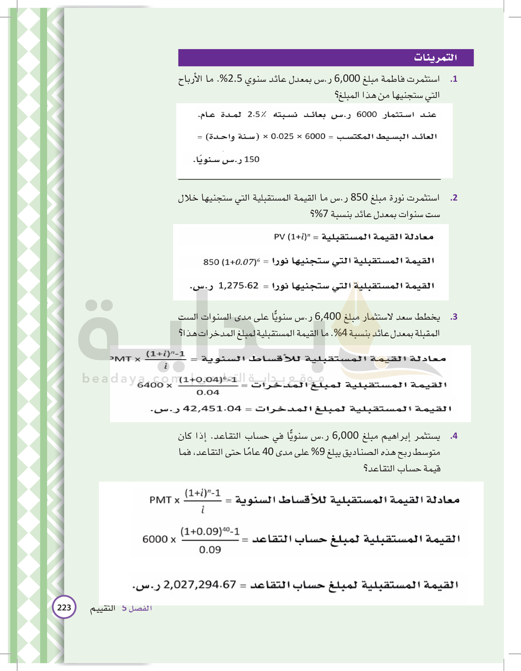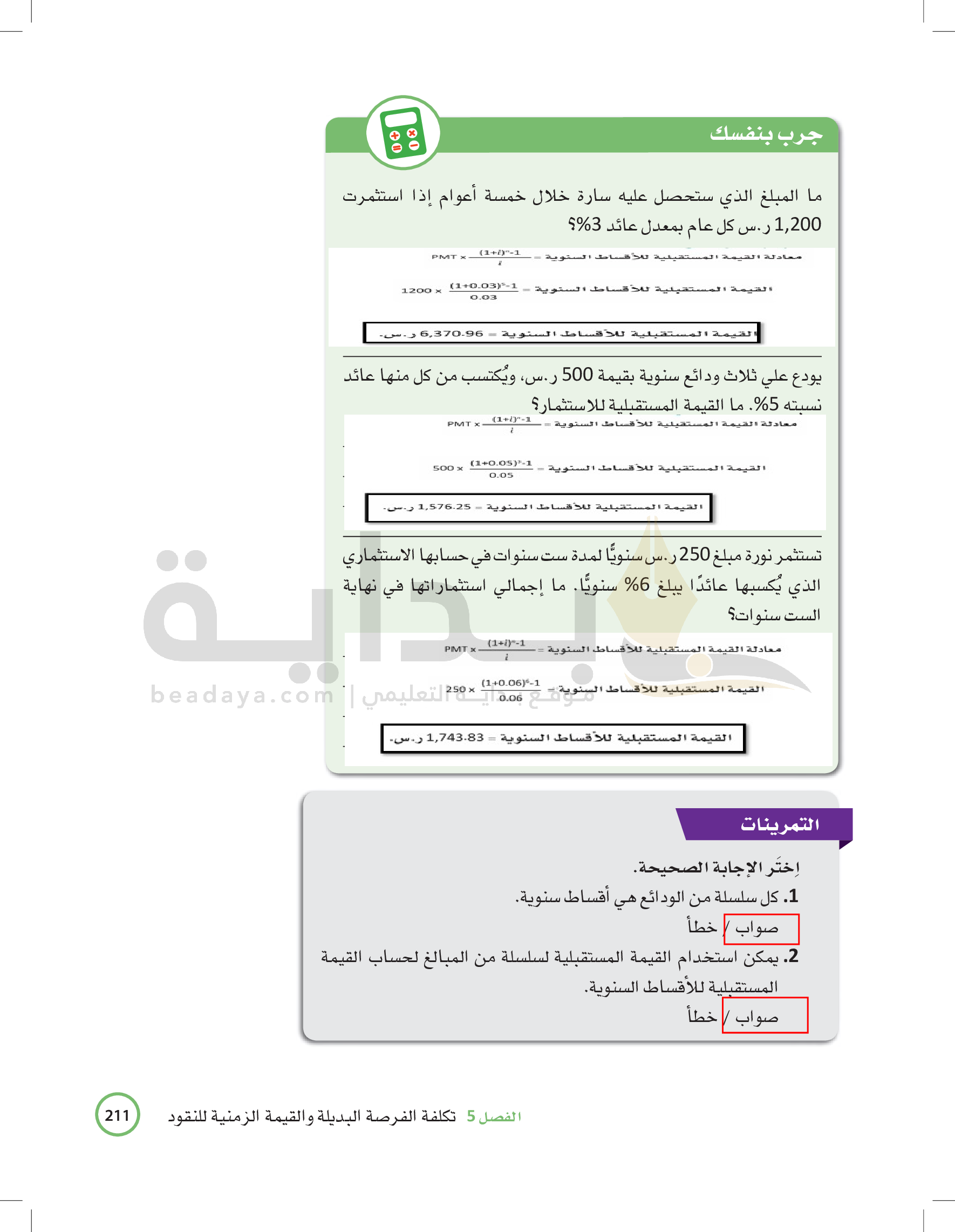 القيمة المستقبلية لسلسة من المبالغ (الأقساط السنوية)