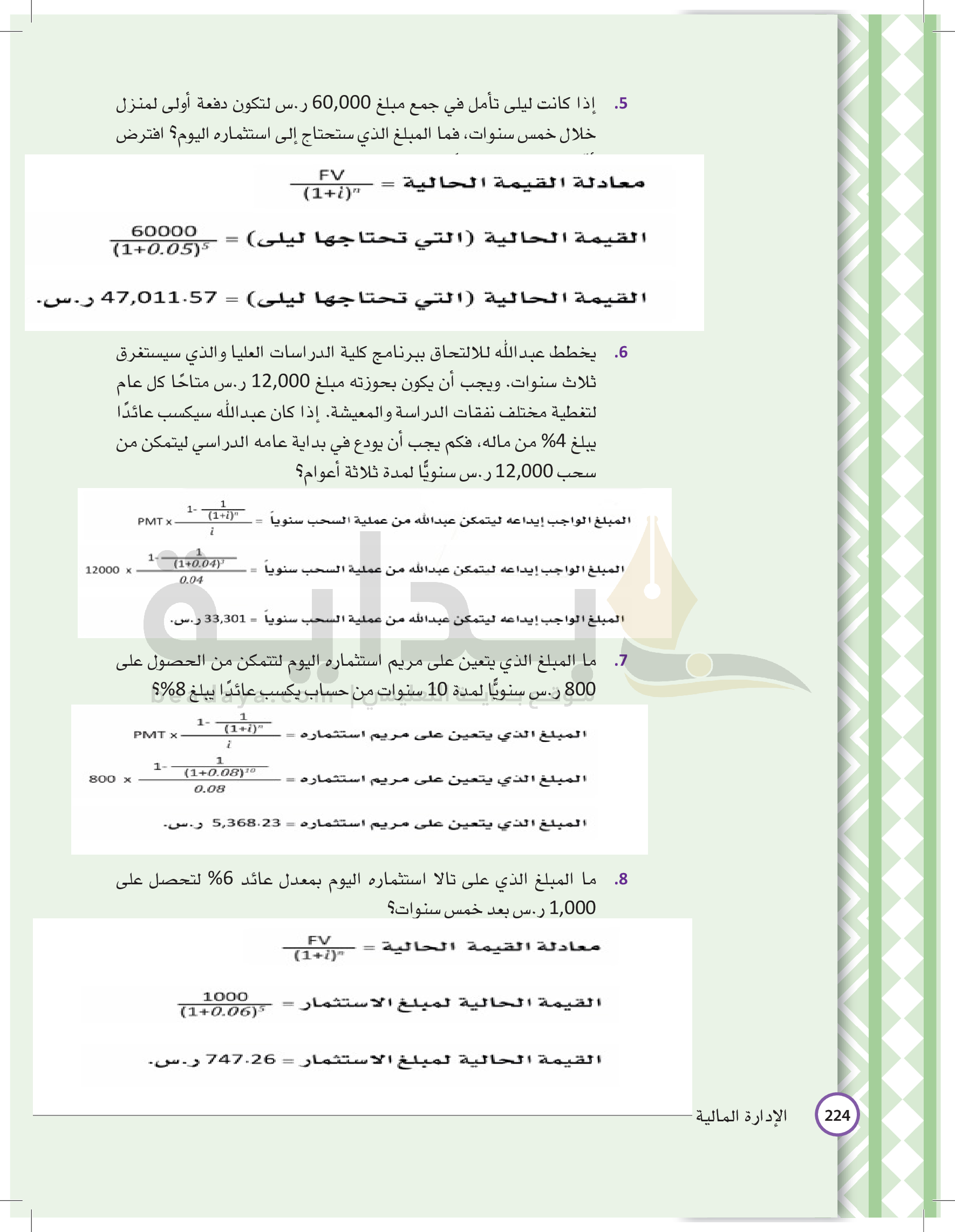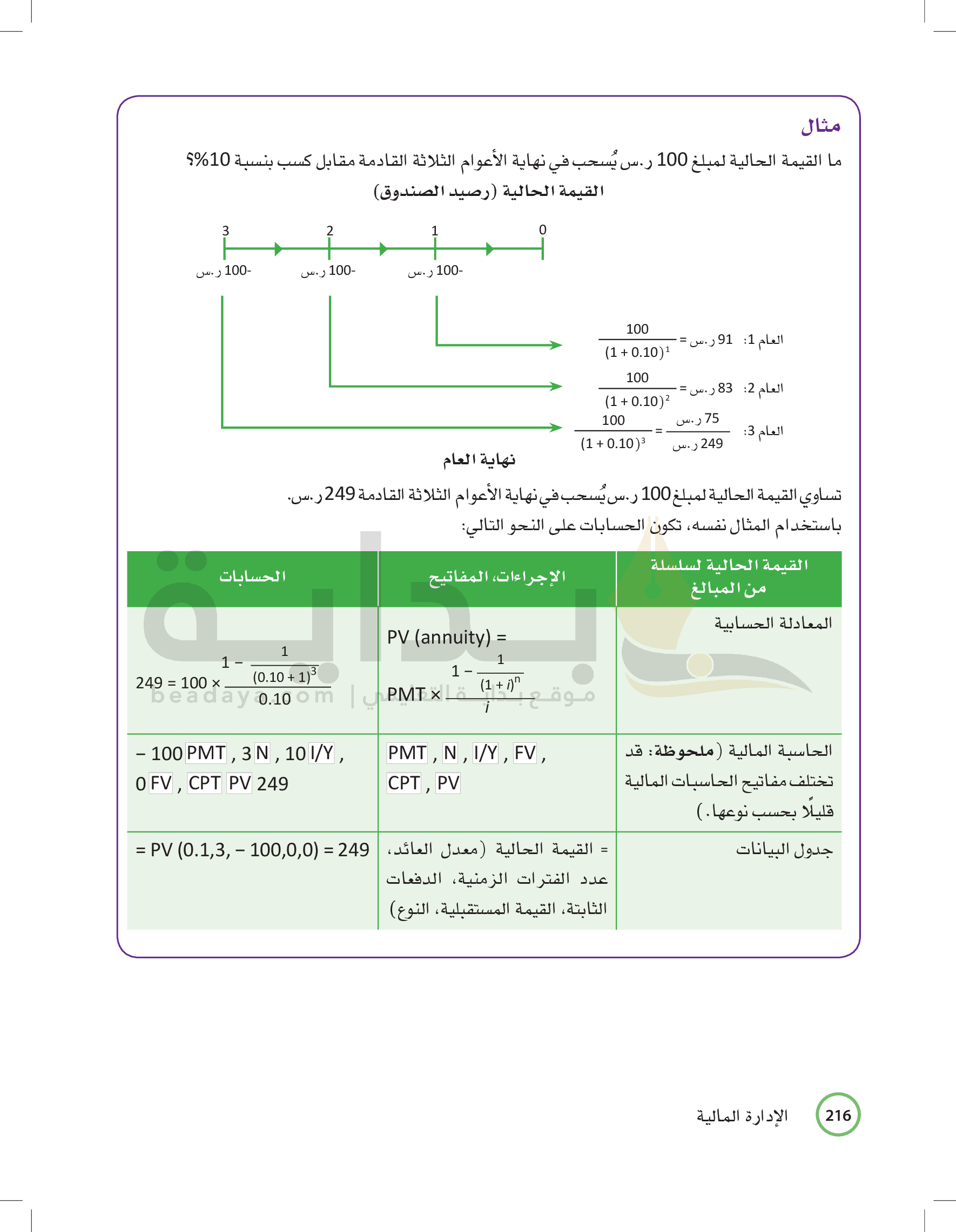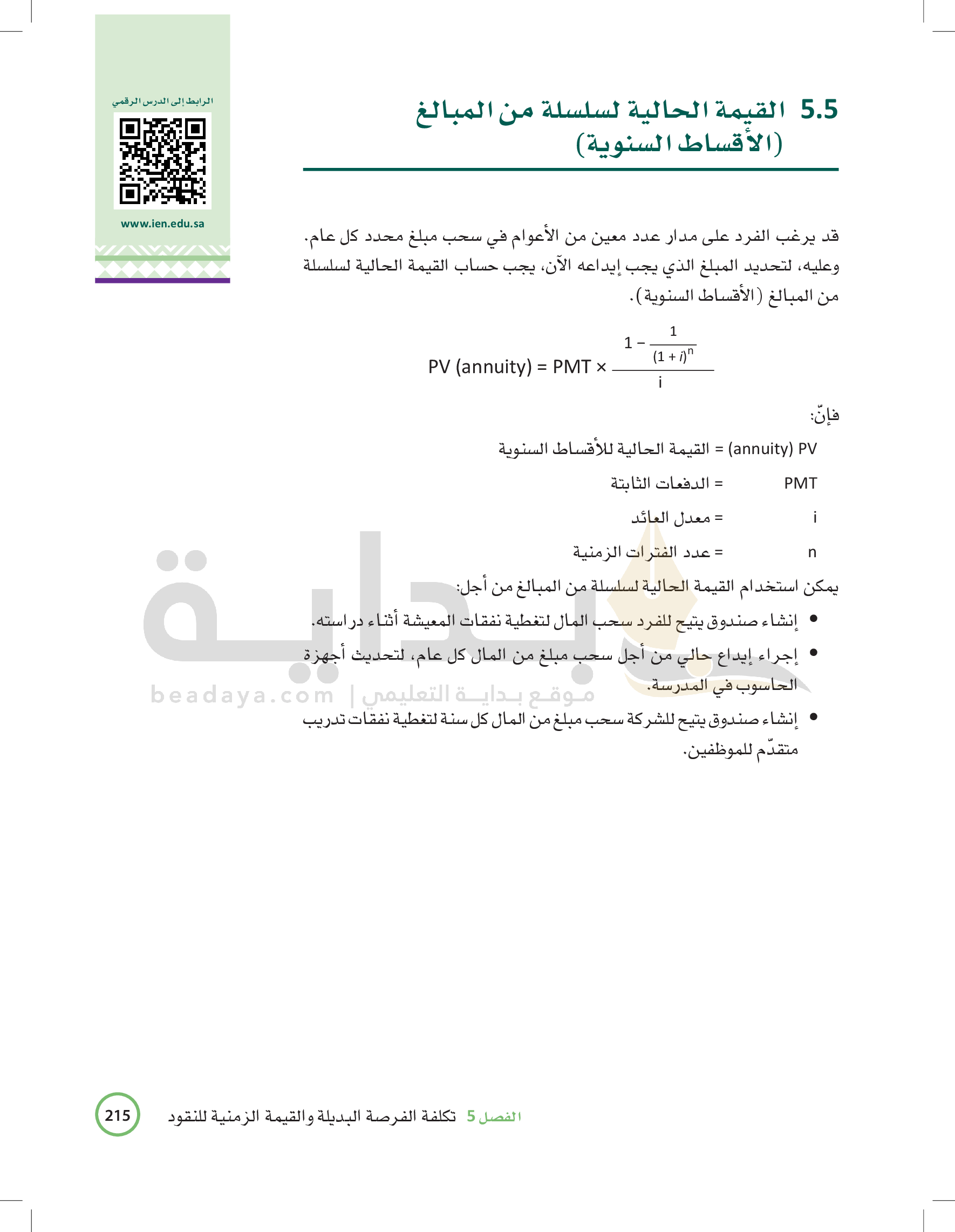 القيمة الحالية لسلسلة من المبالغ (الأقساط السنوية)