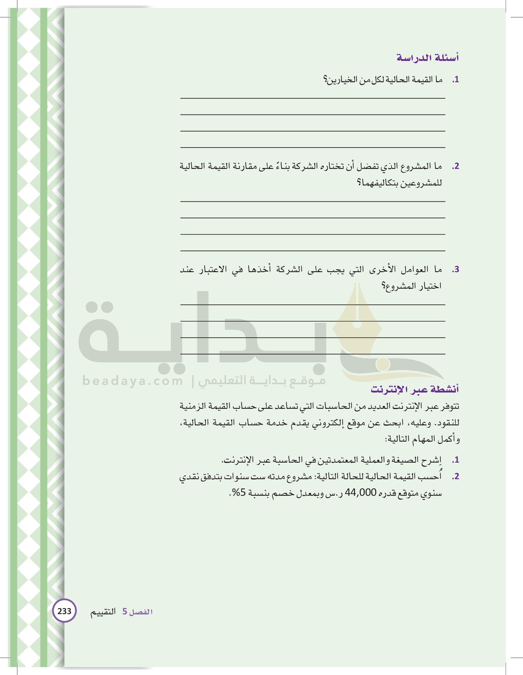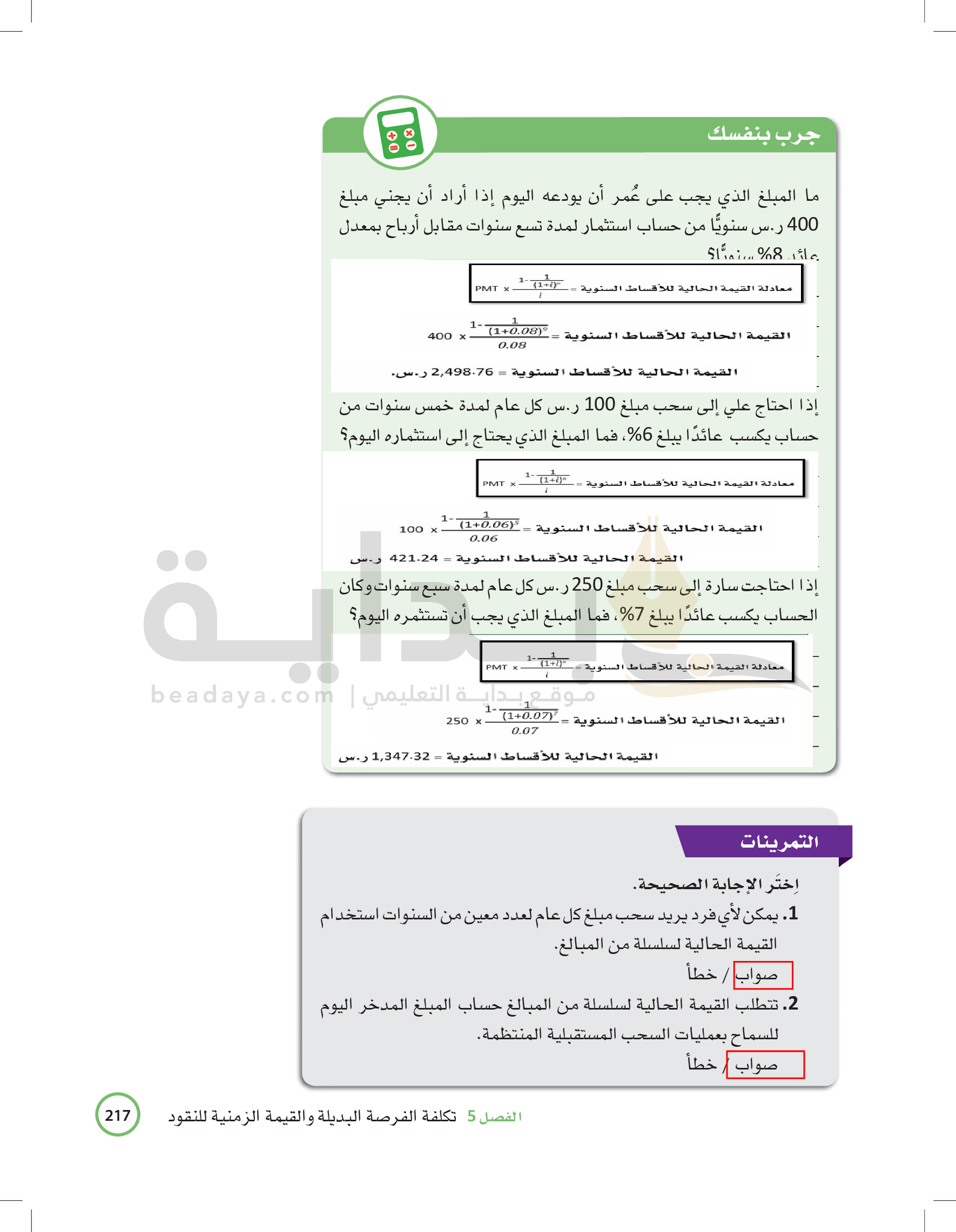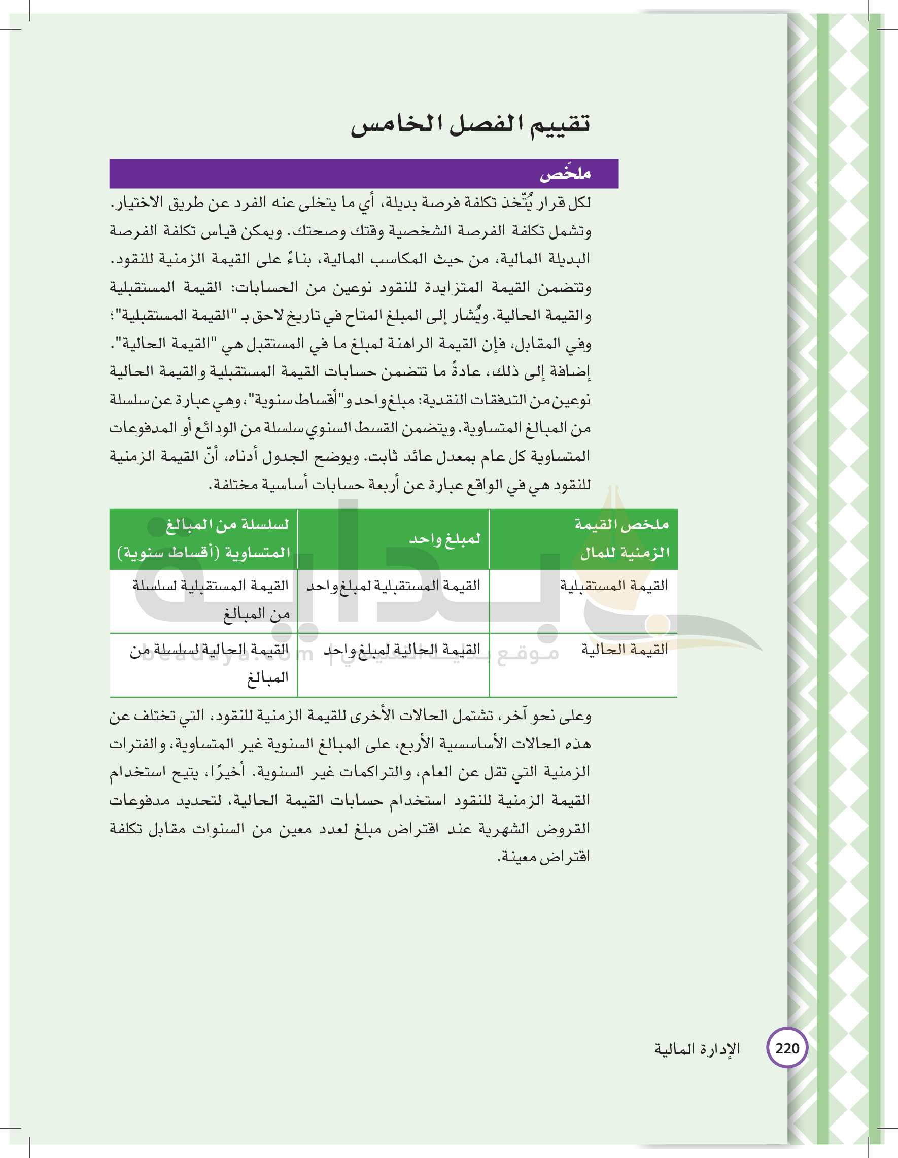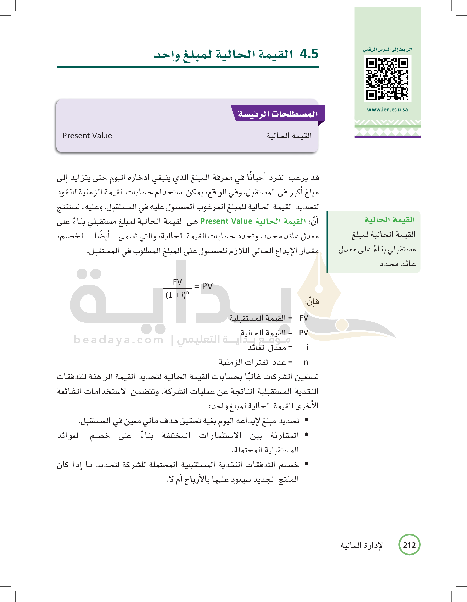 القيمة الحالية لسلسلة من المبالغ (الأقساط السنوية)