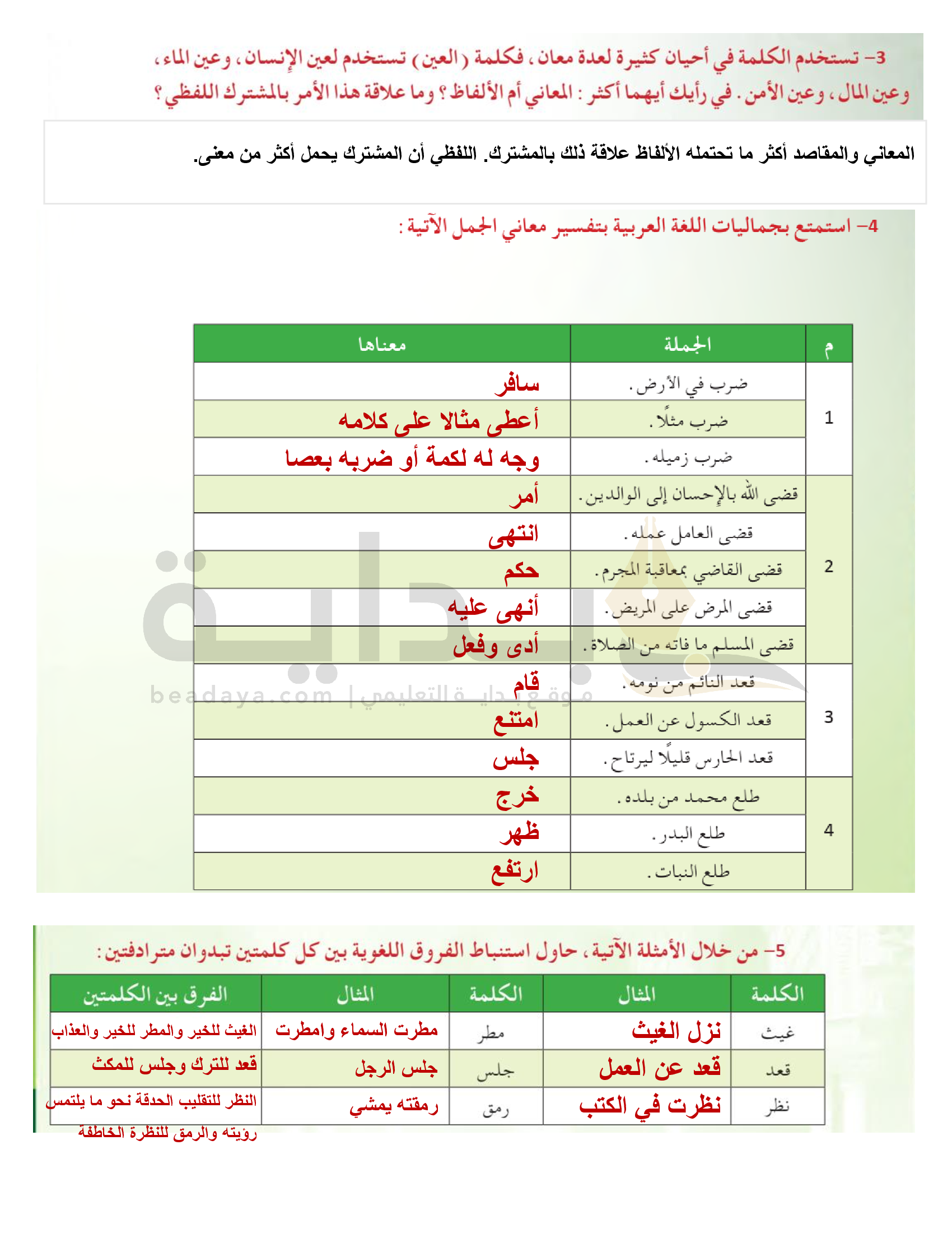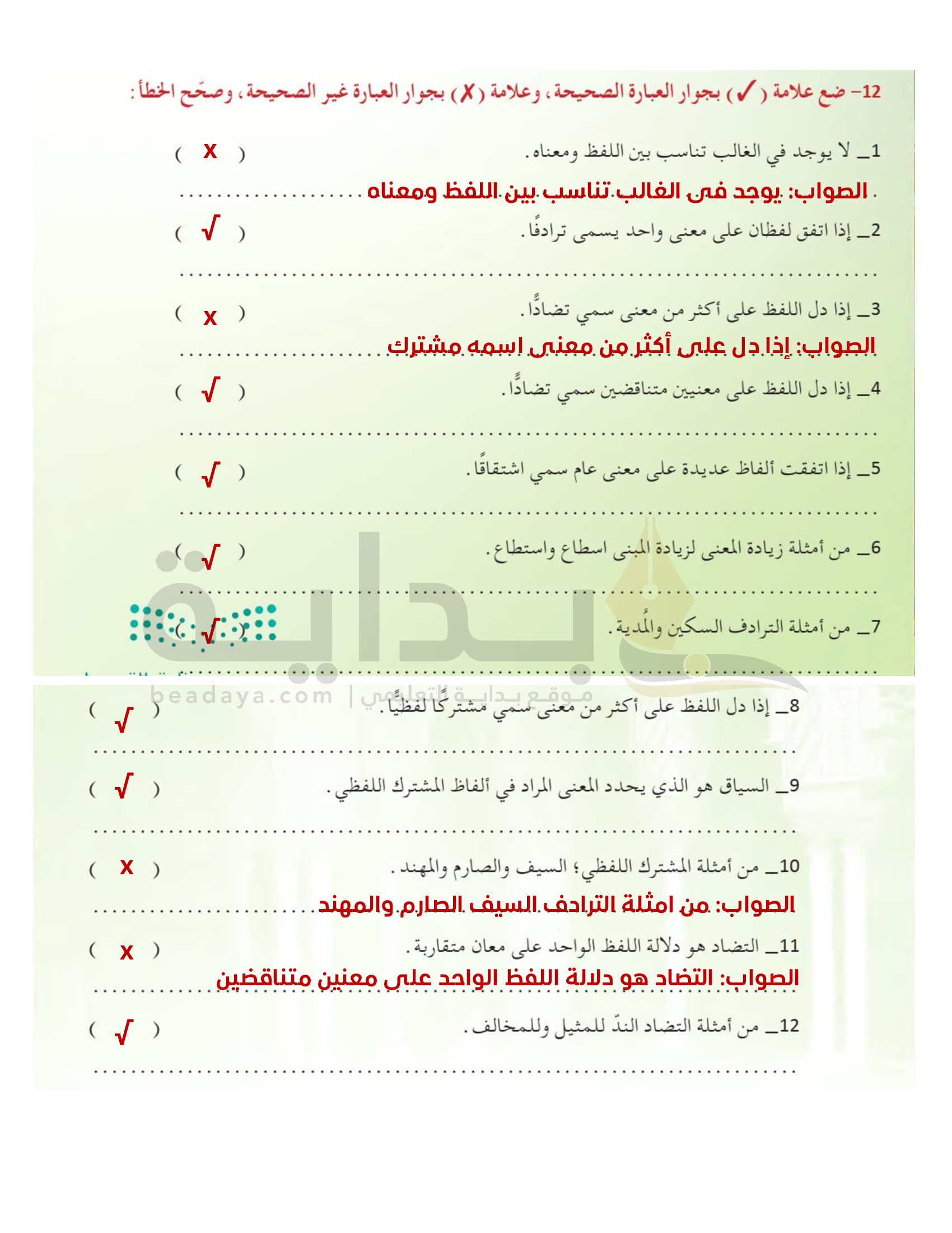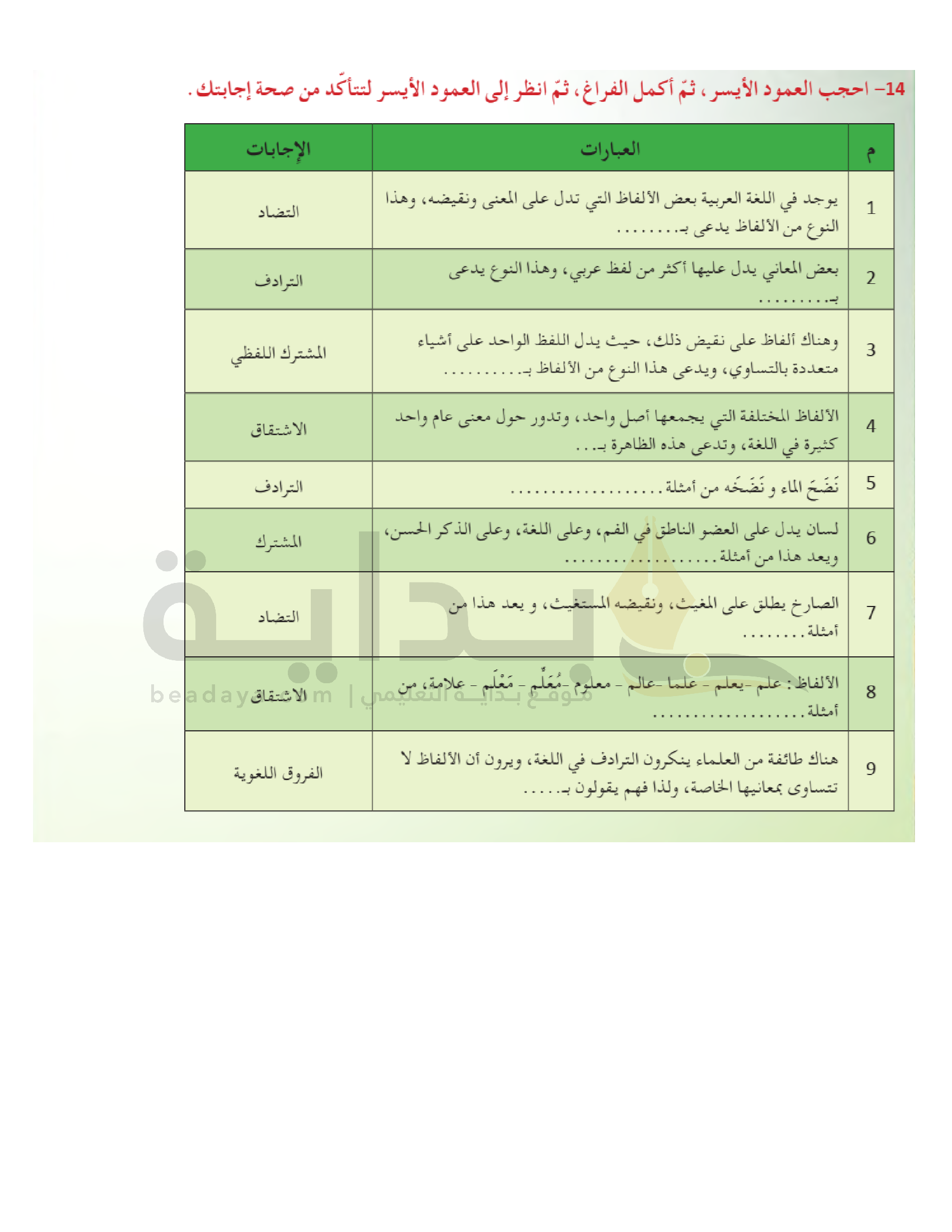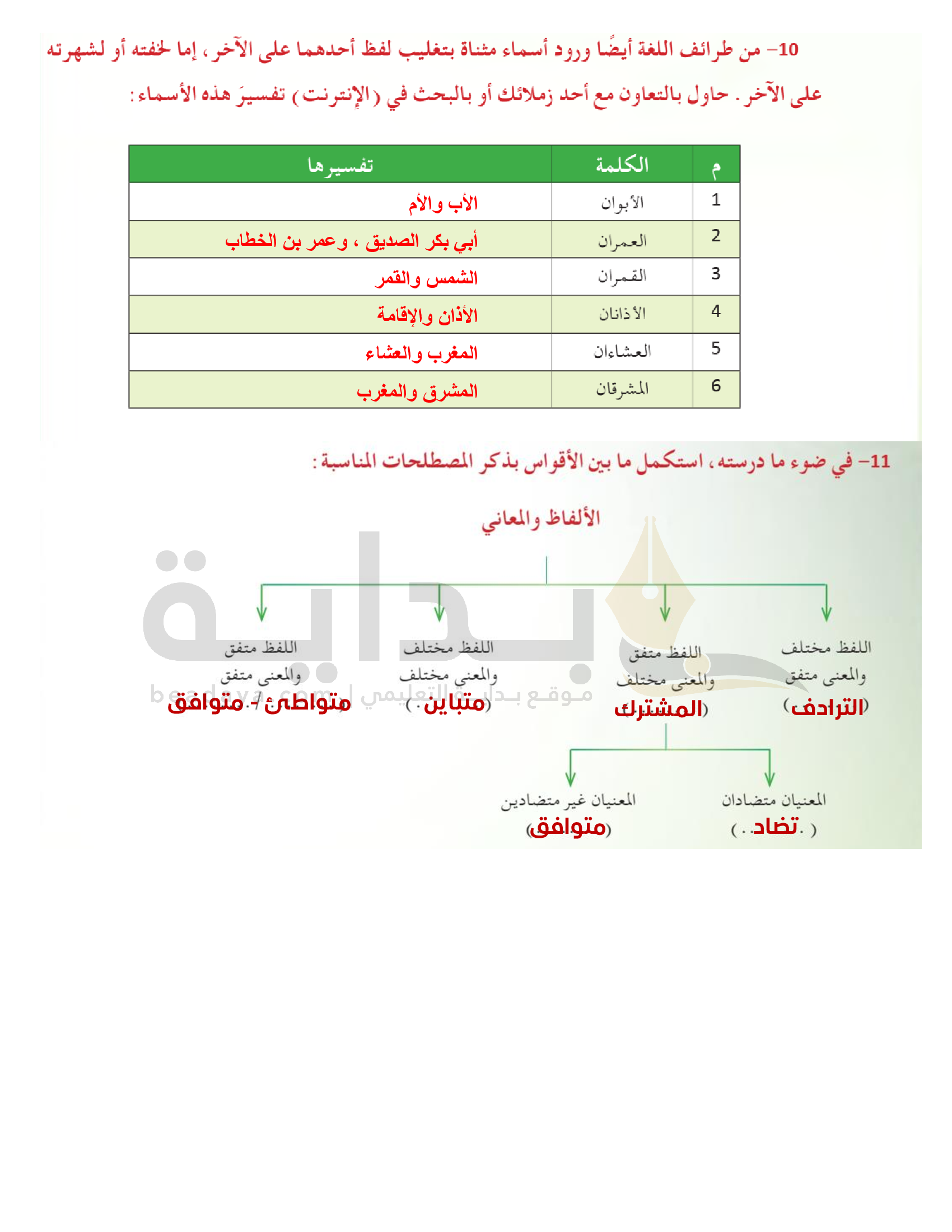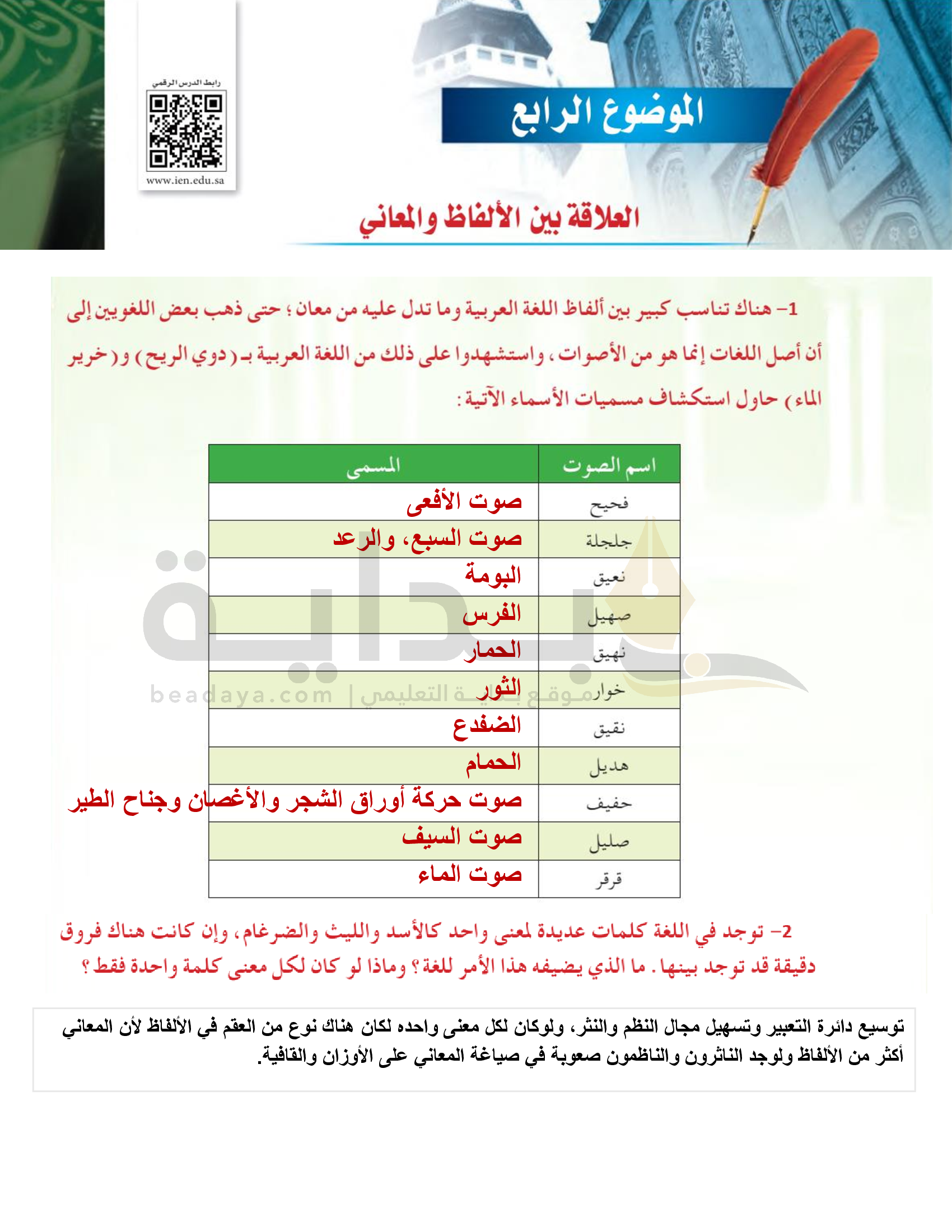 الموضوع الرابع: العلاقة بين الألفاظ والمعاني