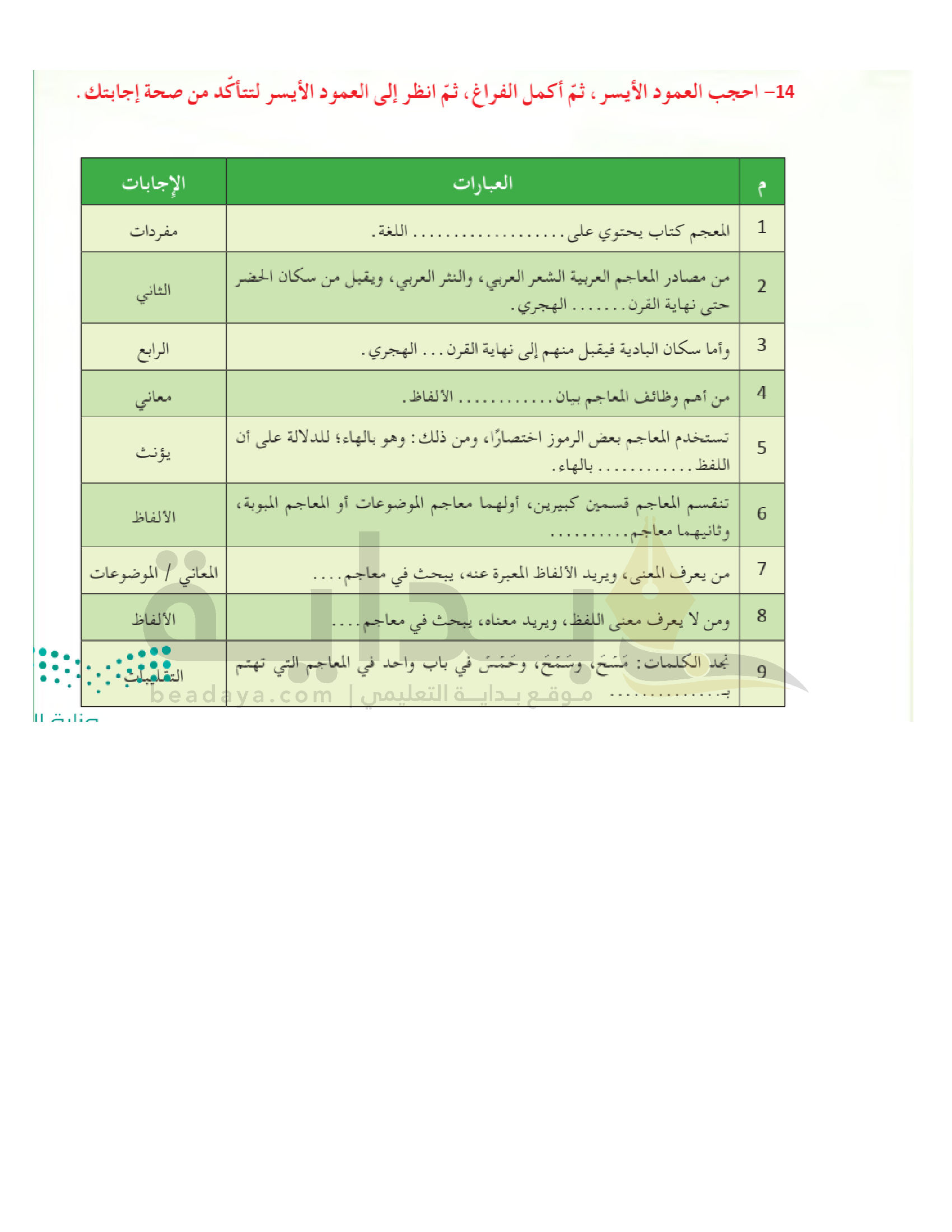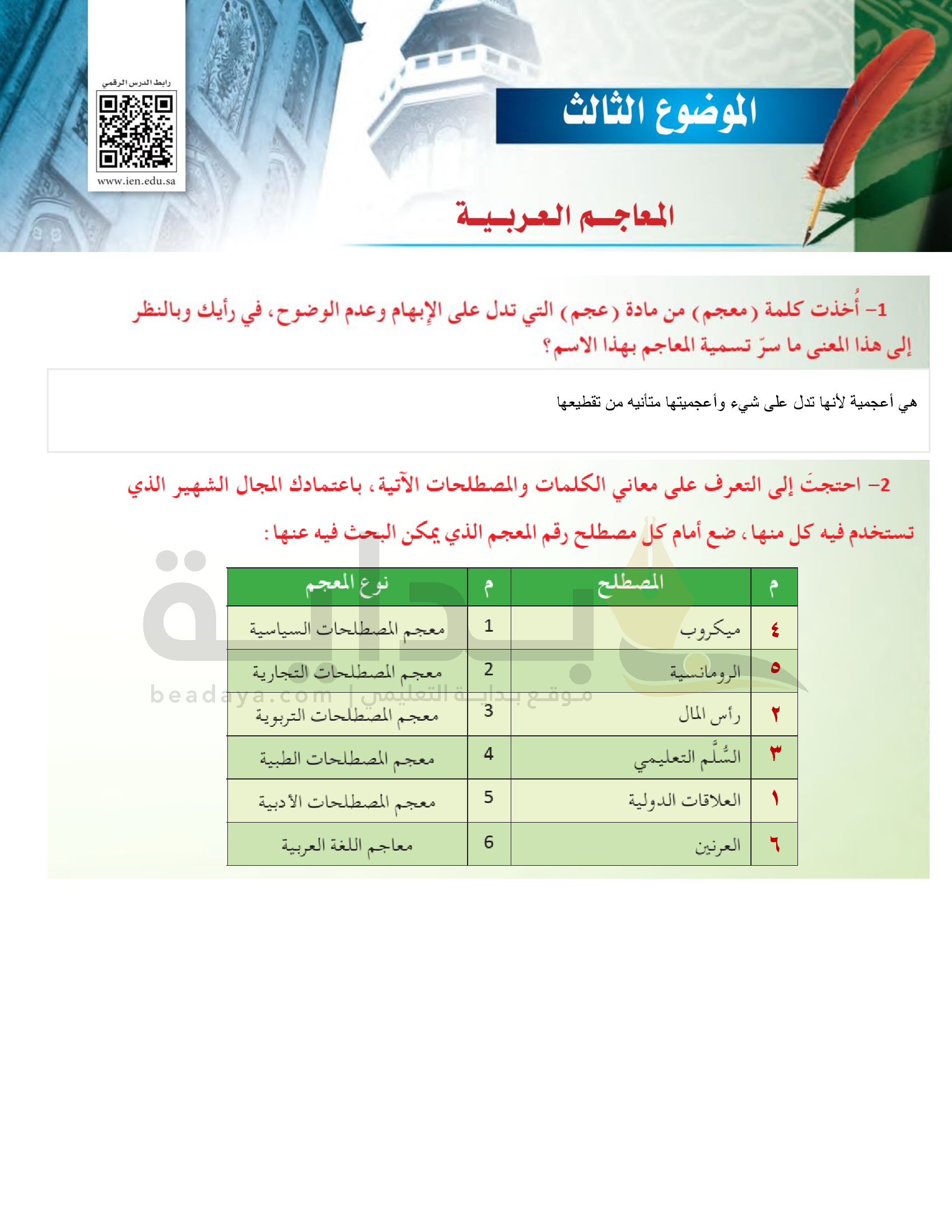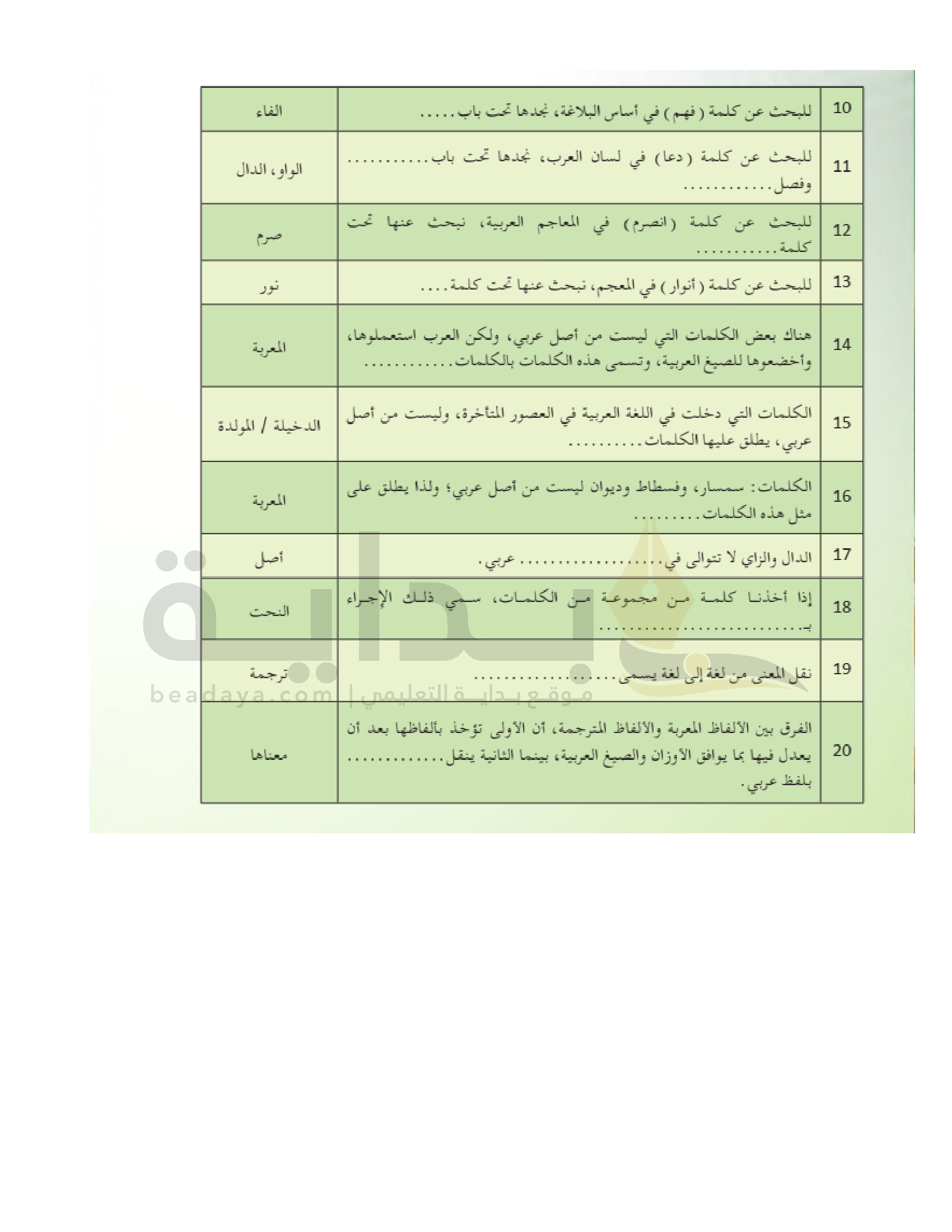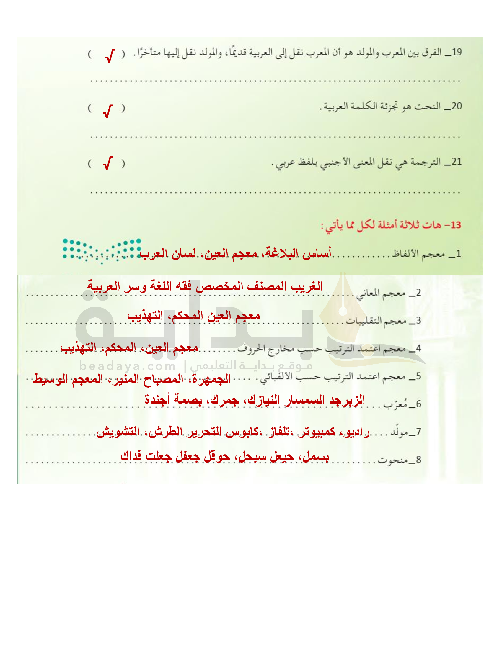 الموضوع الرابع: العلاقة بين الألفاظ والمعاني