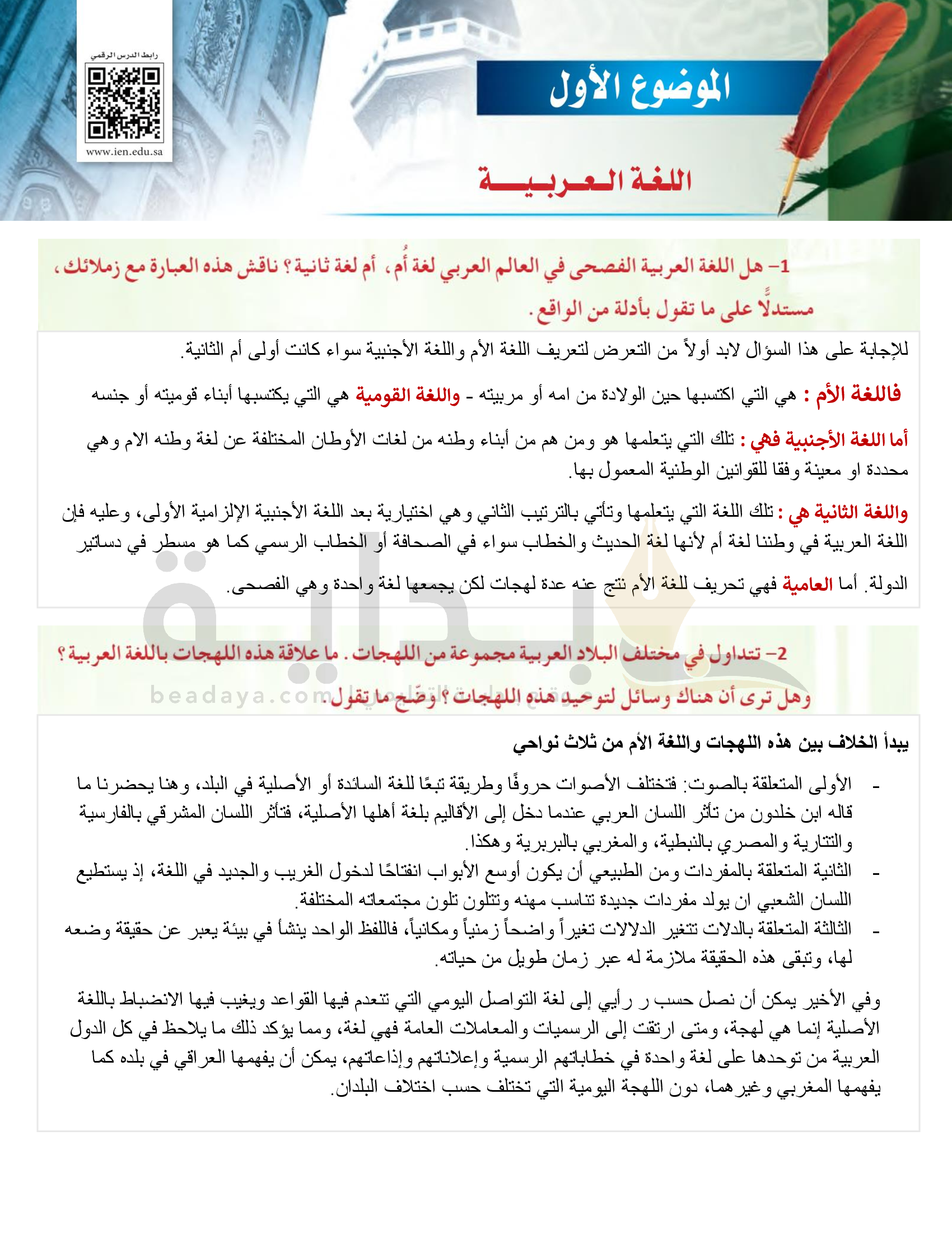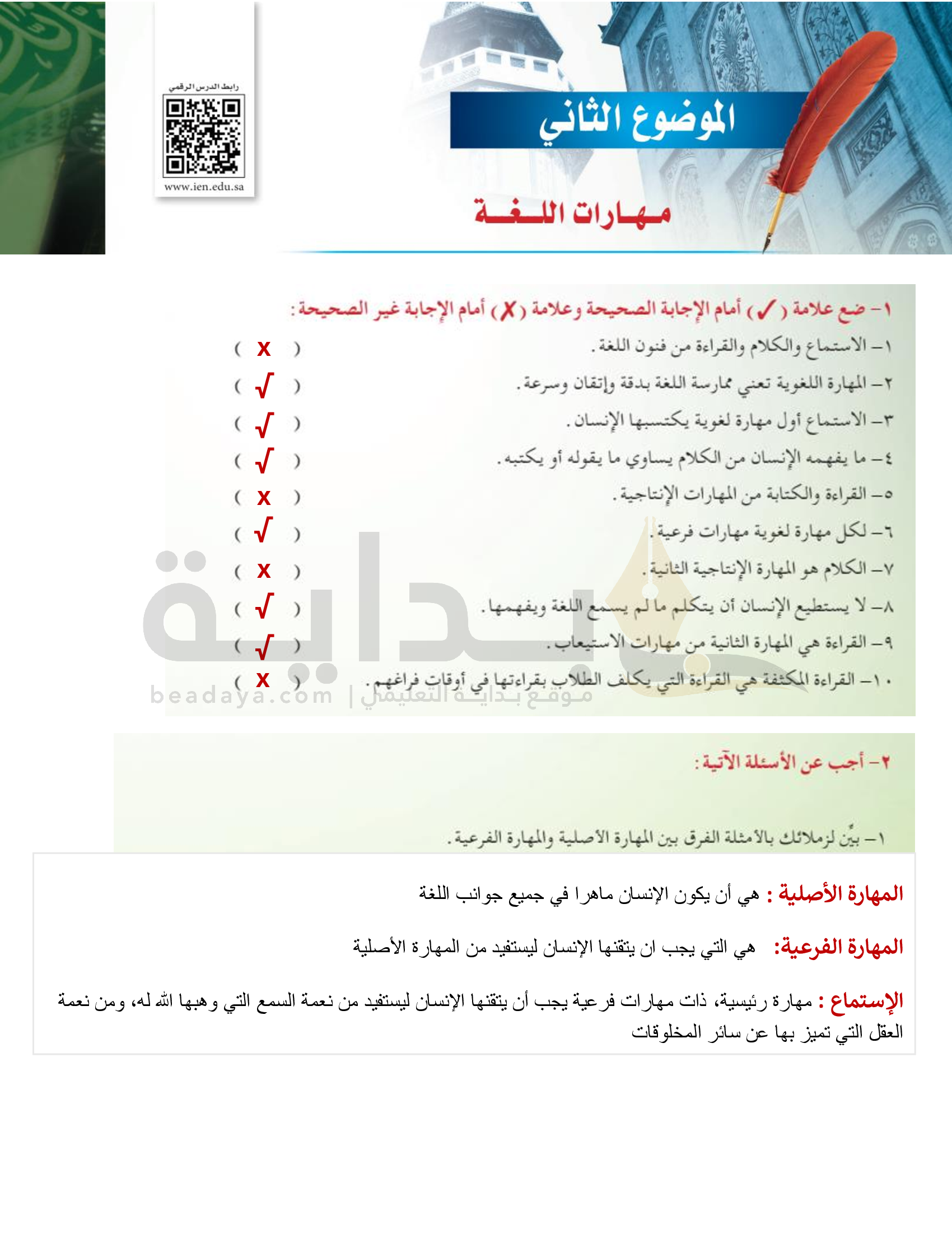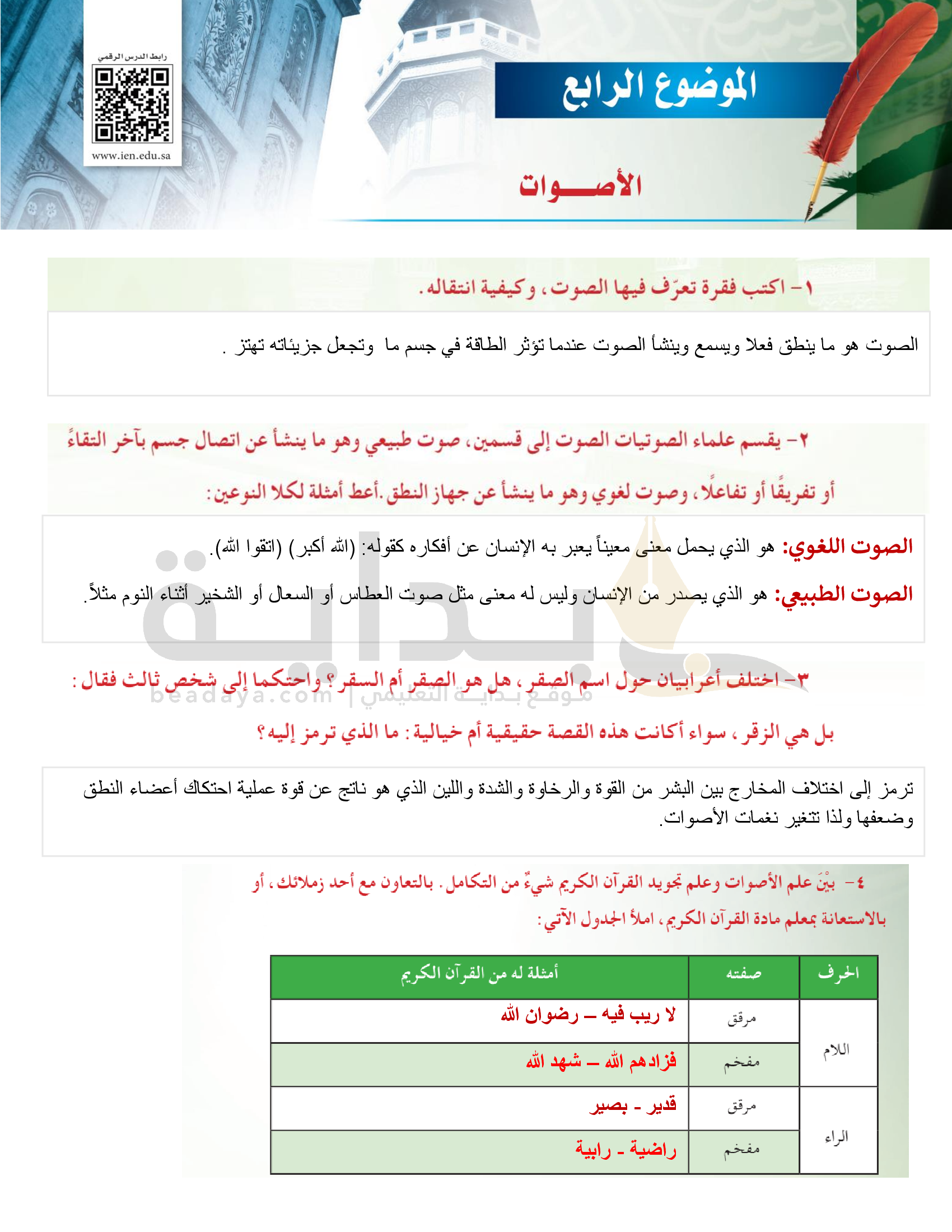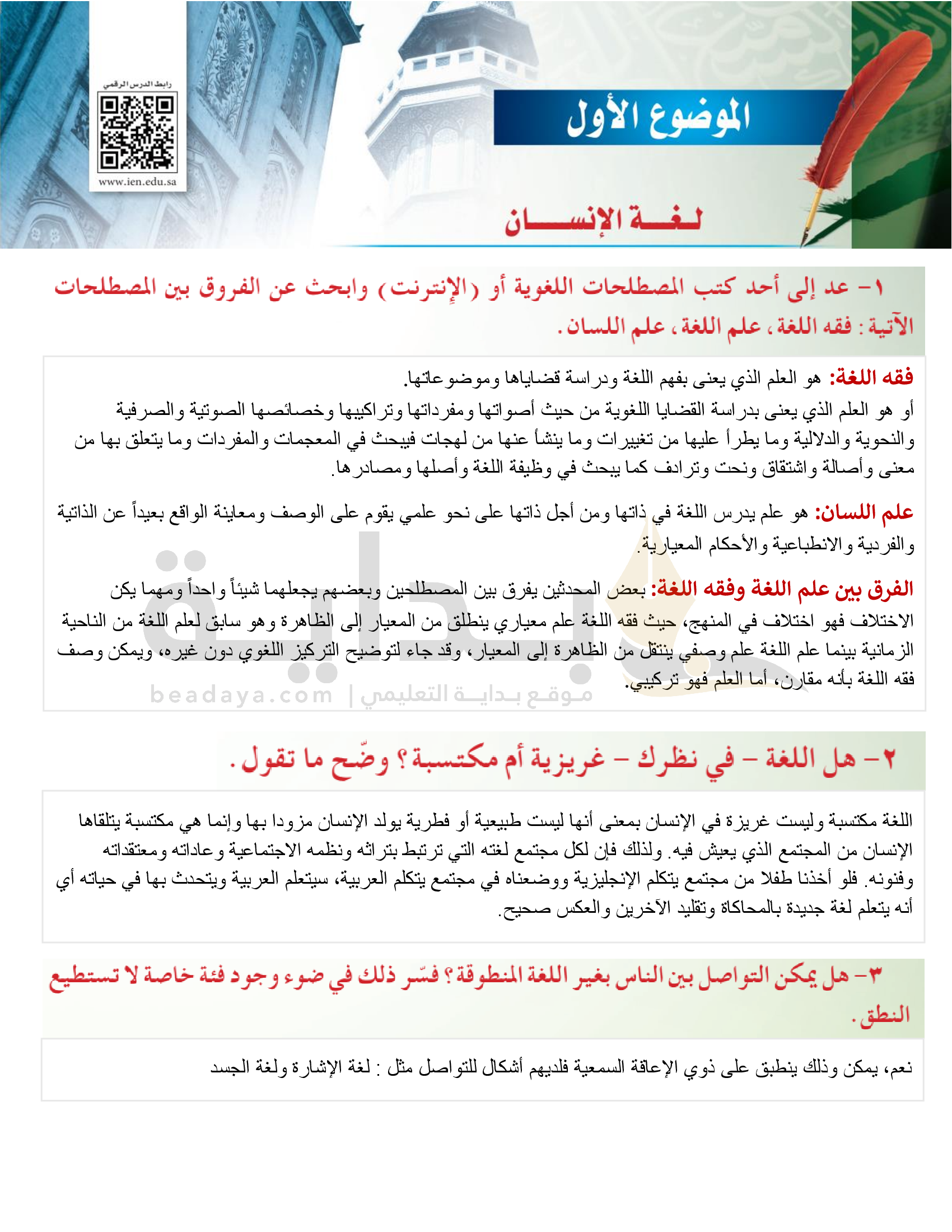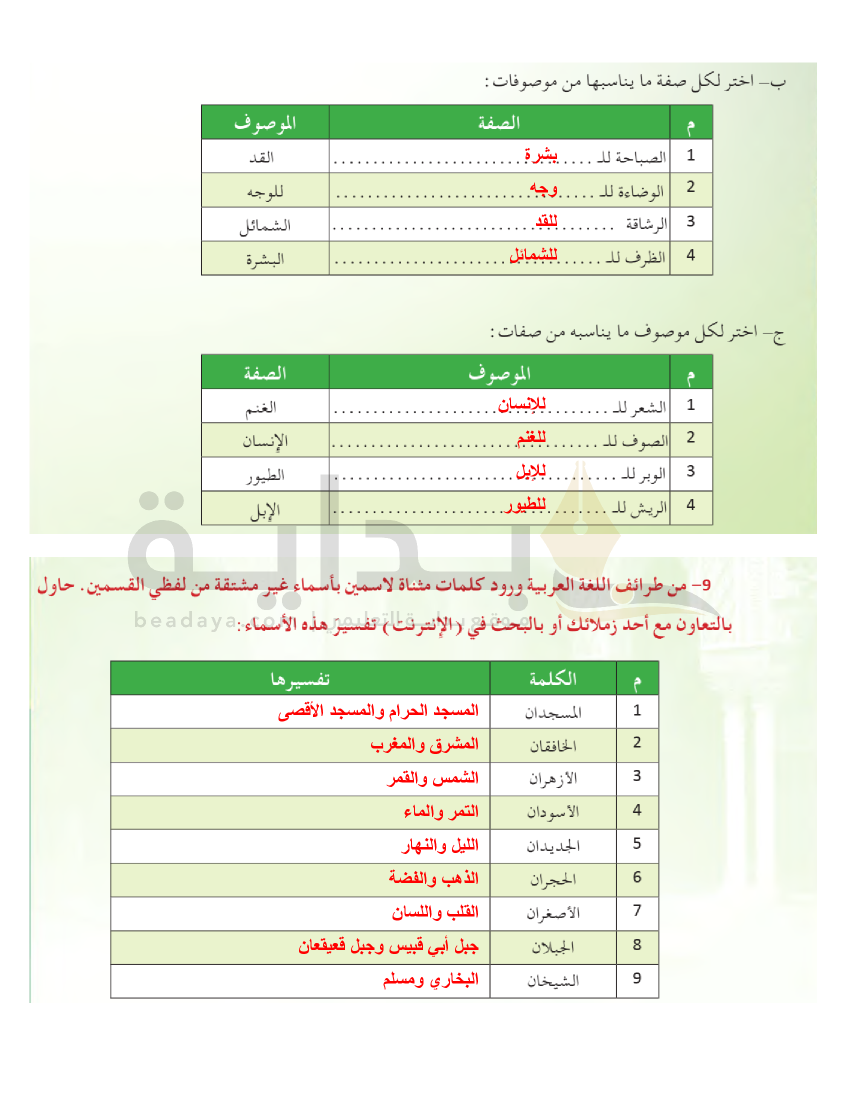 الموضوع الرابع: العلاقة بين الألفاظ والمعاني