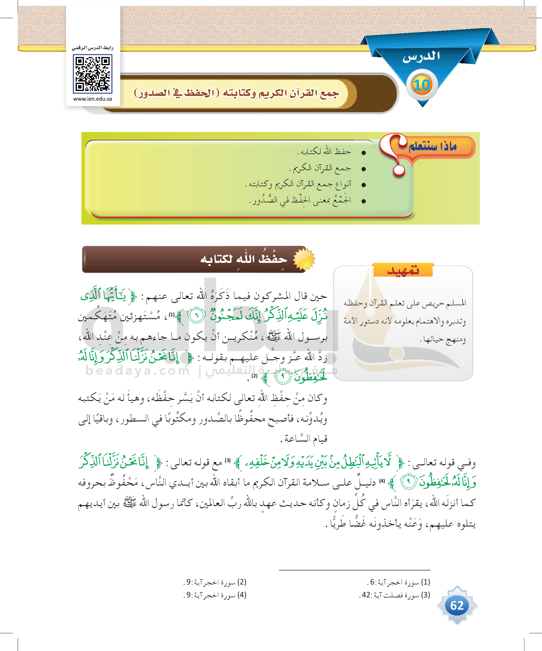 جمع القرآن الكريم وكتابته (الحفظ في الصدر)