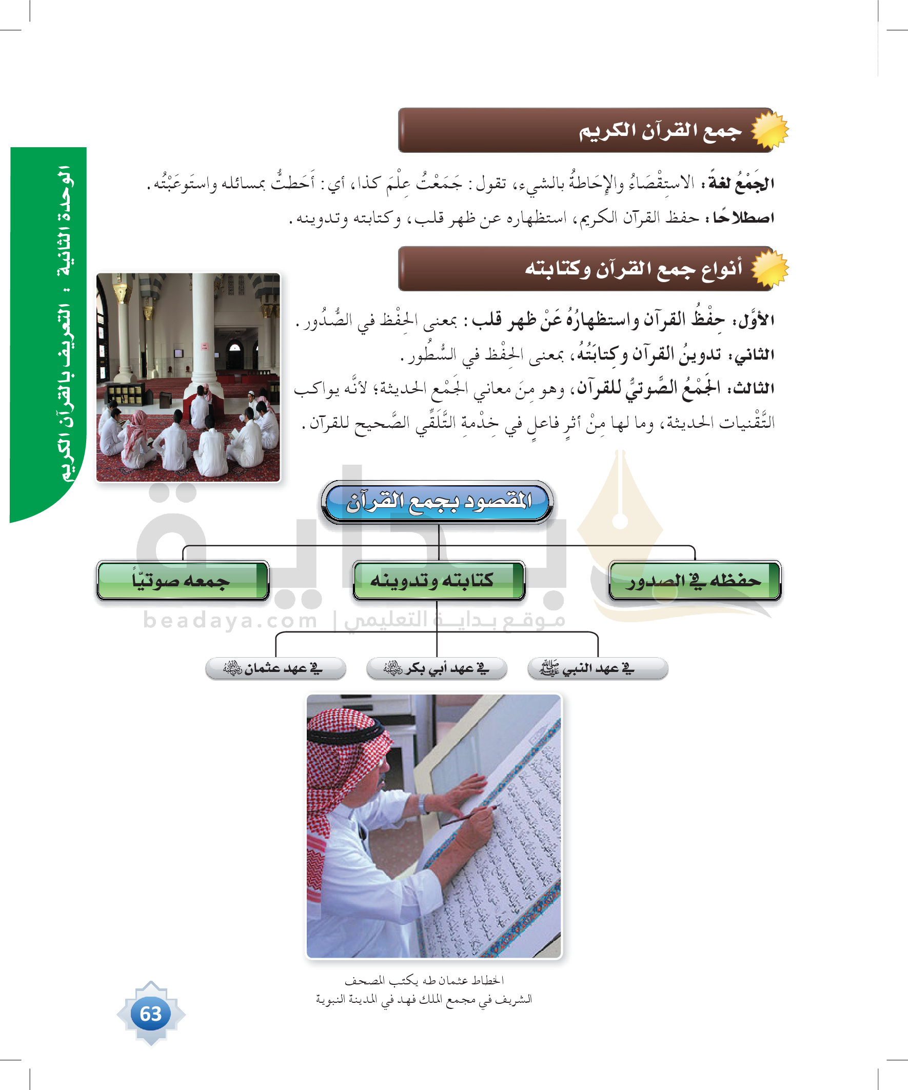 جمع القرآن الكريم وكتابته (الحفظ في السطور)