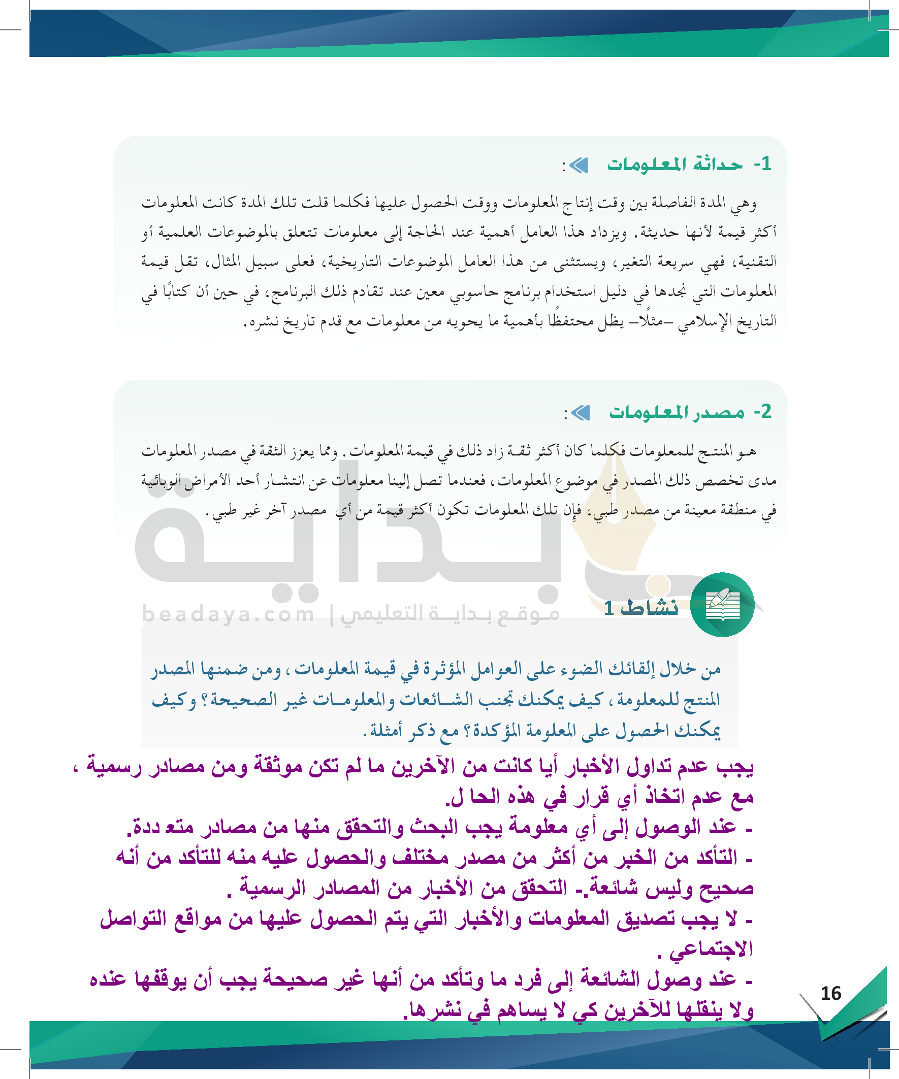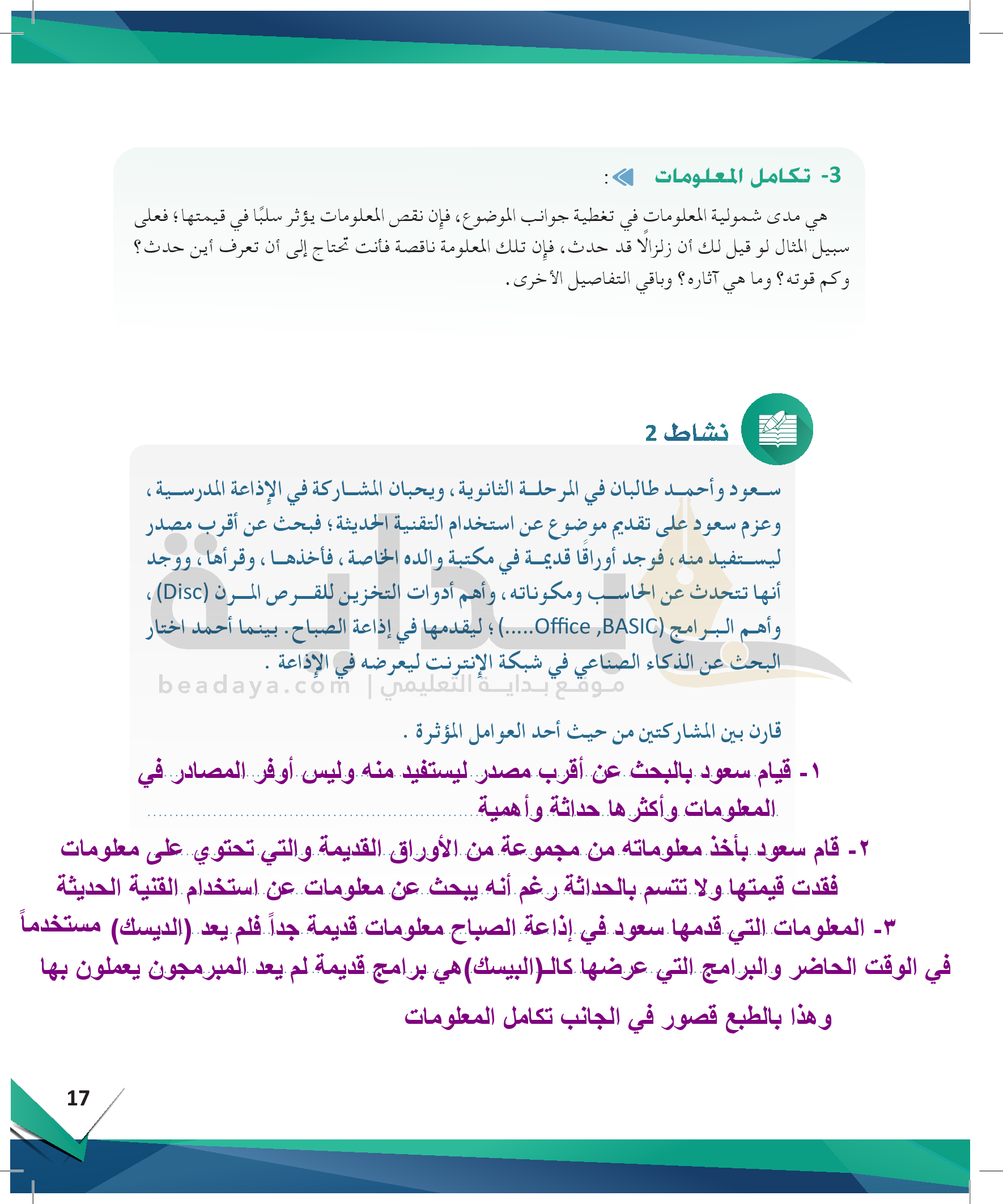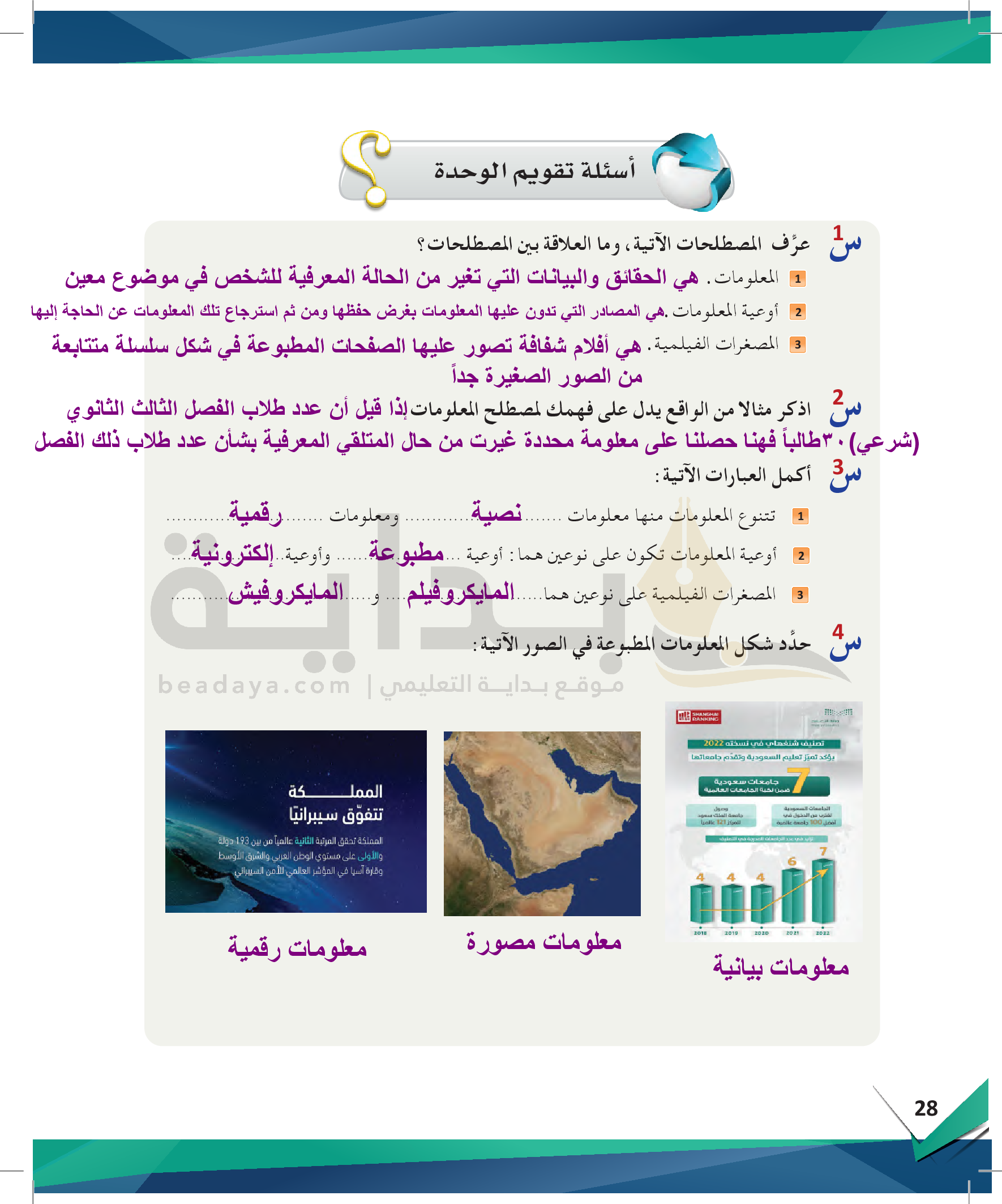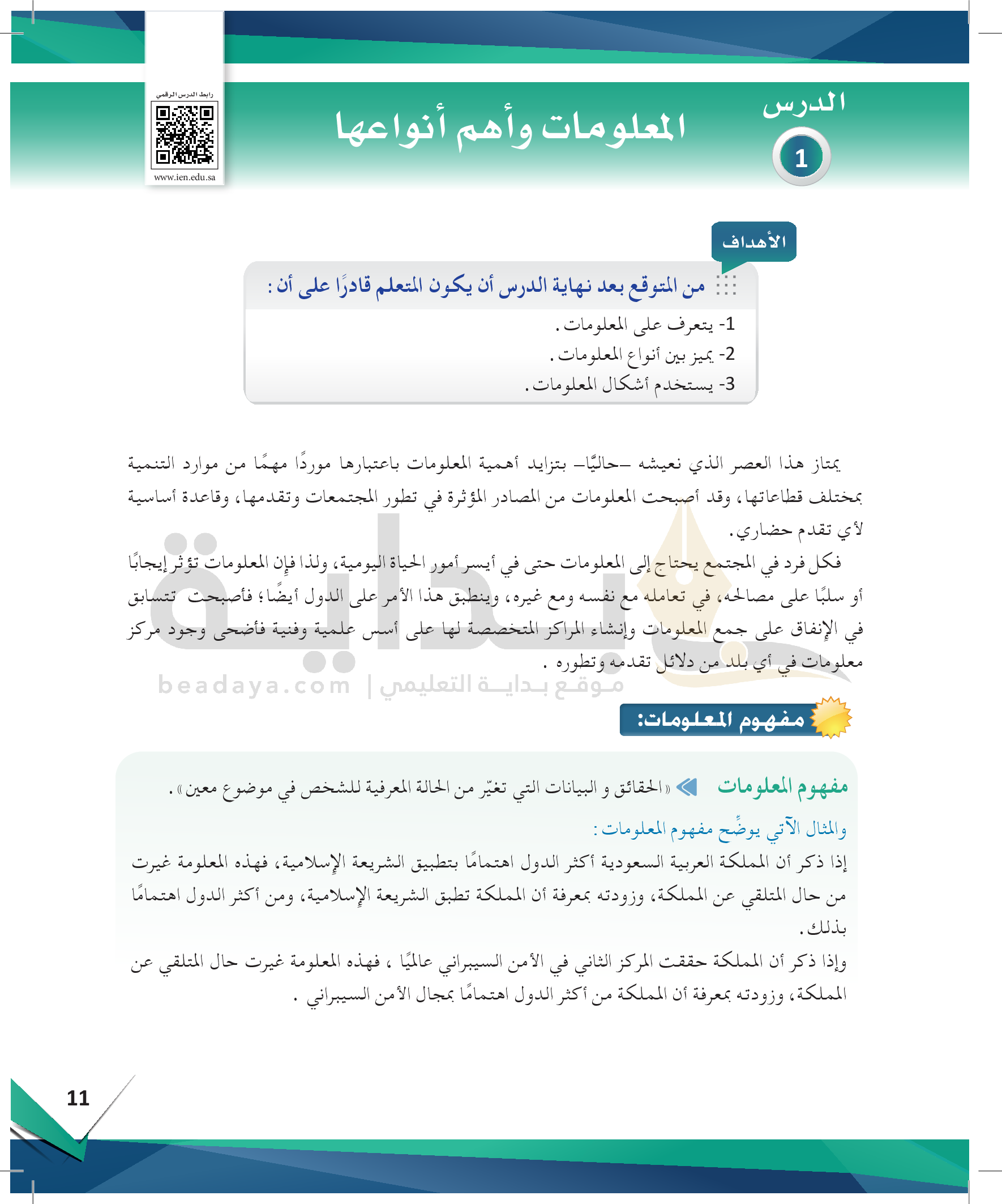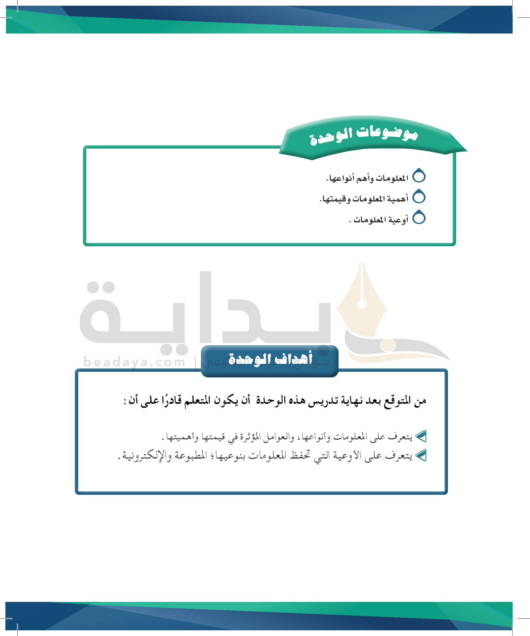 الوحدة 1 - مهارة التعرف على المعلومات