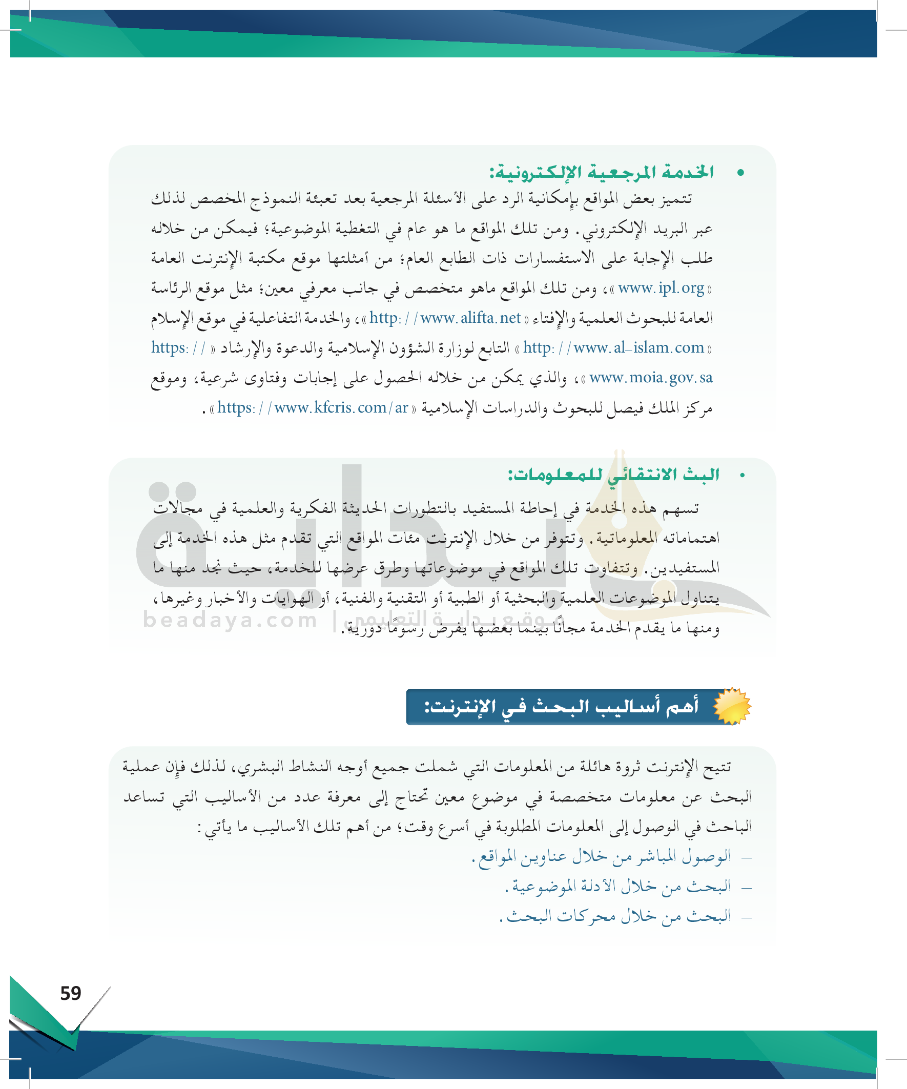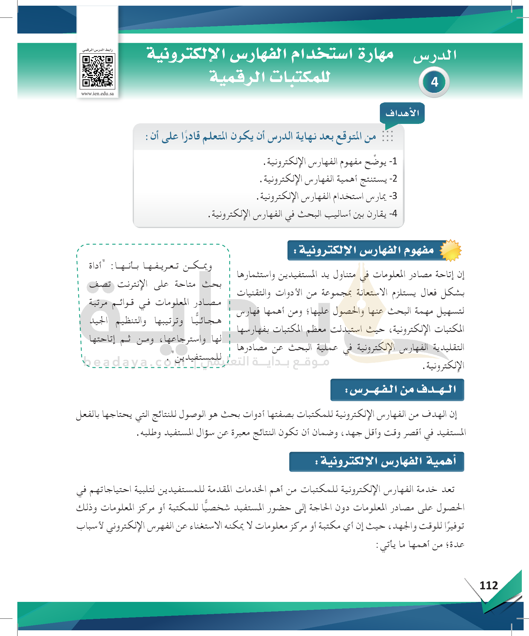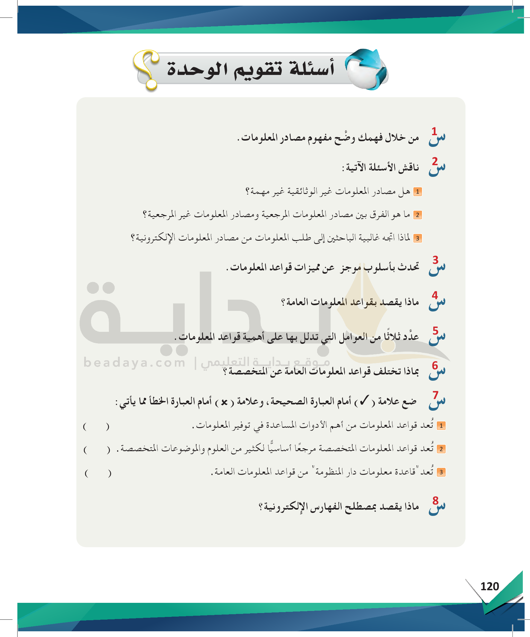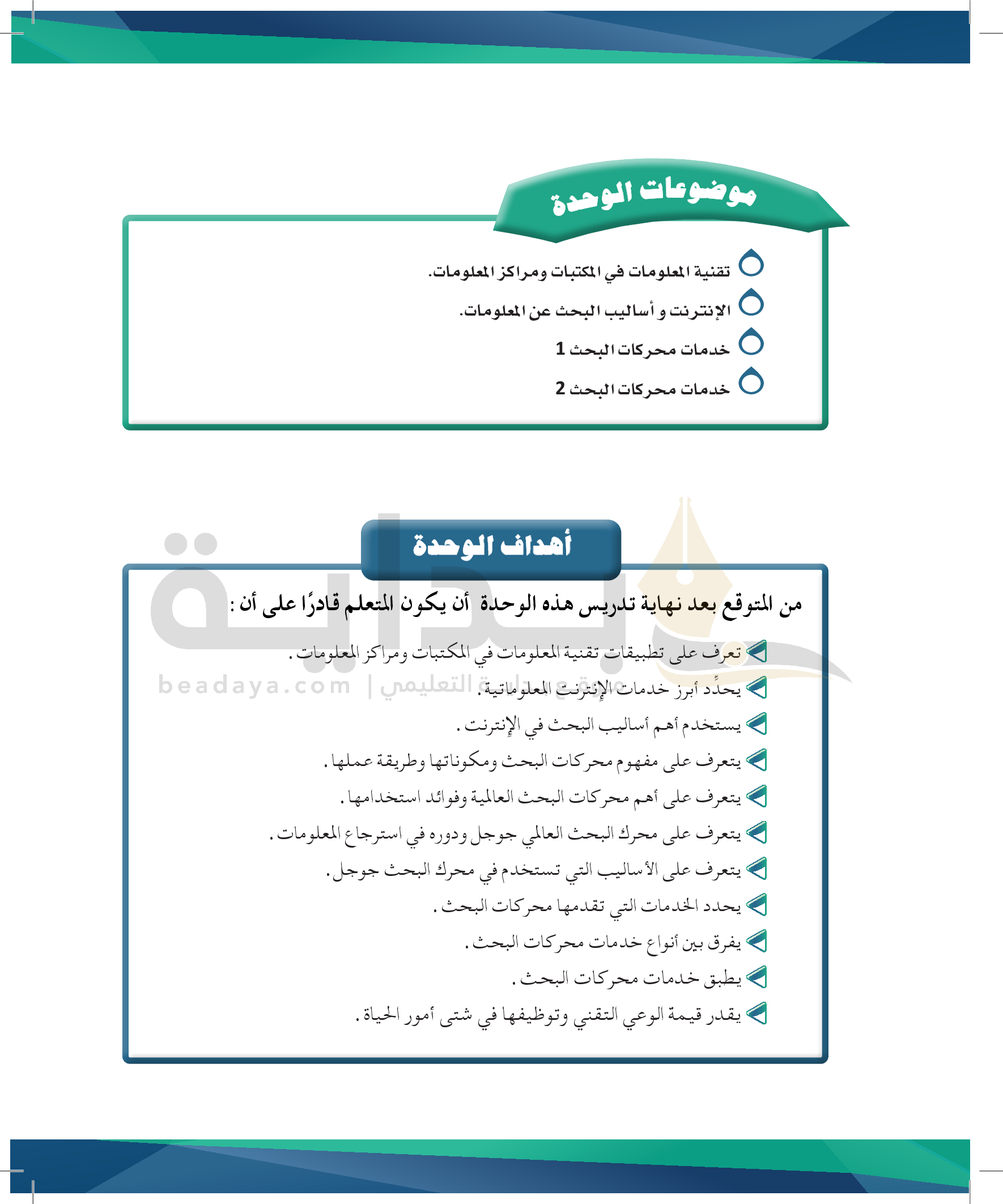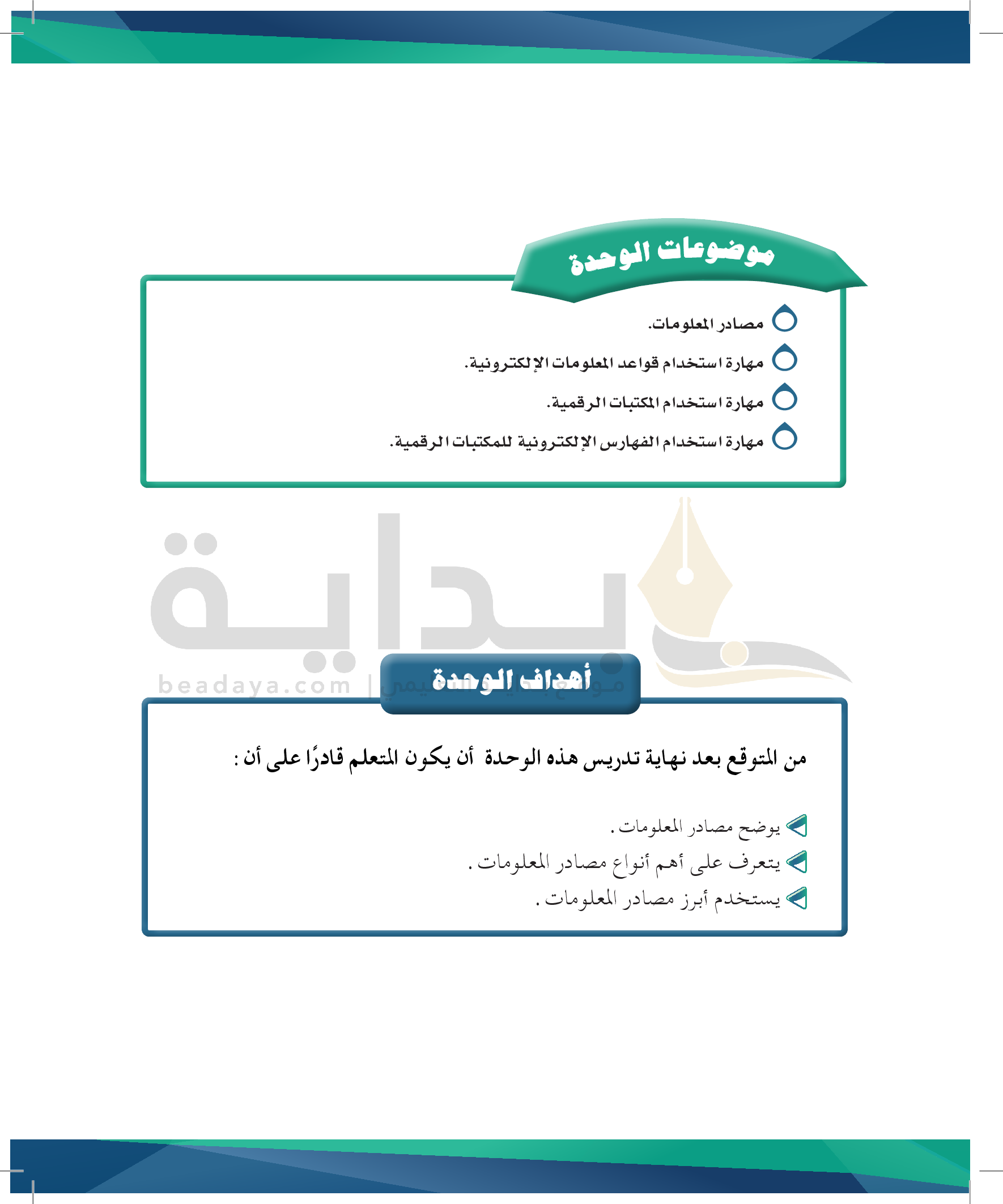 الوحدة 4 - مصادر المعلومات ومهارات استخدامها