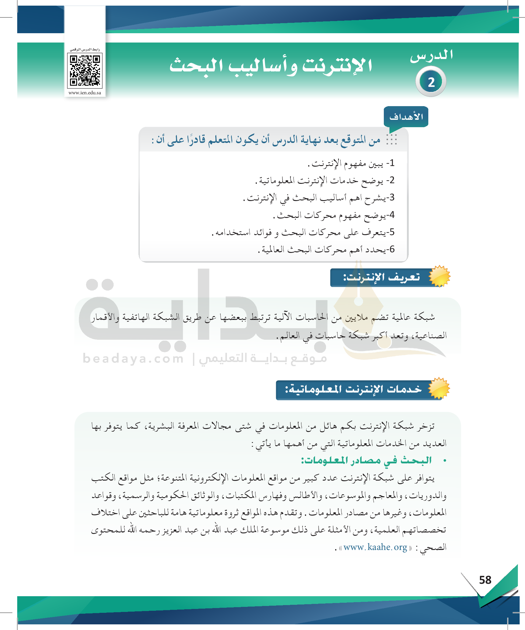 الوحدة 3 - الإنترنت ومهارات استخدام محركات البحث