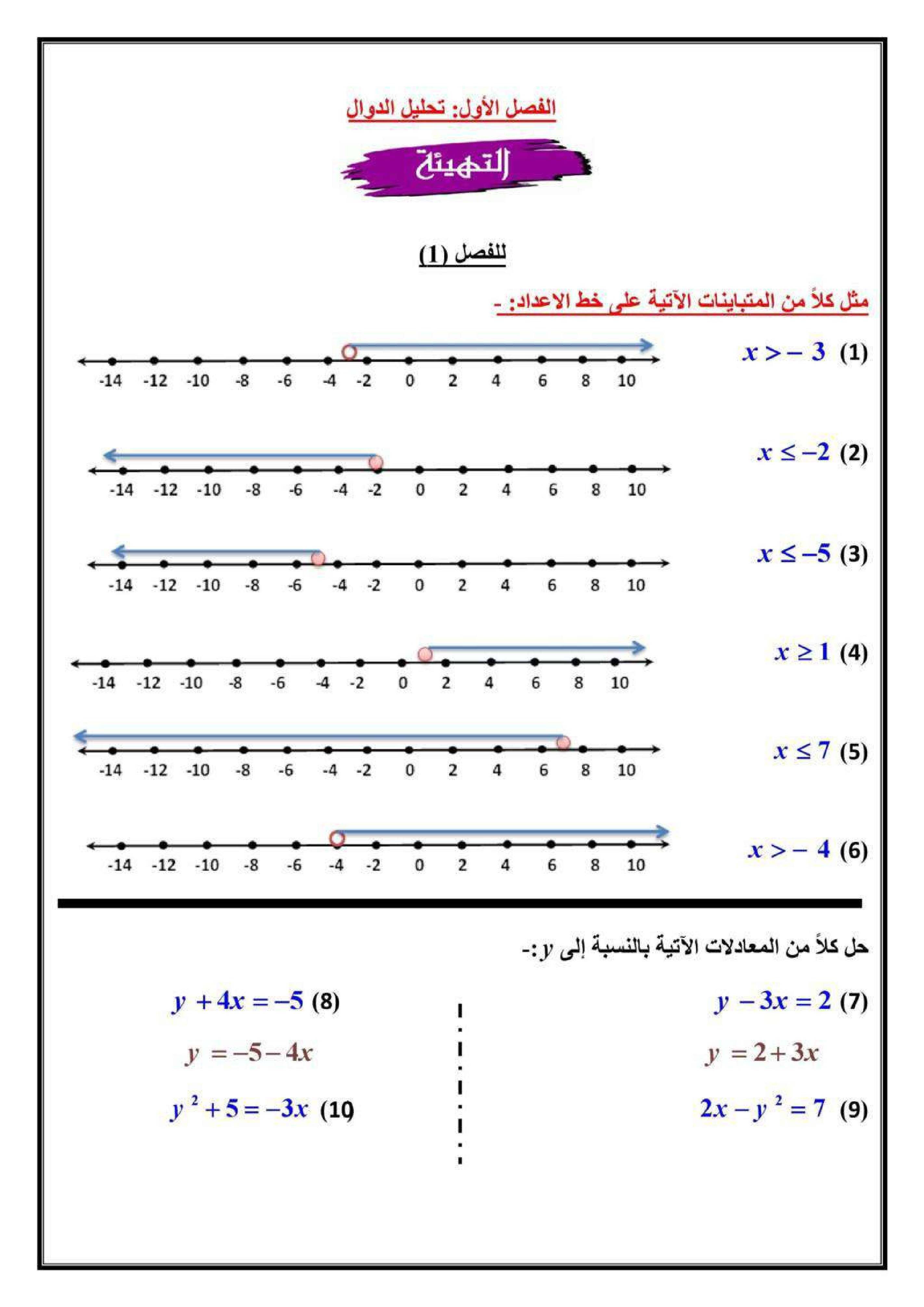 الفصل 1 - تحليل التمثيلات البيانية للدوال والعلاقات