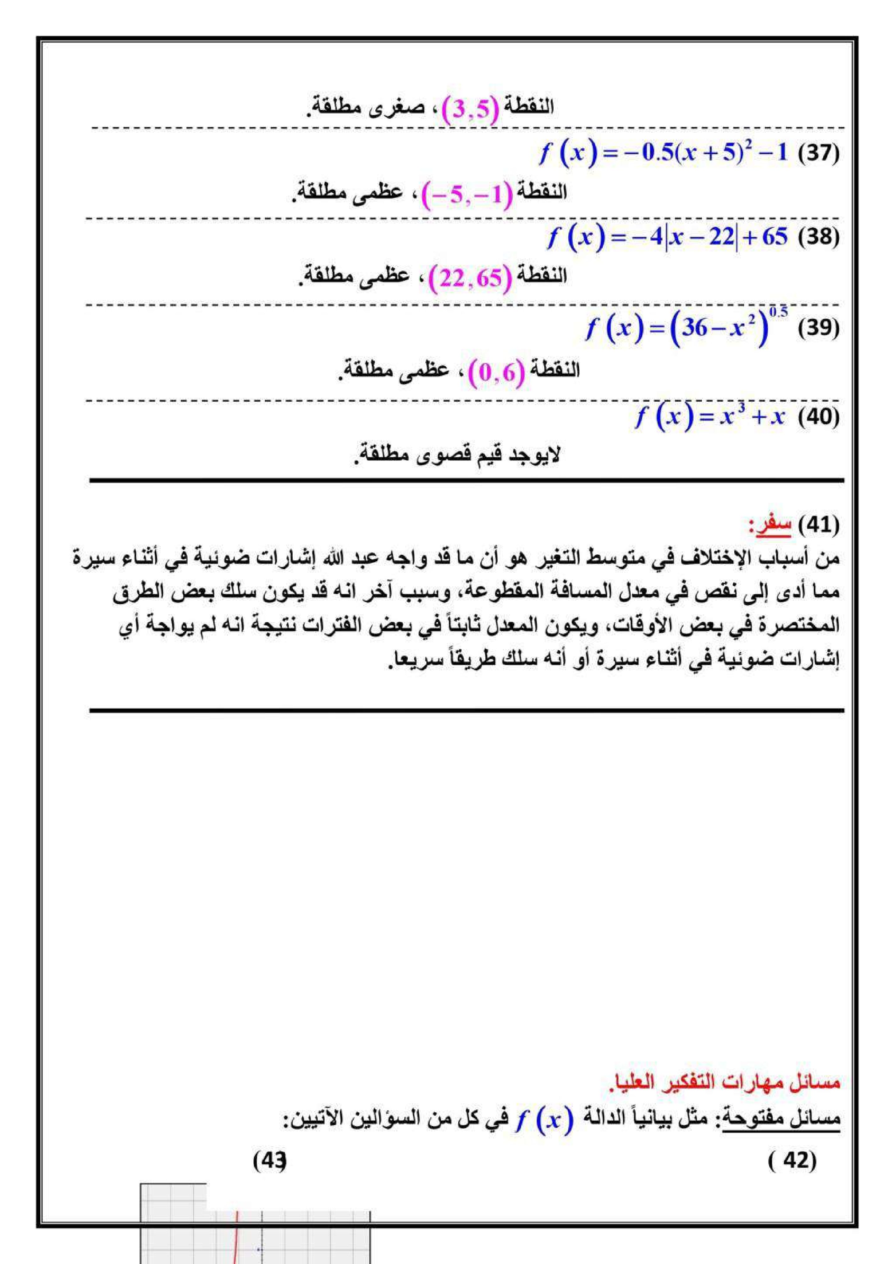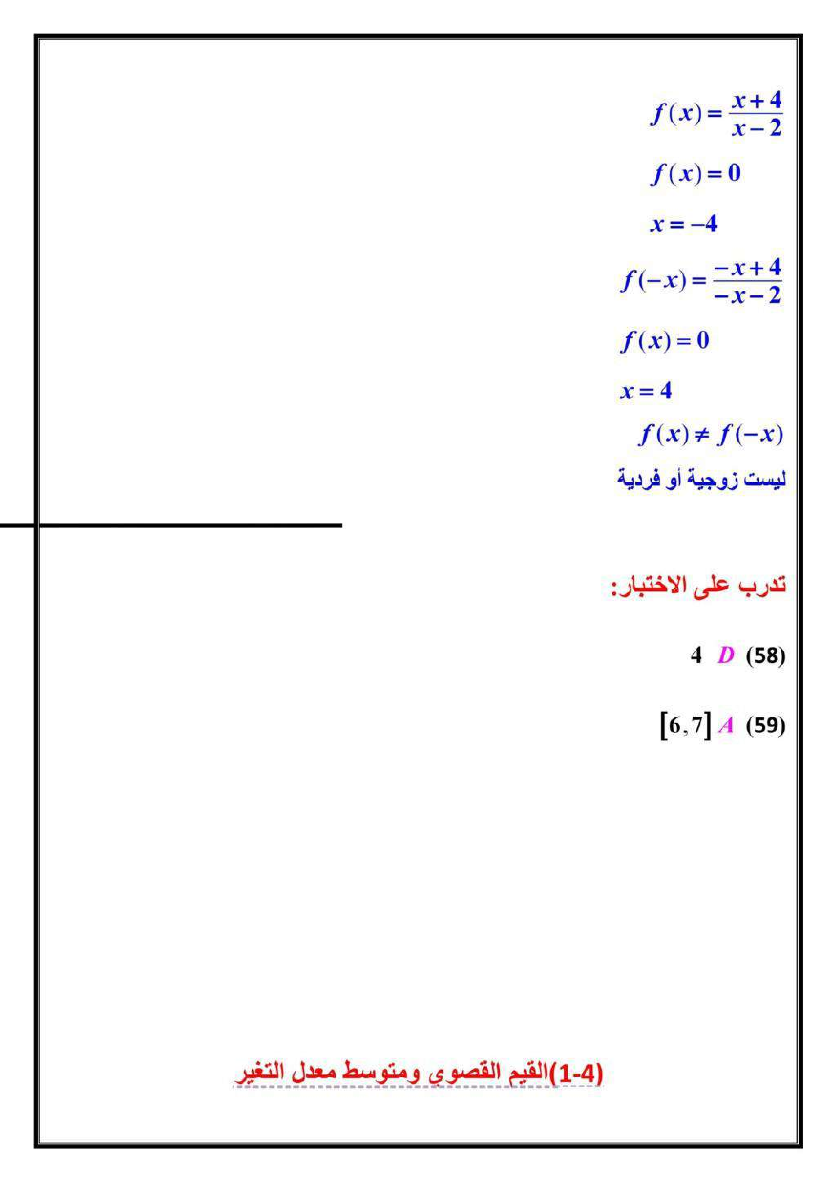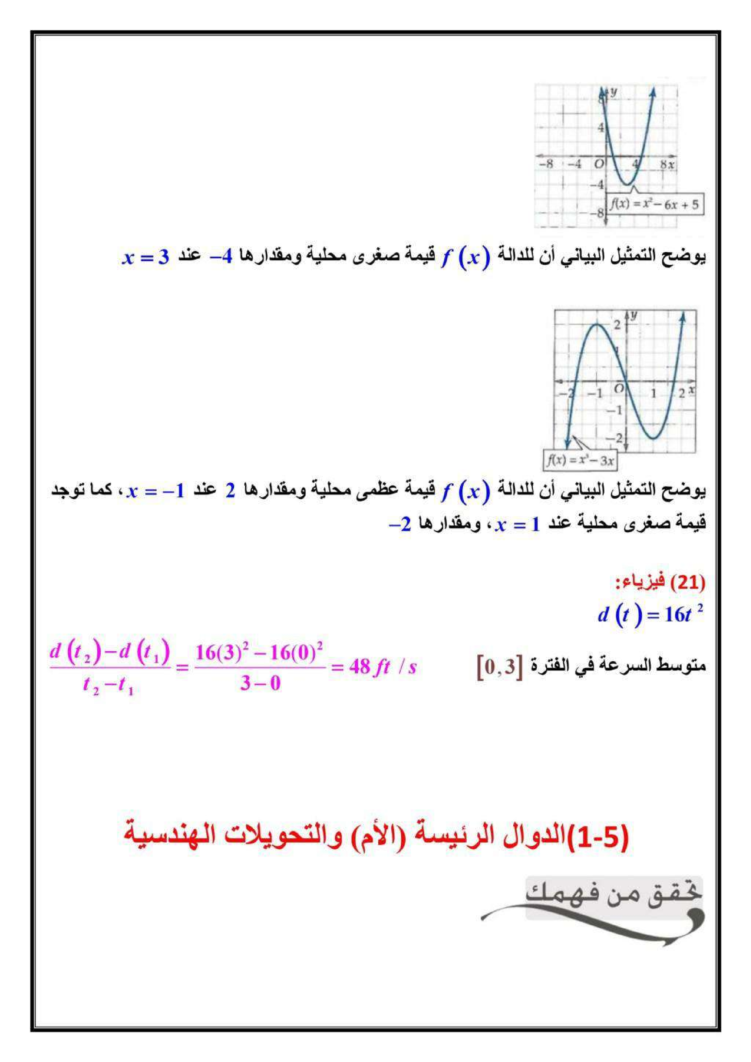 الفصل 1 - القيم القصوى ومتوسط معدل التغير