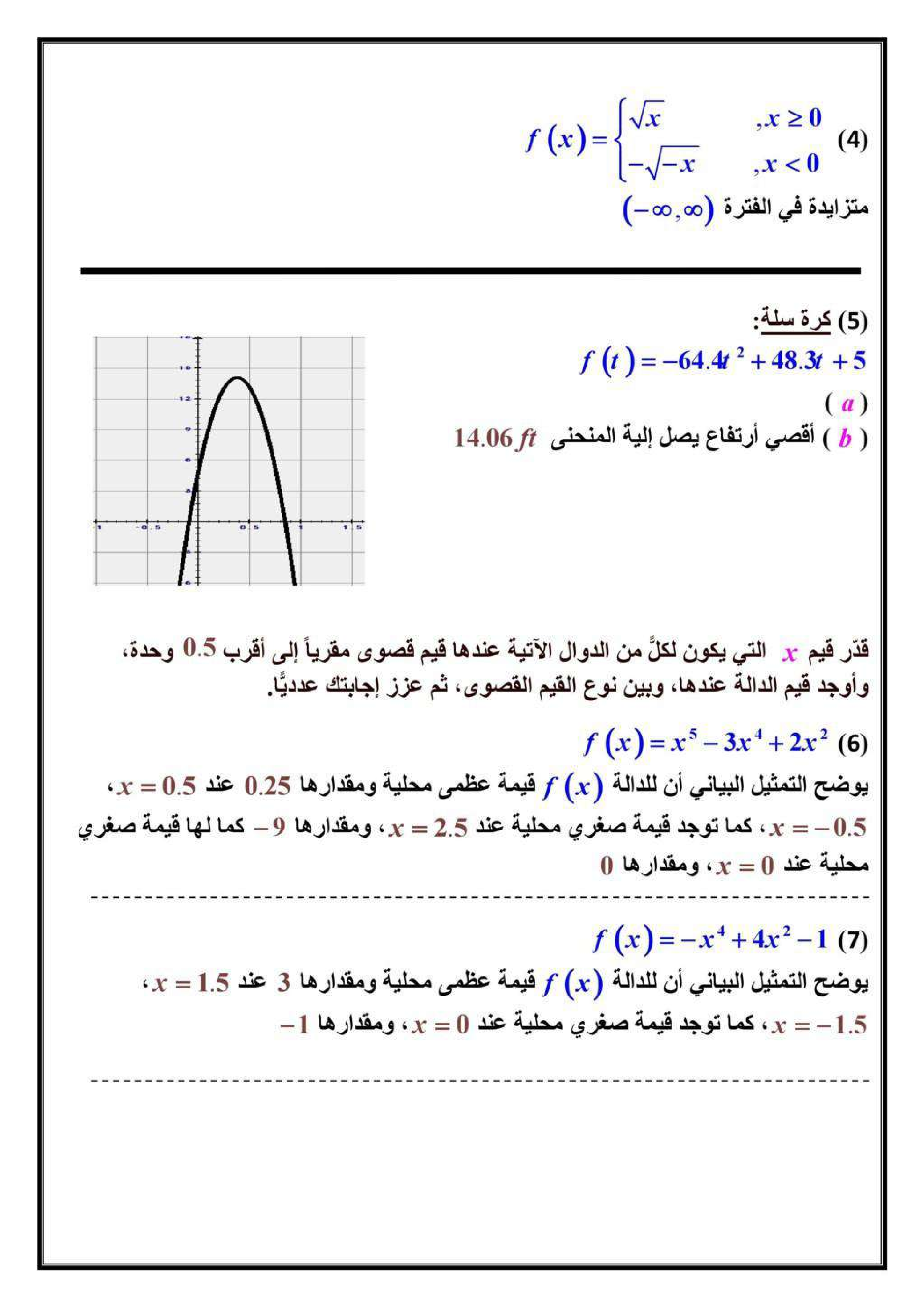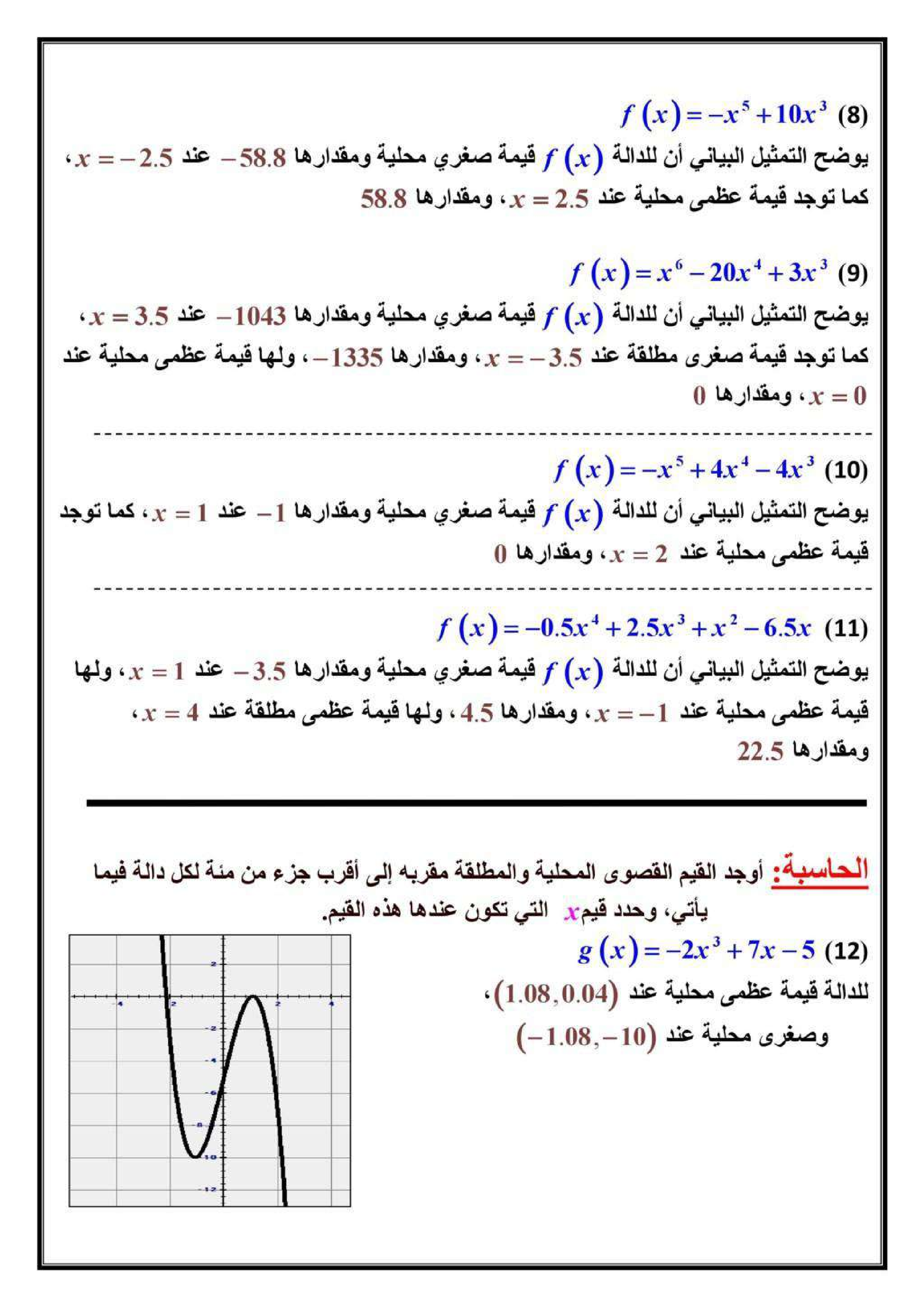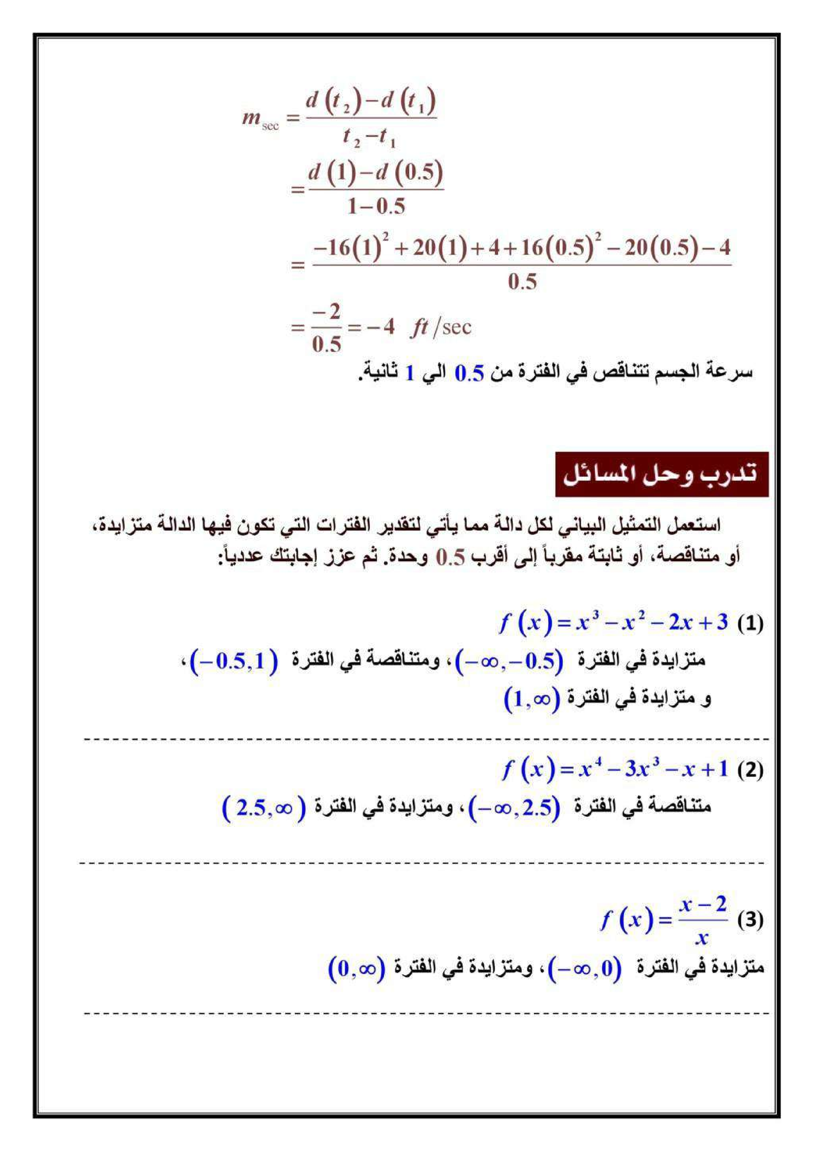 الفصل 1 - القيم القصوى ومتوسط معدل التغير