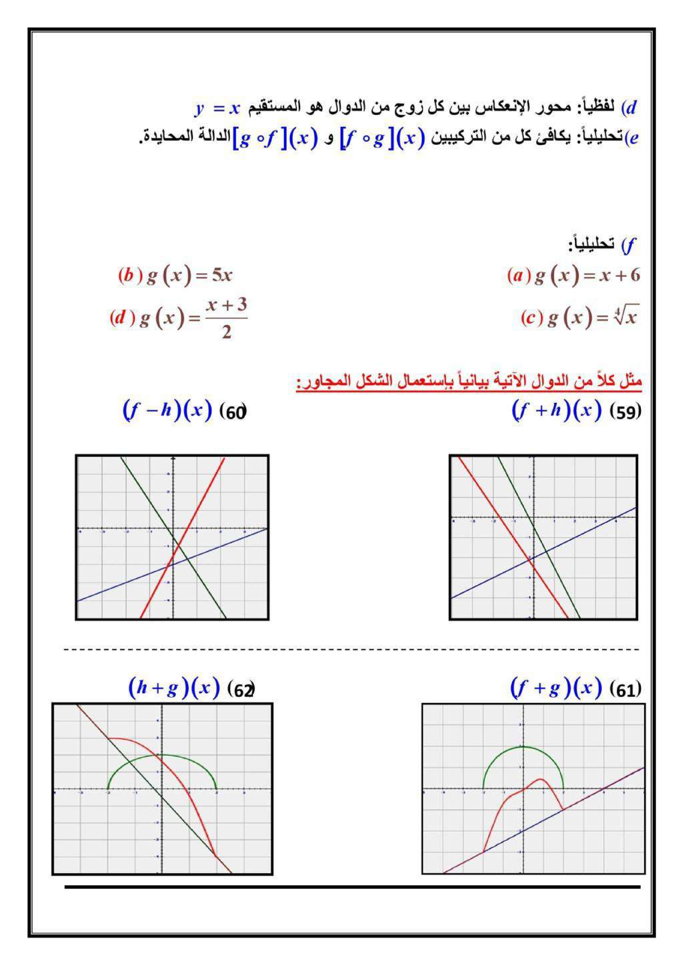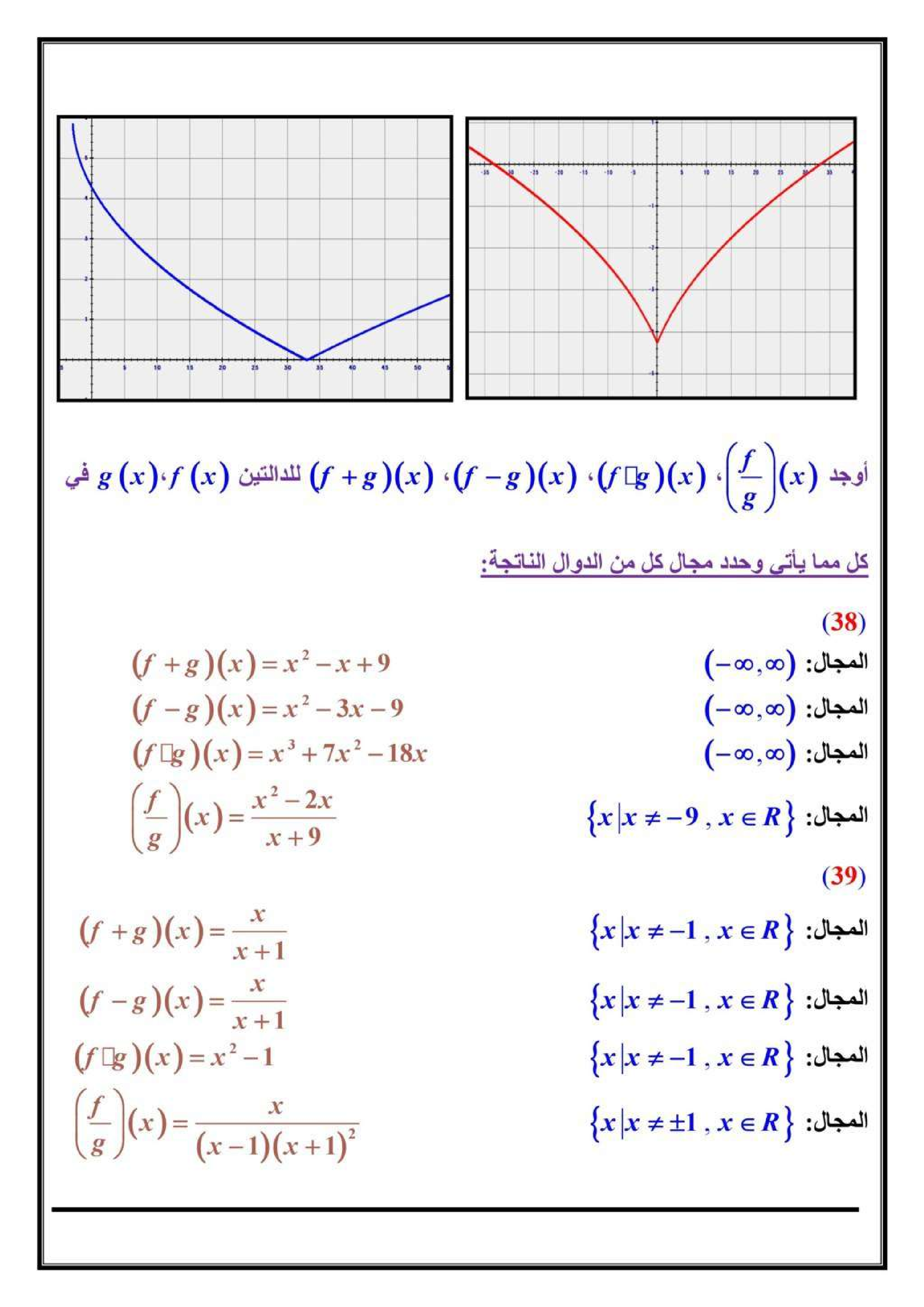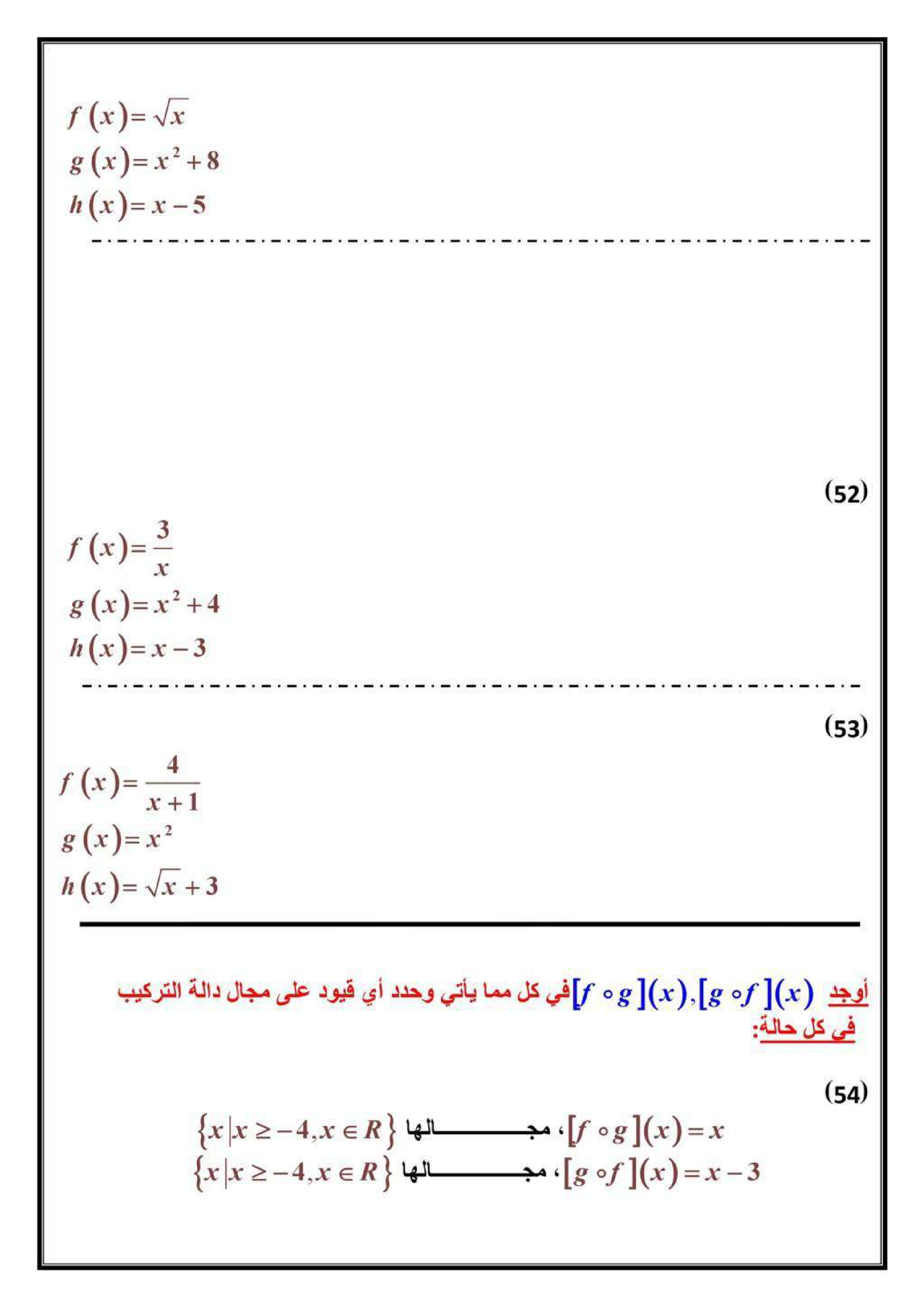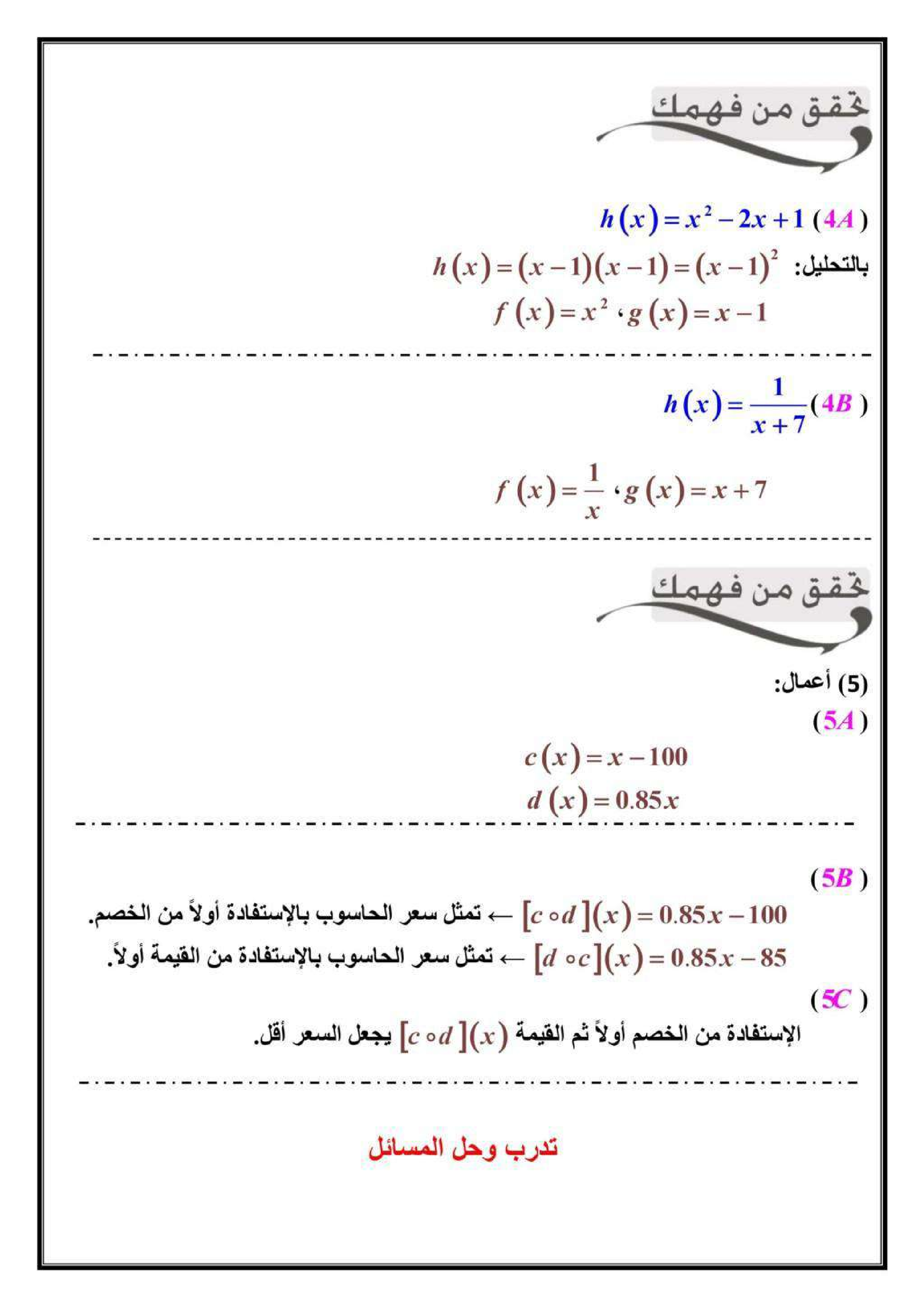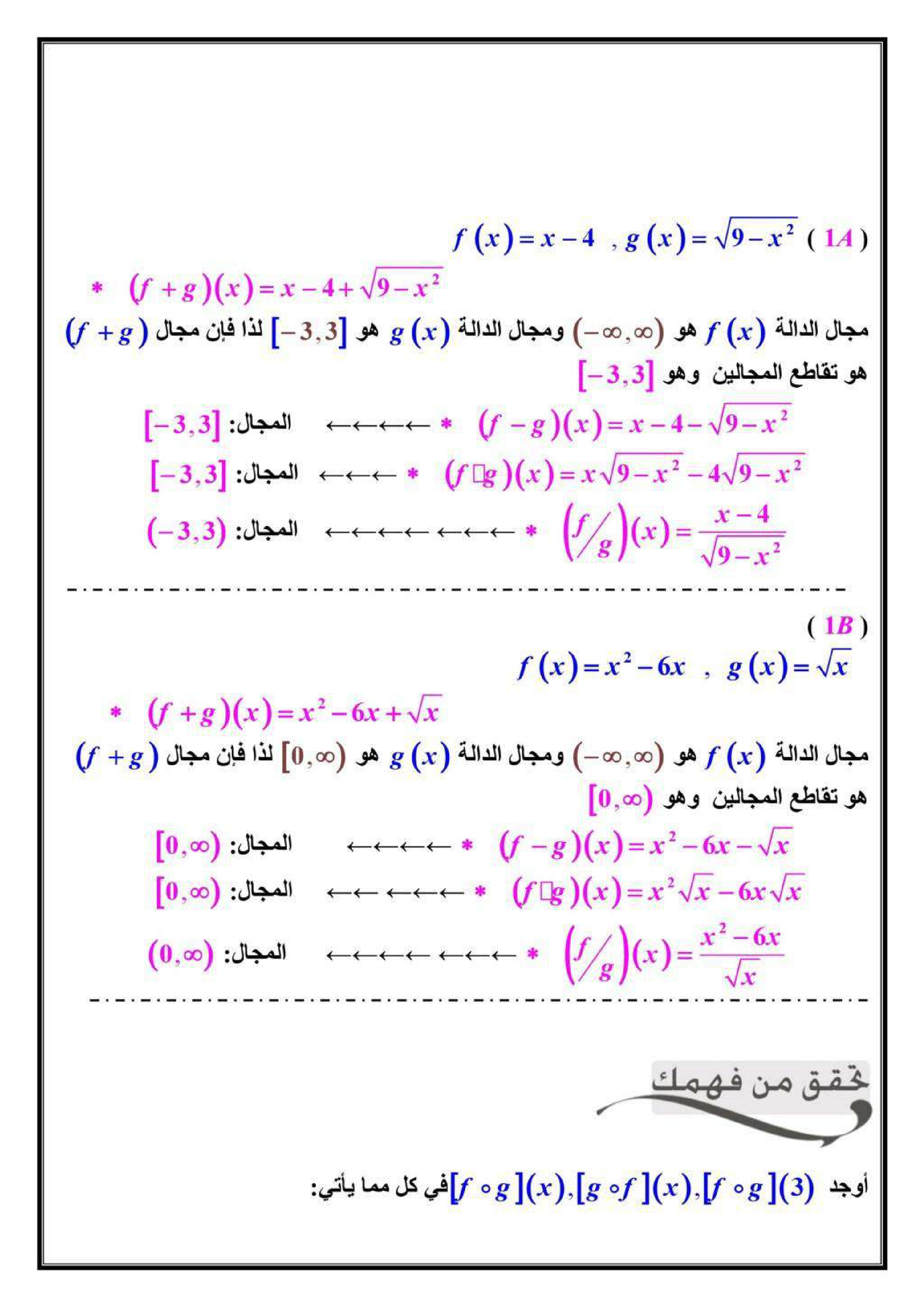 الفصل 1 - العمليات على الدوال وتركيب دالتين