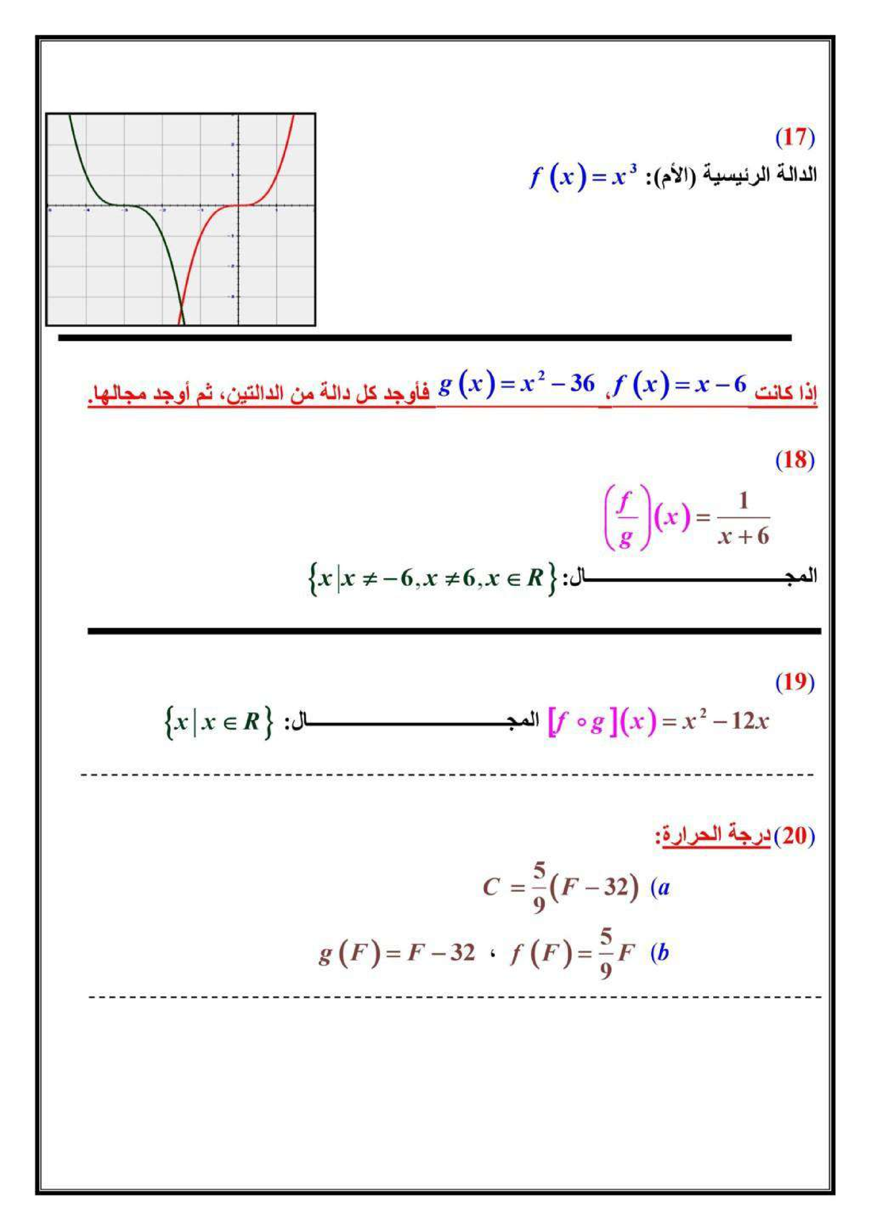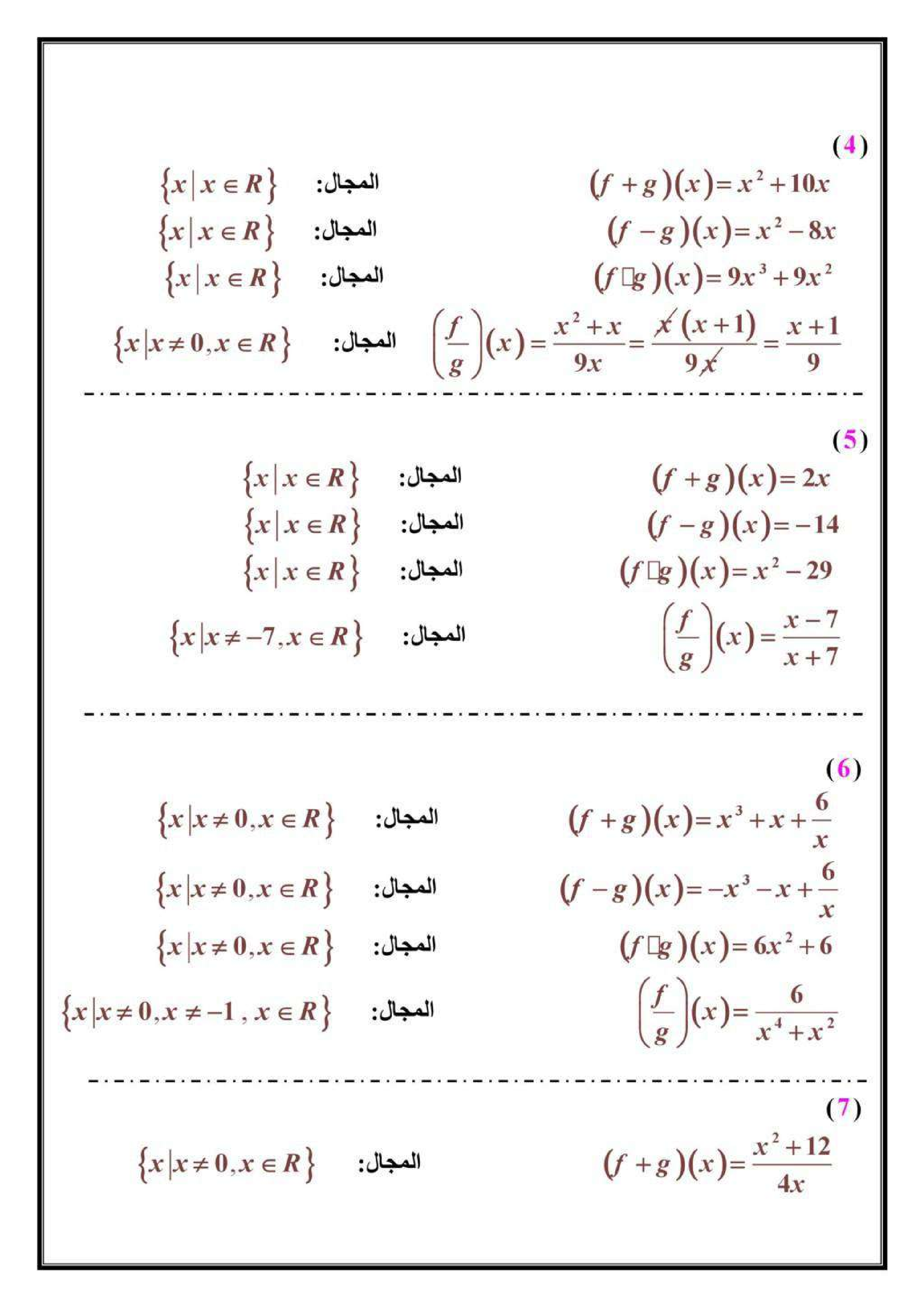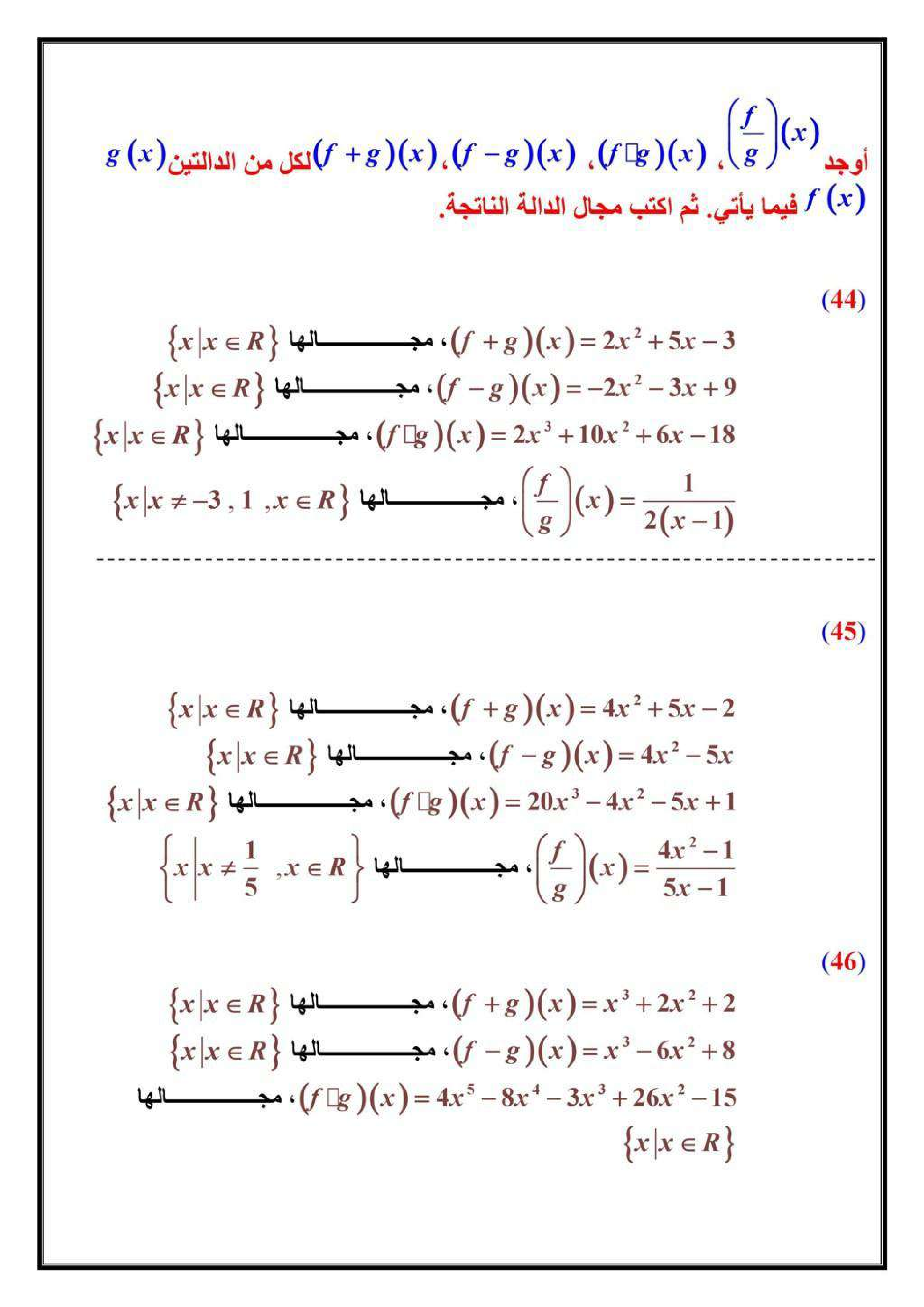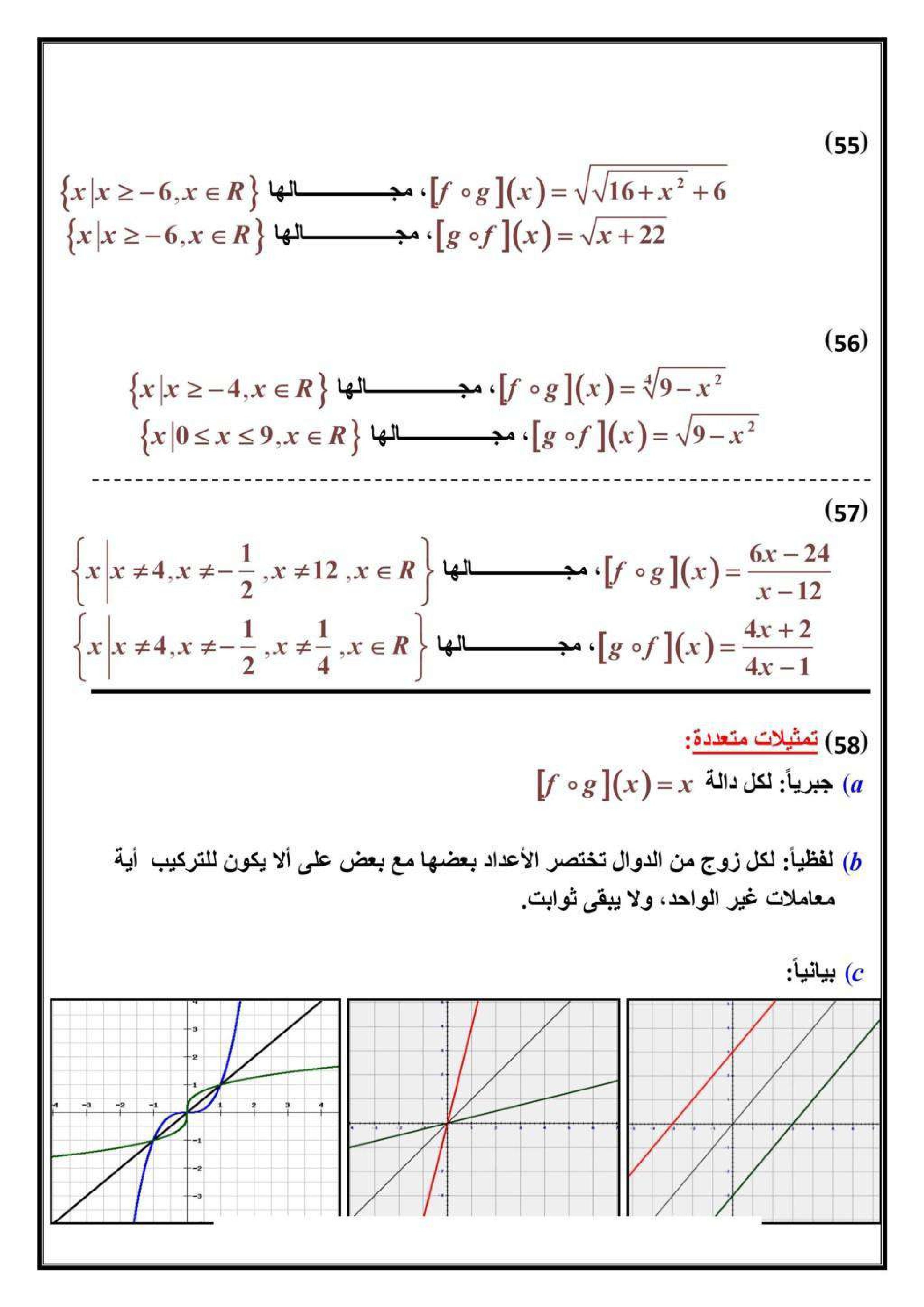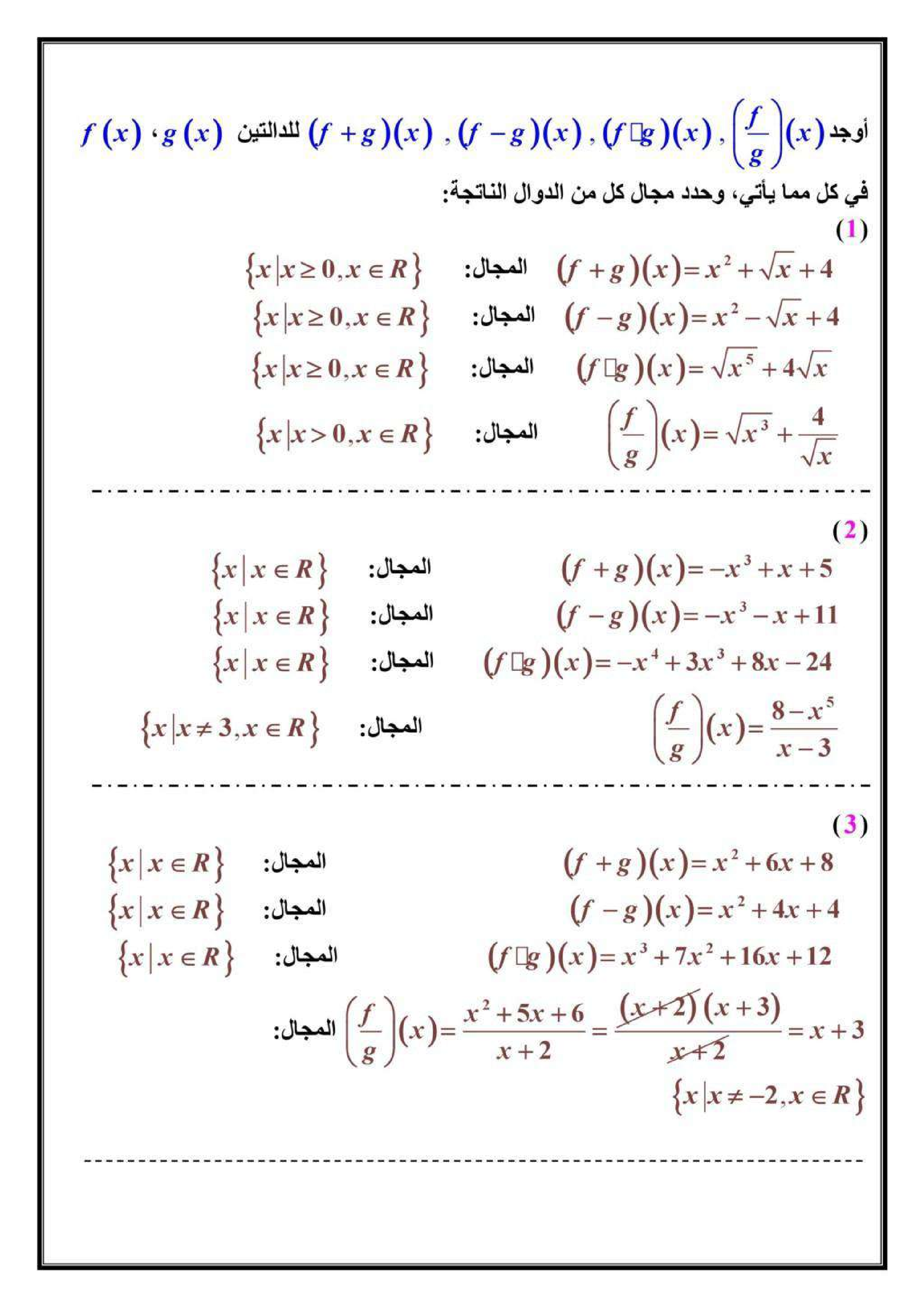 الفصل 1 - العمليات على الدوال وتركيب دالتين