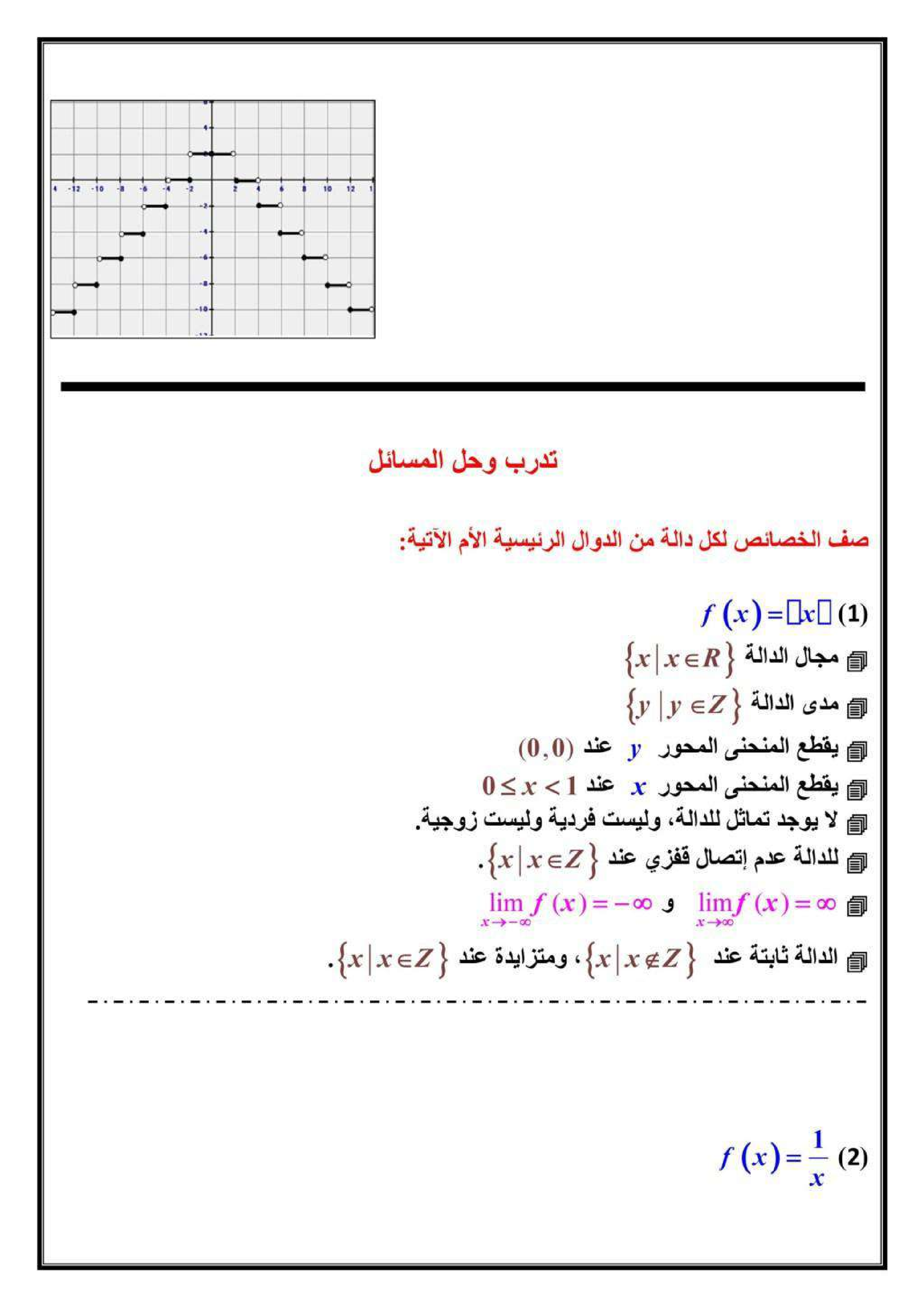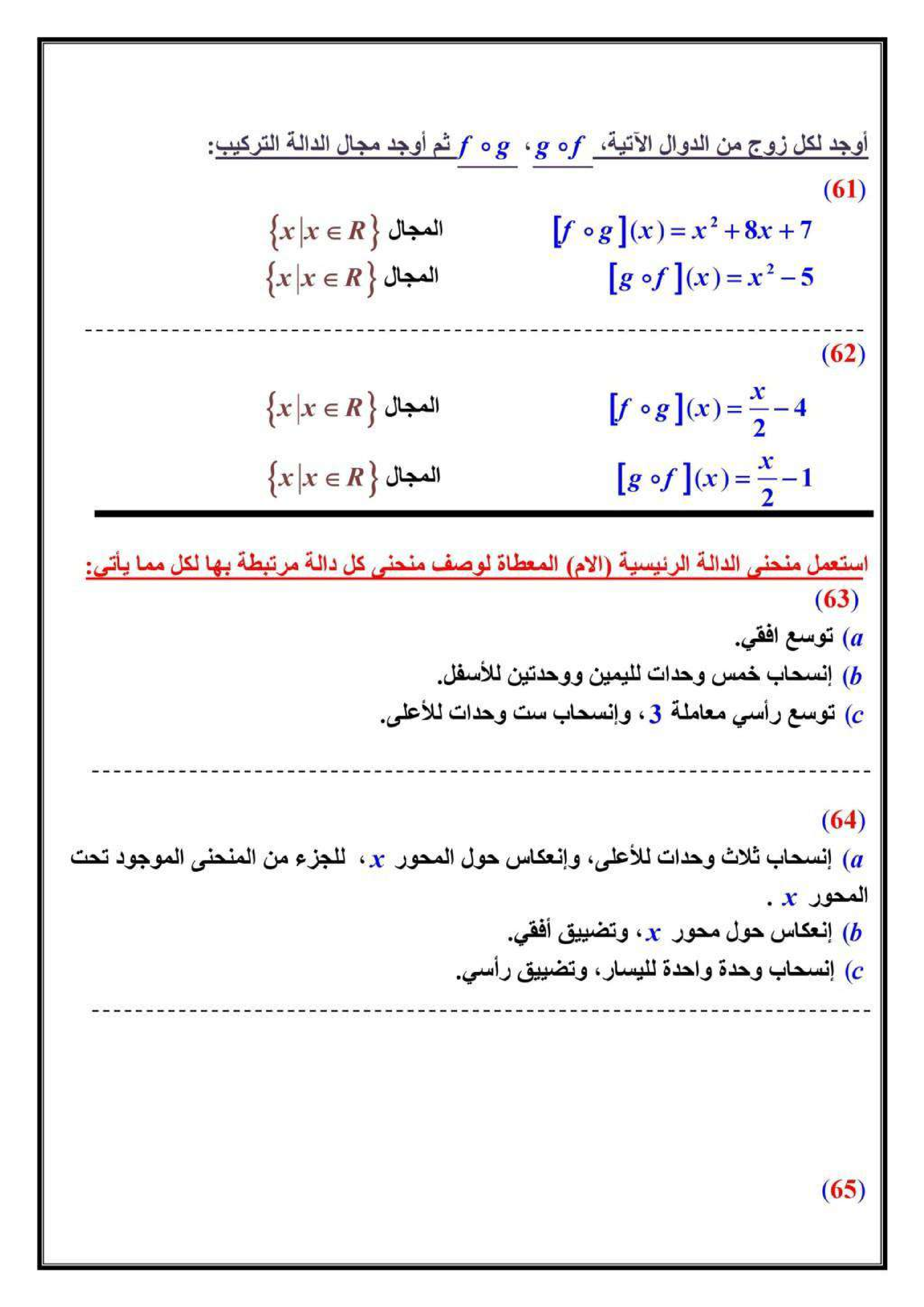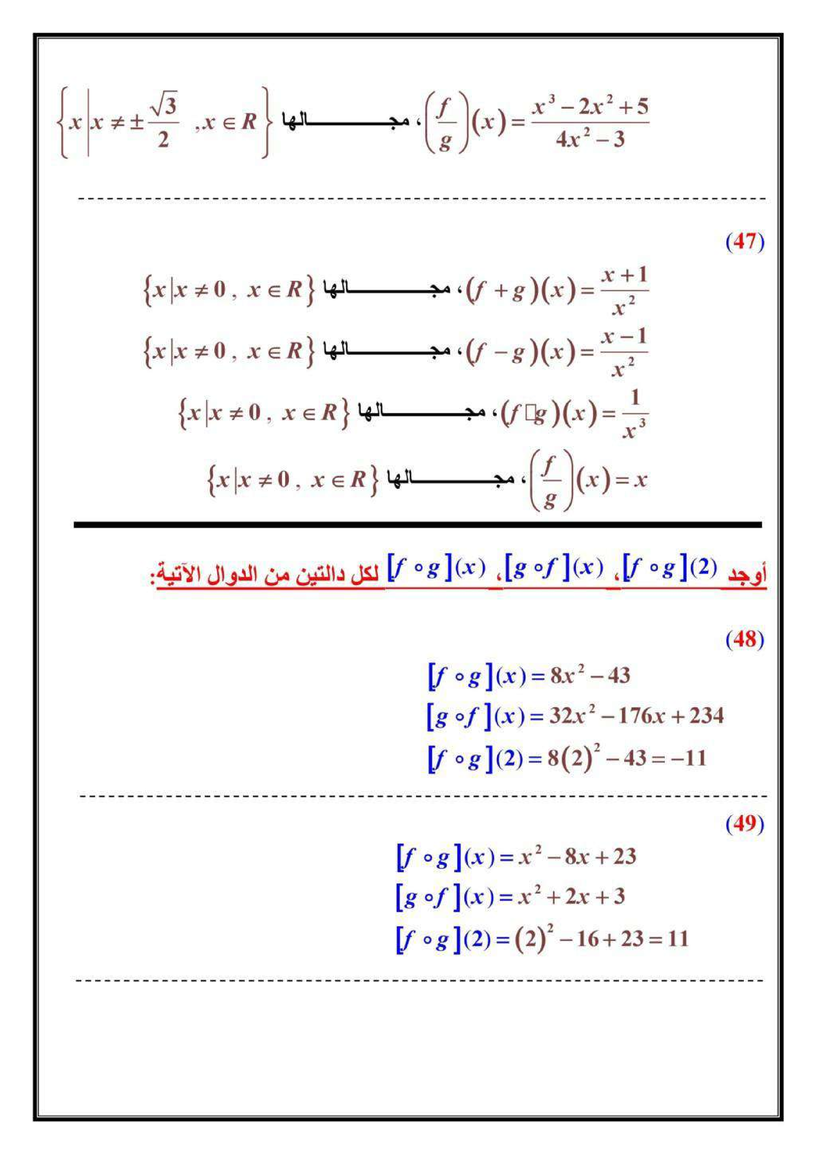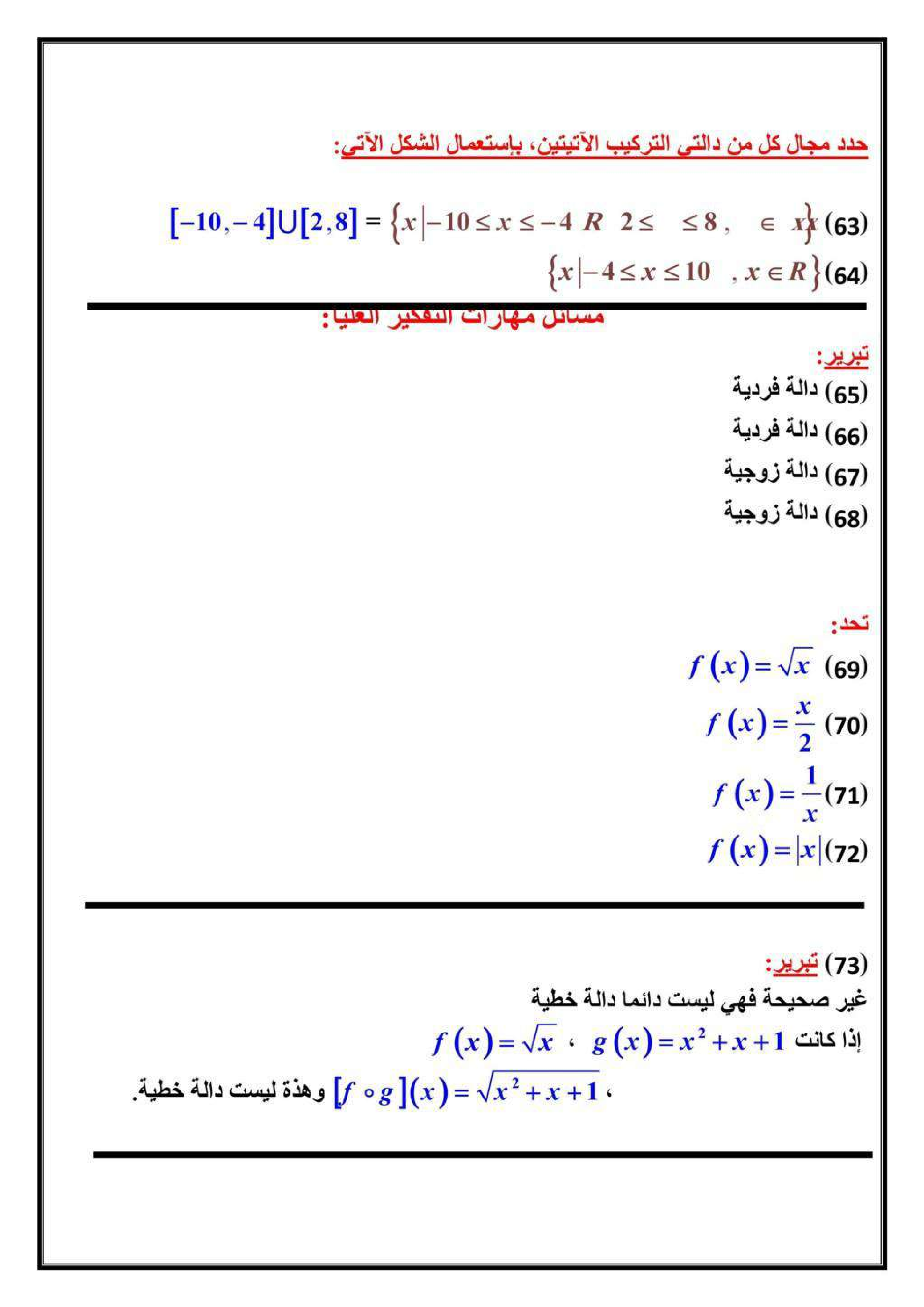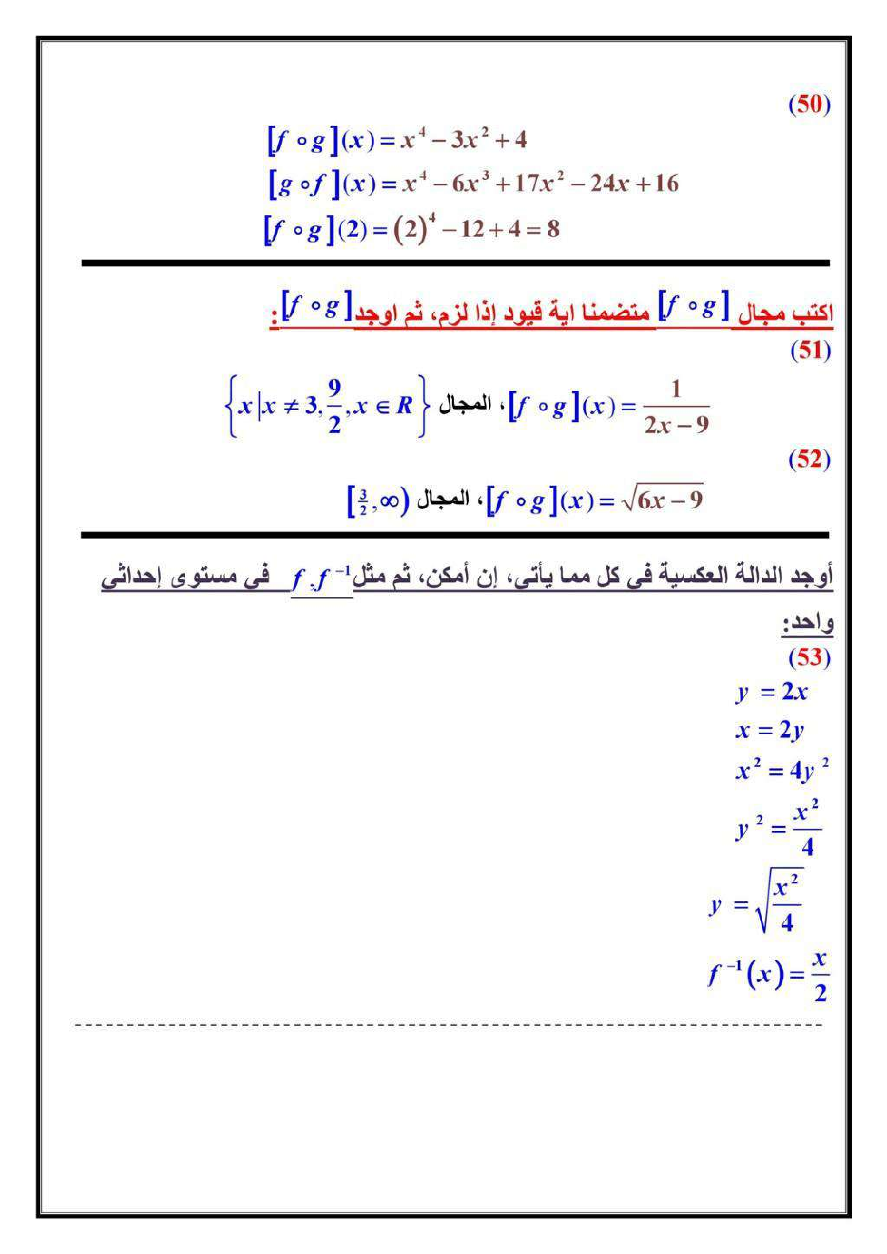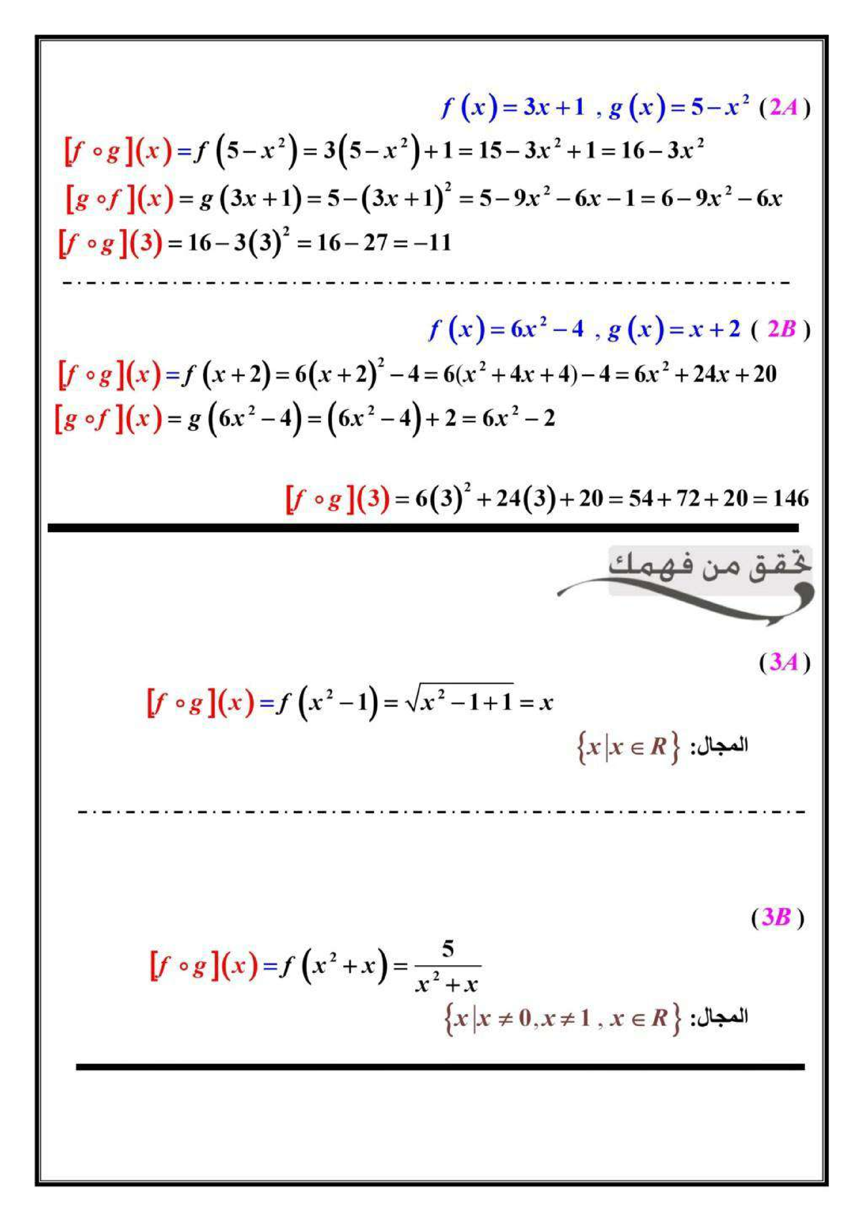 الفصل 1 - العمليات على الدوال وتركيب دالتين