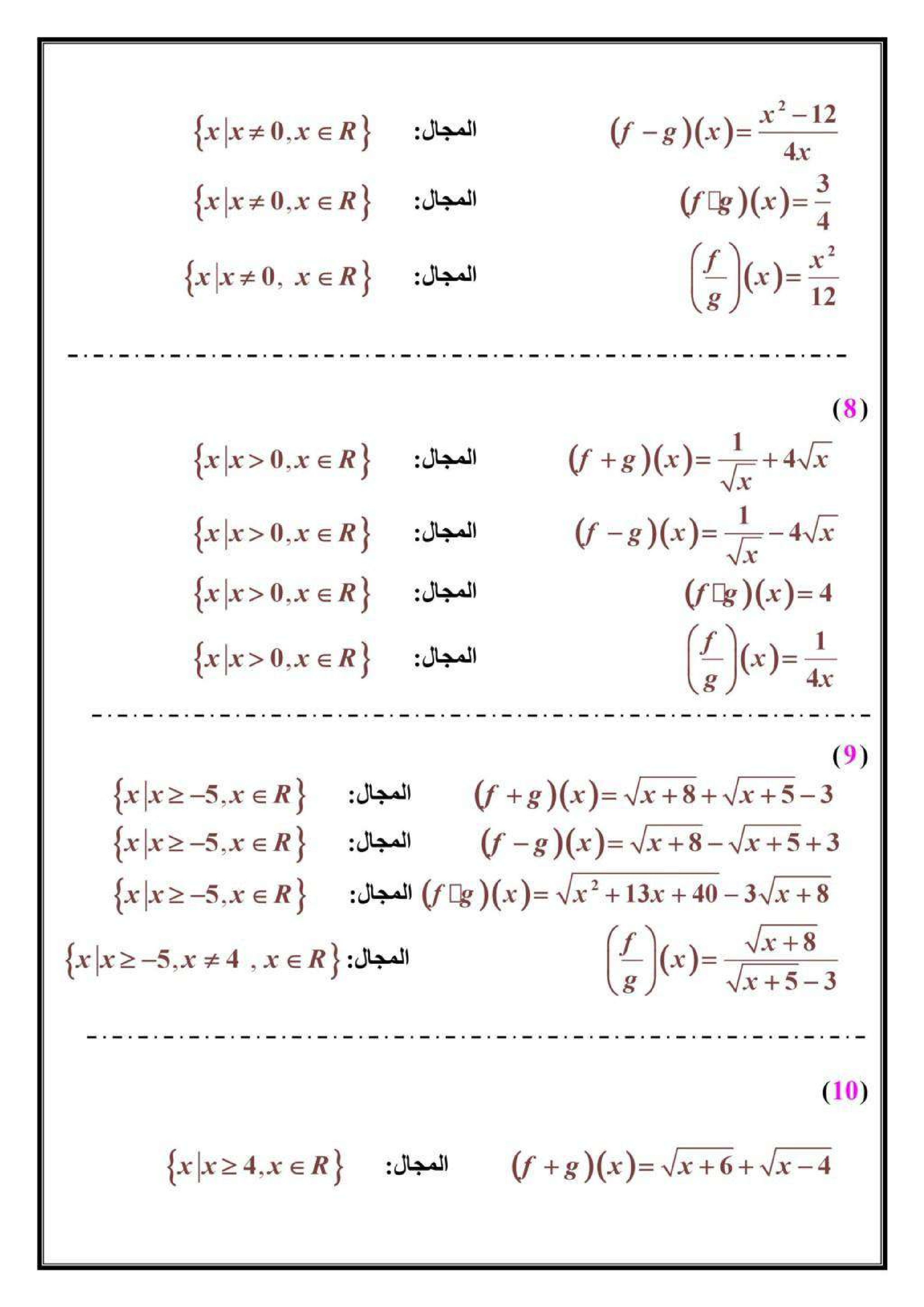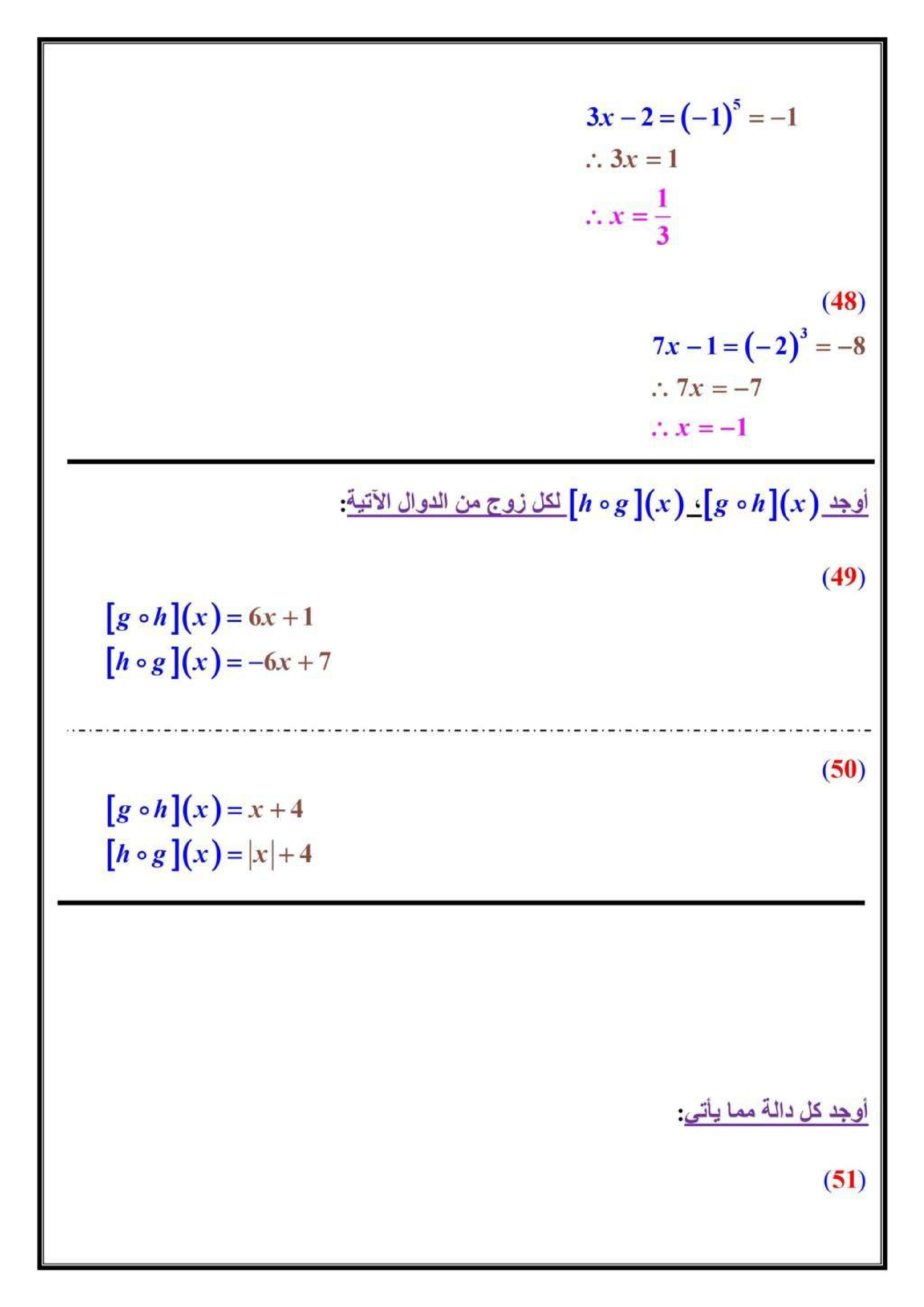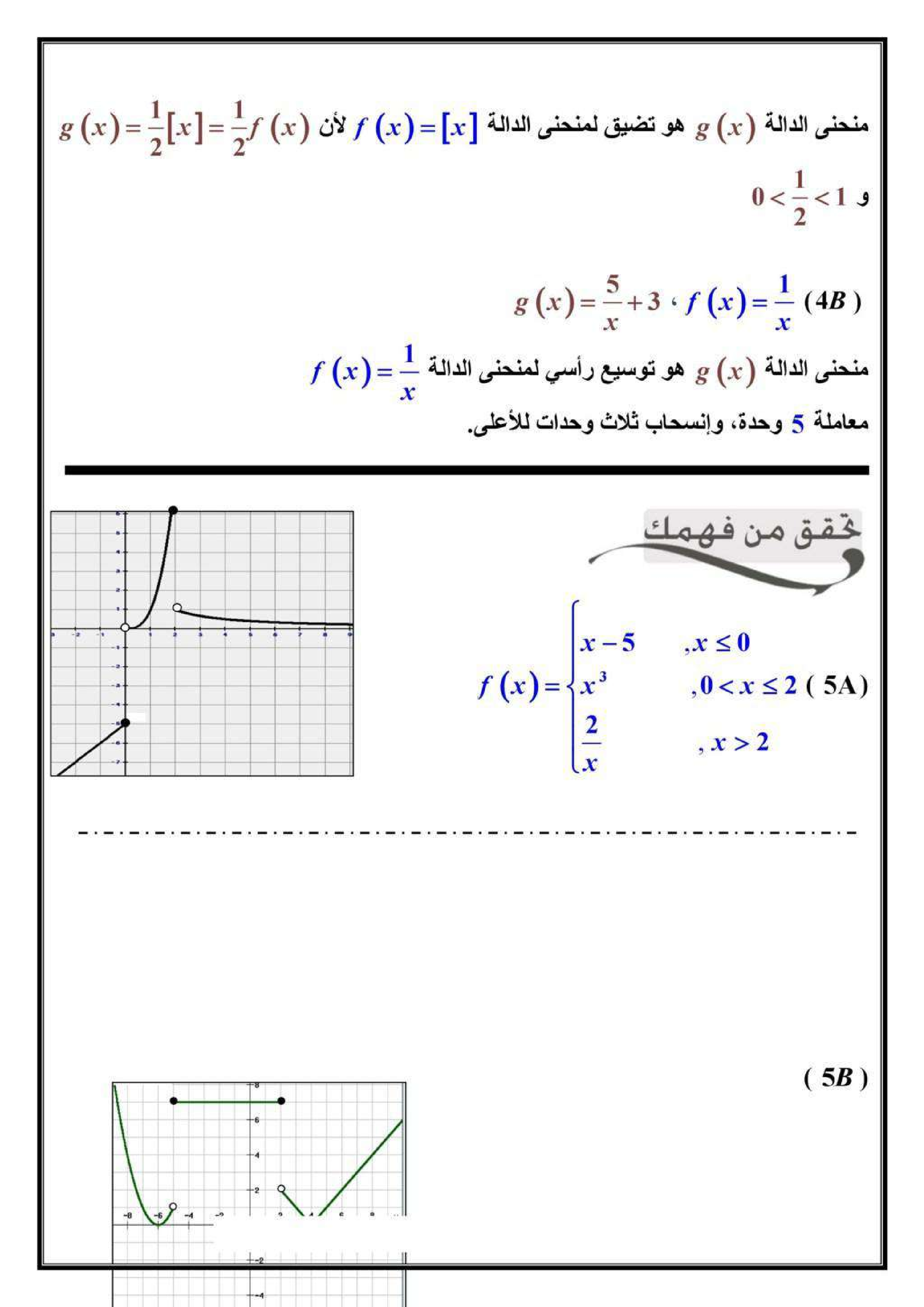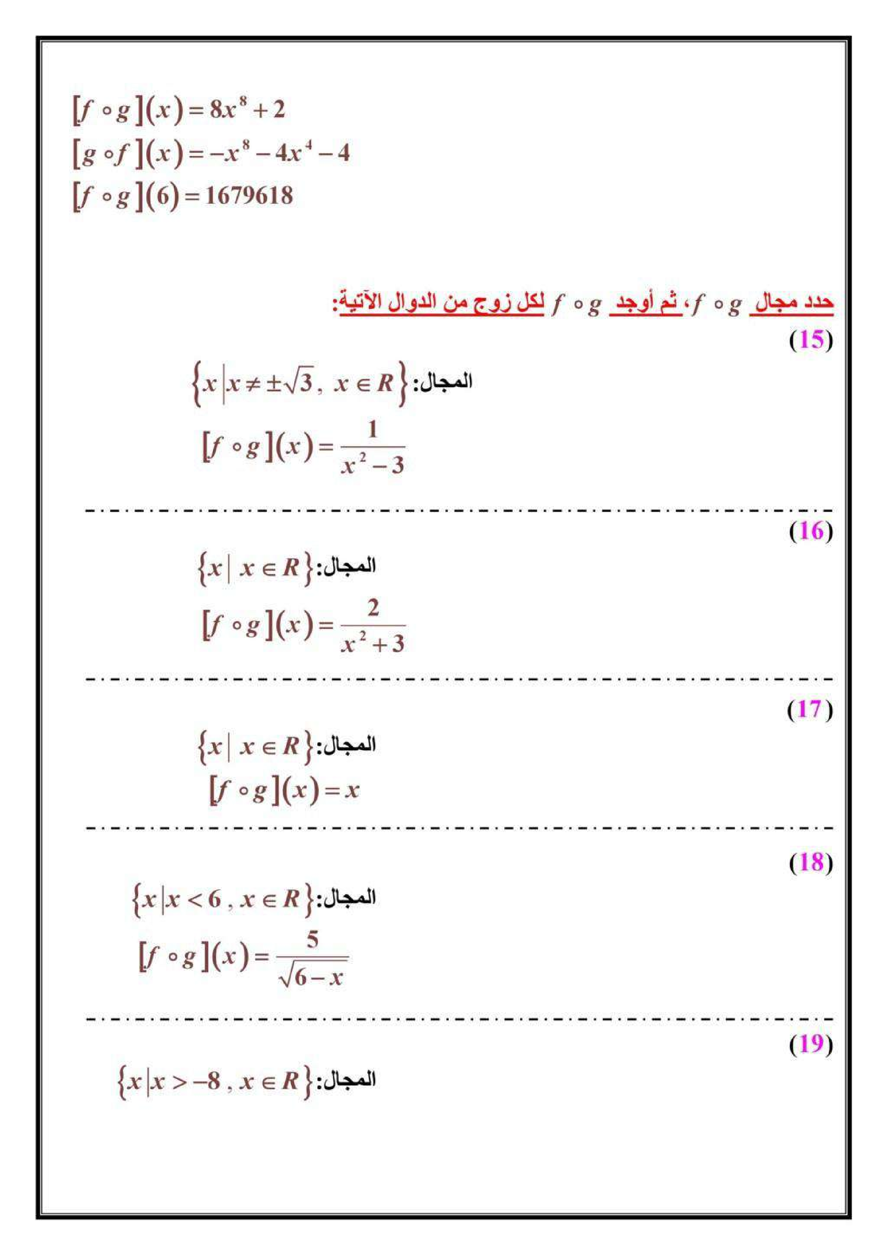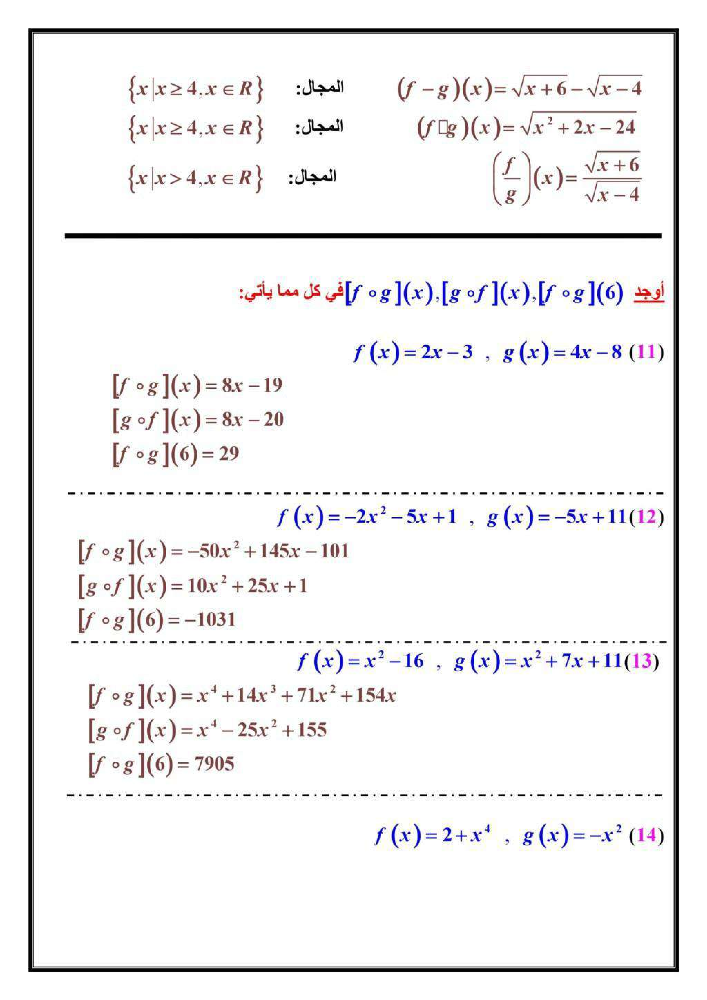 الفصل 1 - العمليات على الدوال وتركيب دالتين