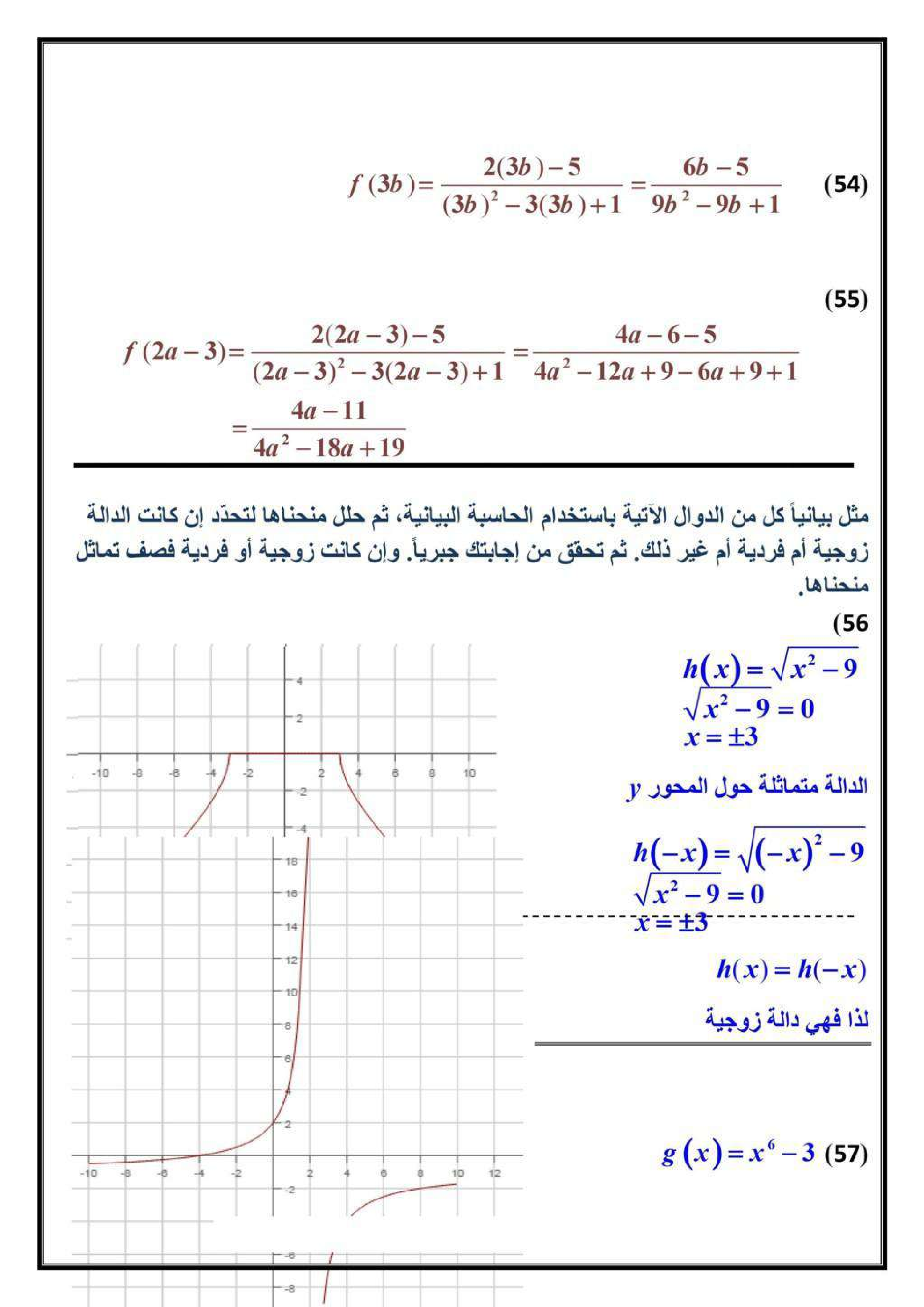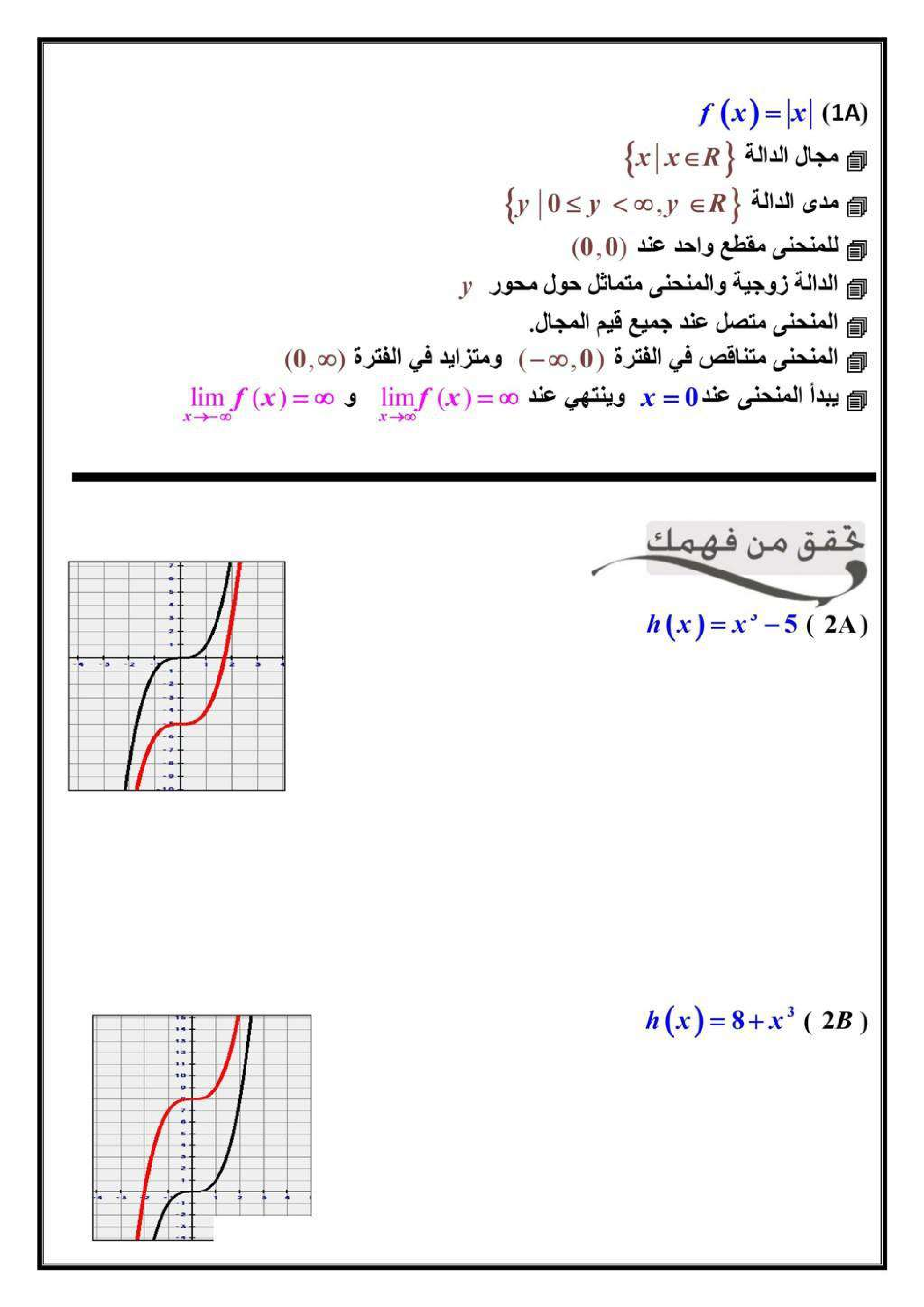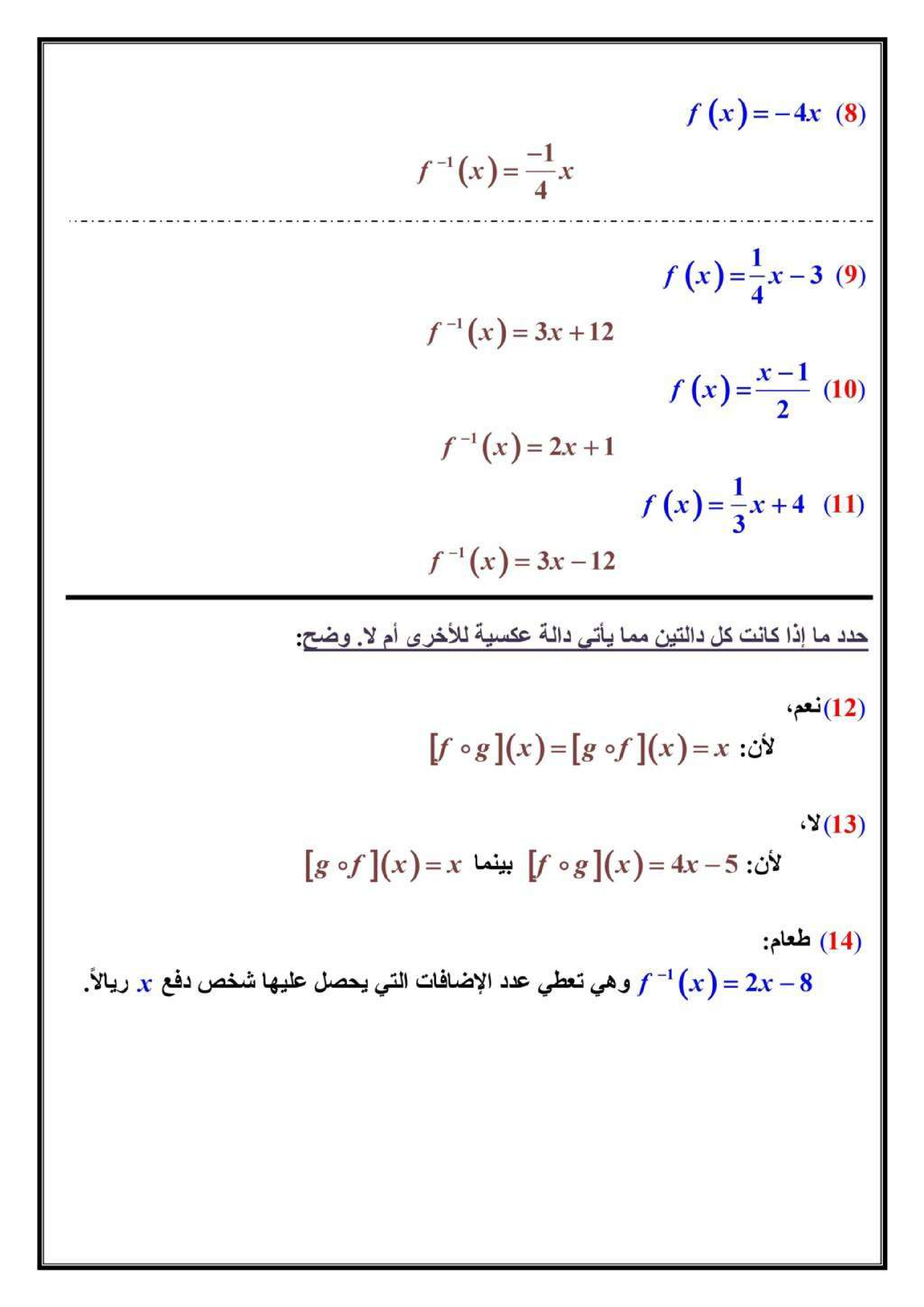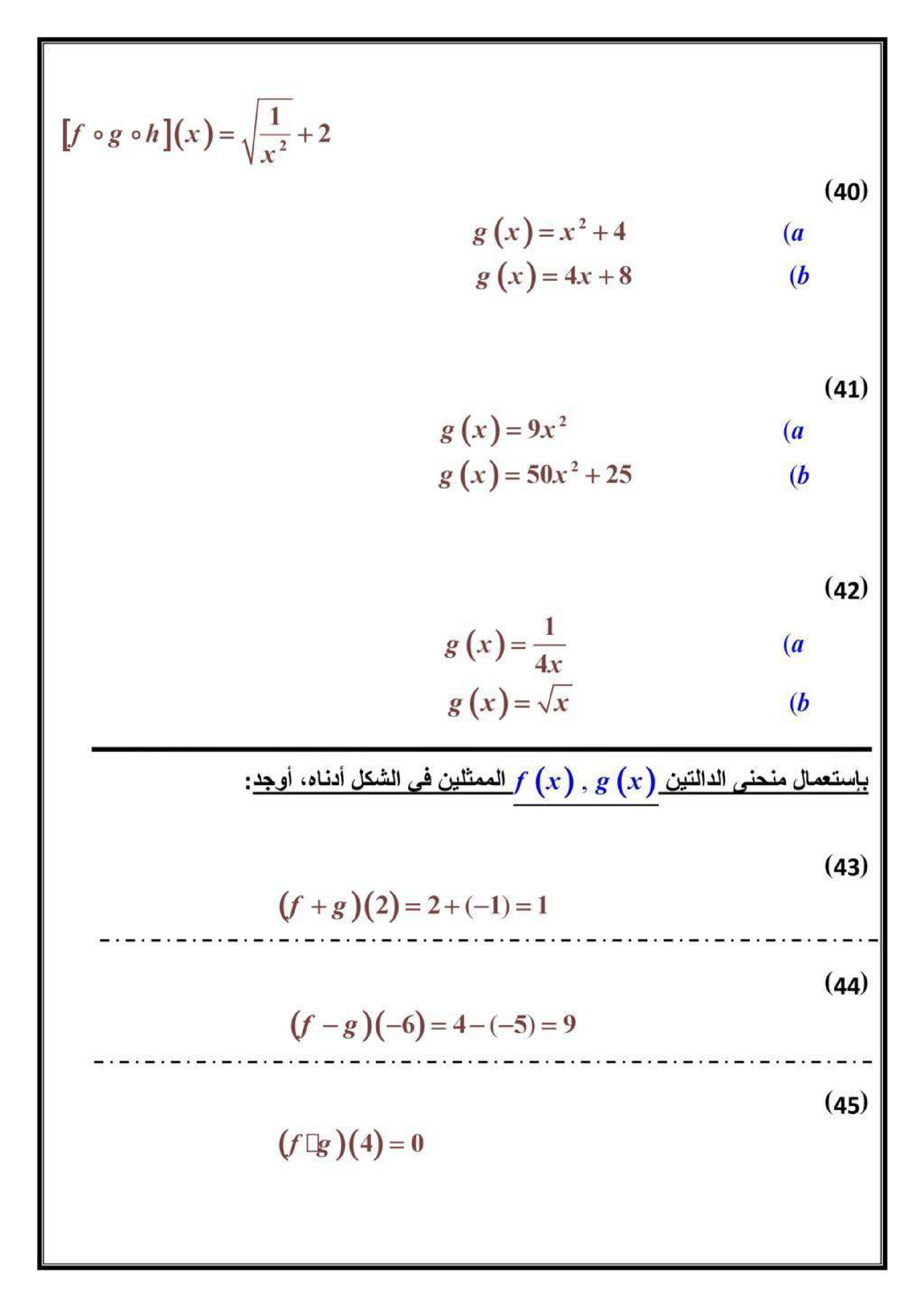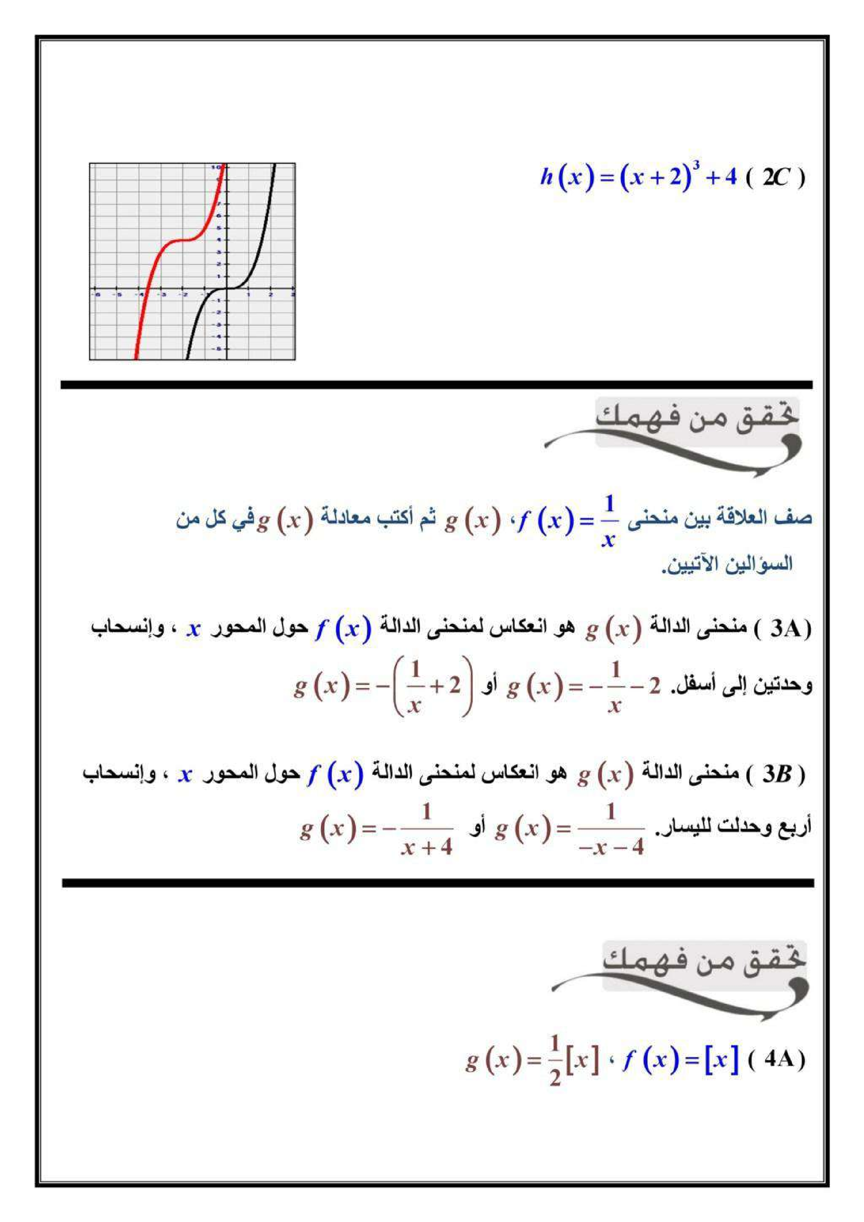 الفصل 1 - العمليات على الدوال وتركيب دالتين