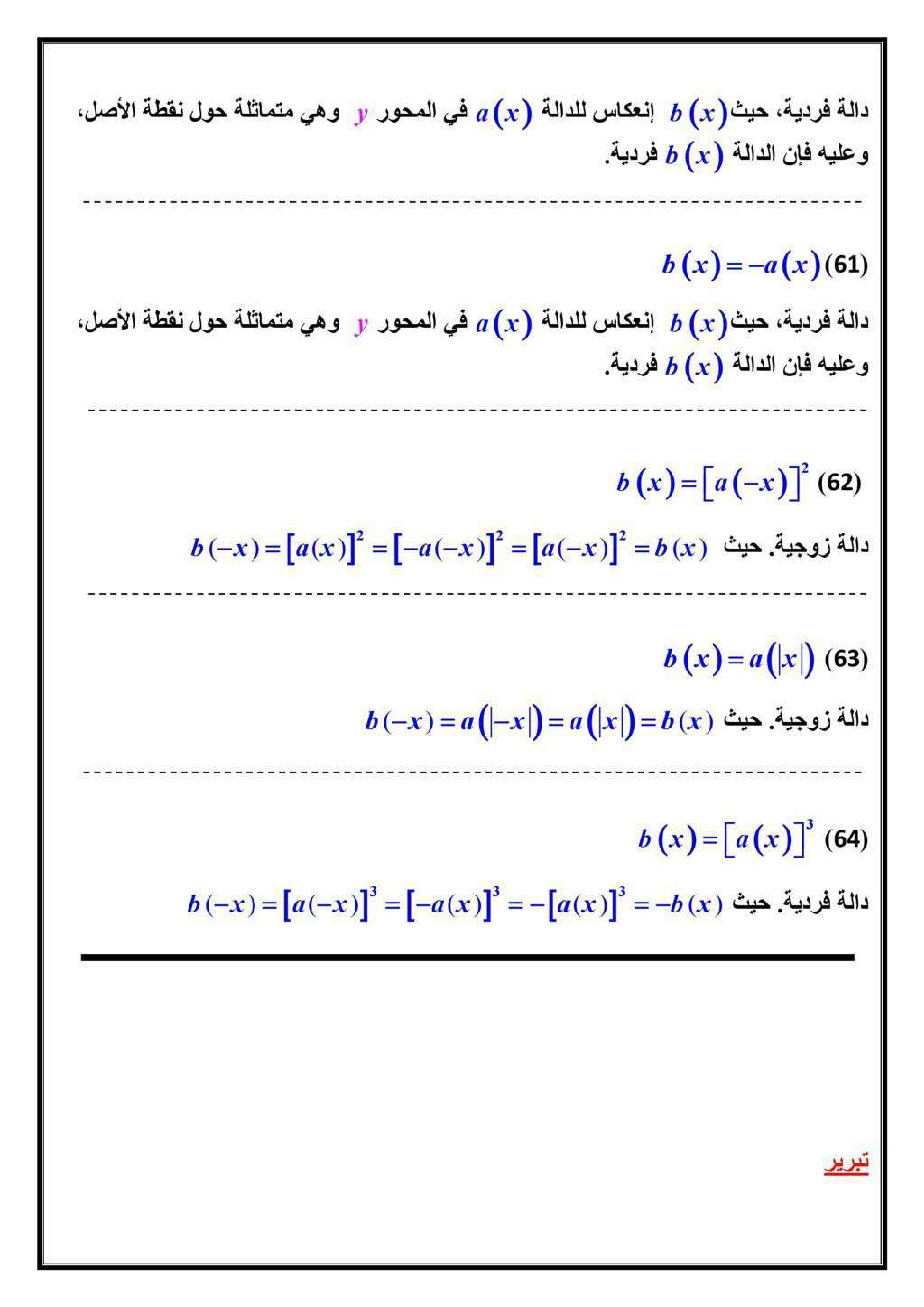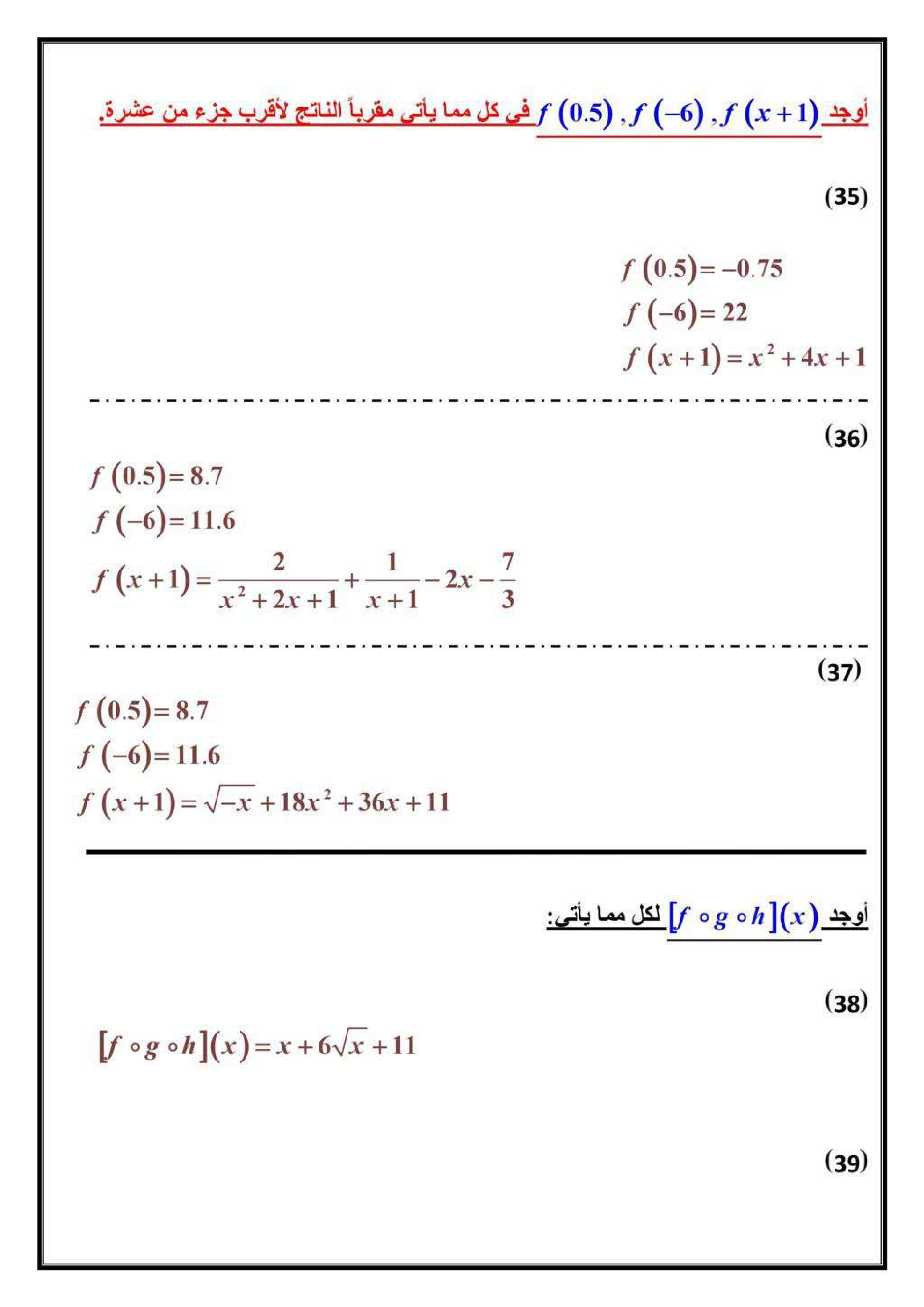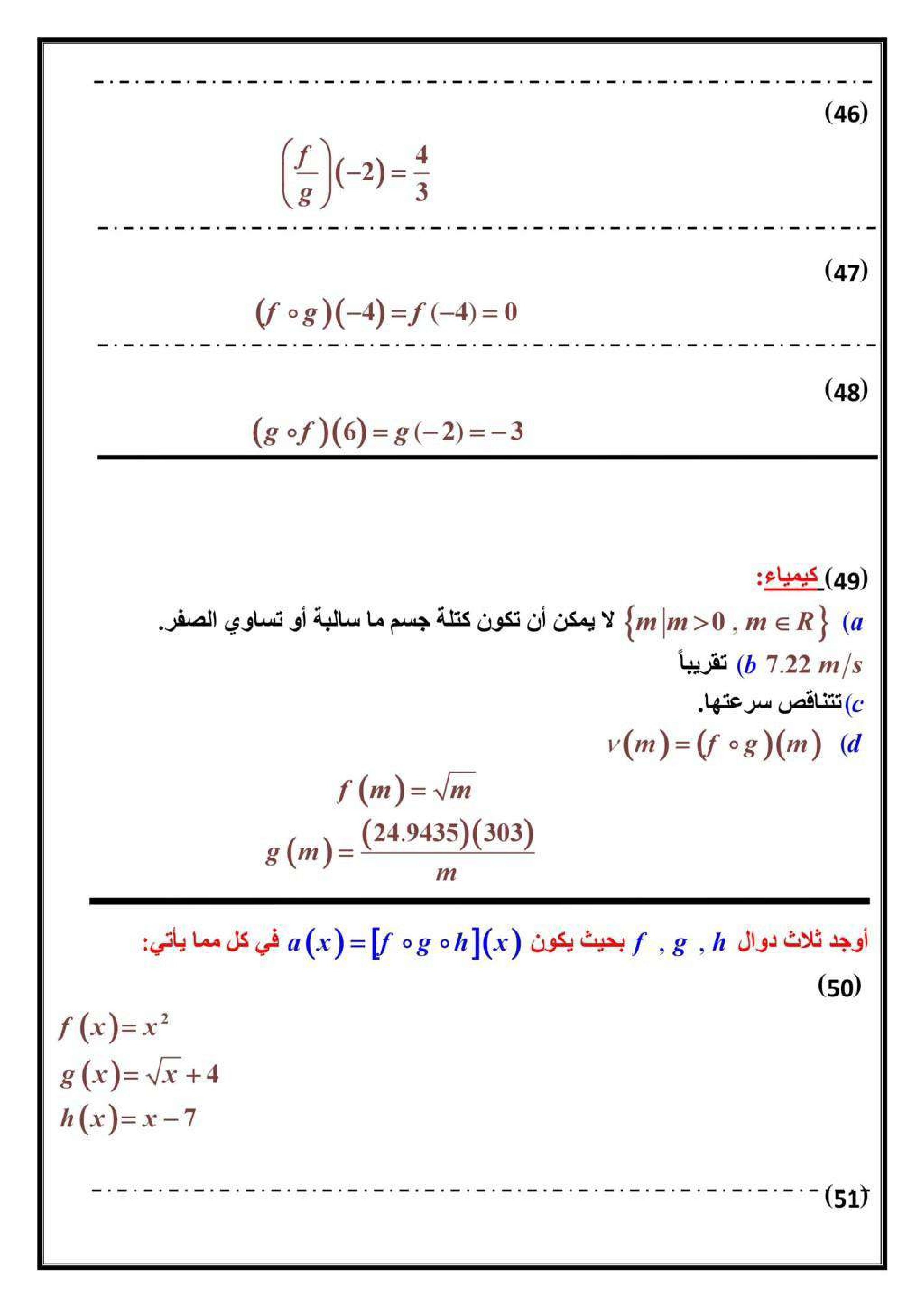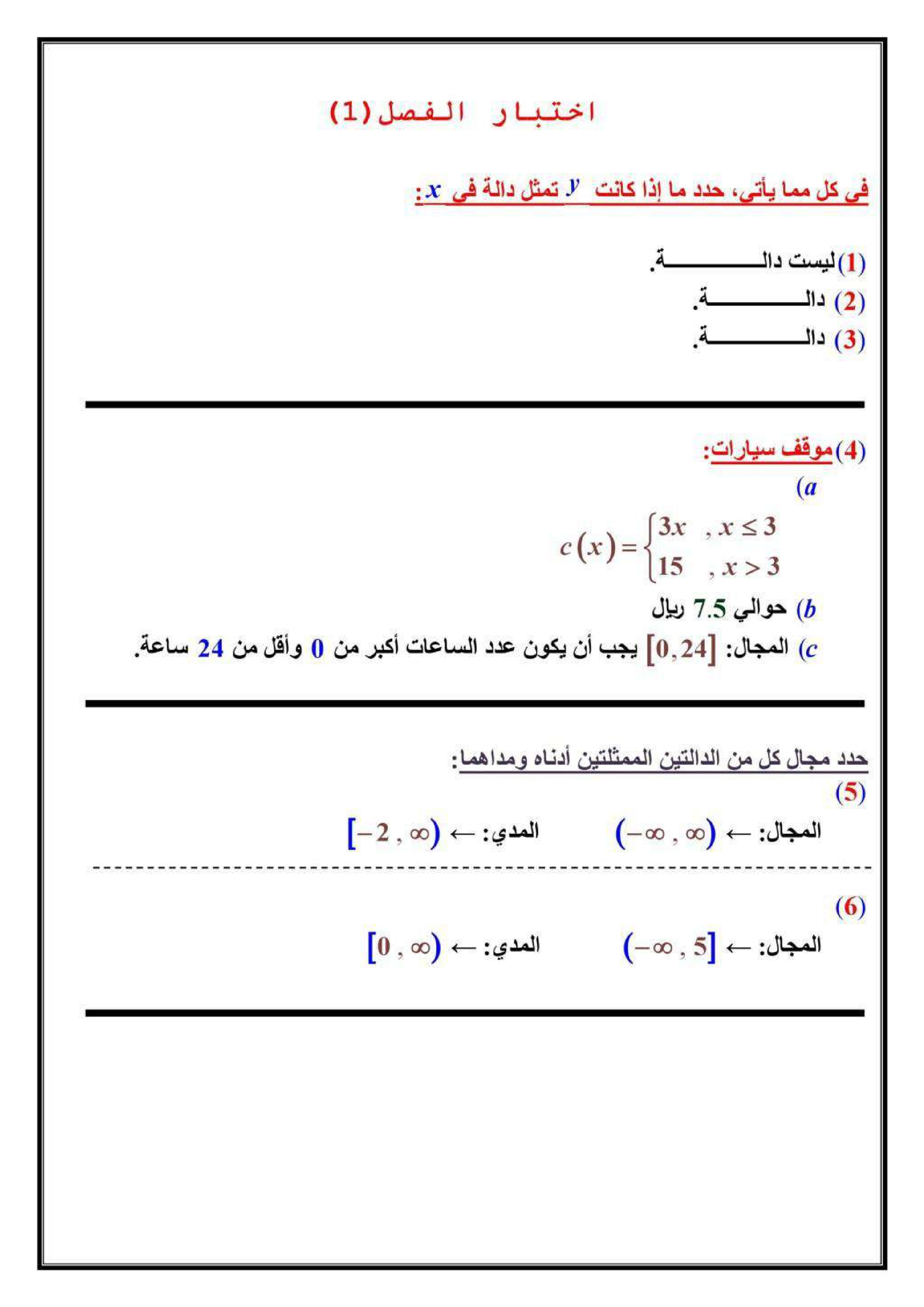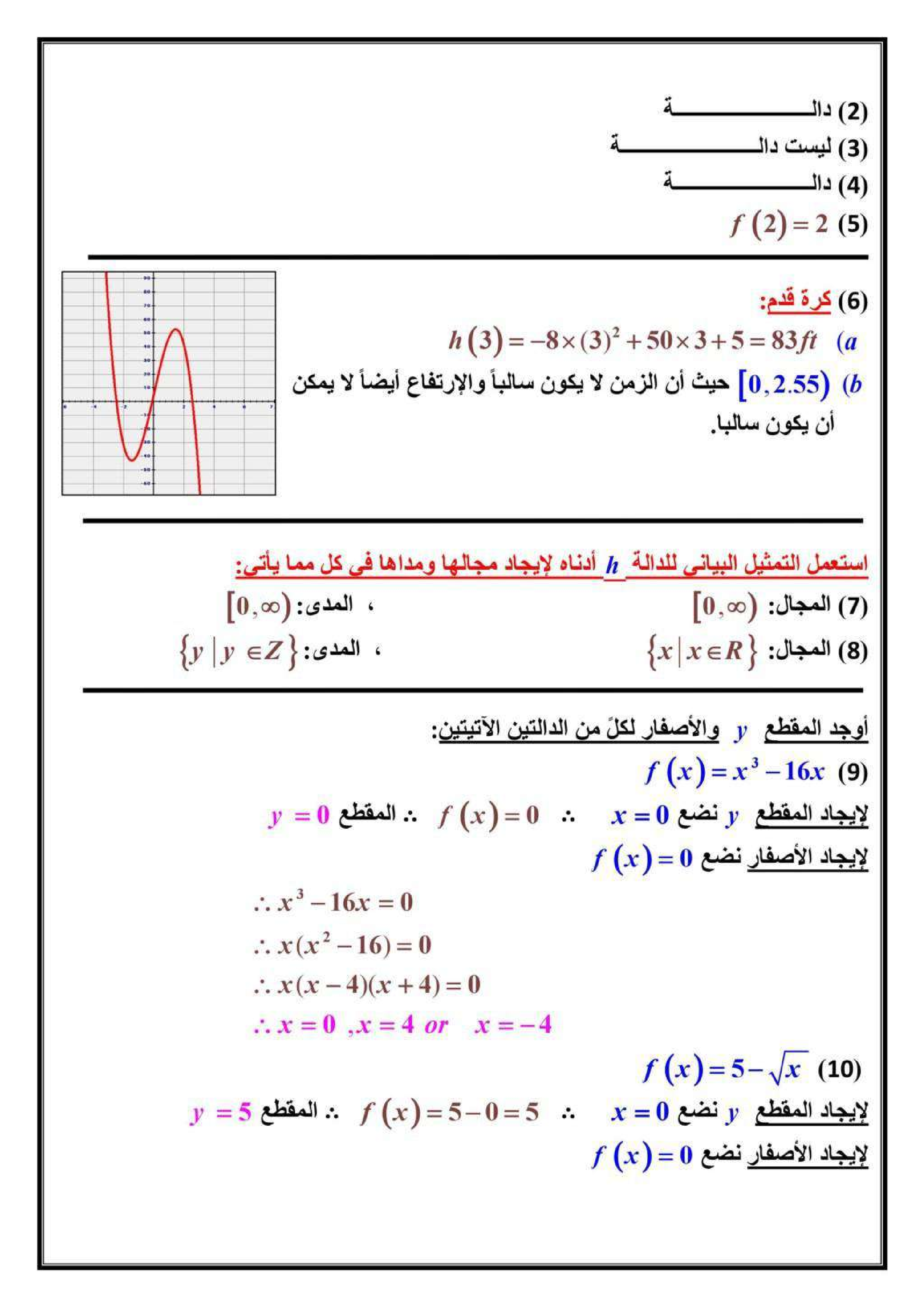 الفصل 1 - العمليات على الدوال وتركيب دالتين