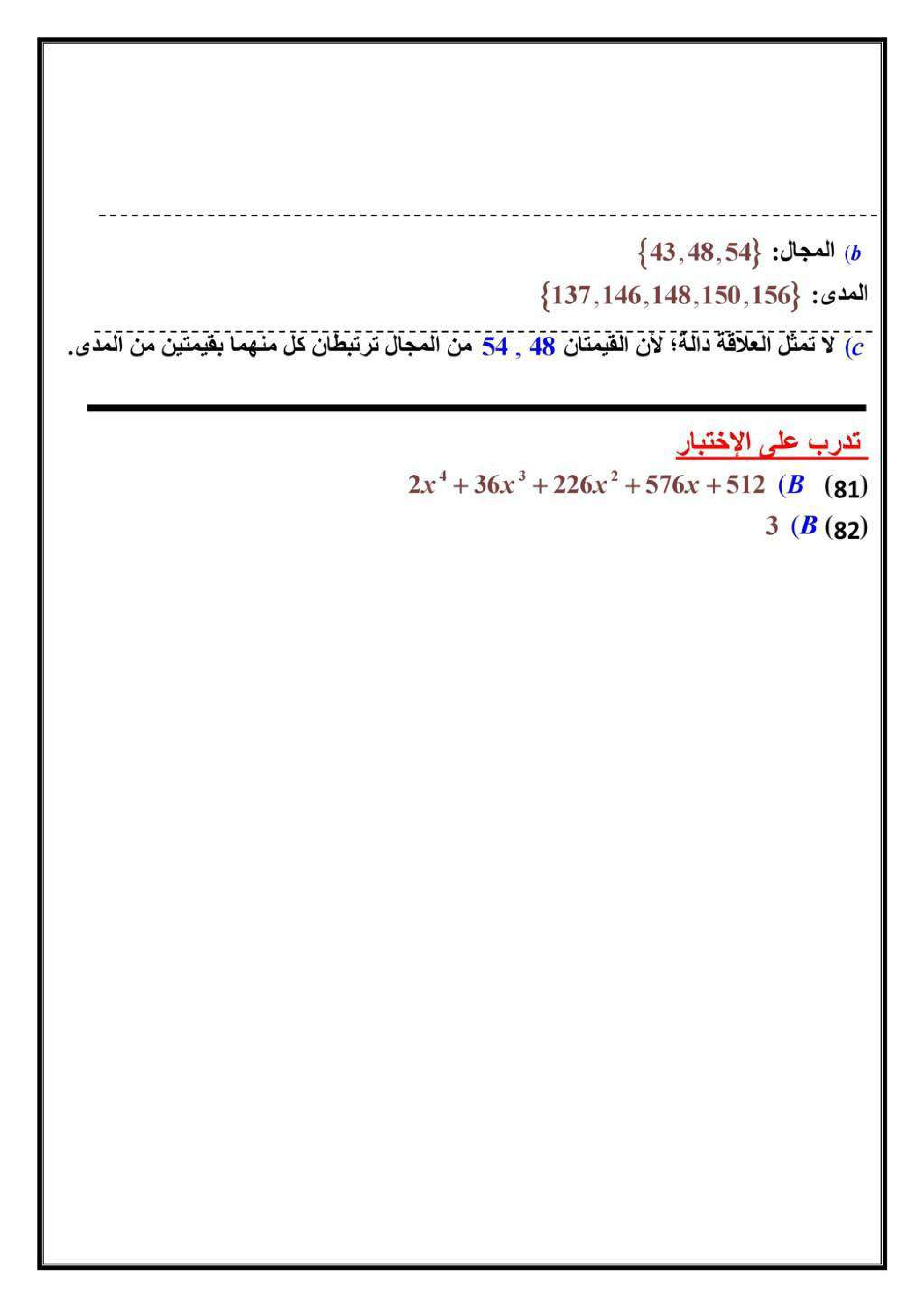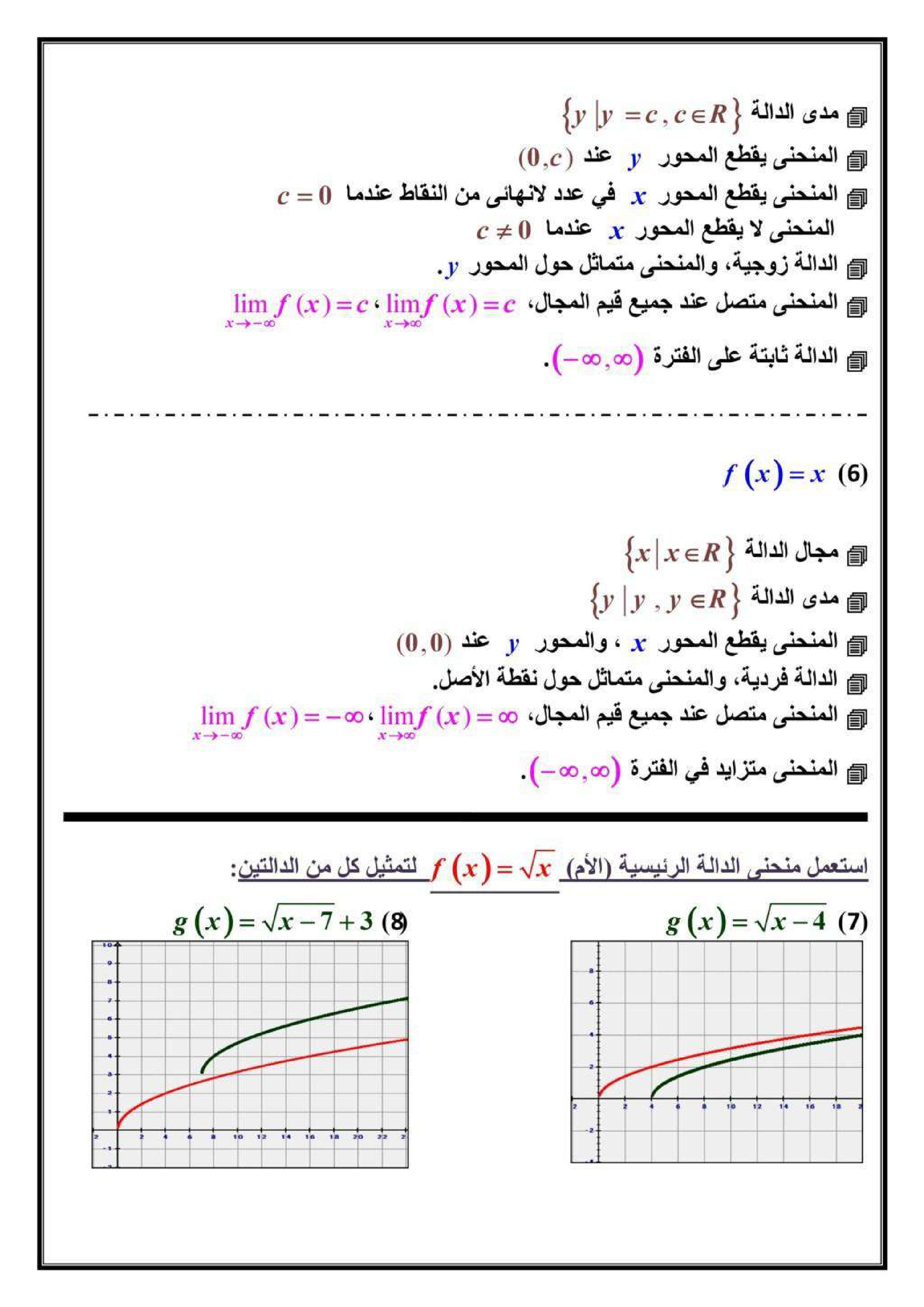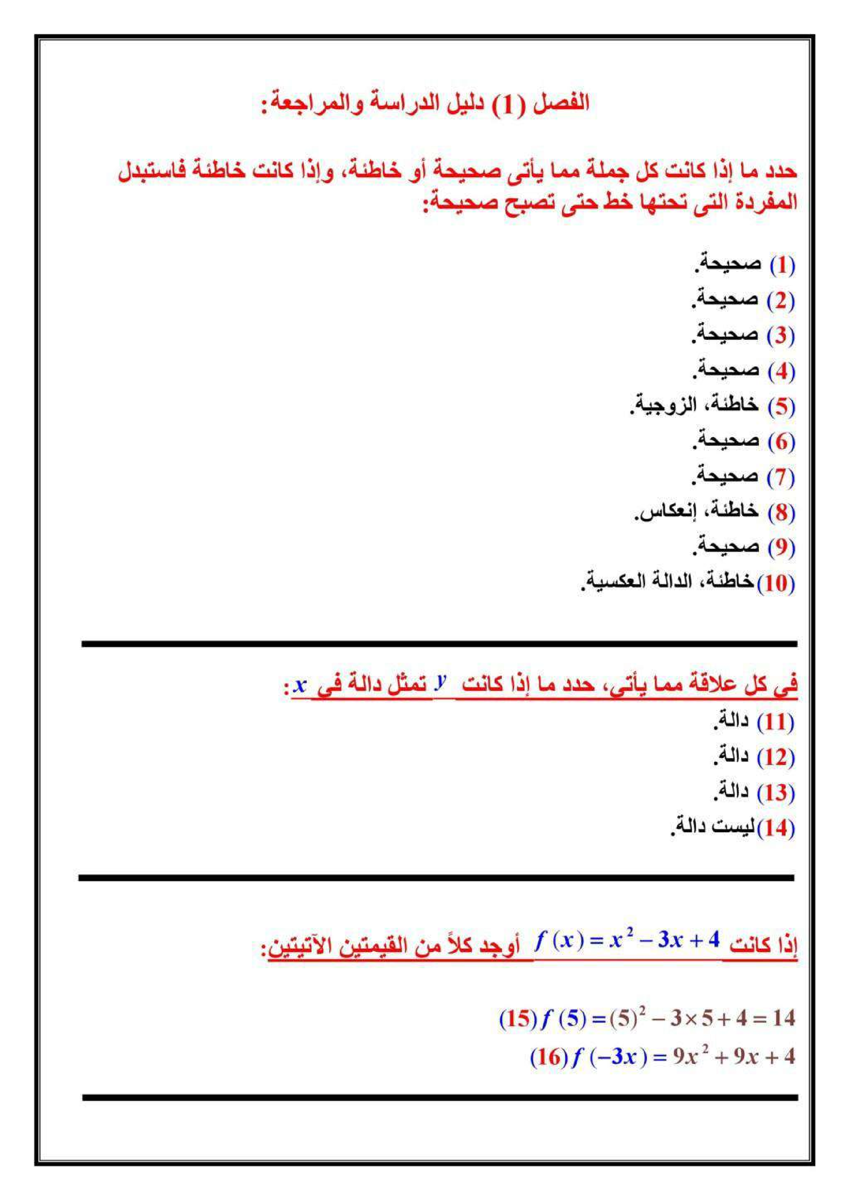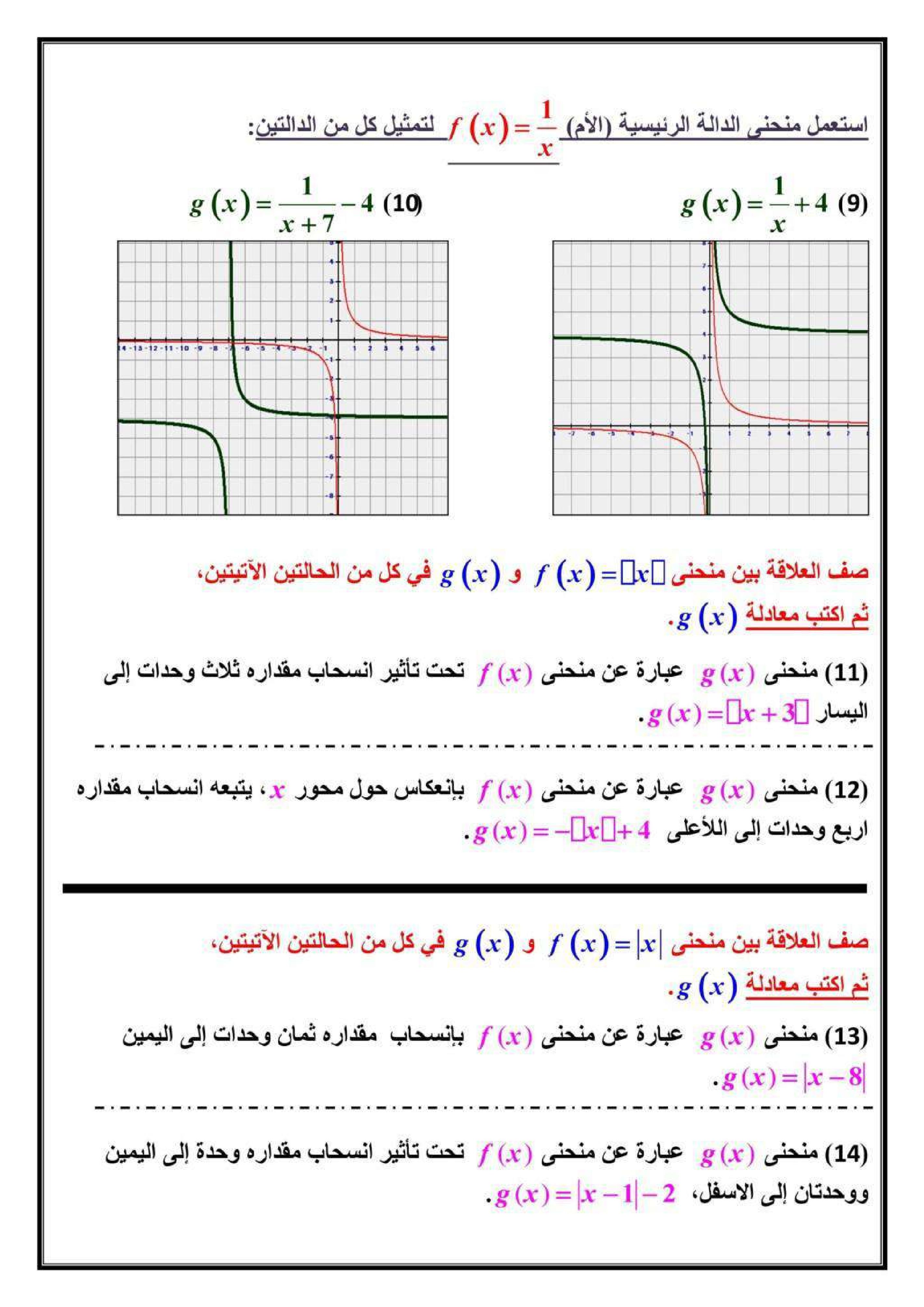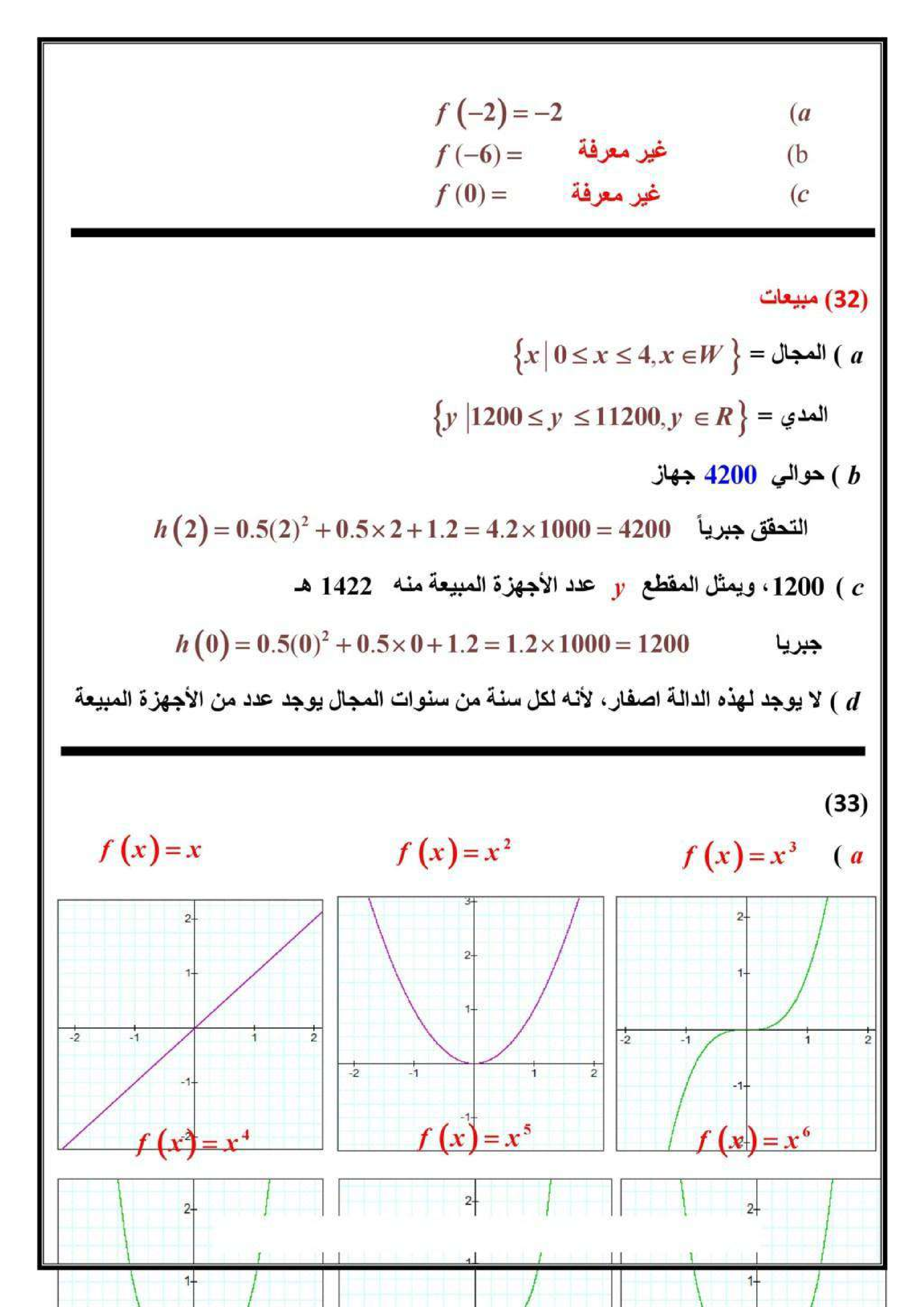 الفصل 1 - العمليات على الدوال وتركيب دالتين
