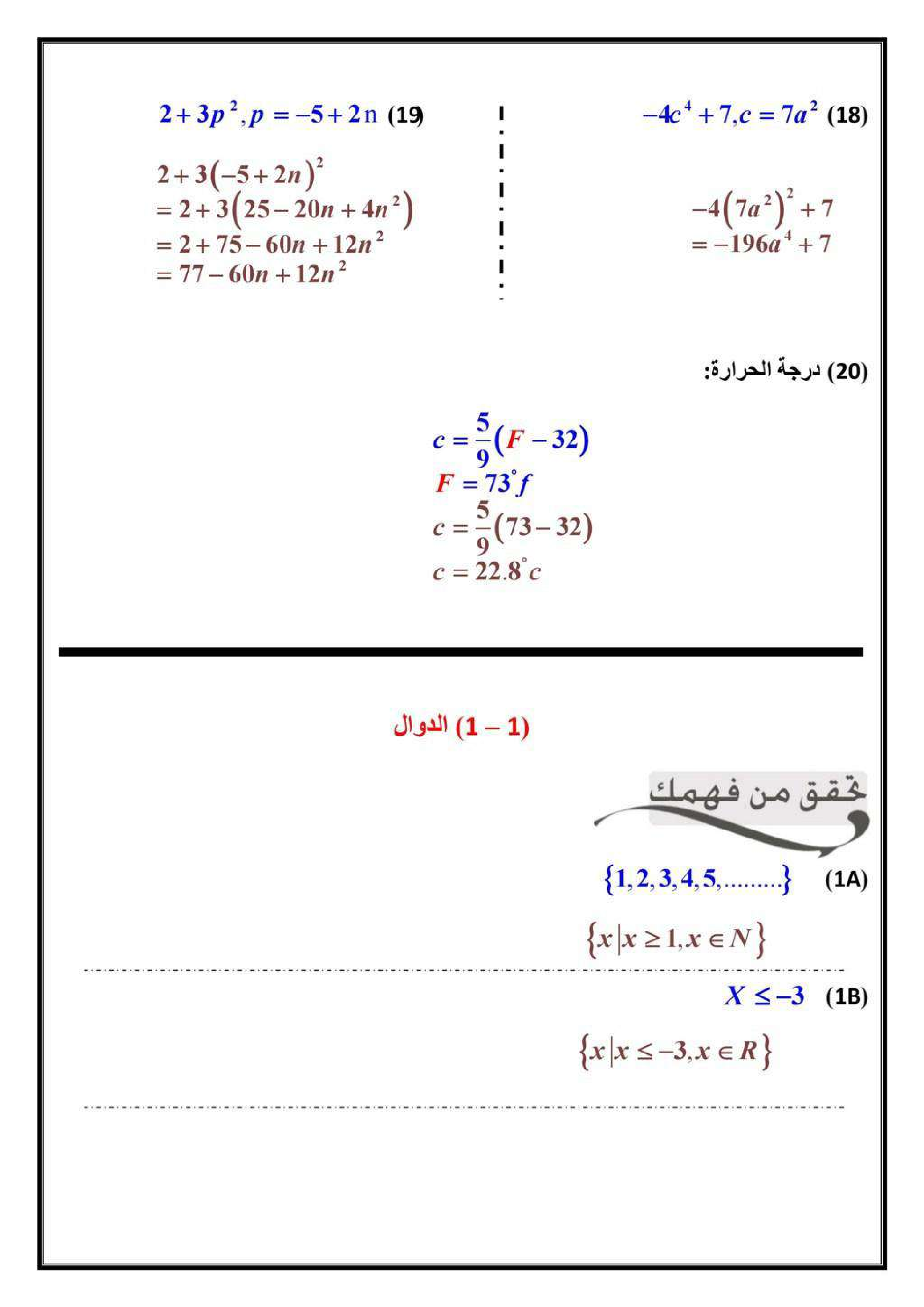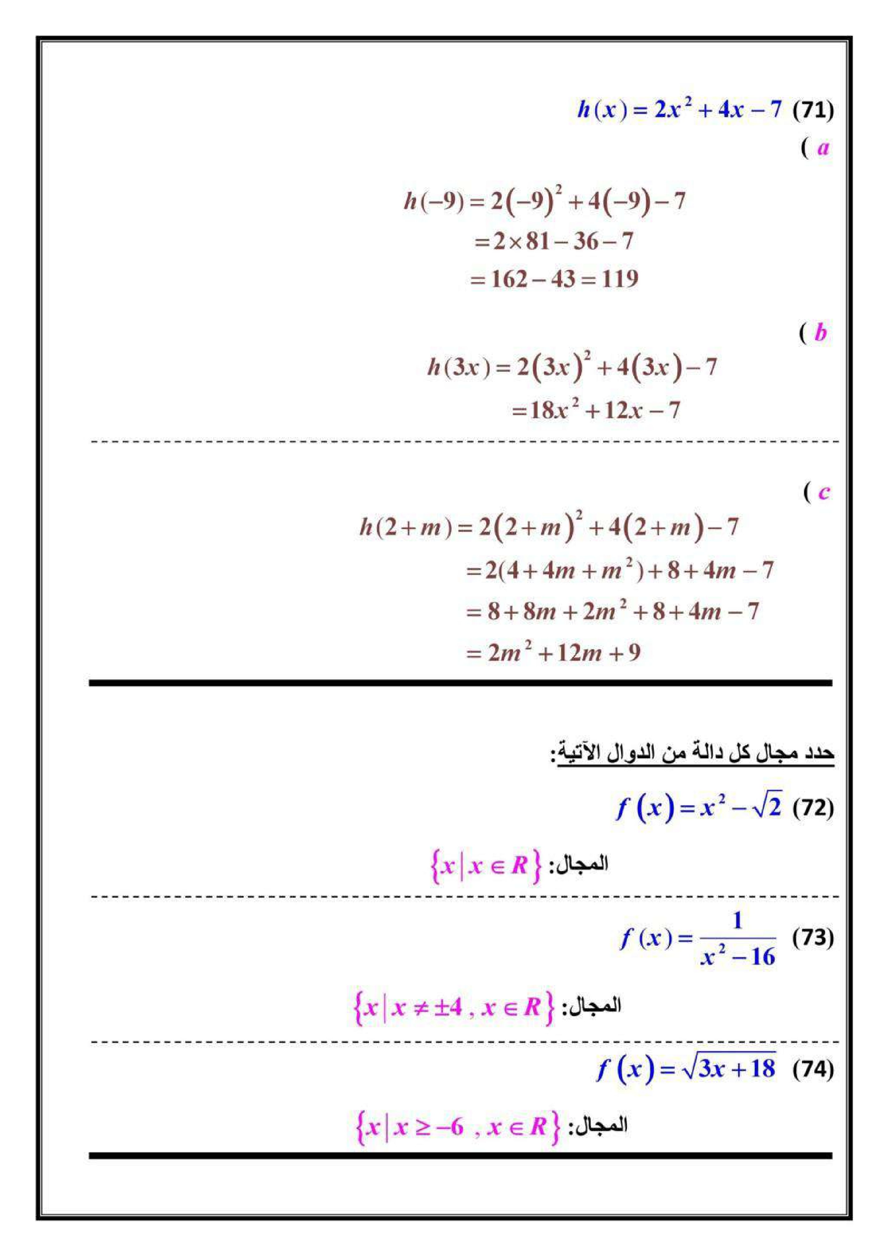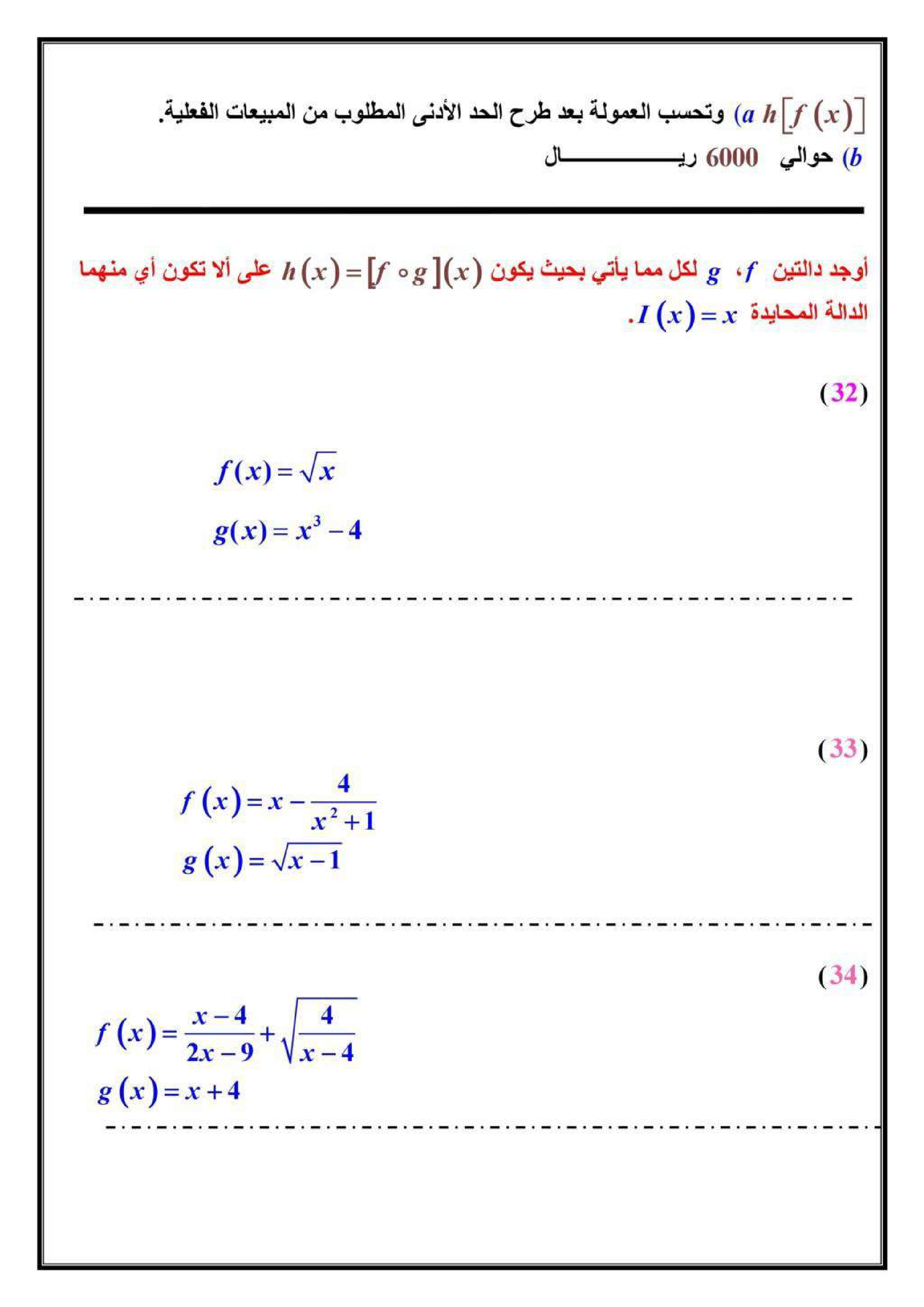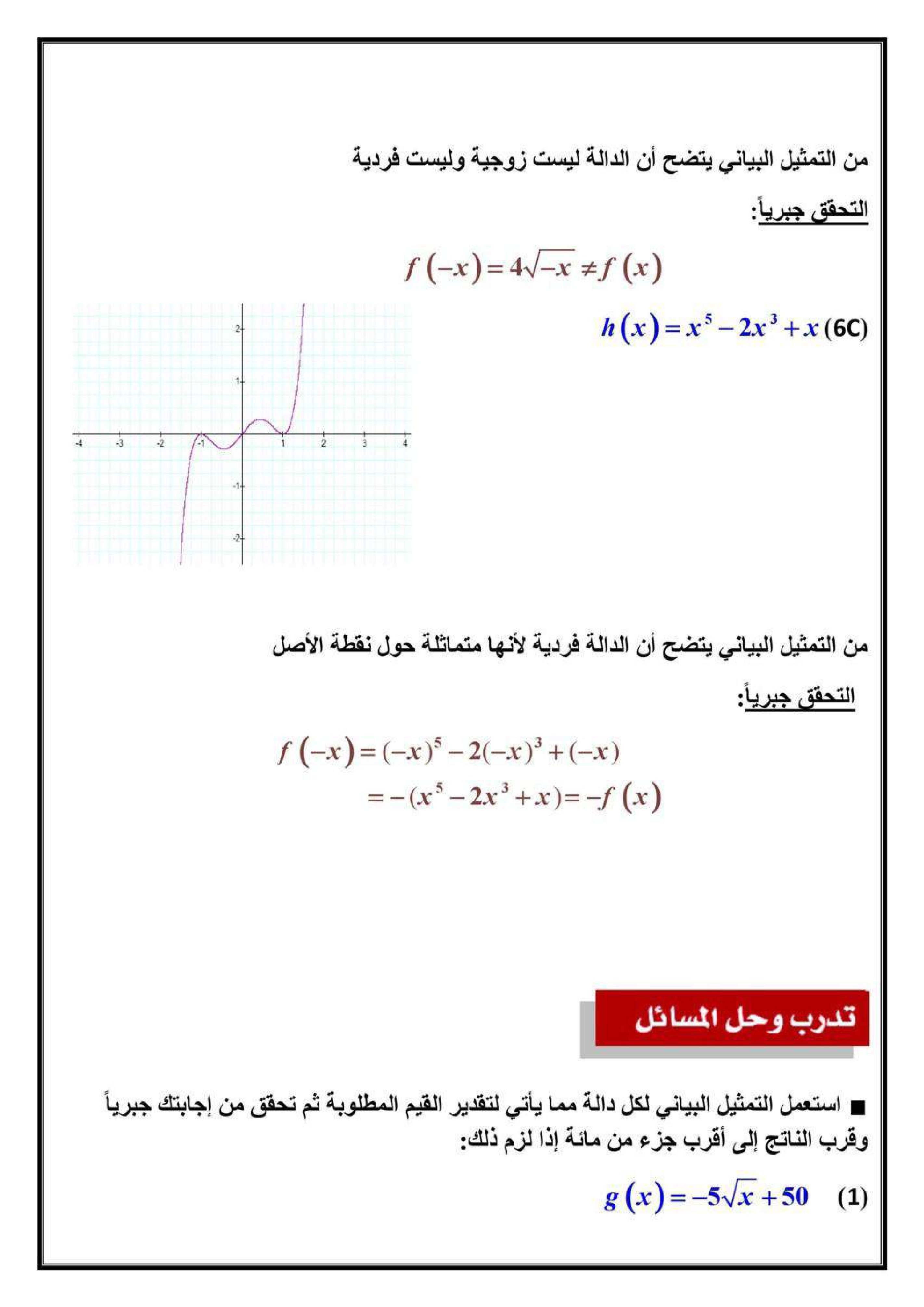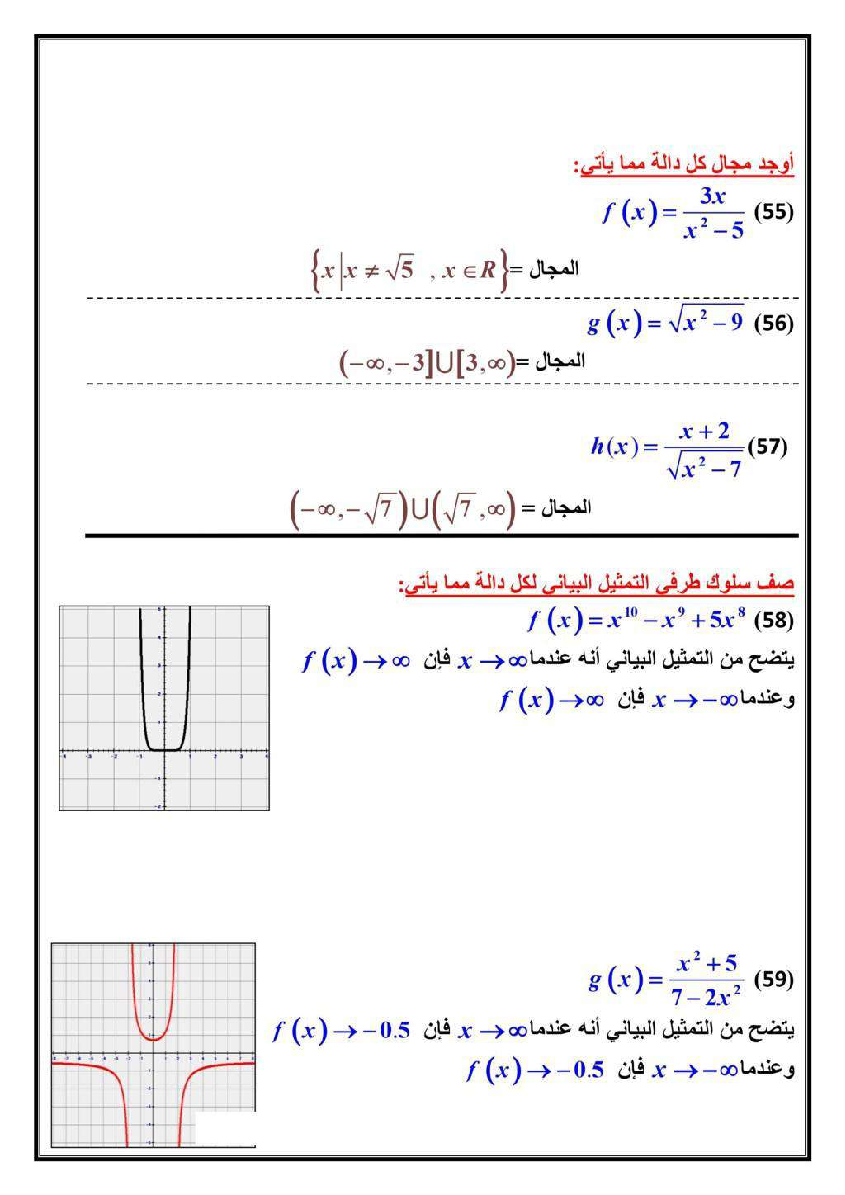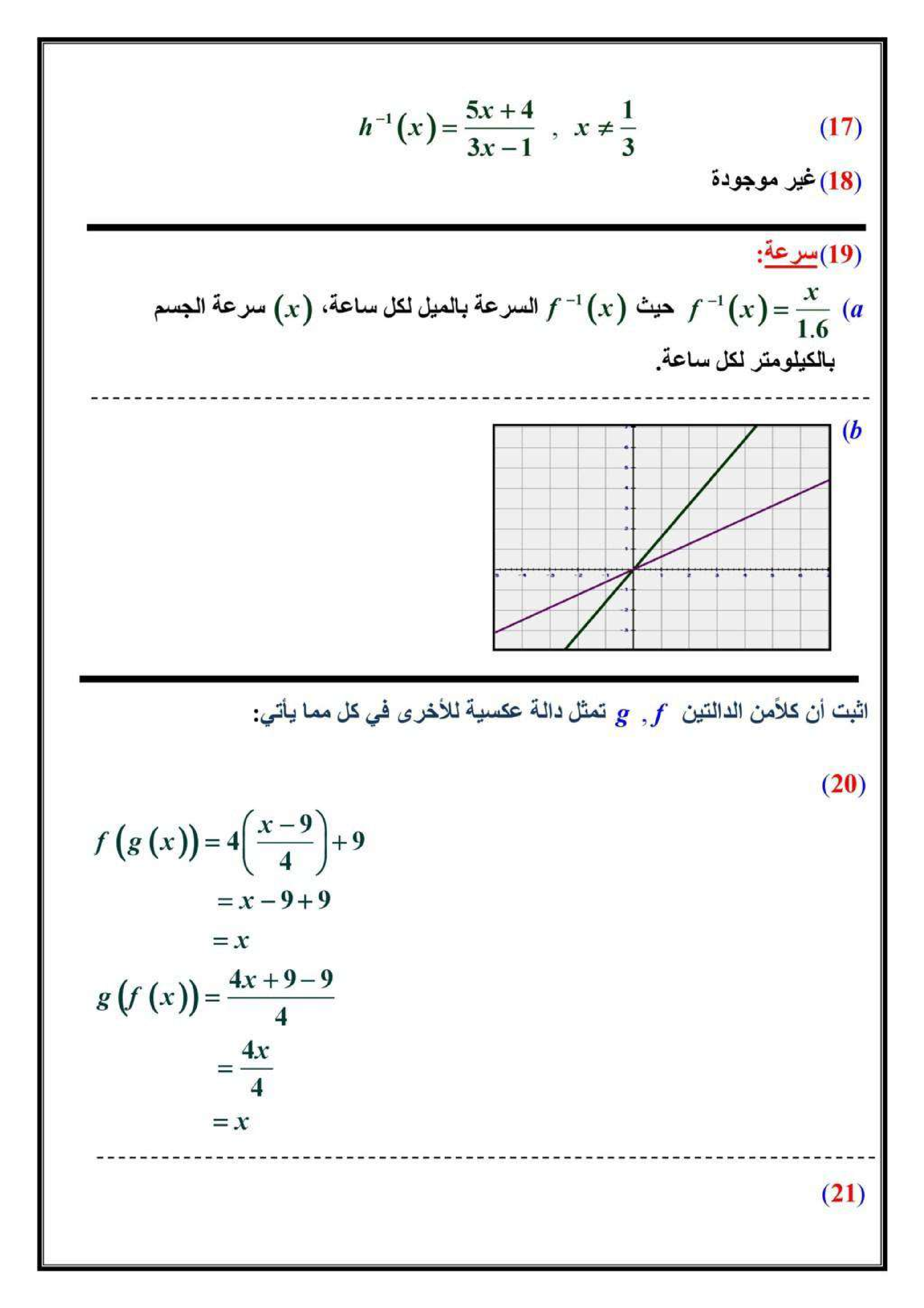 الفصل 1 - العمليات على الدوال وتركيب دالتين