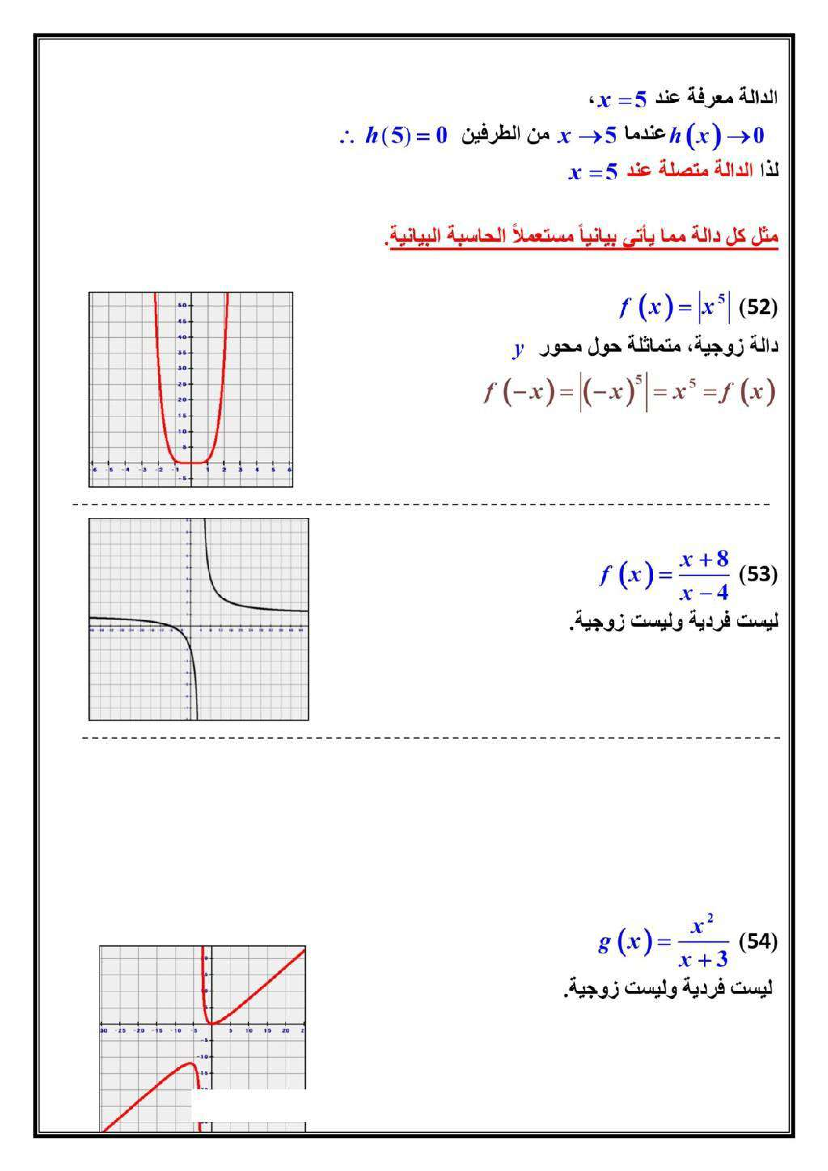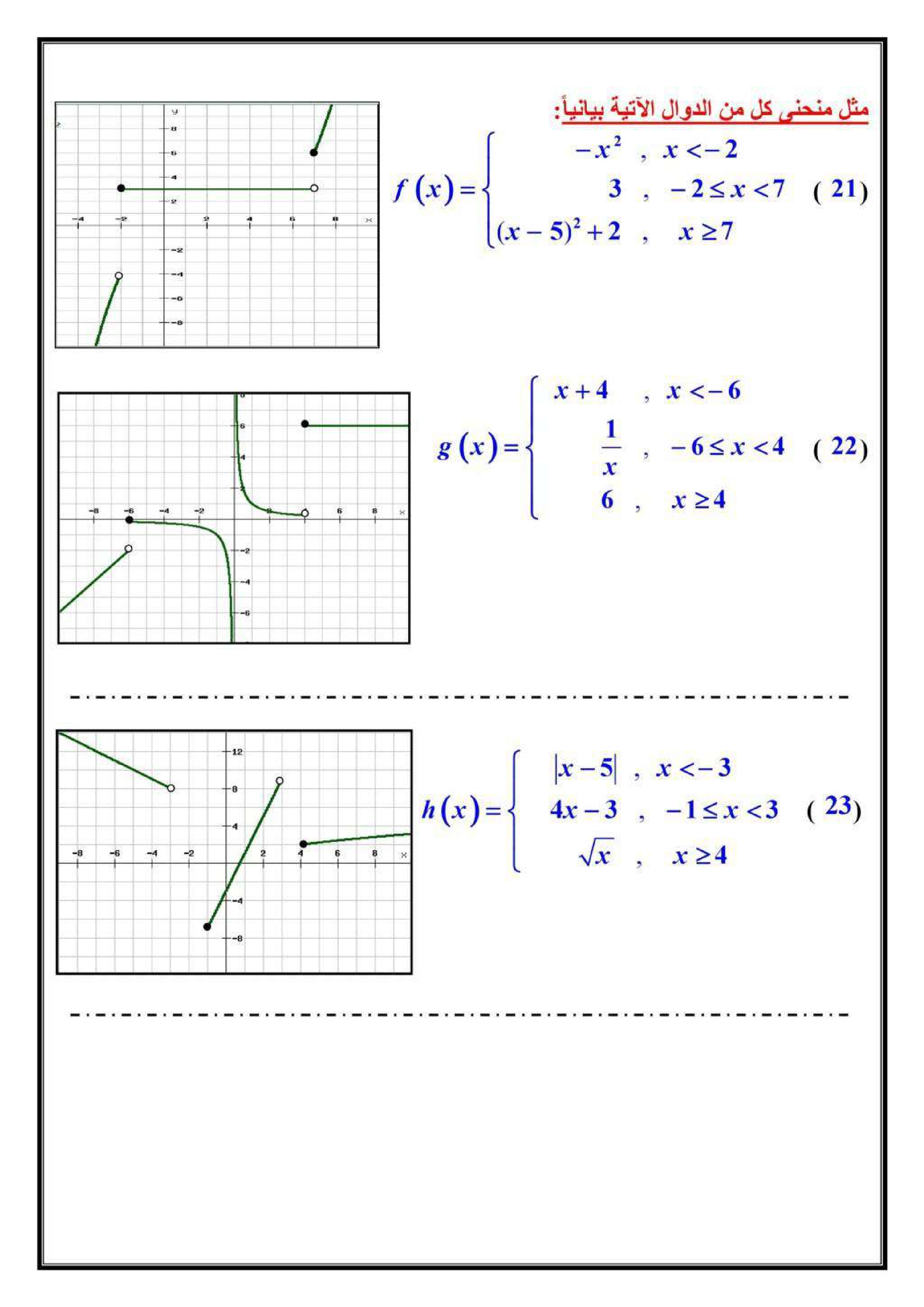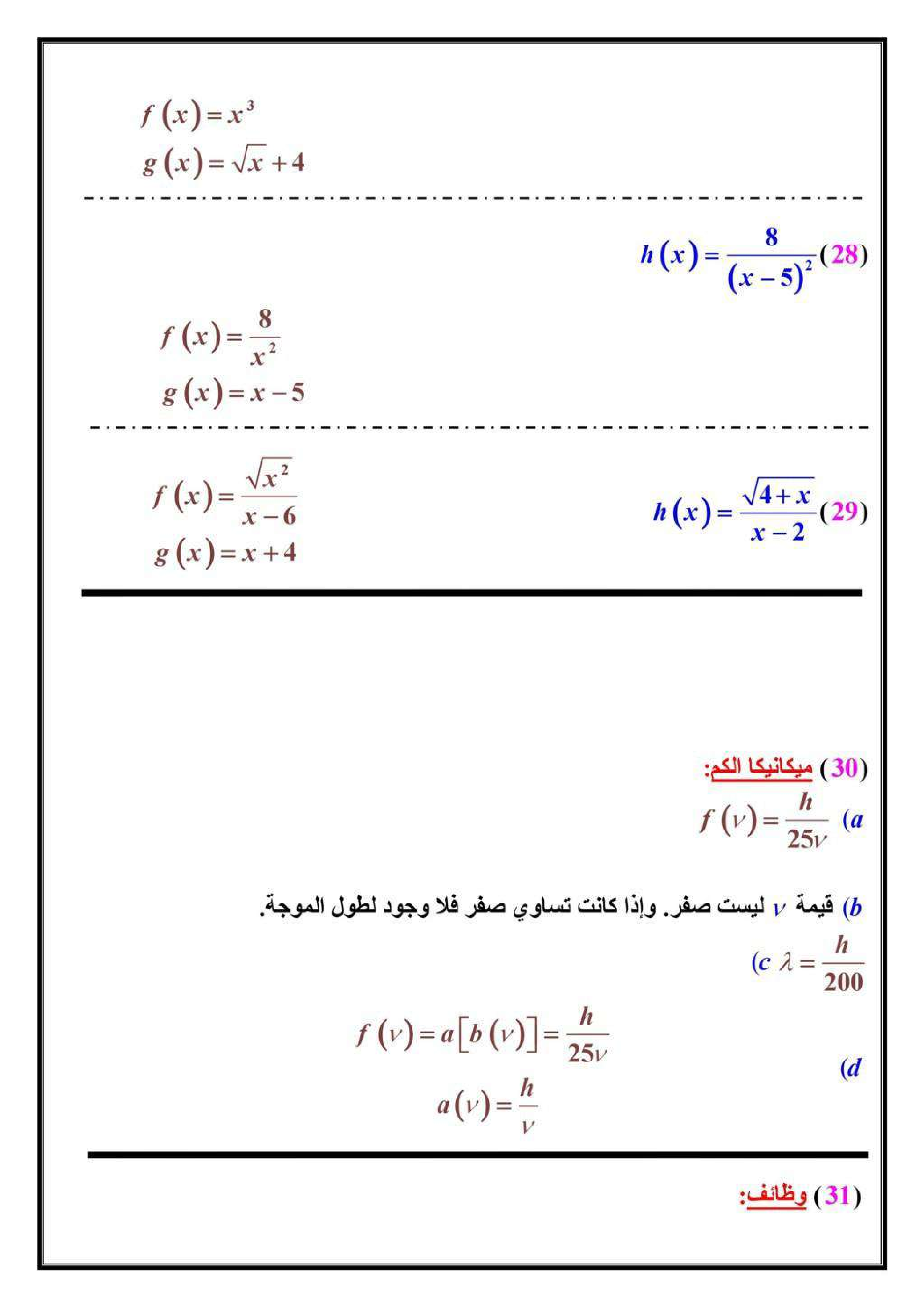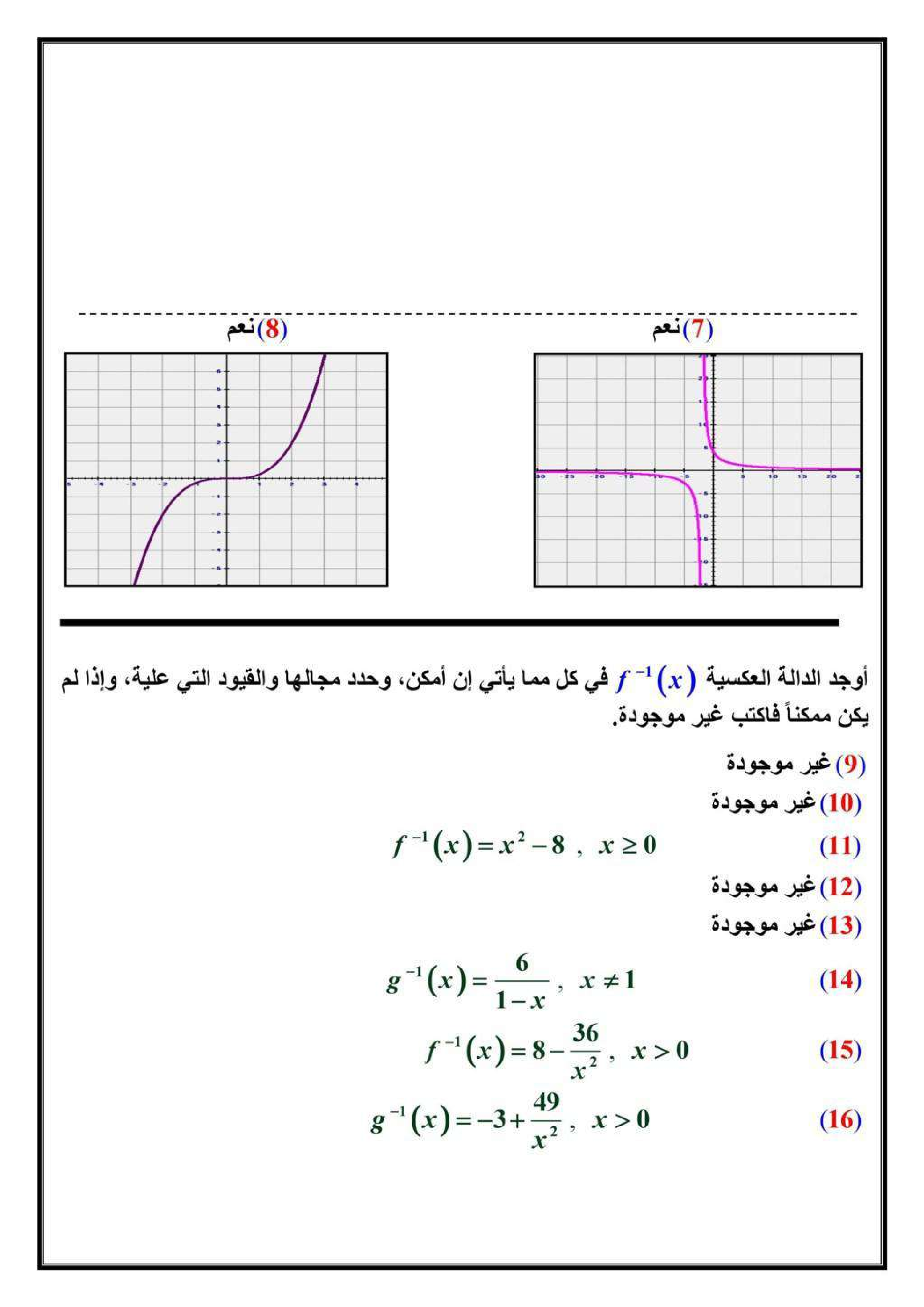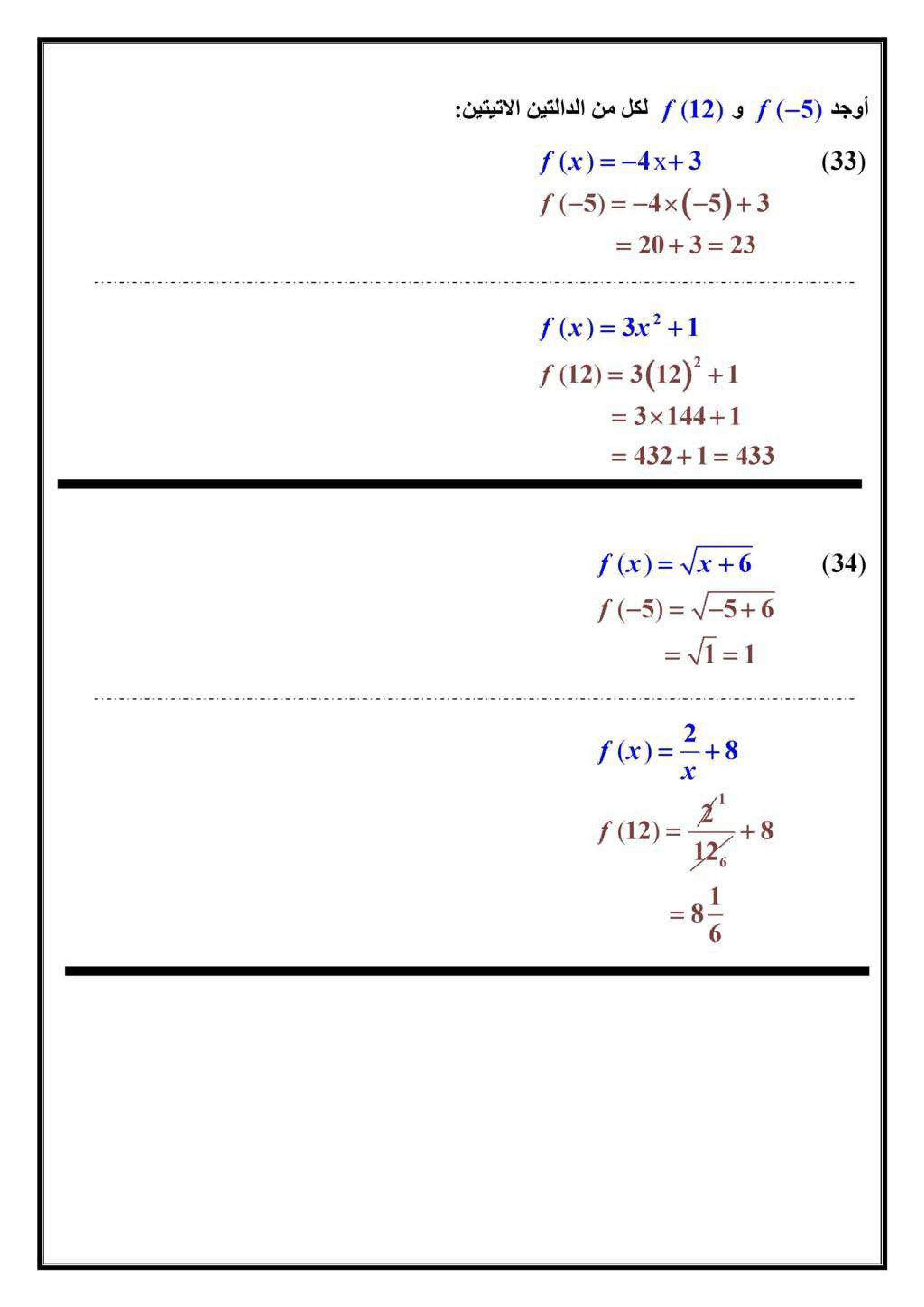 الفصل 1 - العمليات على الدوال وتركيب دالتين