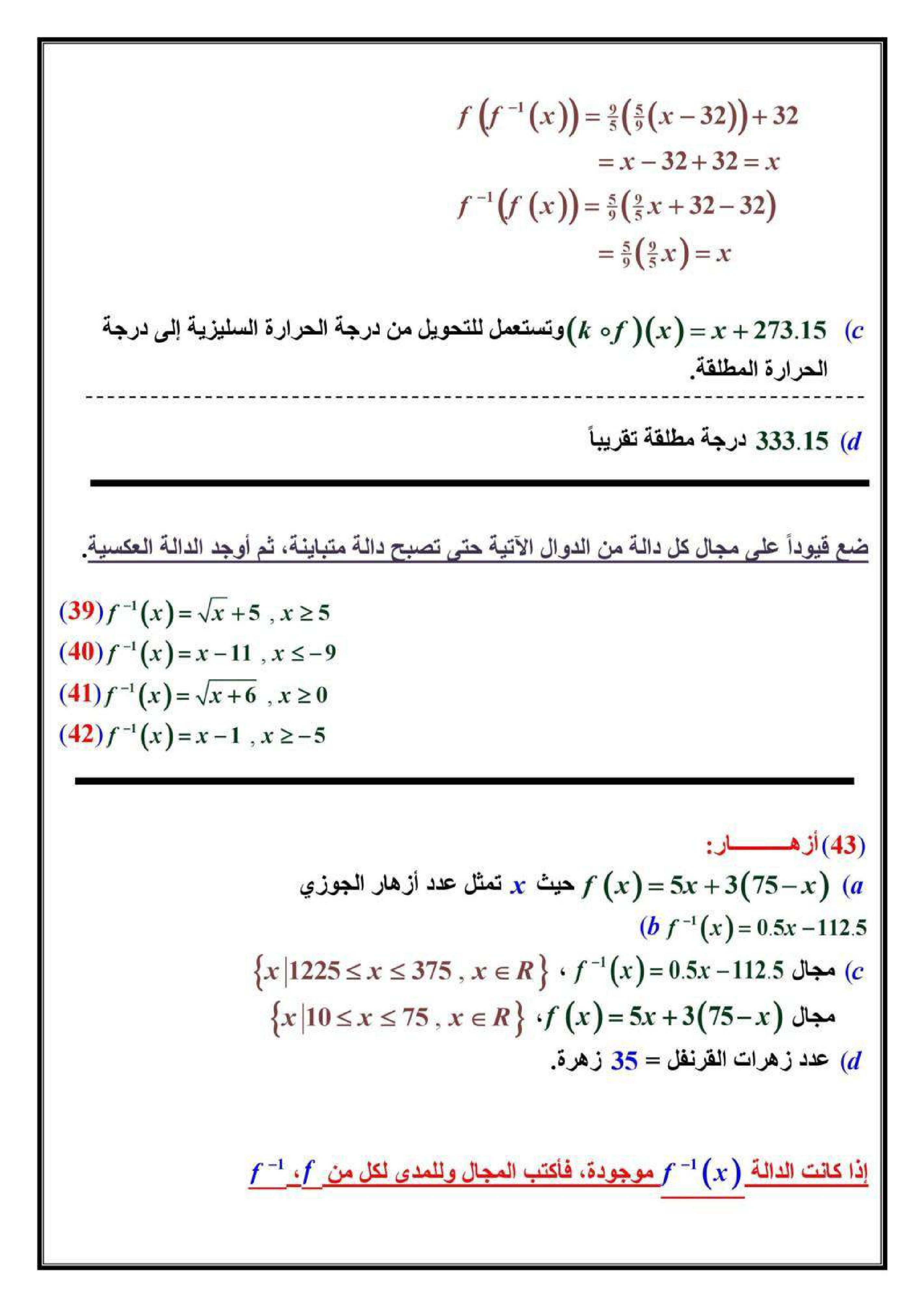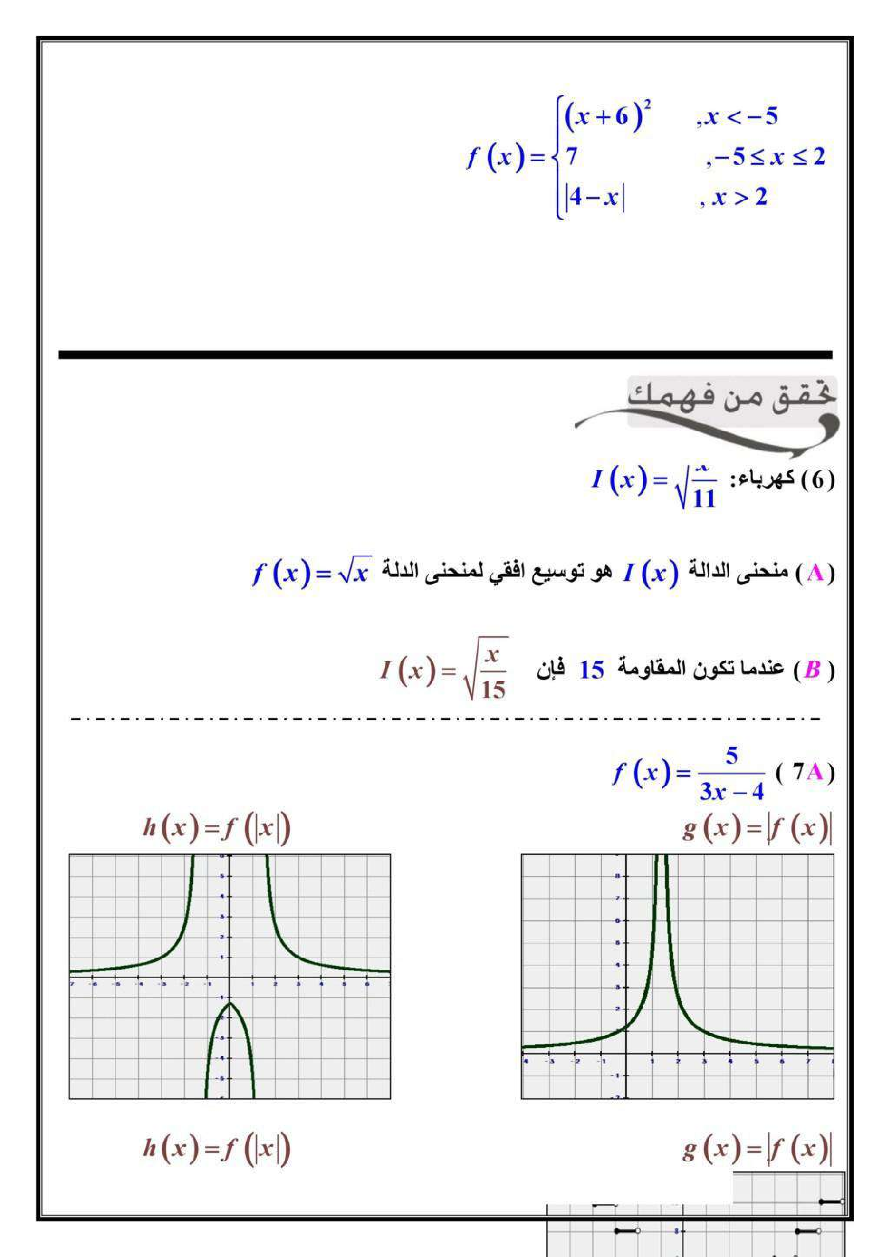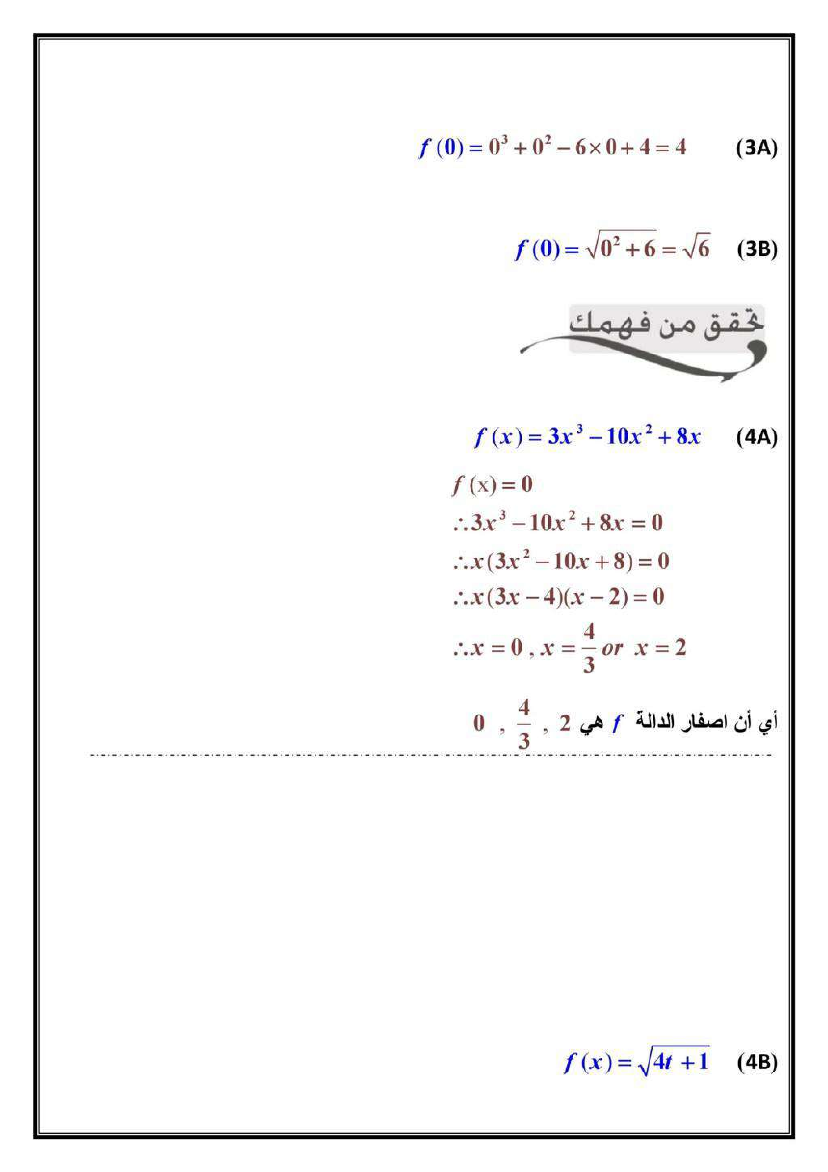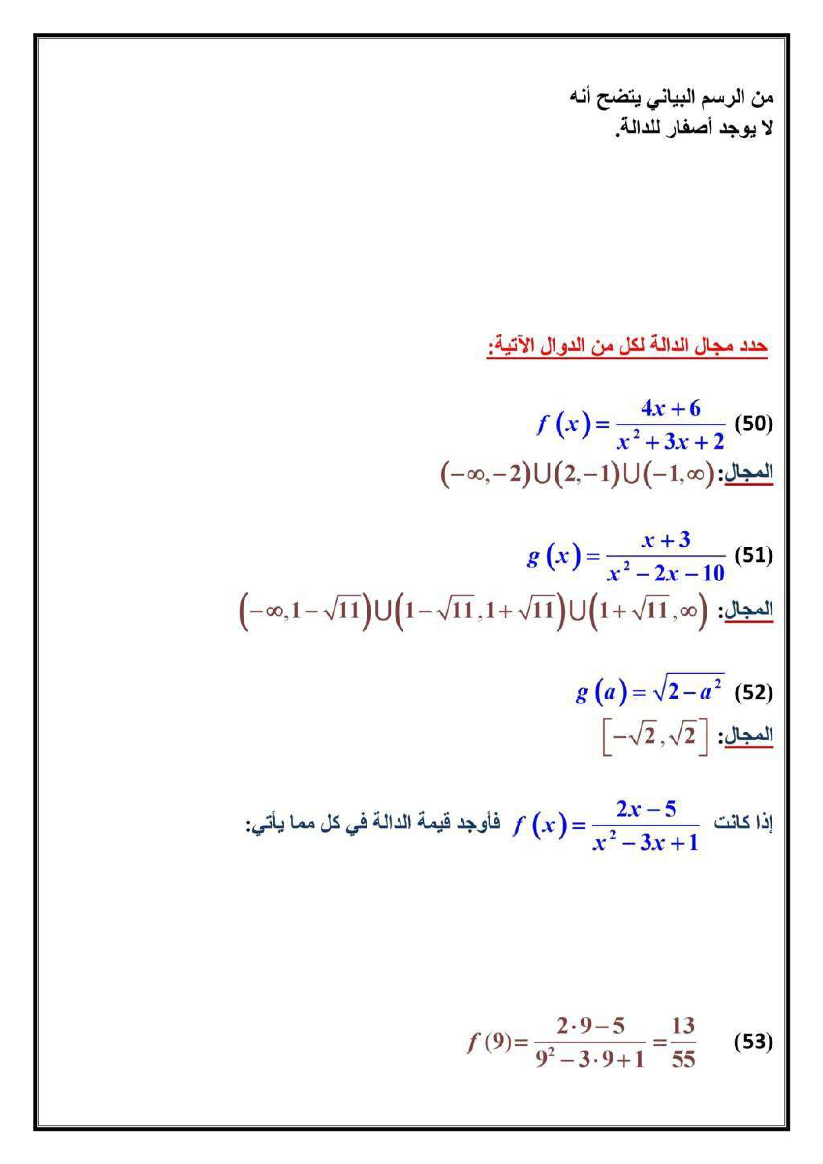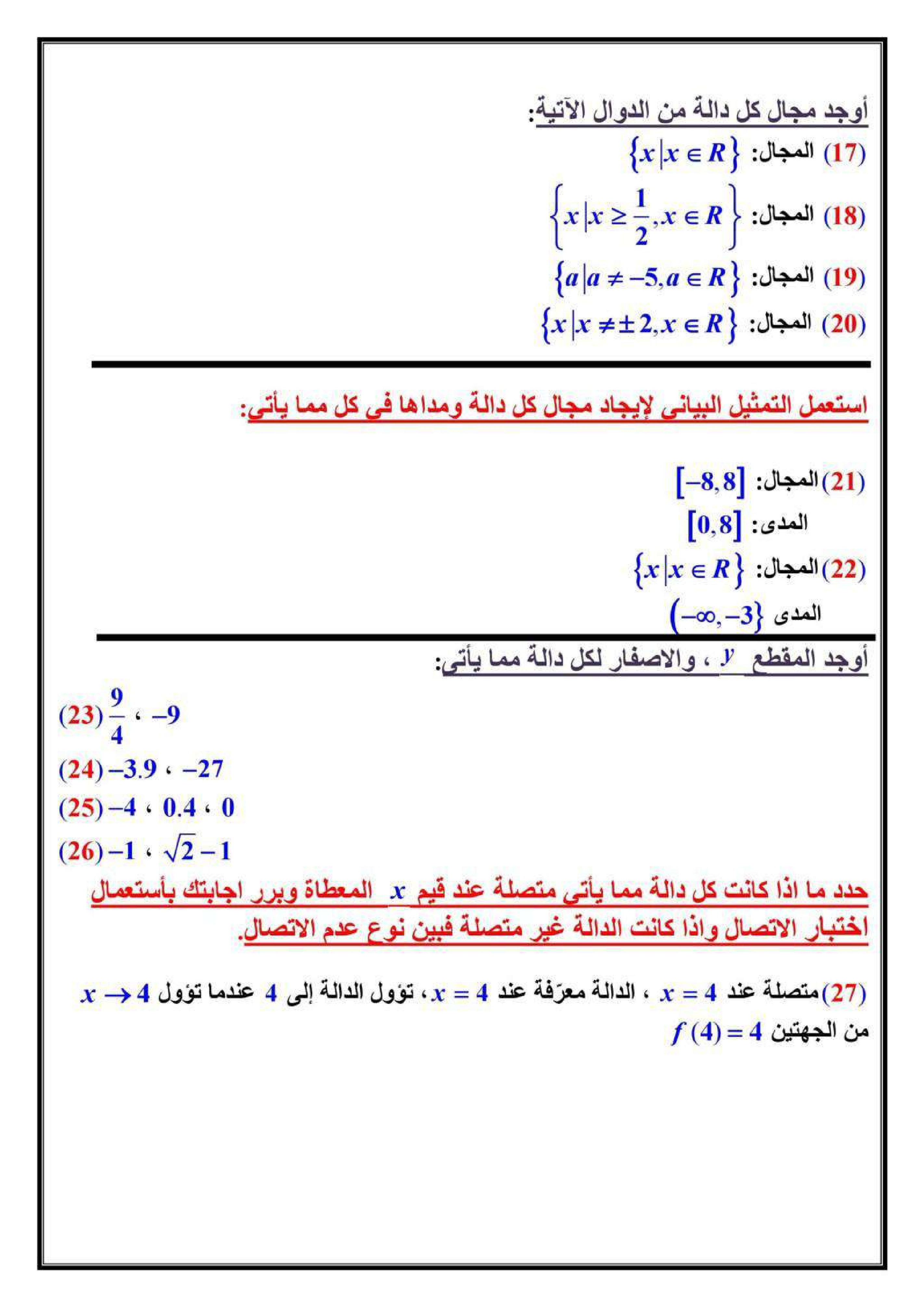 الفصل 1 - العمليات على الدوال وتركيب دالتين