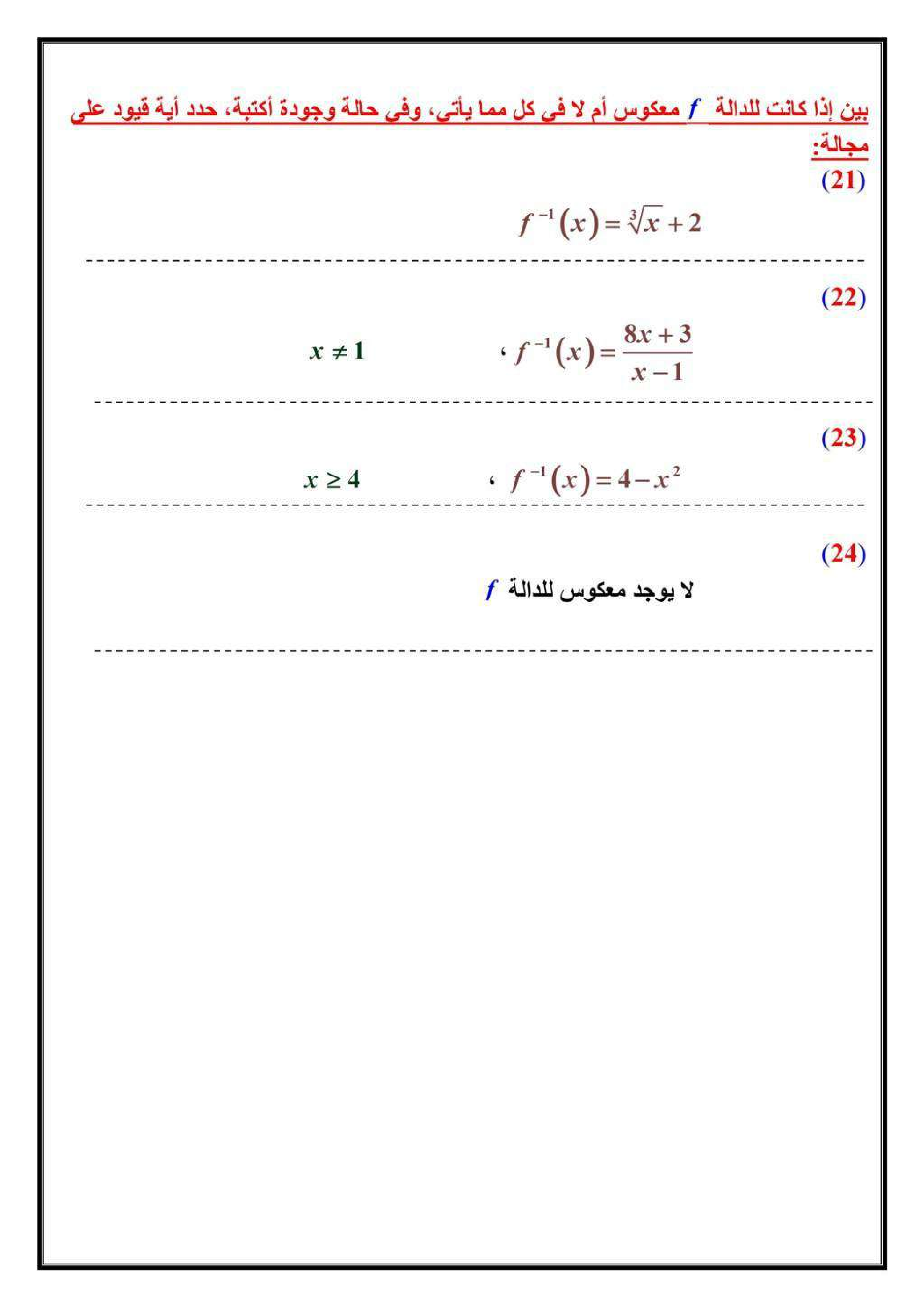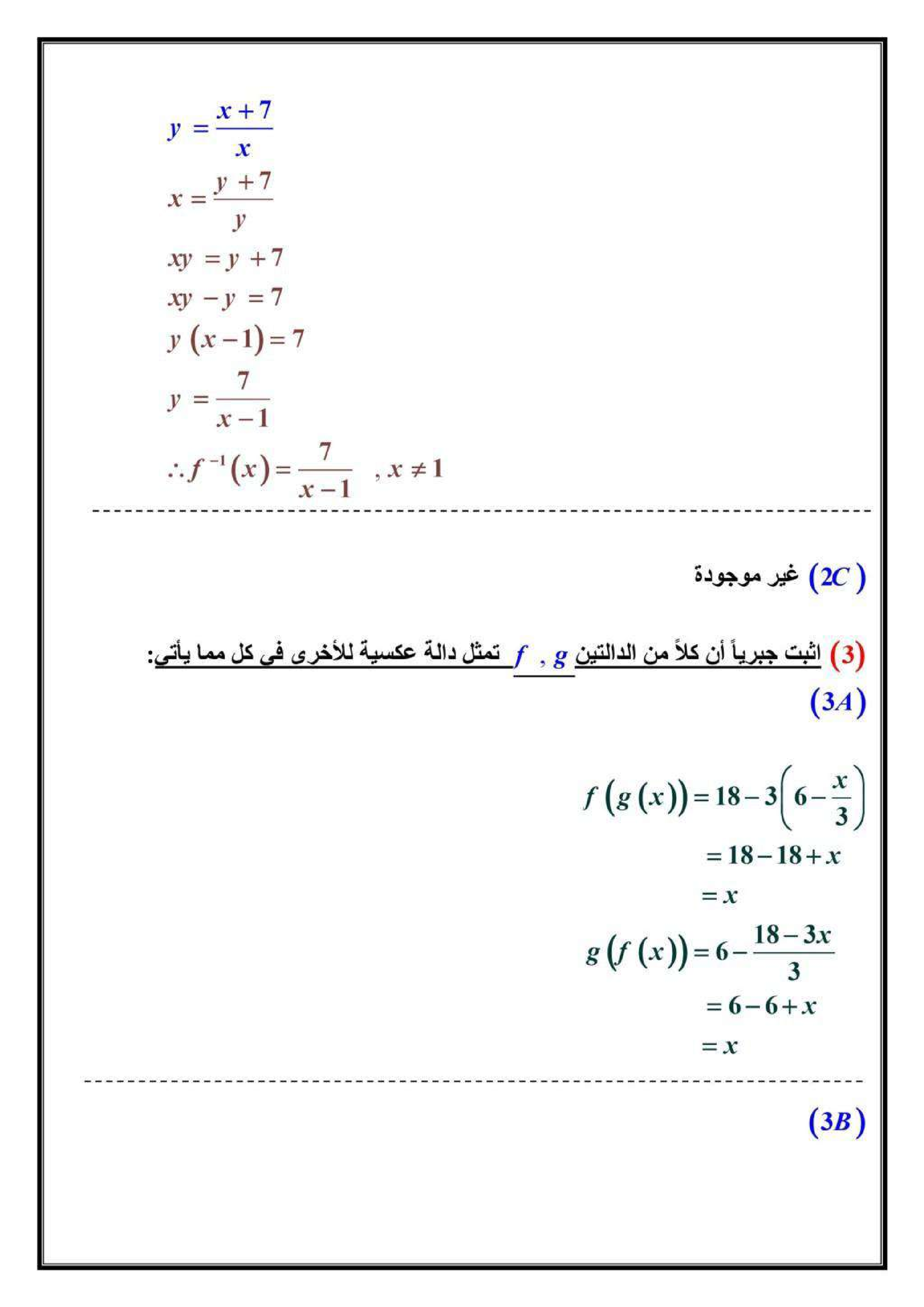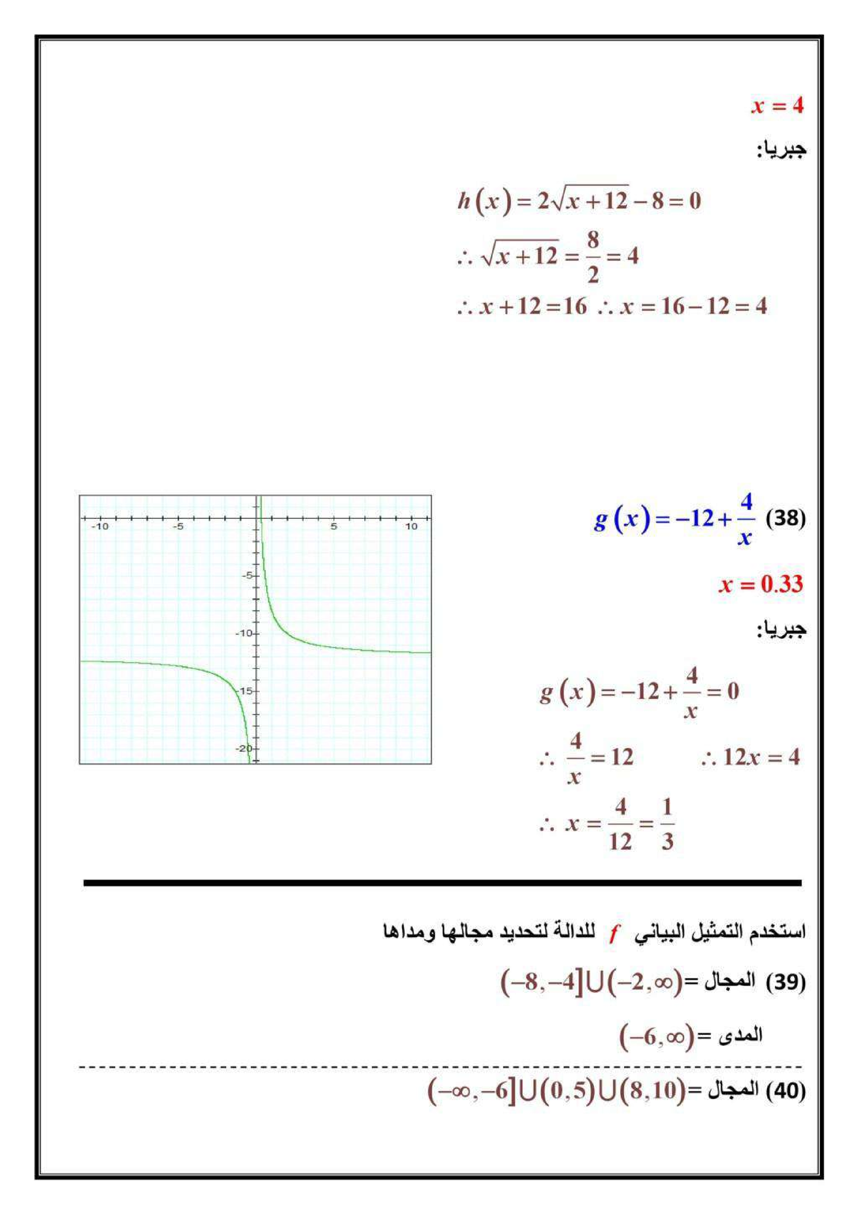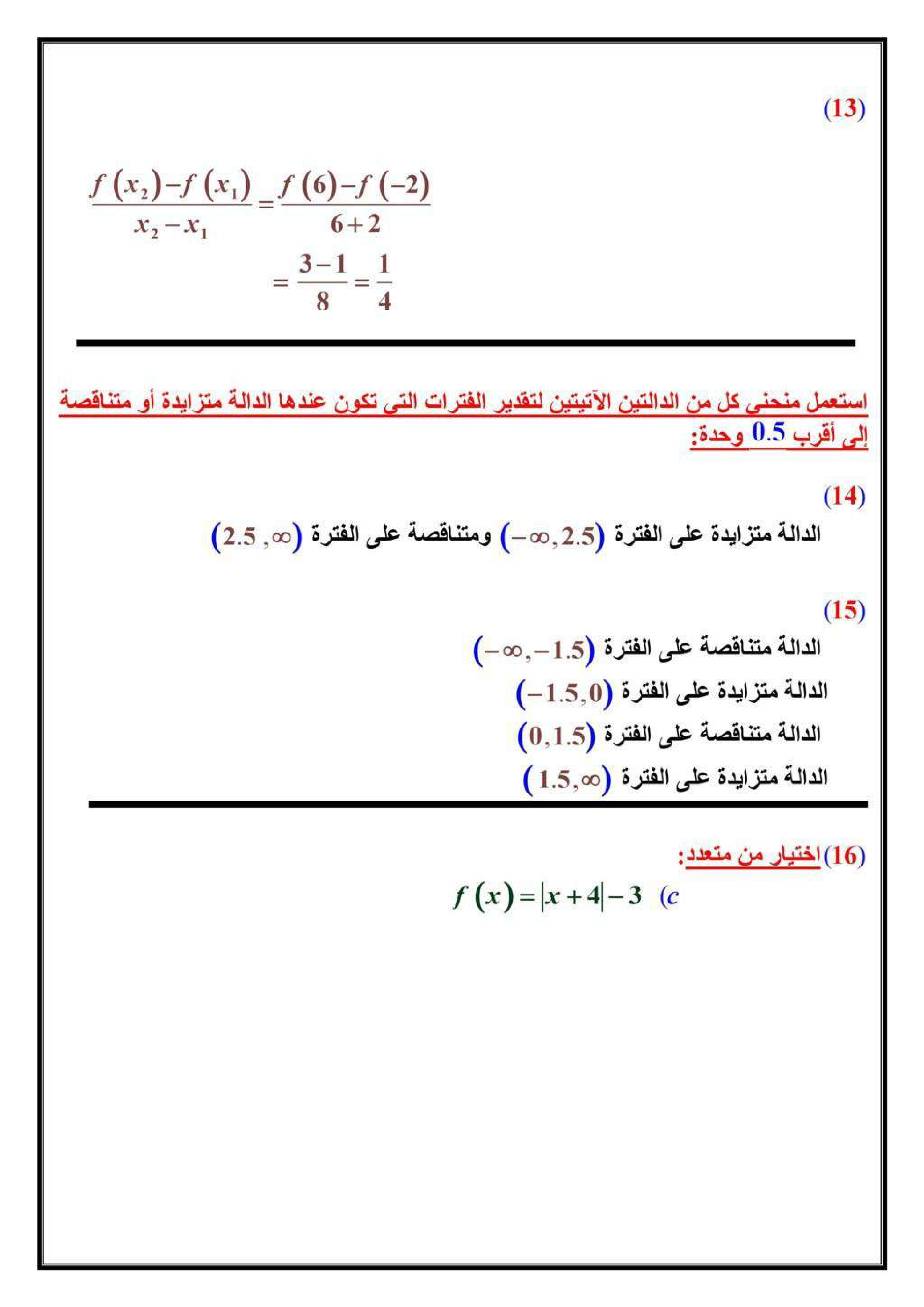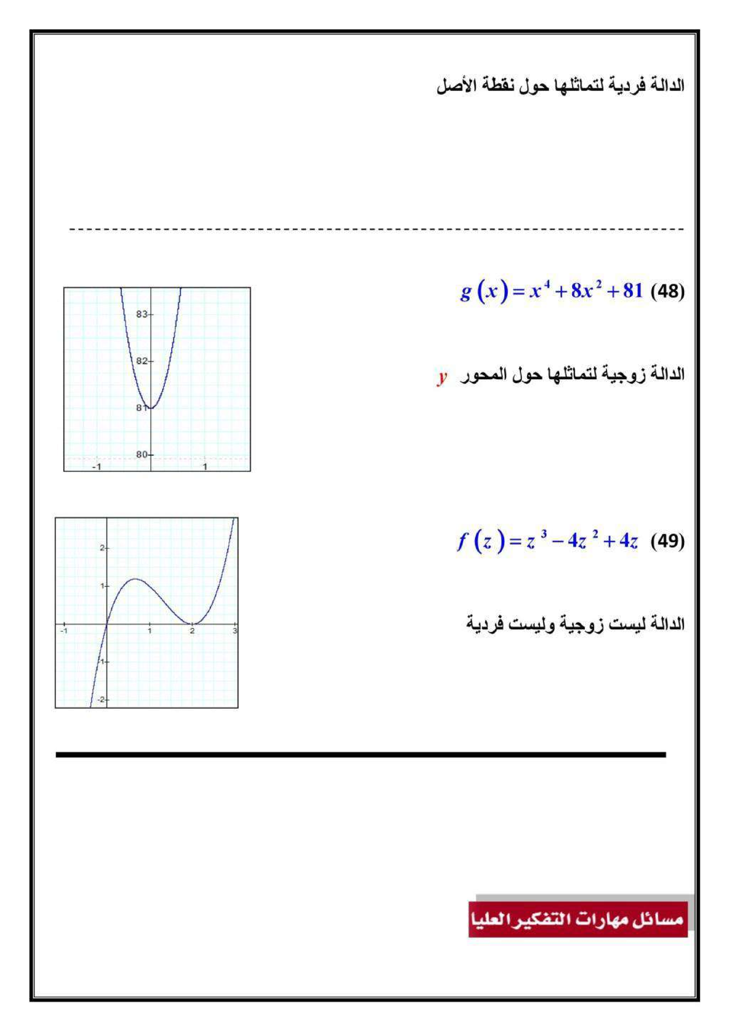 الفصل 1 - العمليات على الدوال وتركيب دالتين