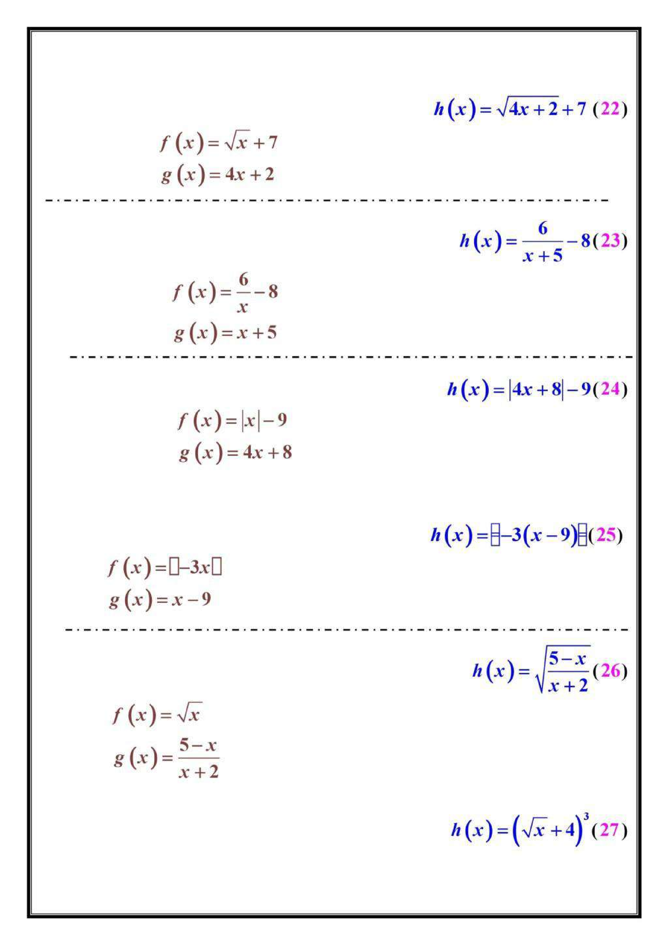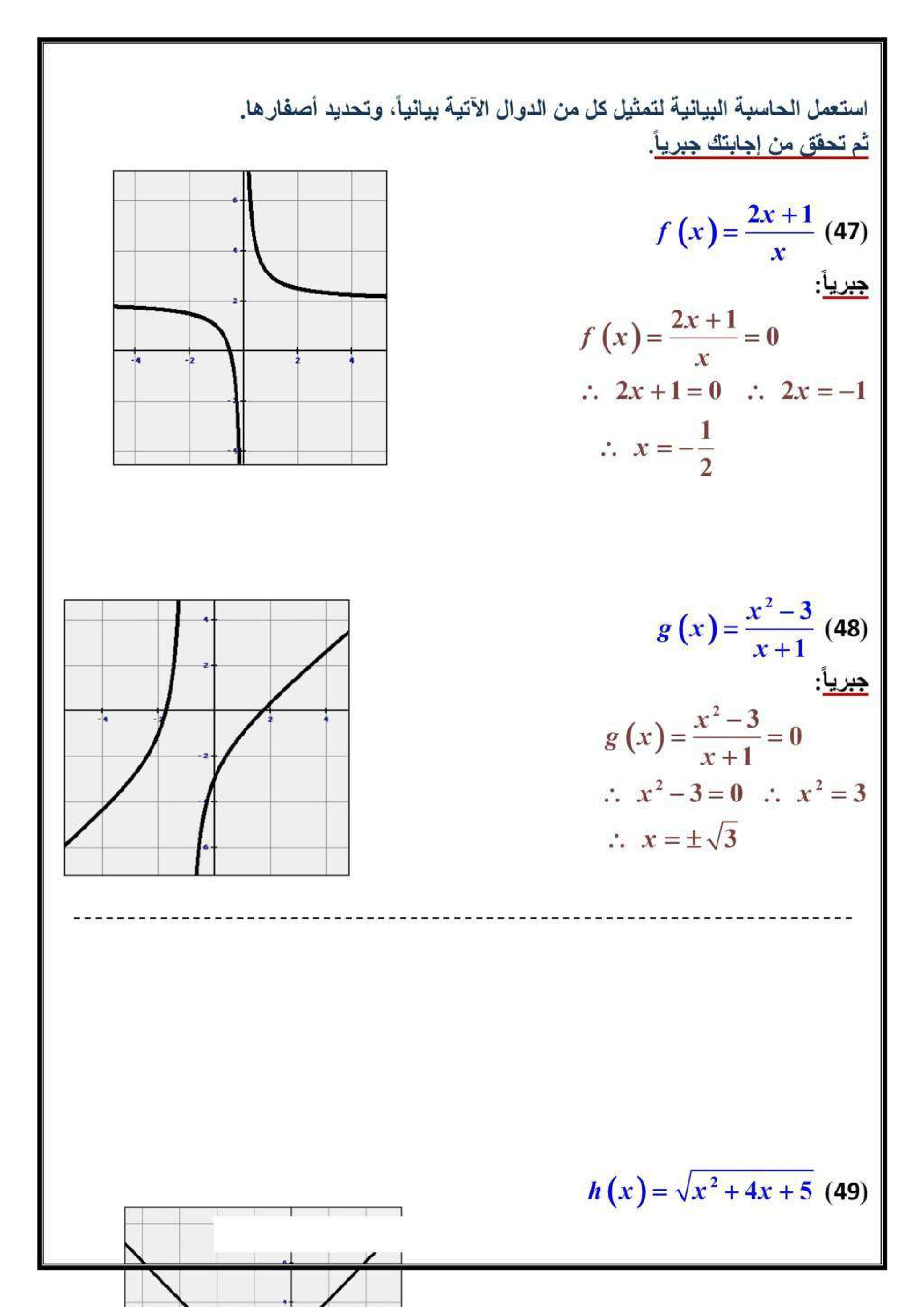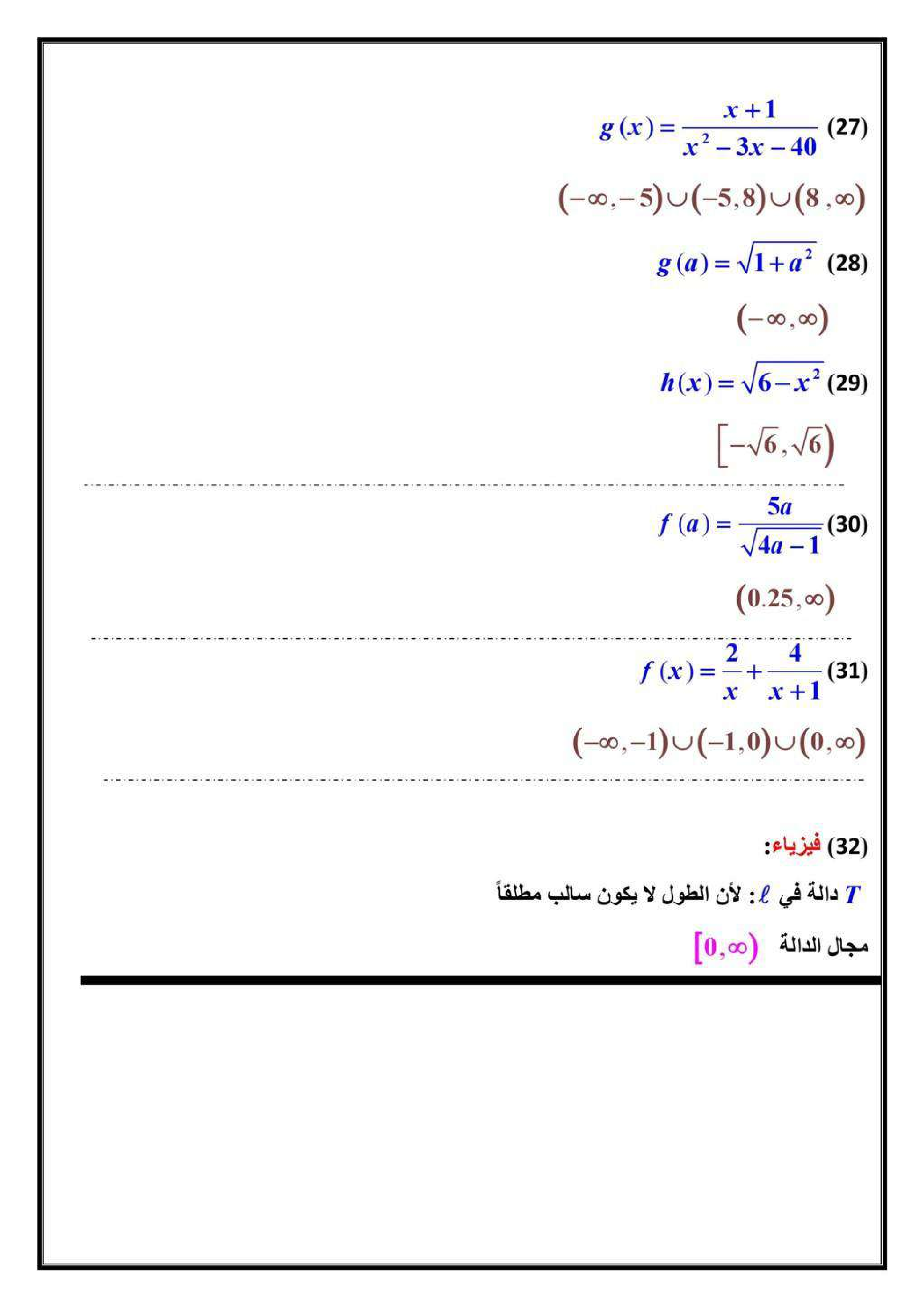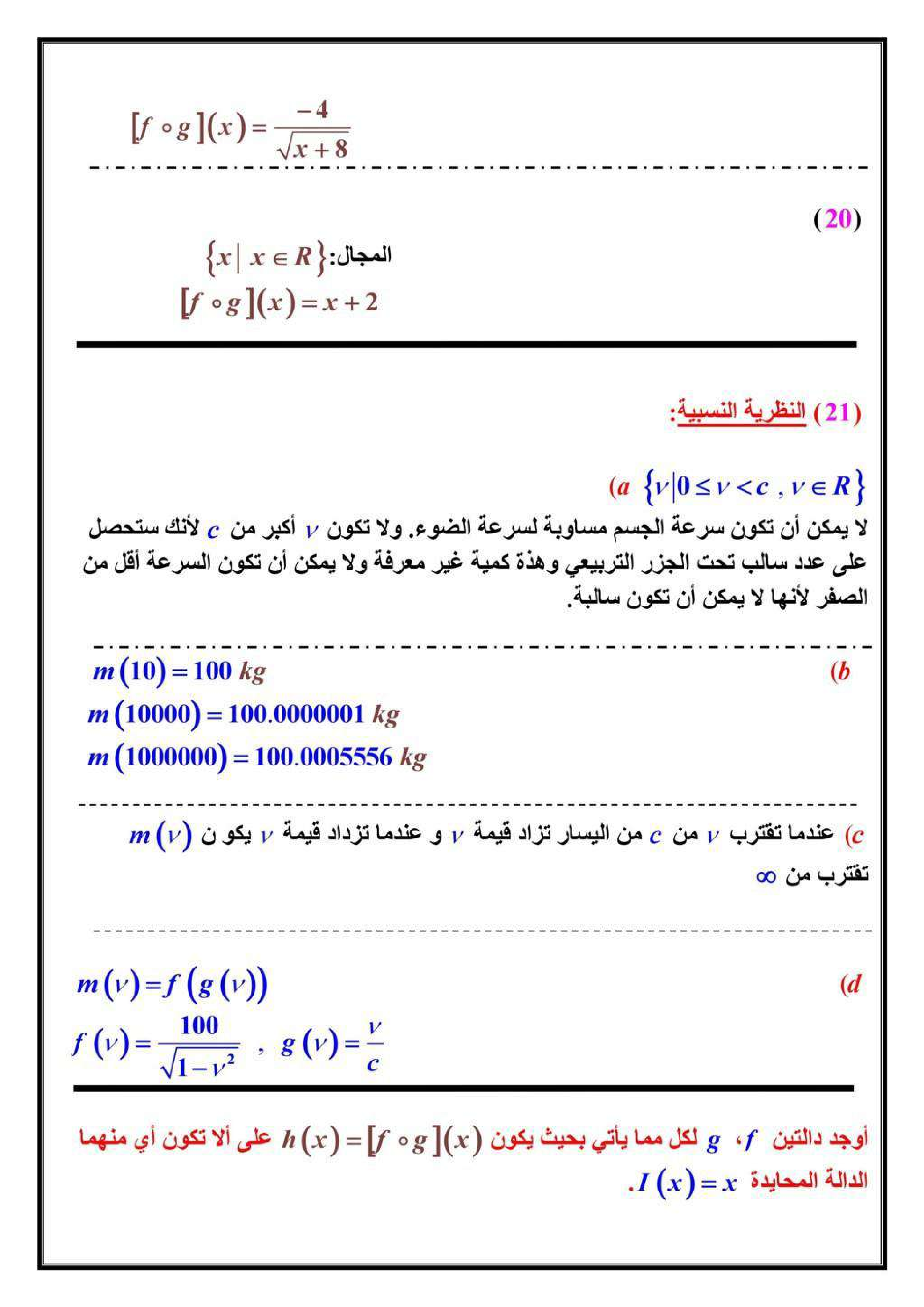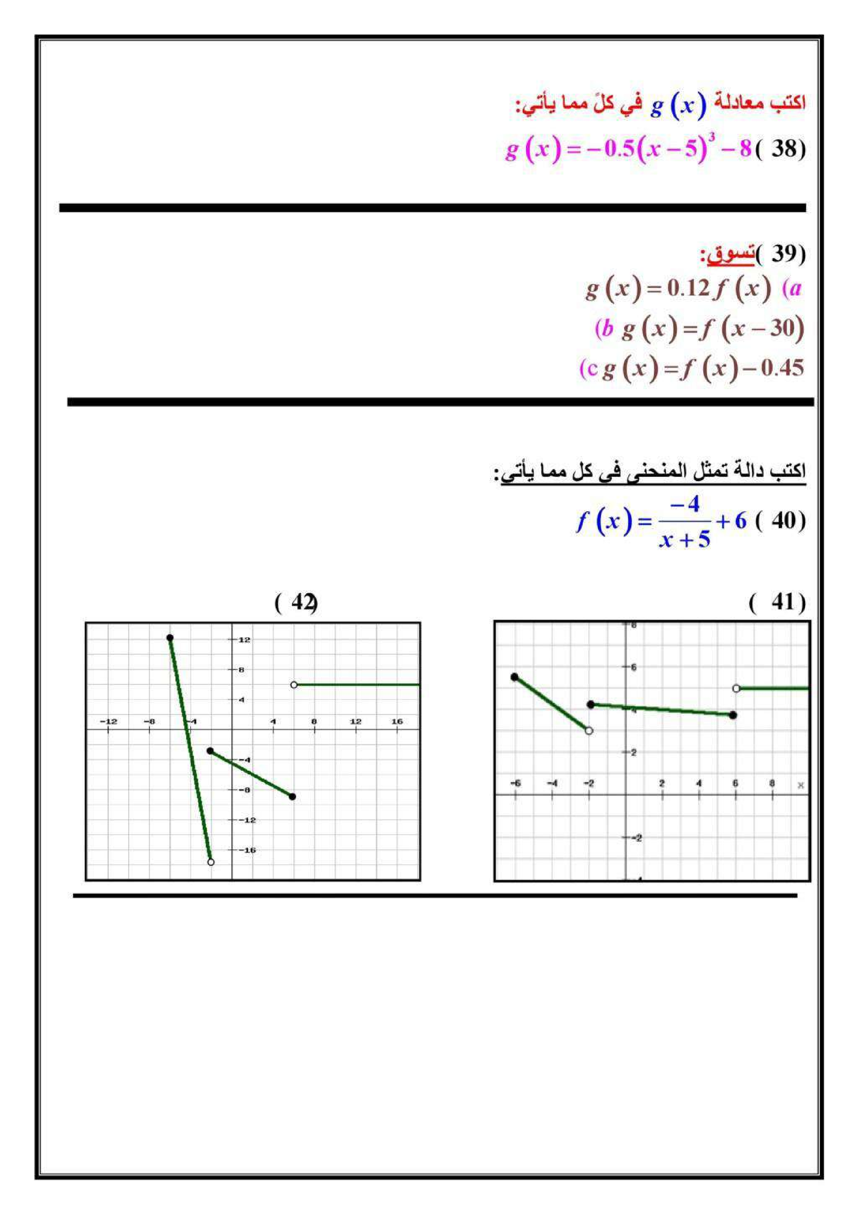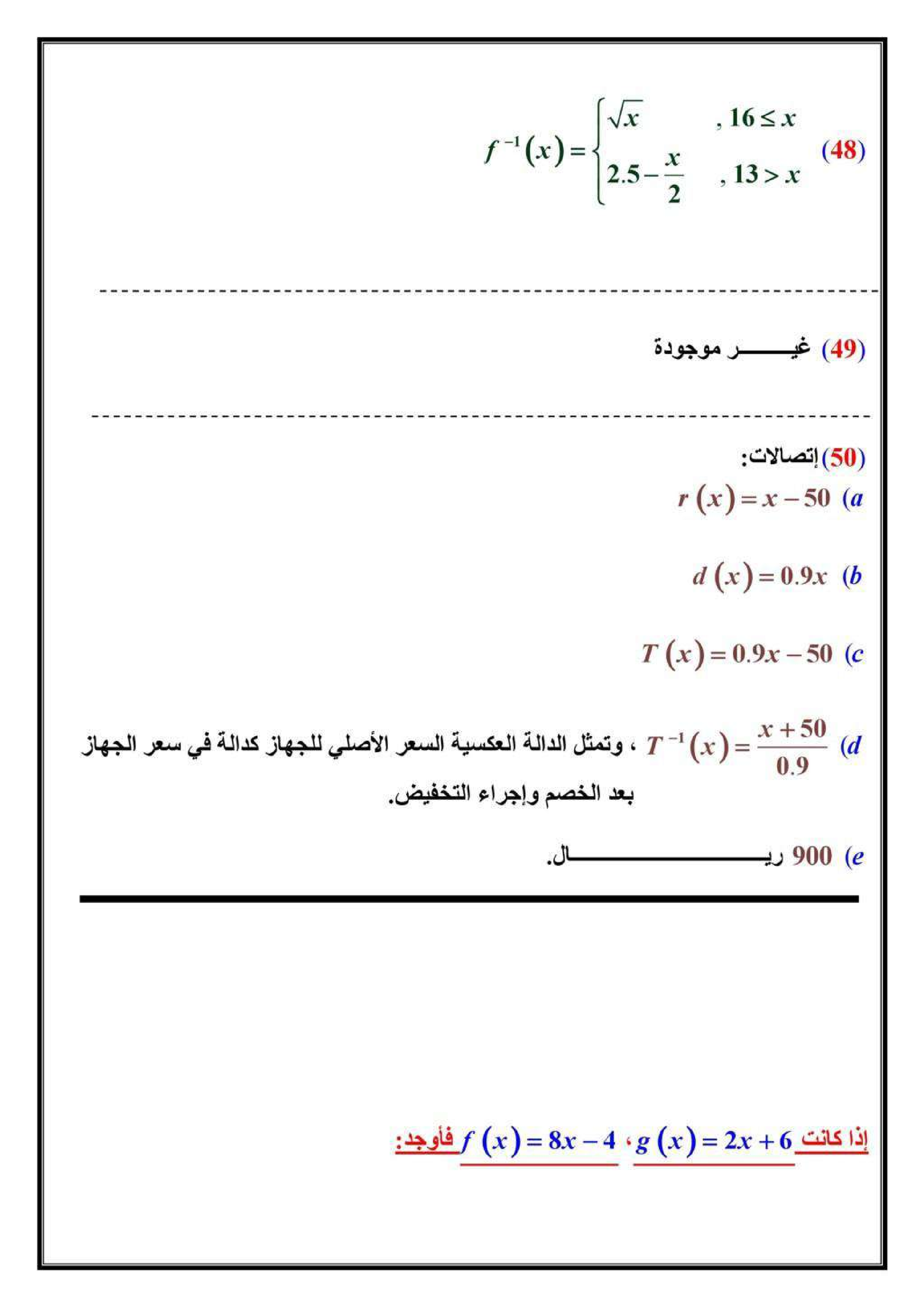 الفصل 1 - العمليات على الدوال وتركيب دالتين