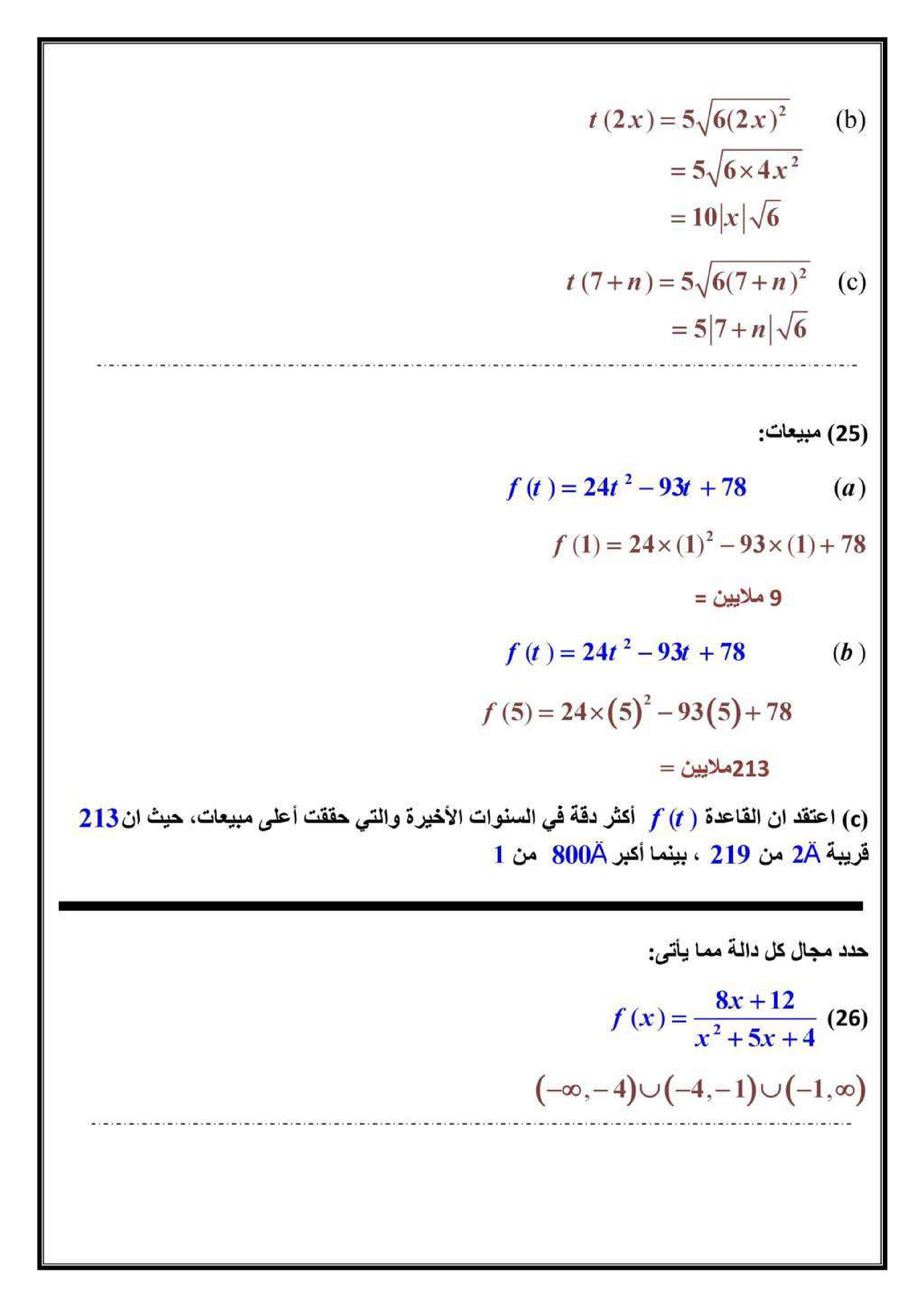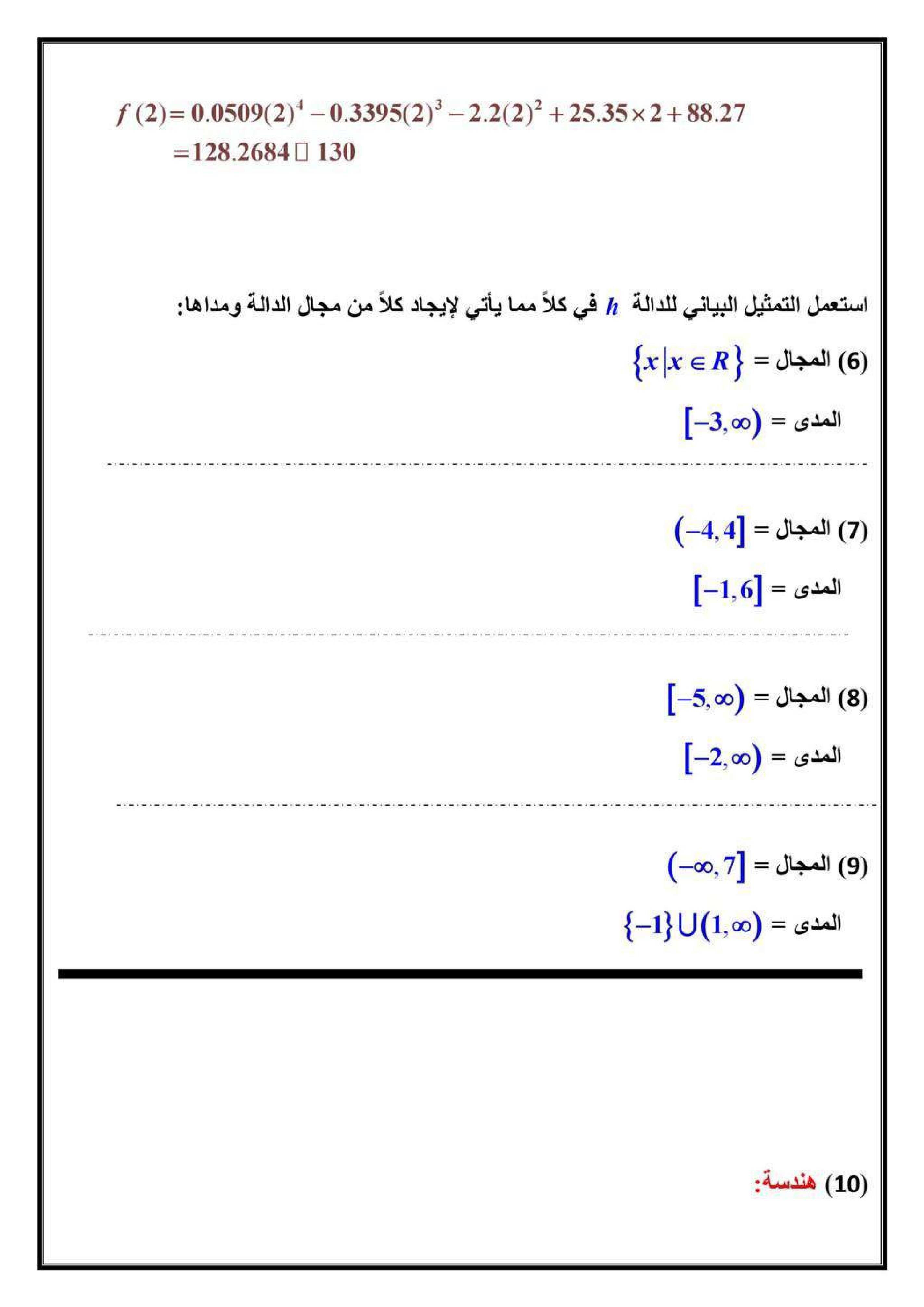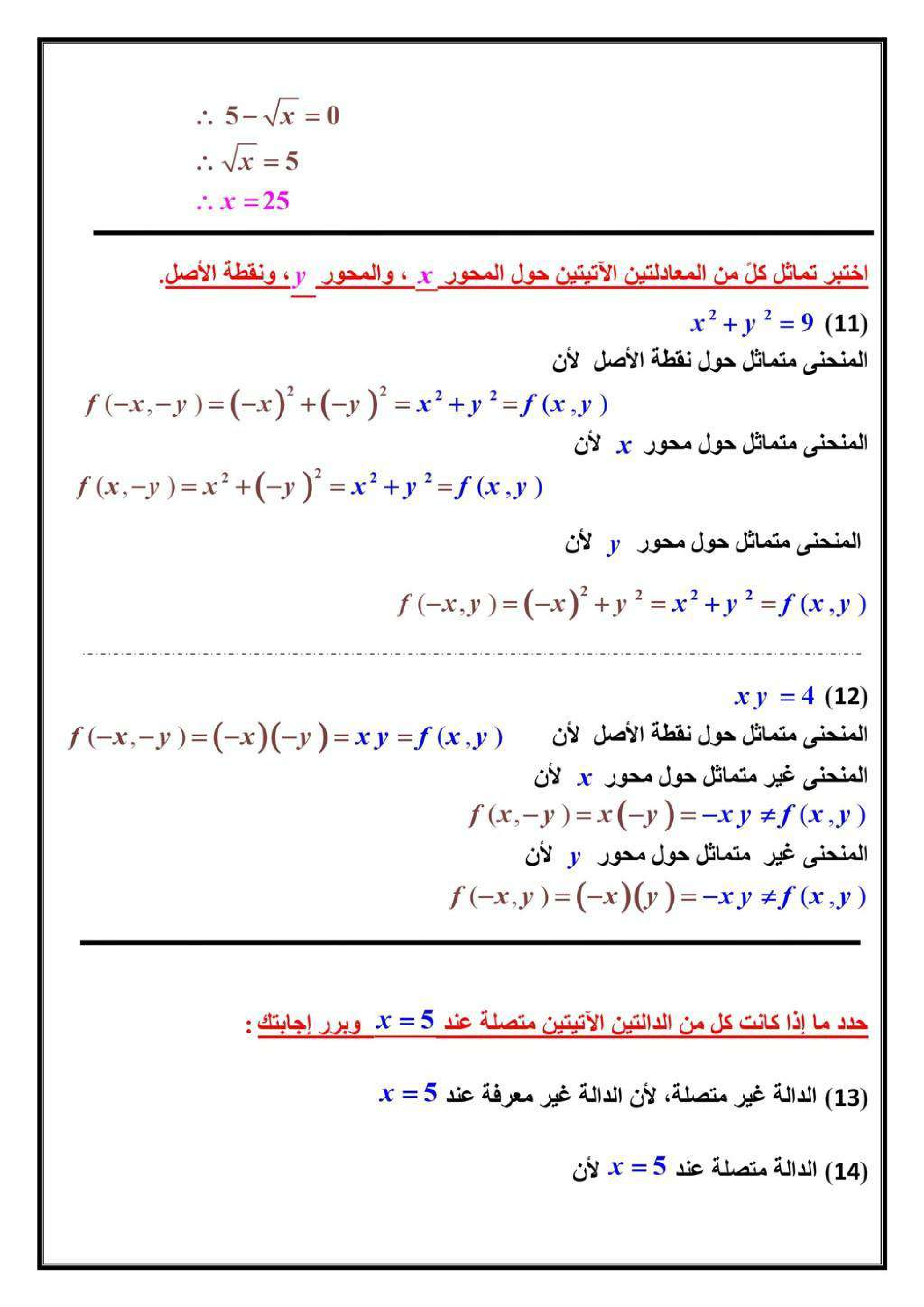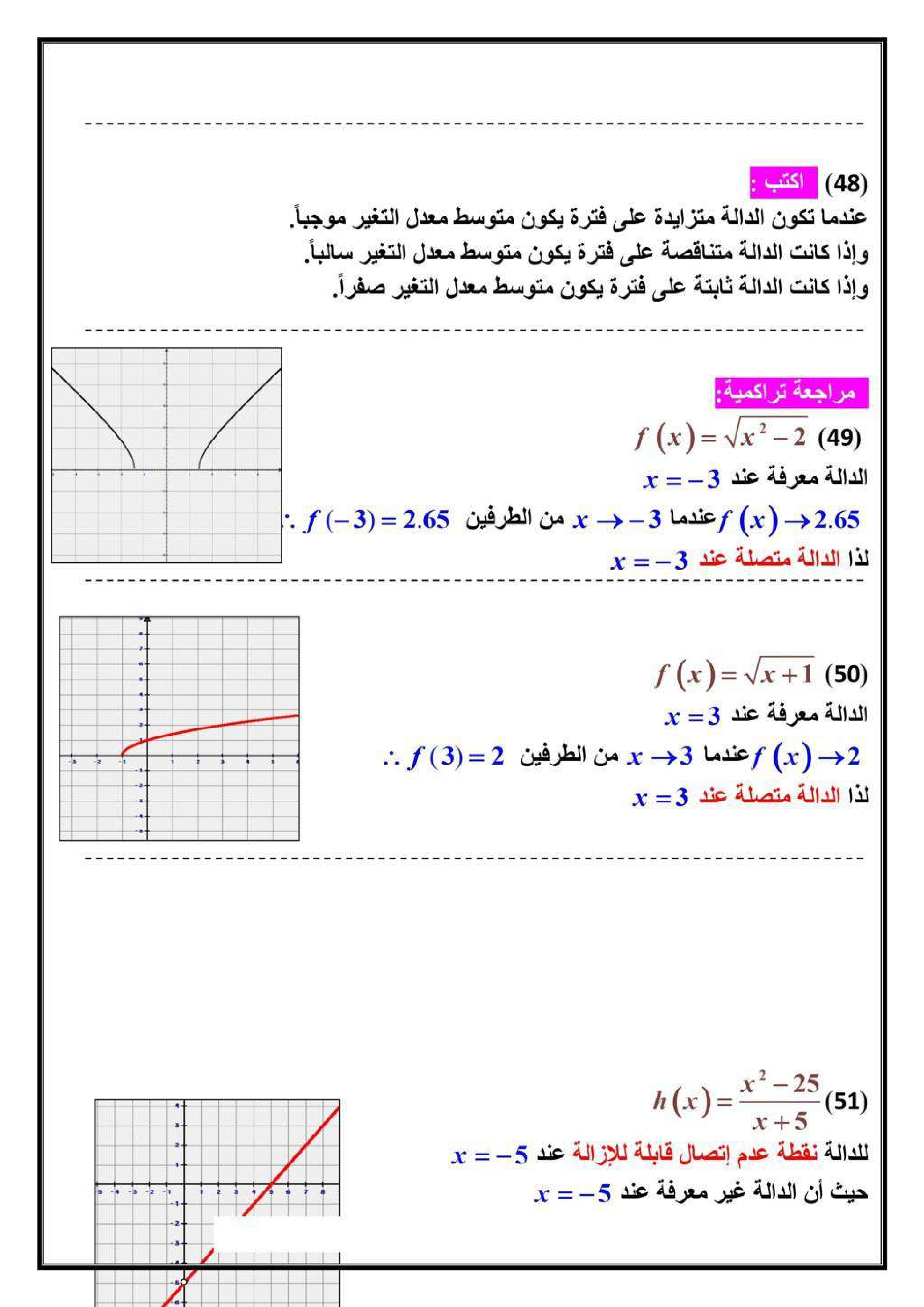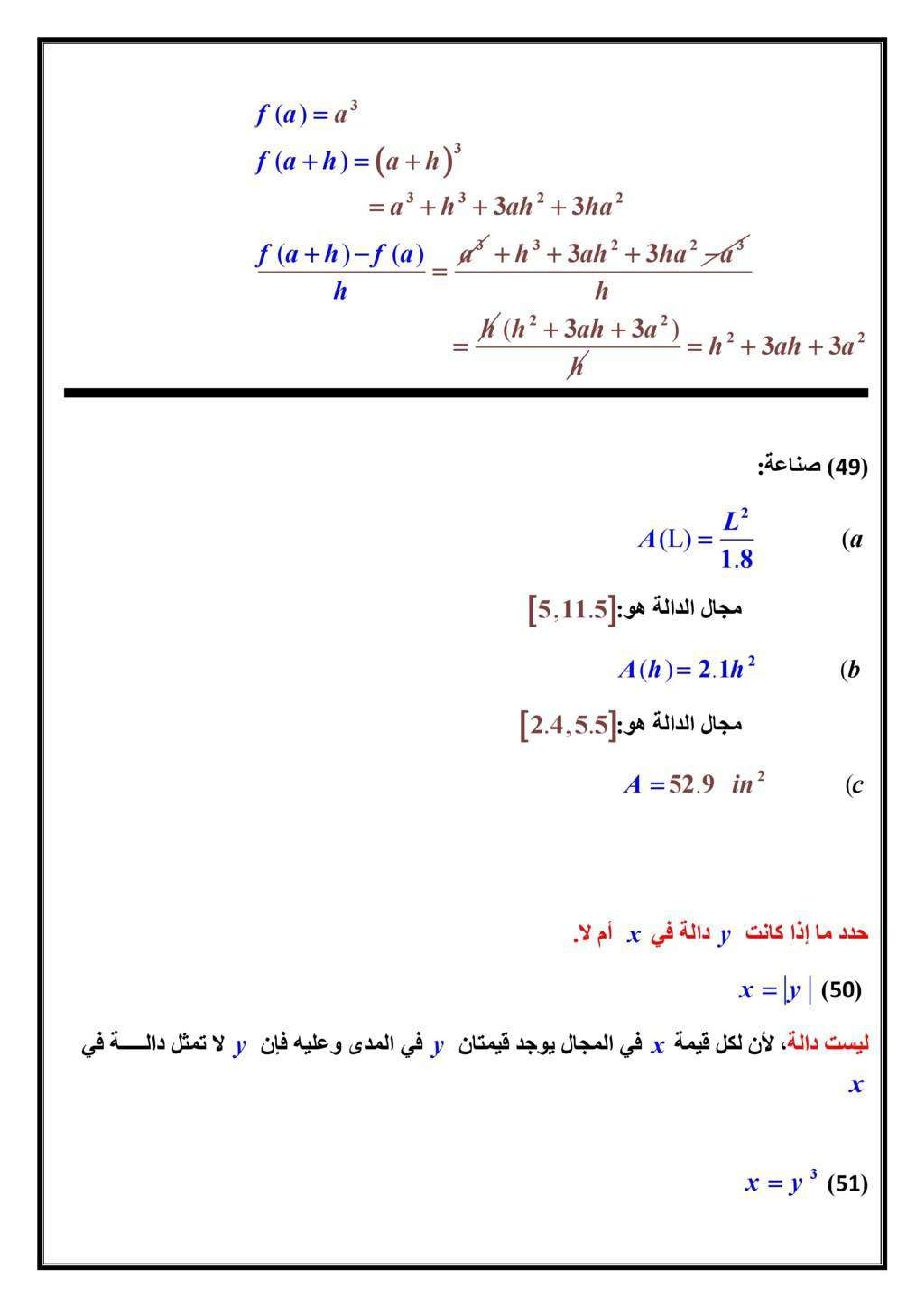 الفصل 1 - العمليات على الدوال وتركيب دالتين