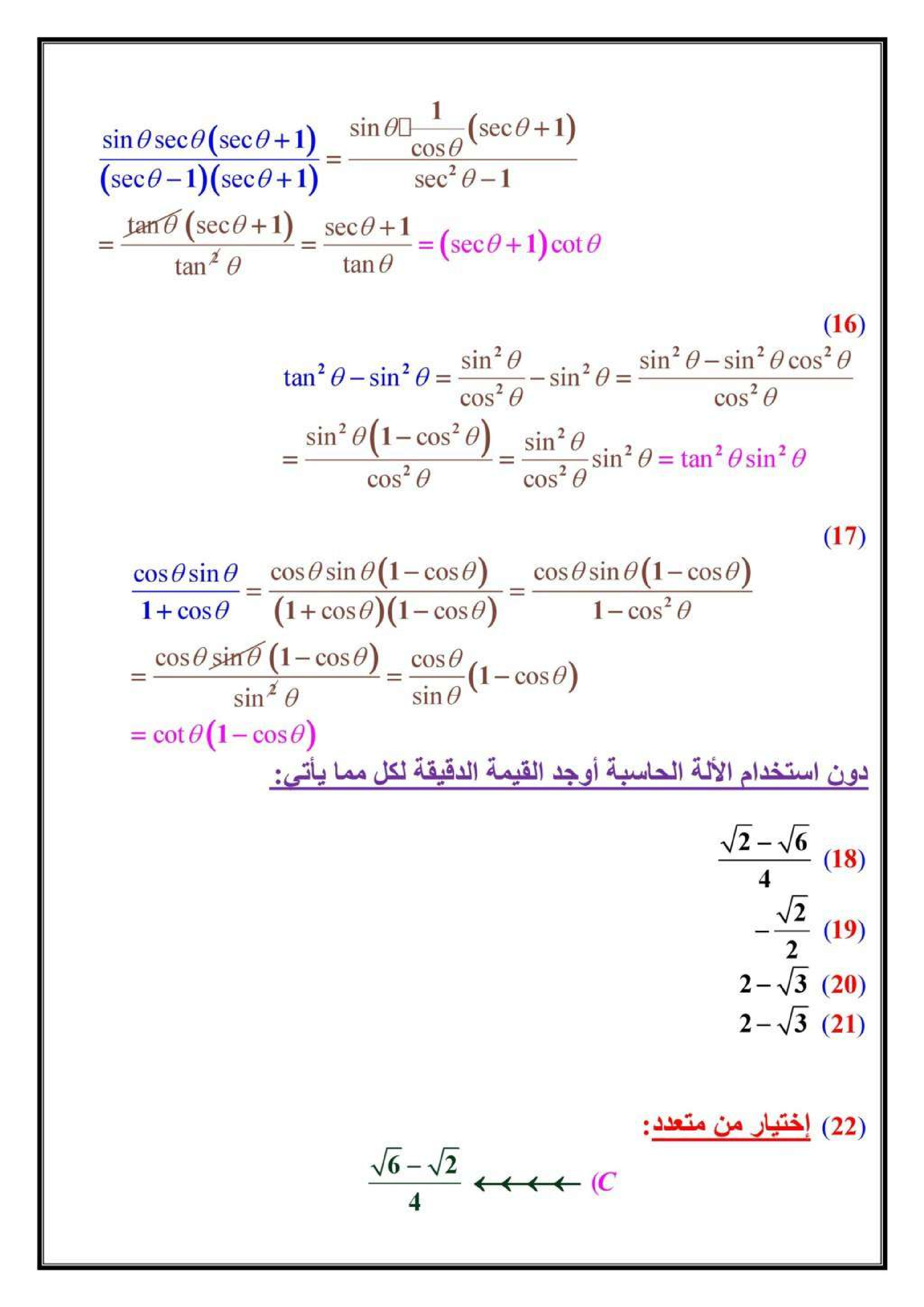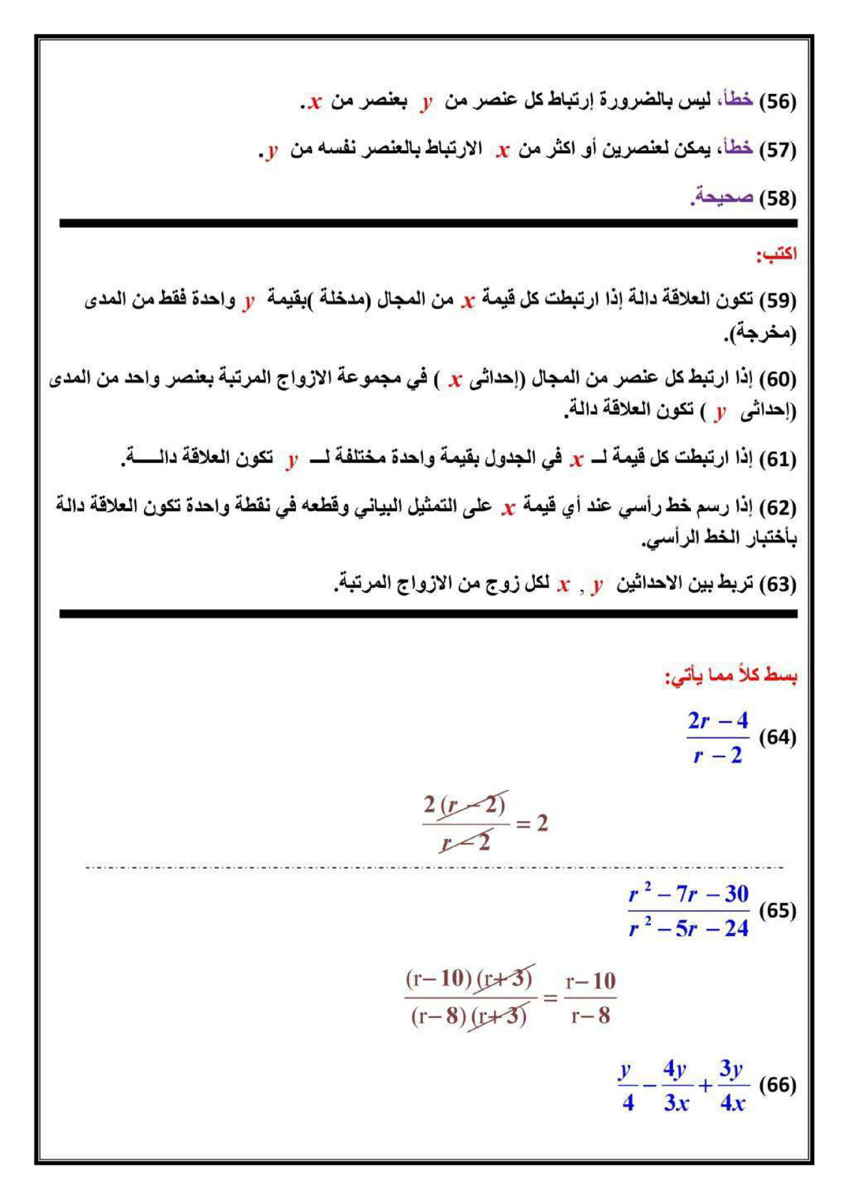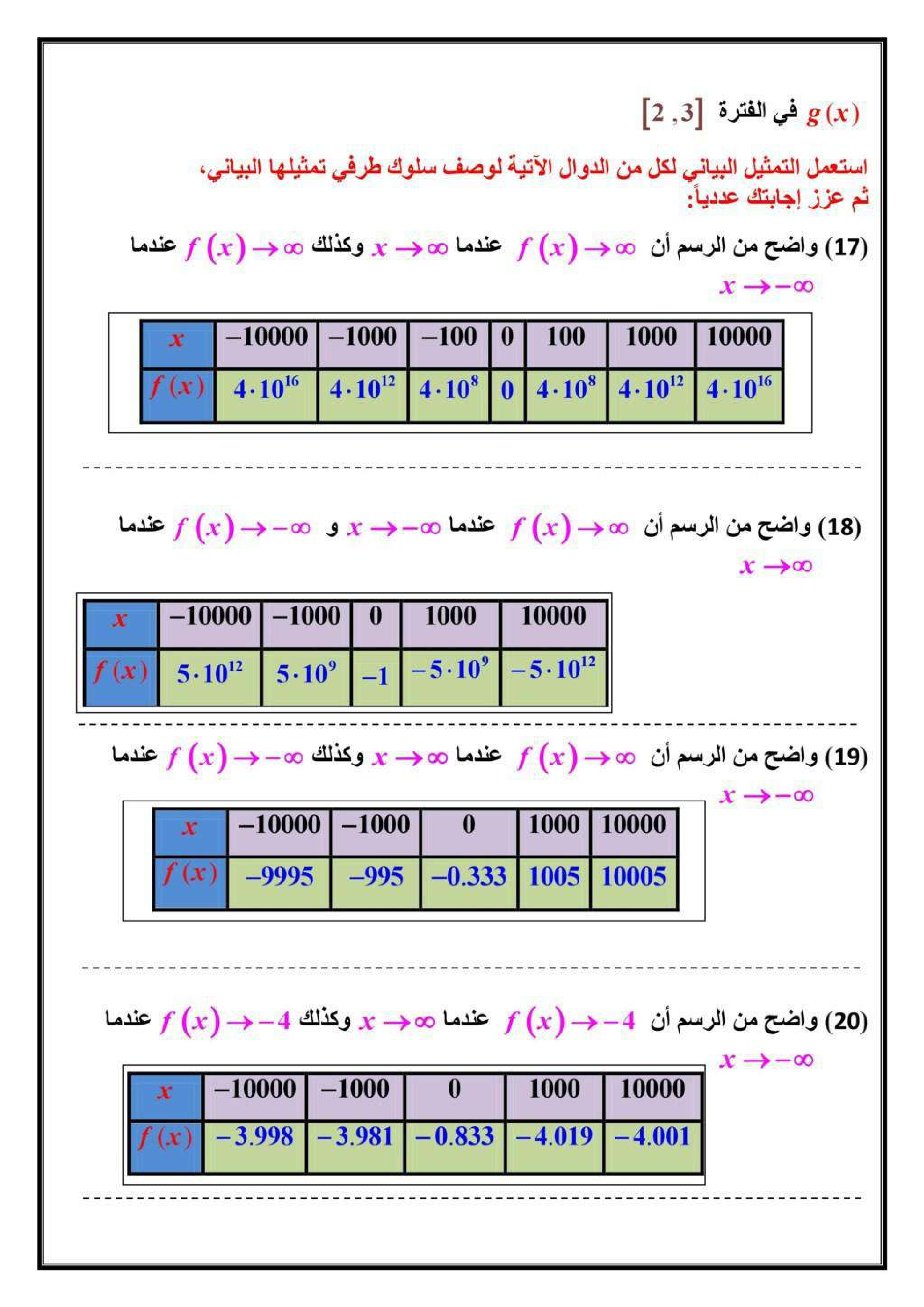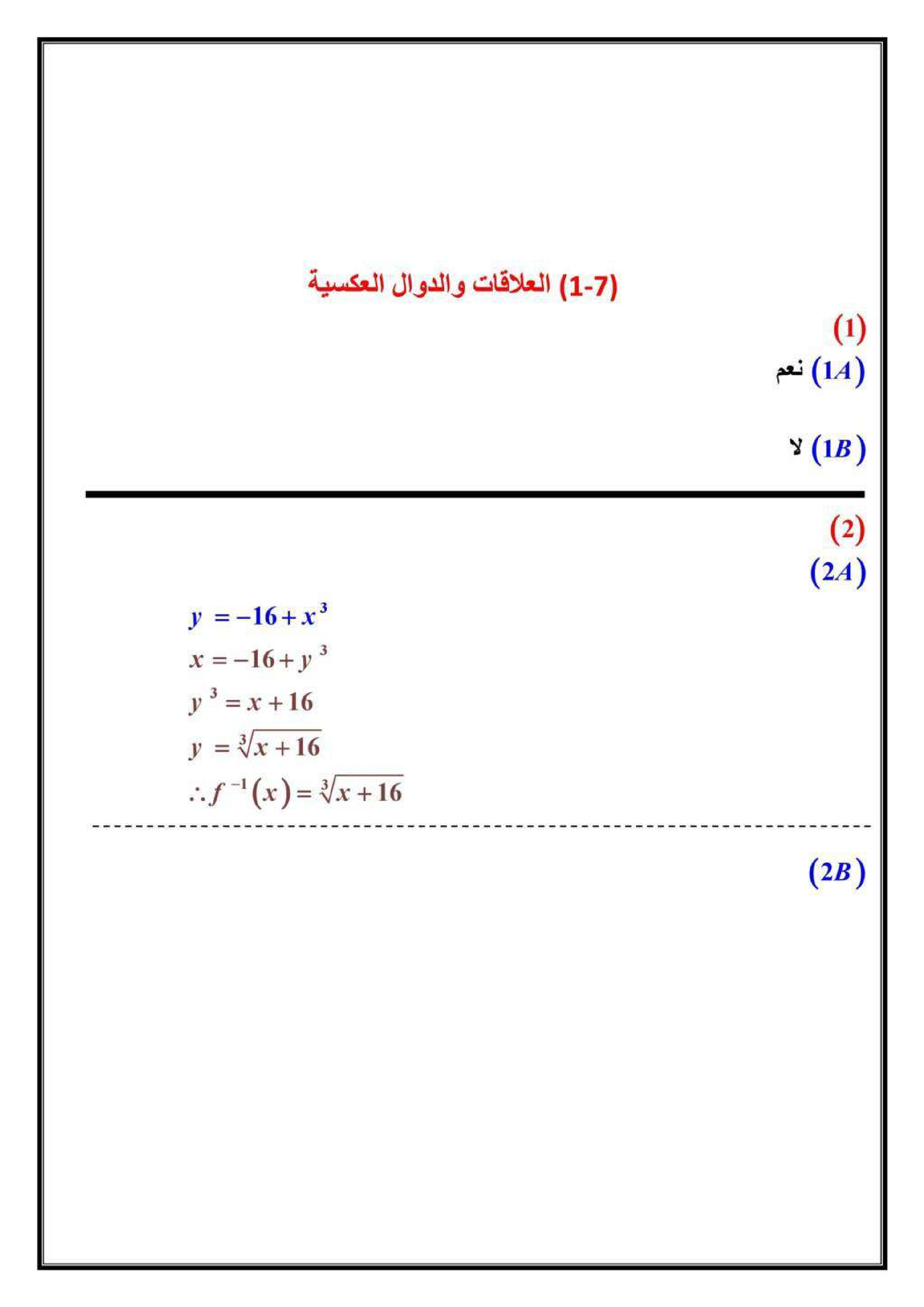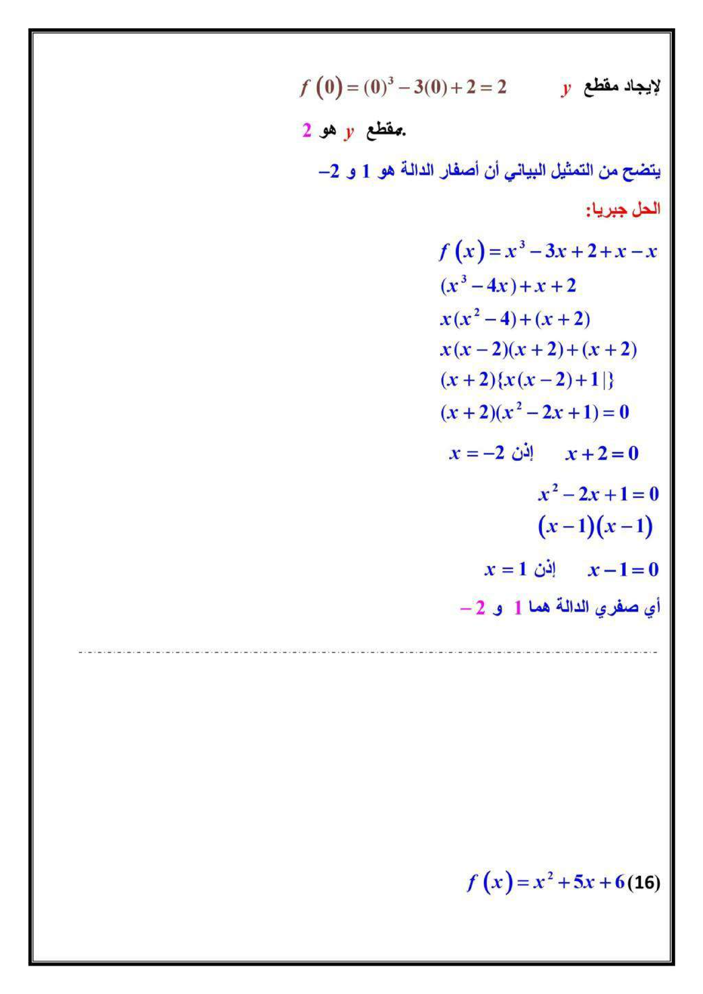 الفصل 1 - العمليات على الدوال وتركيب دالتين