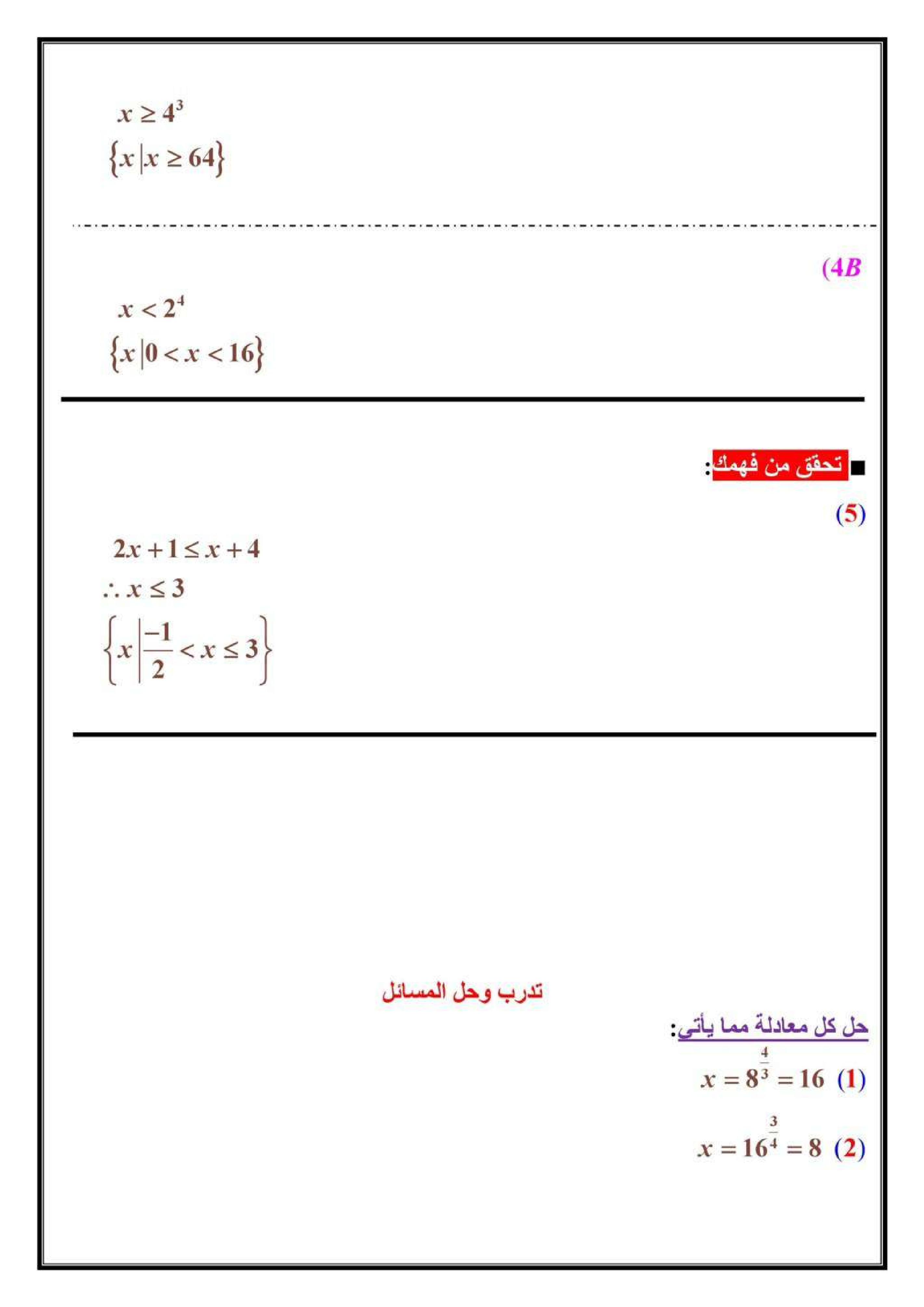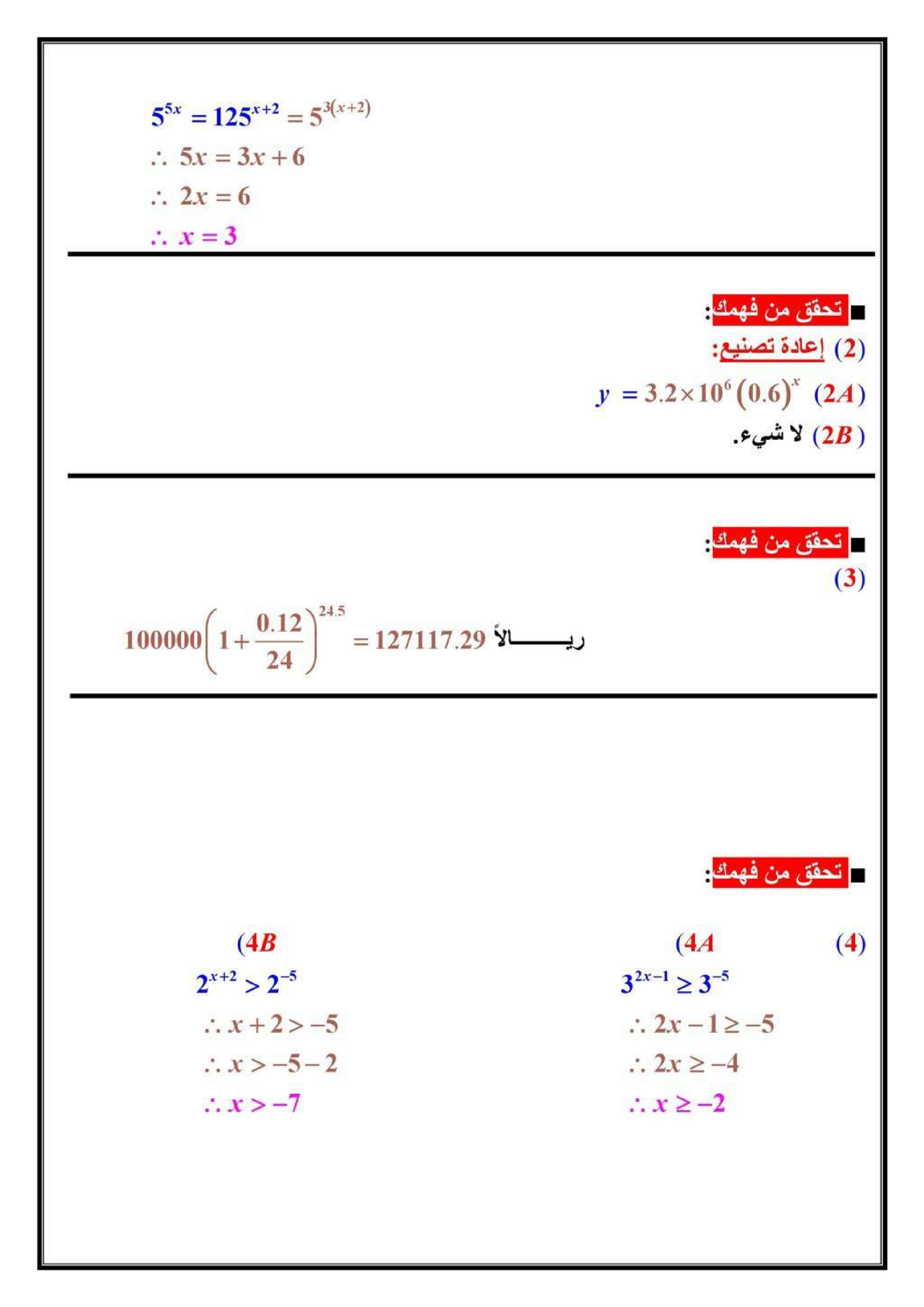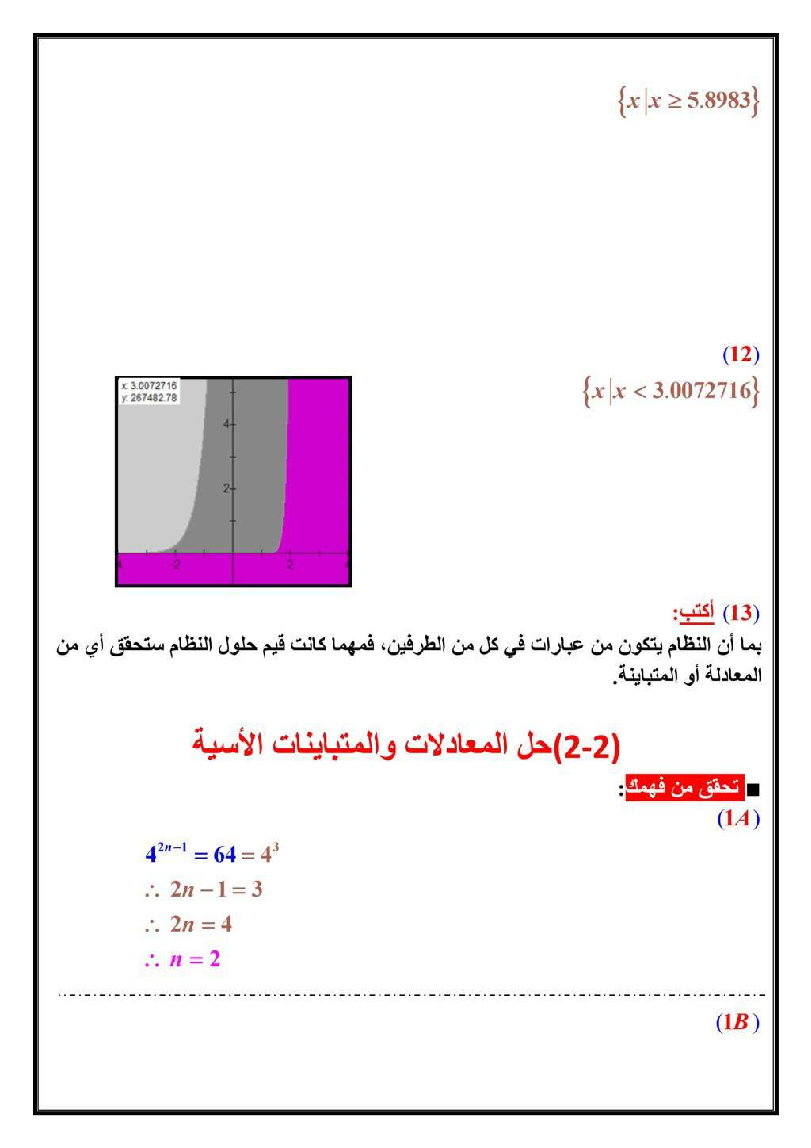 الفصل 2 - حل المعادلات والمتباينات الأسية