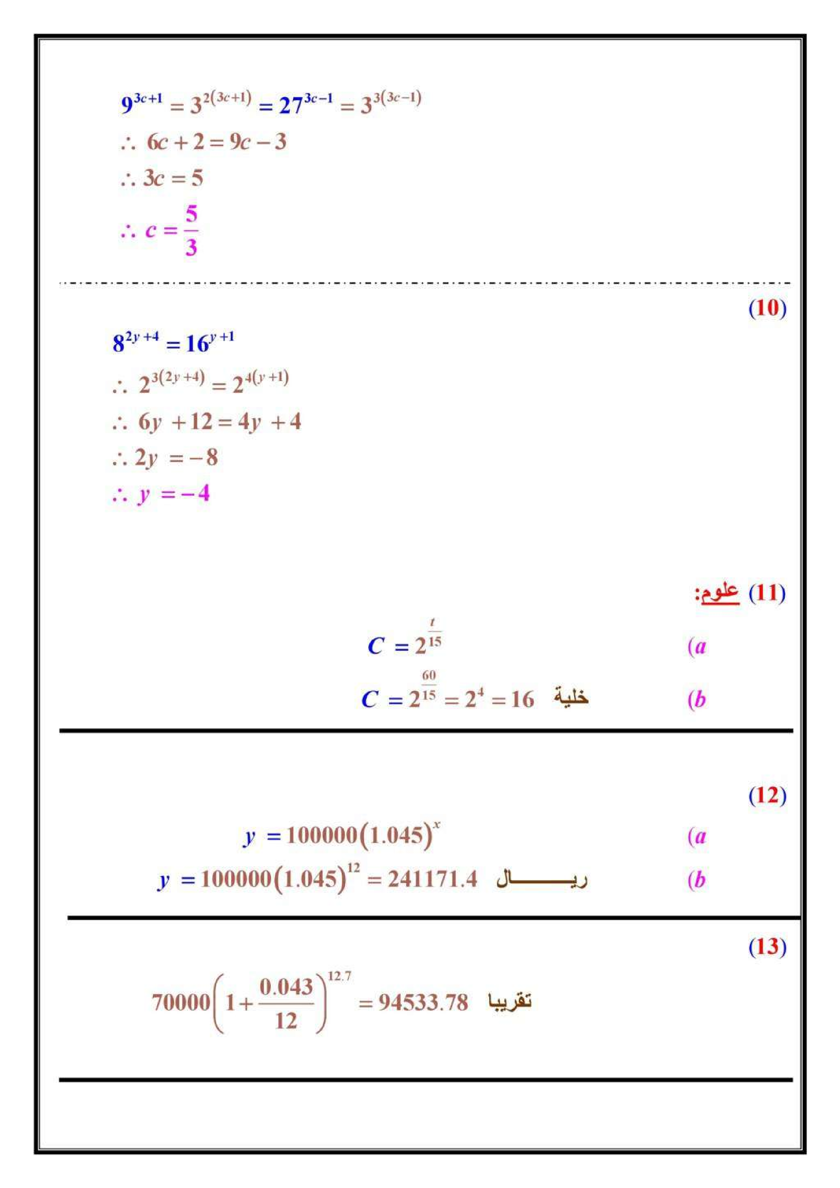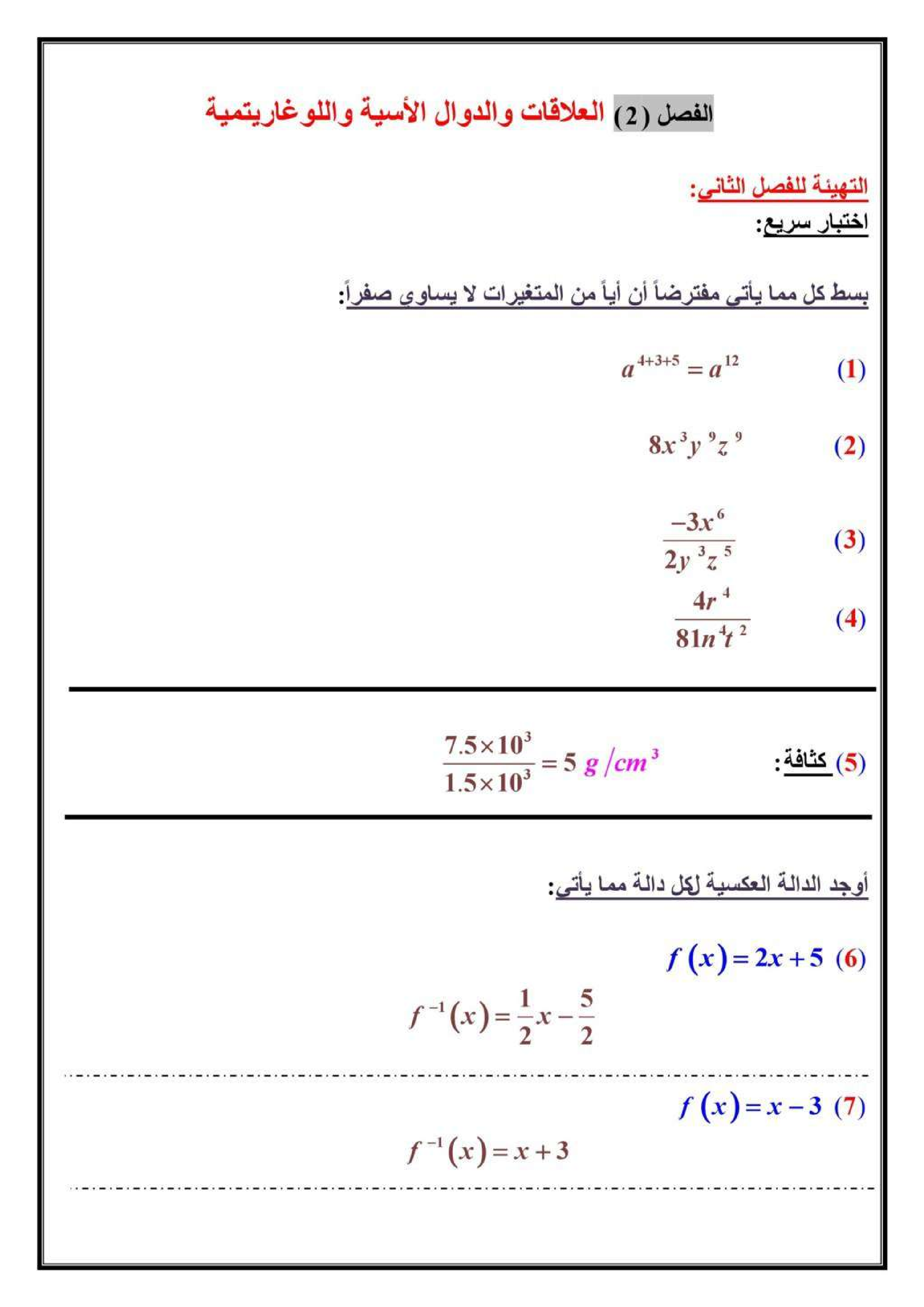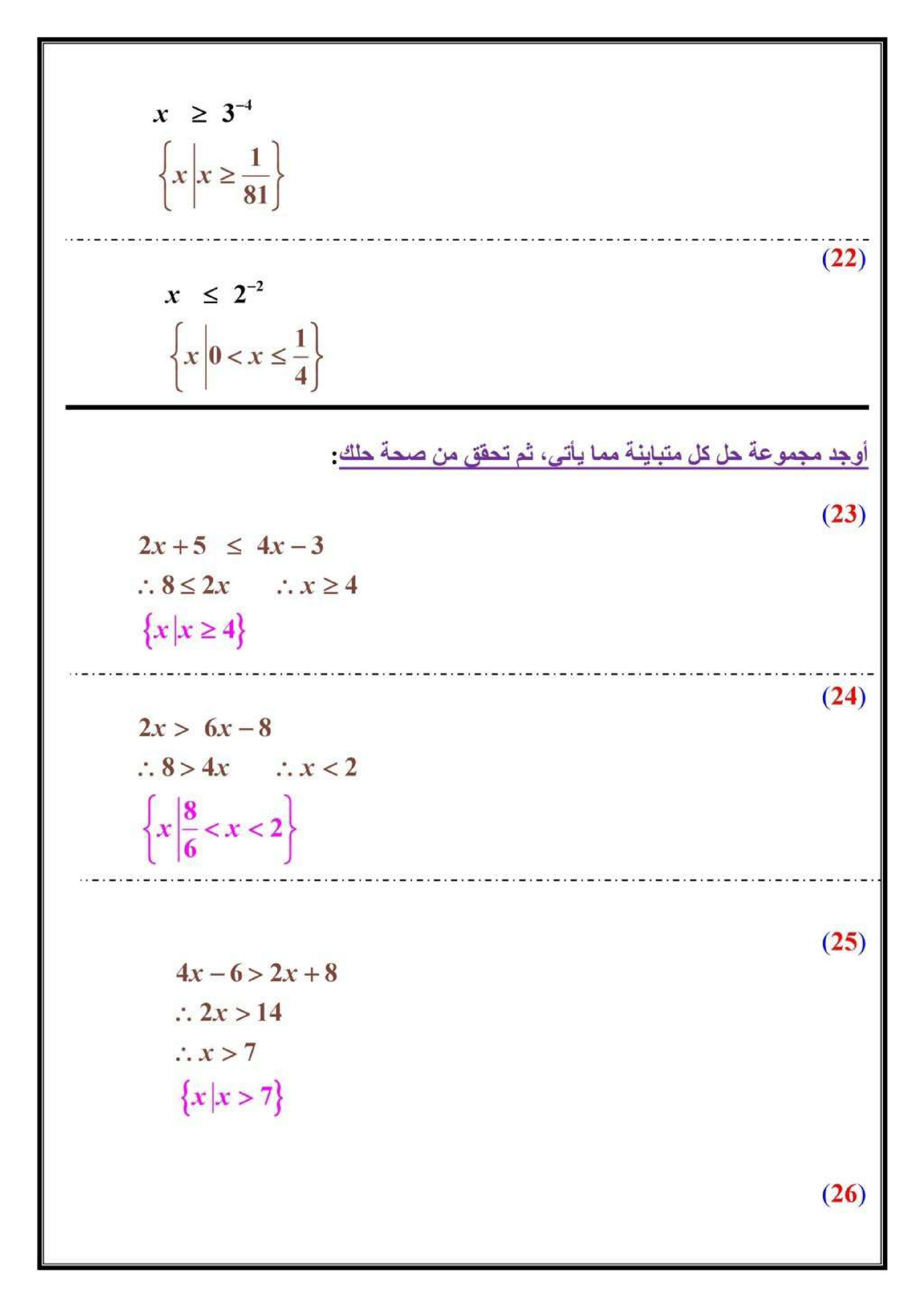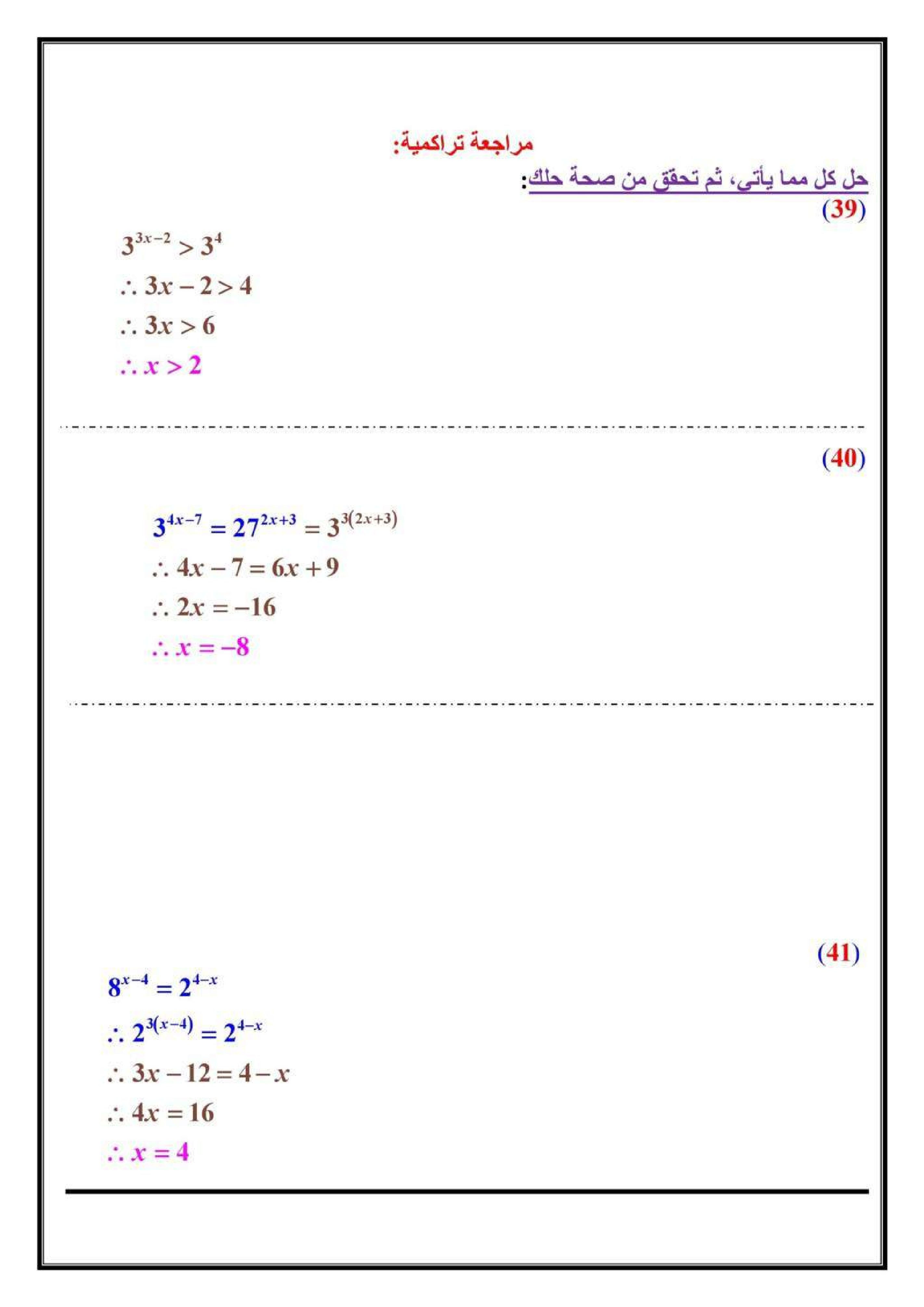الفصل 2 - حل المعادلات والمتباينات الأسية