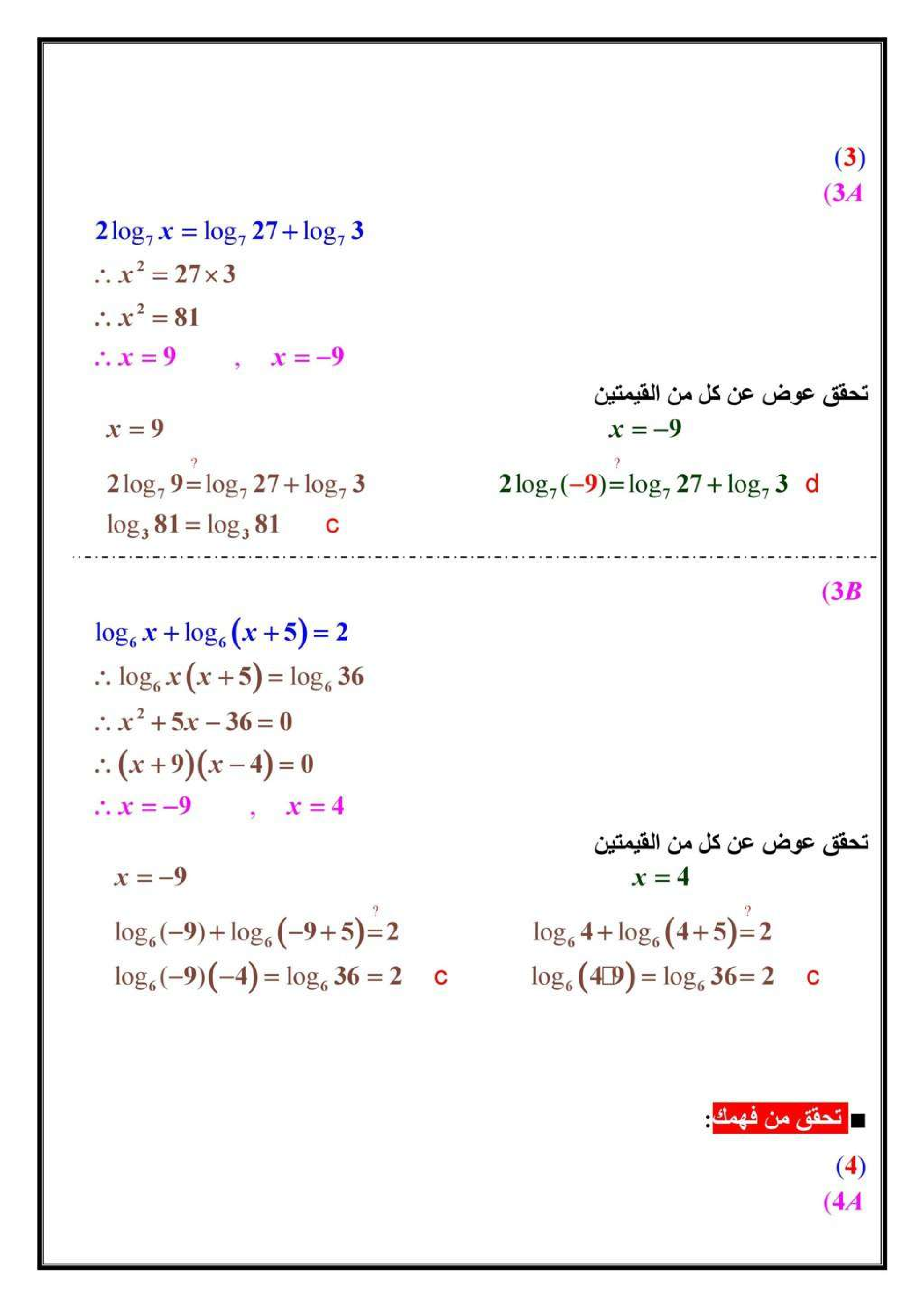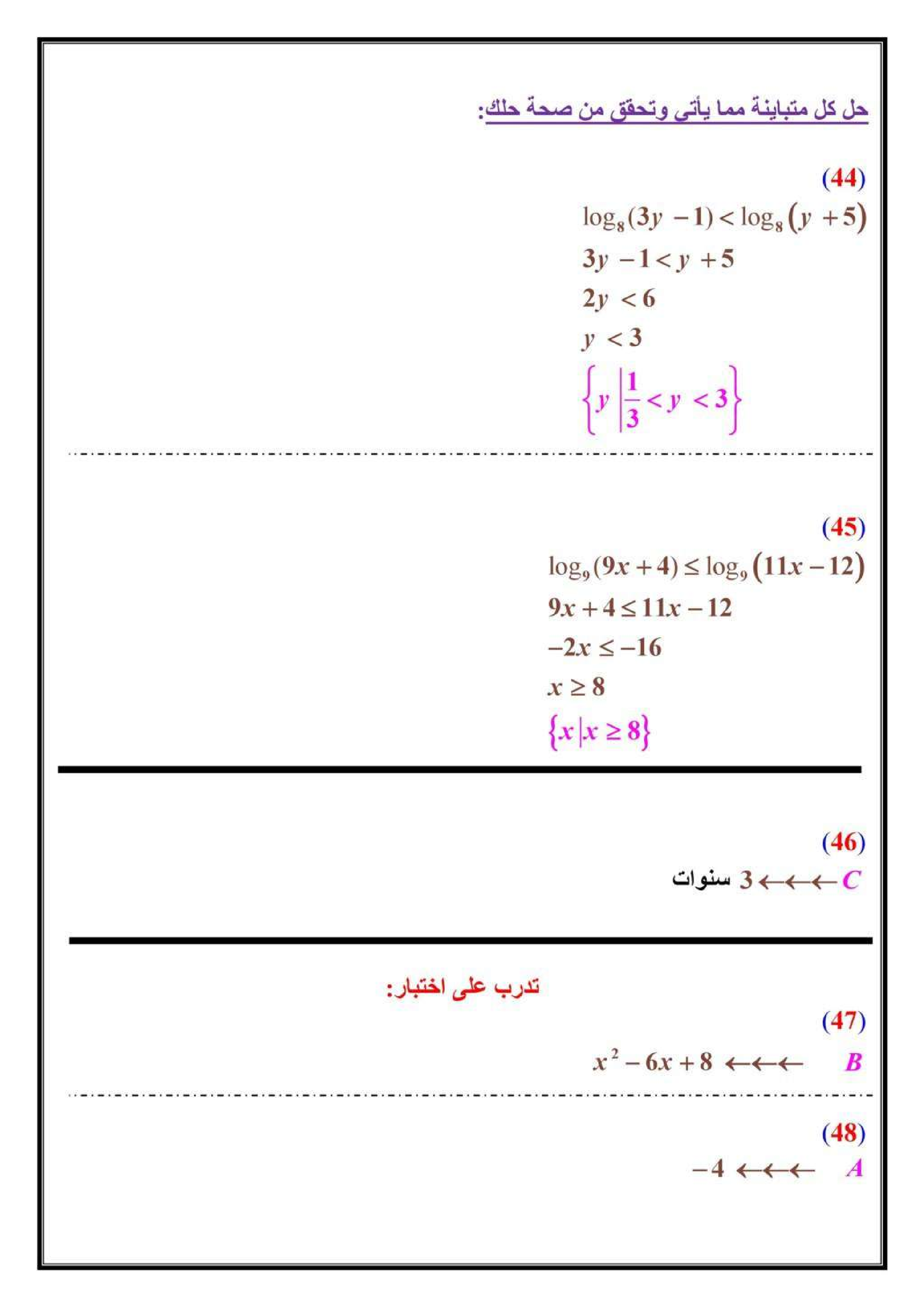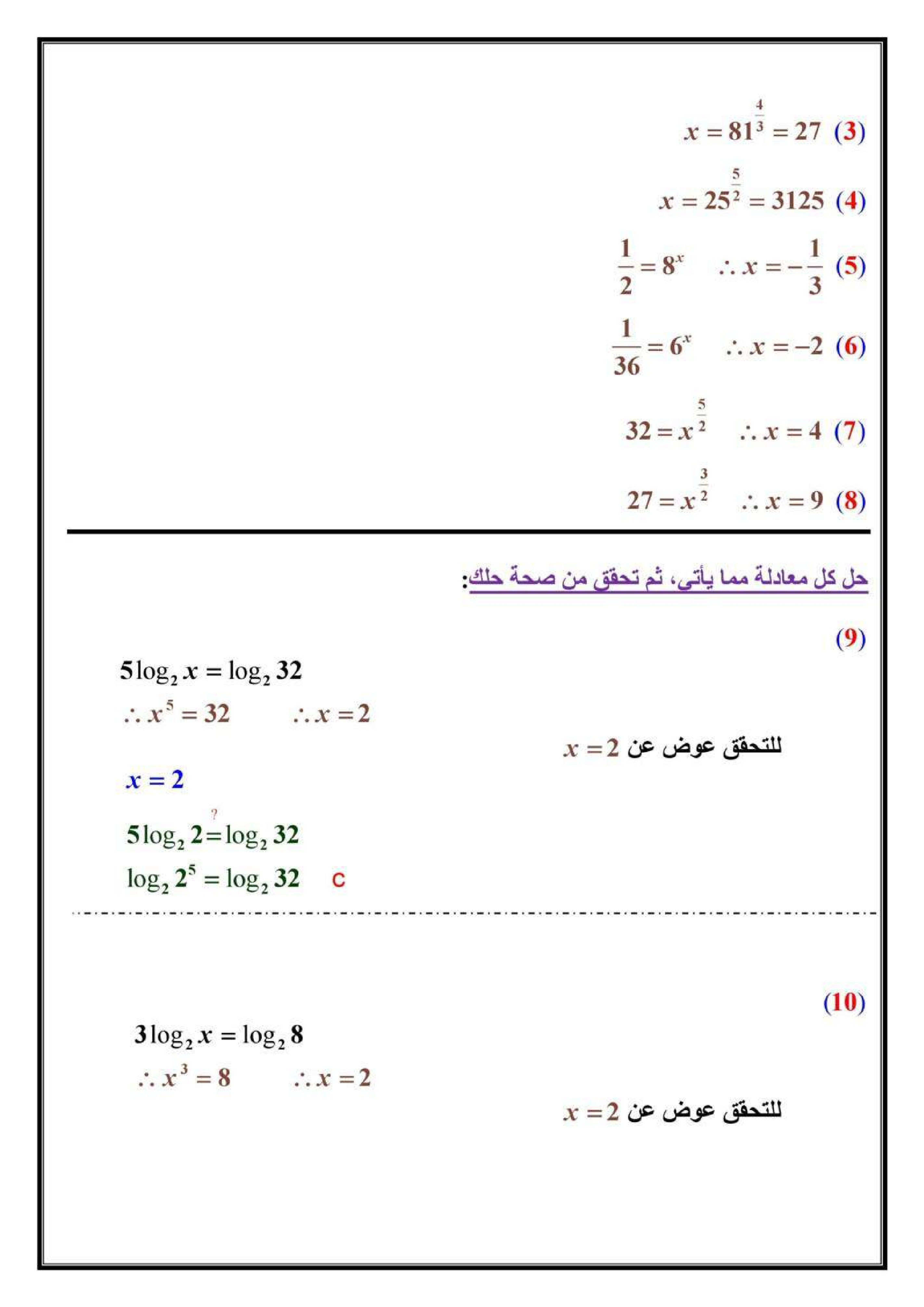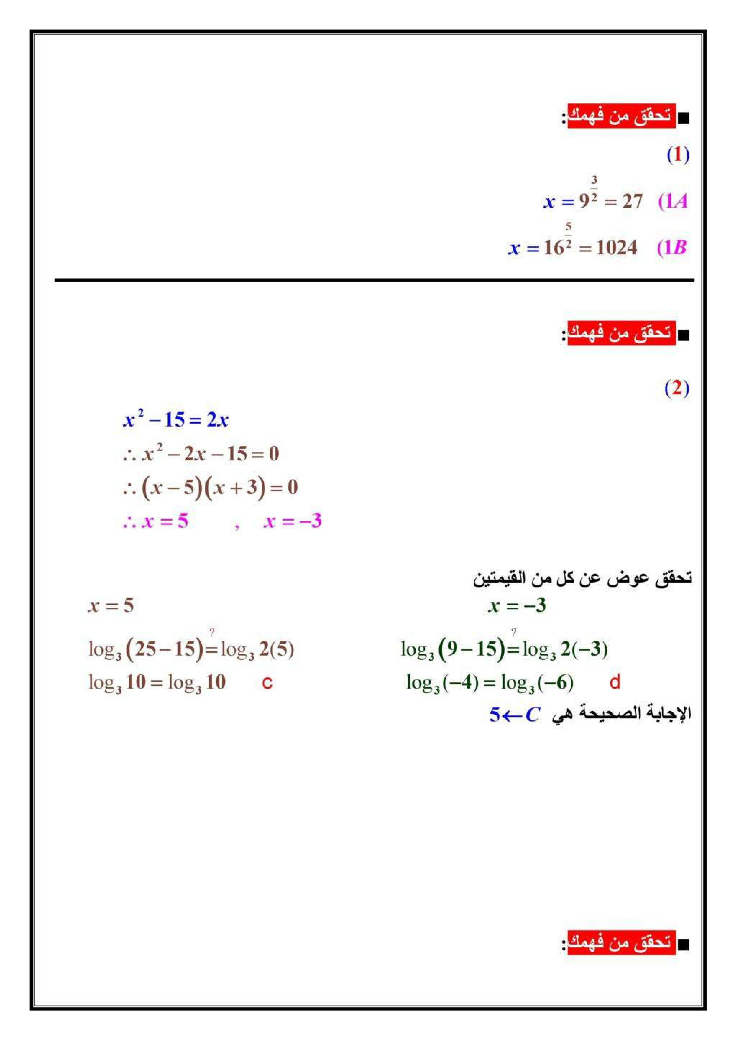 الفصل 2 - حل المعادلات والمتباينات اللوغاريتيمة