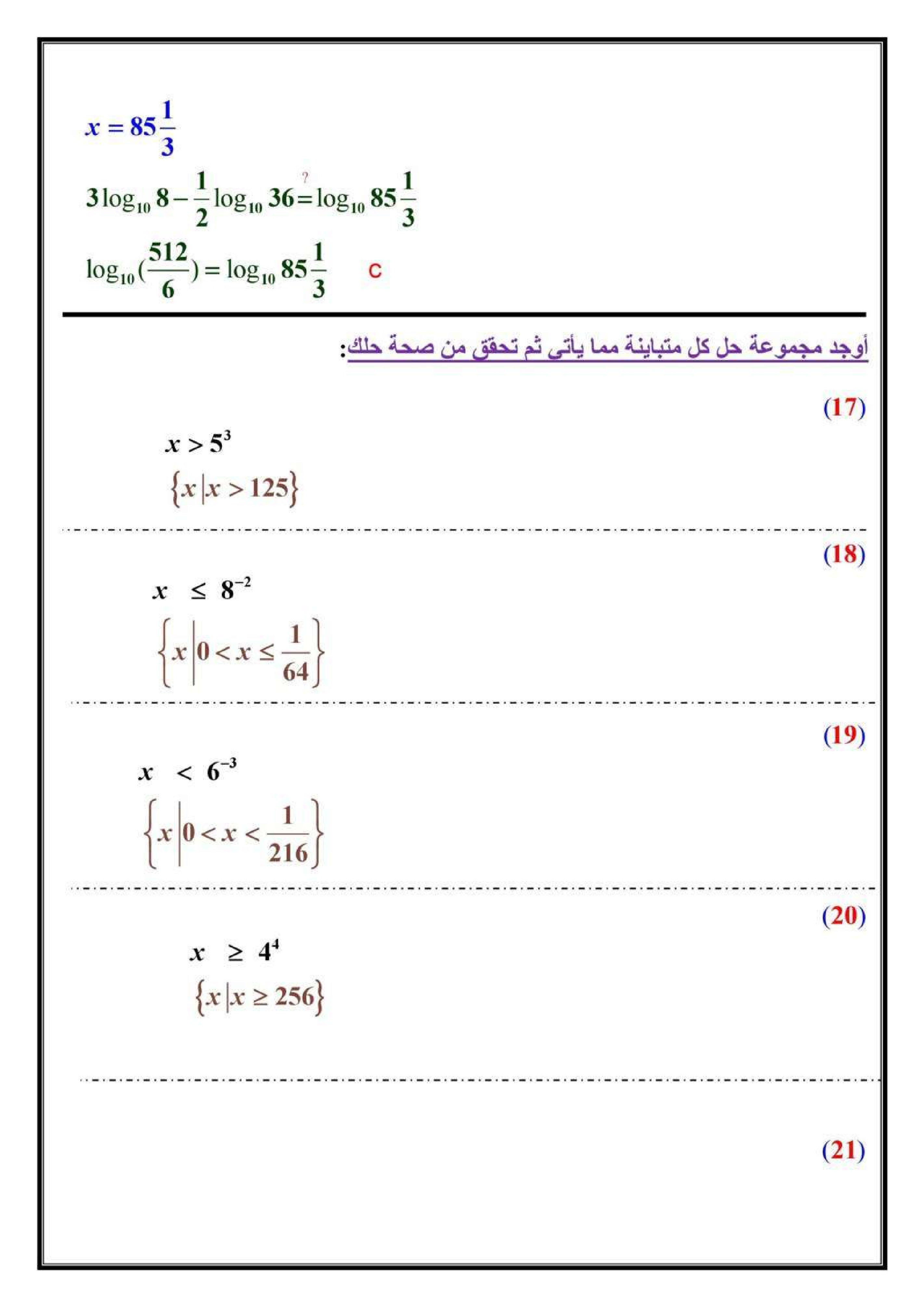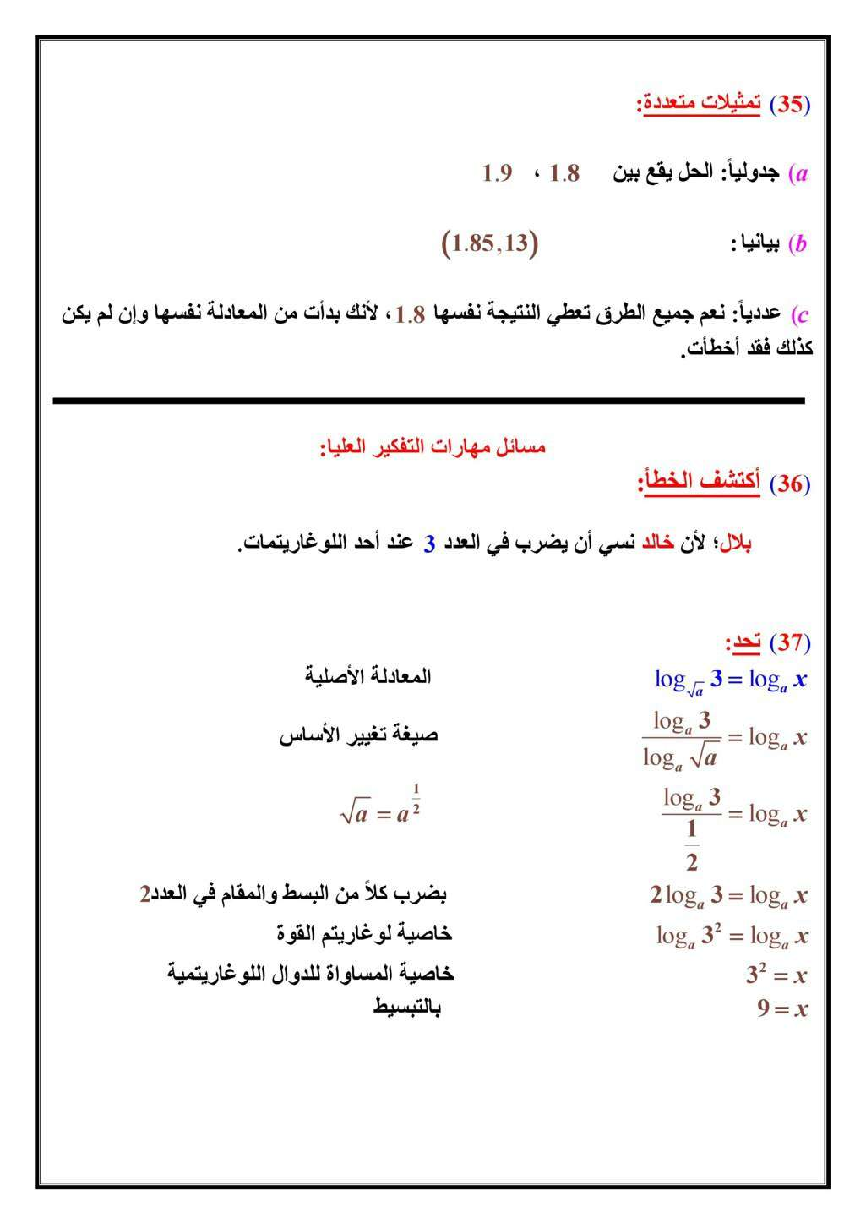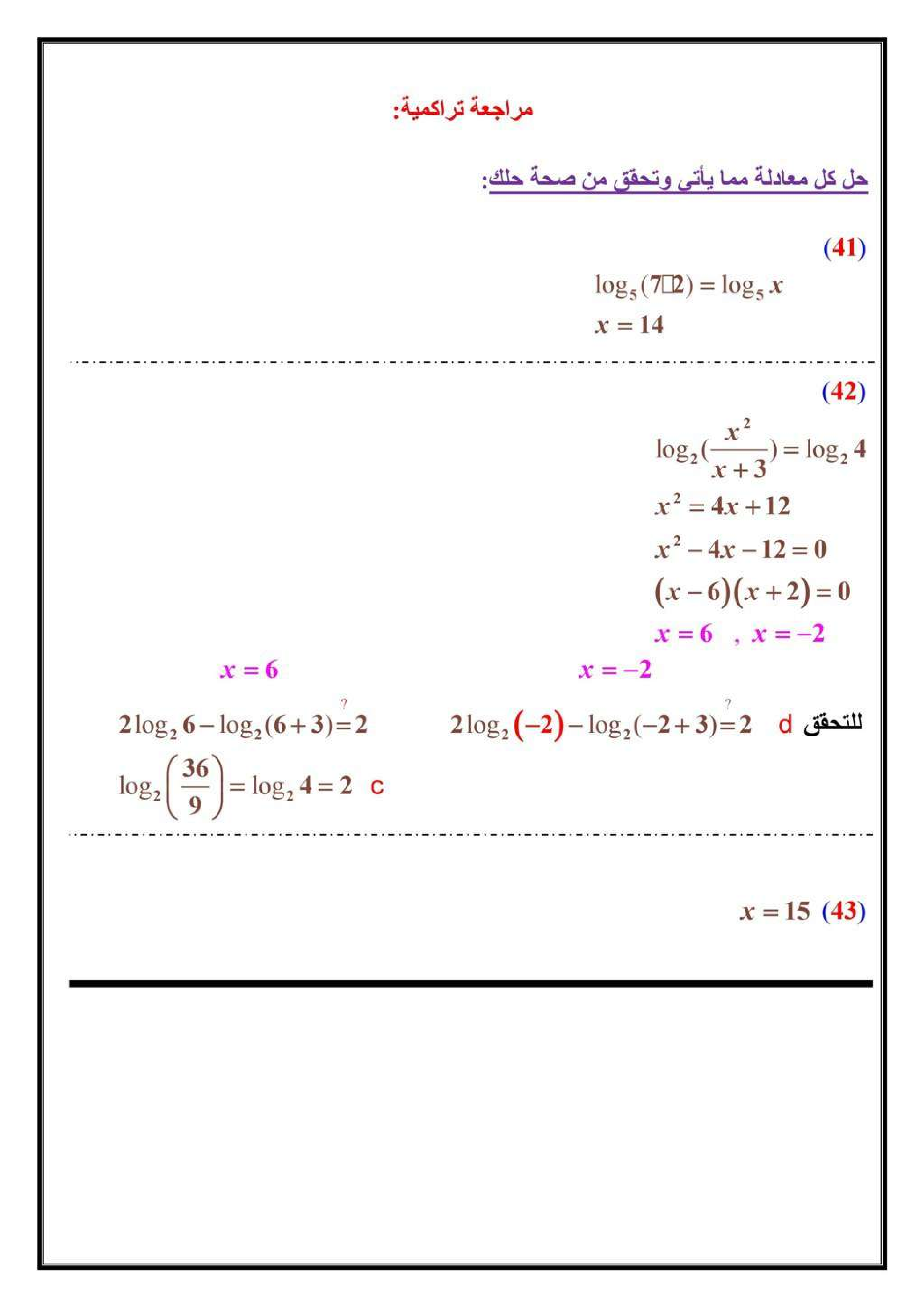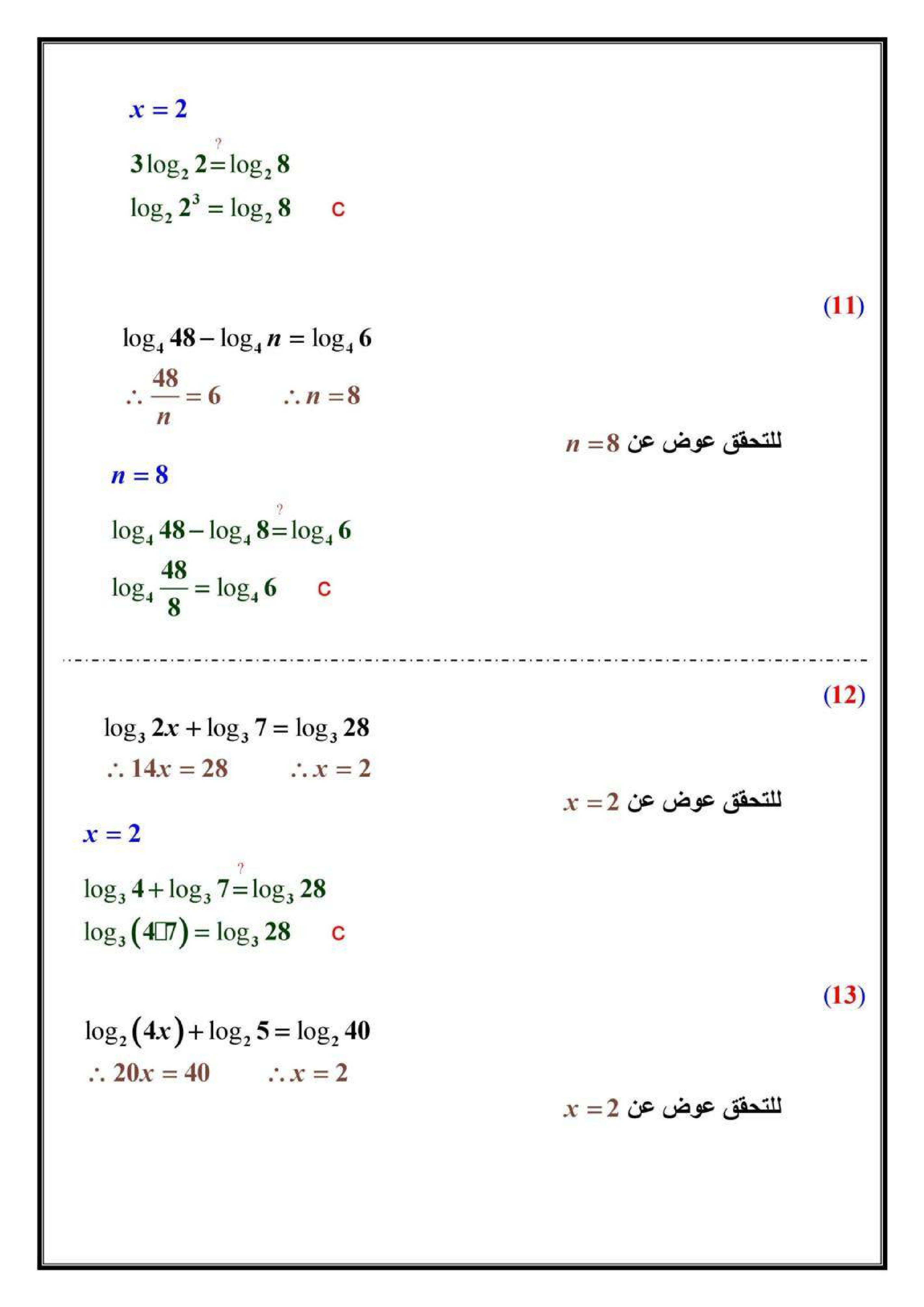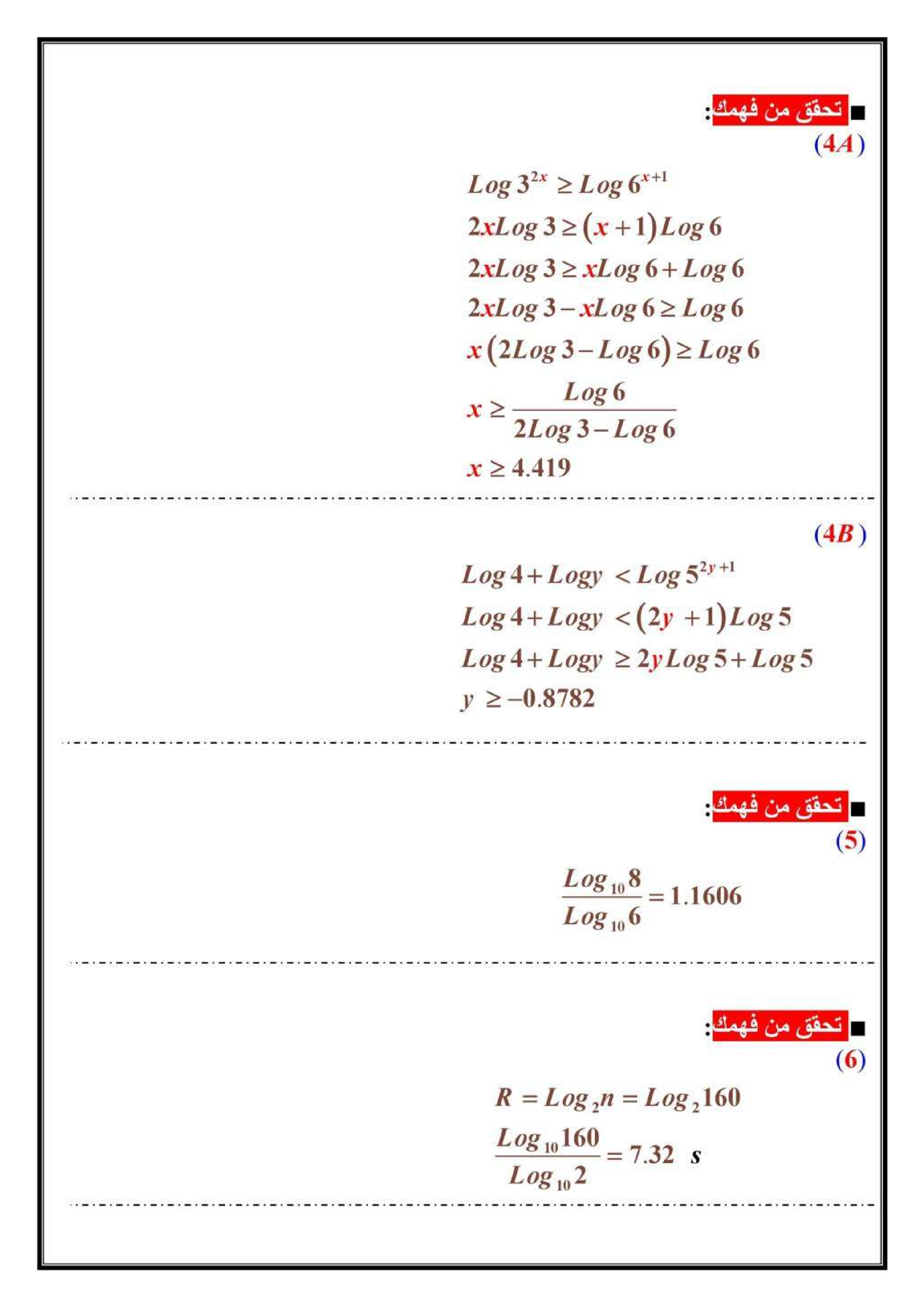 الفصل 2 - حل المعادلات والمتباينات اللوغاريتيمة