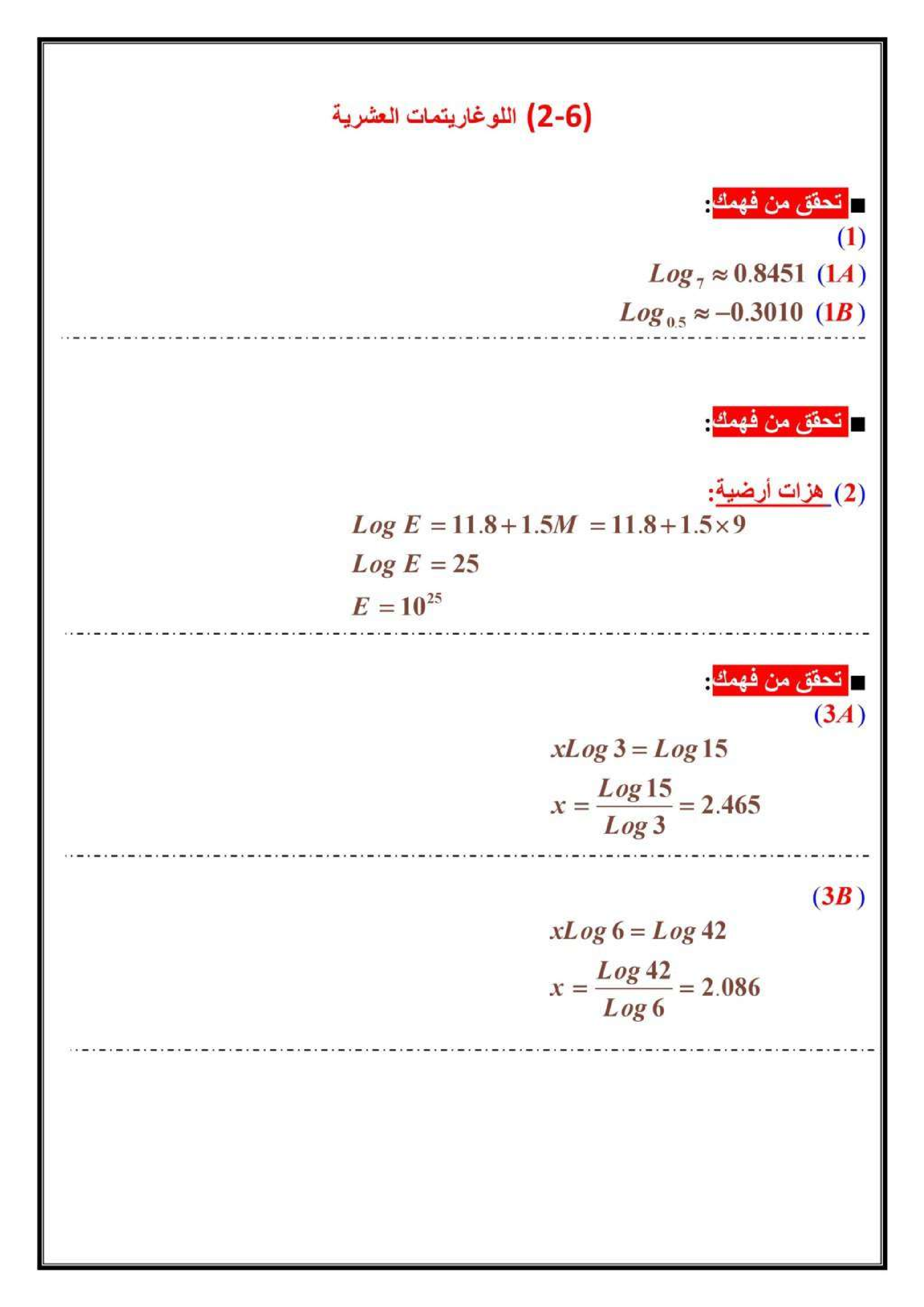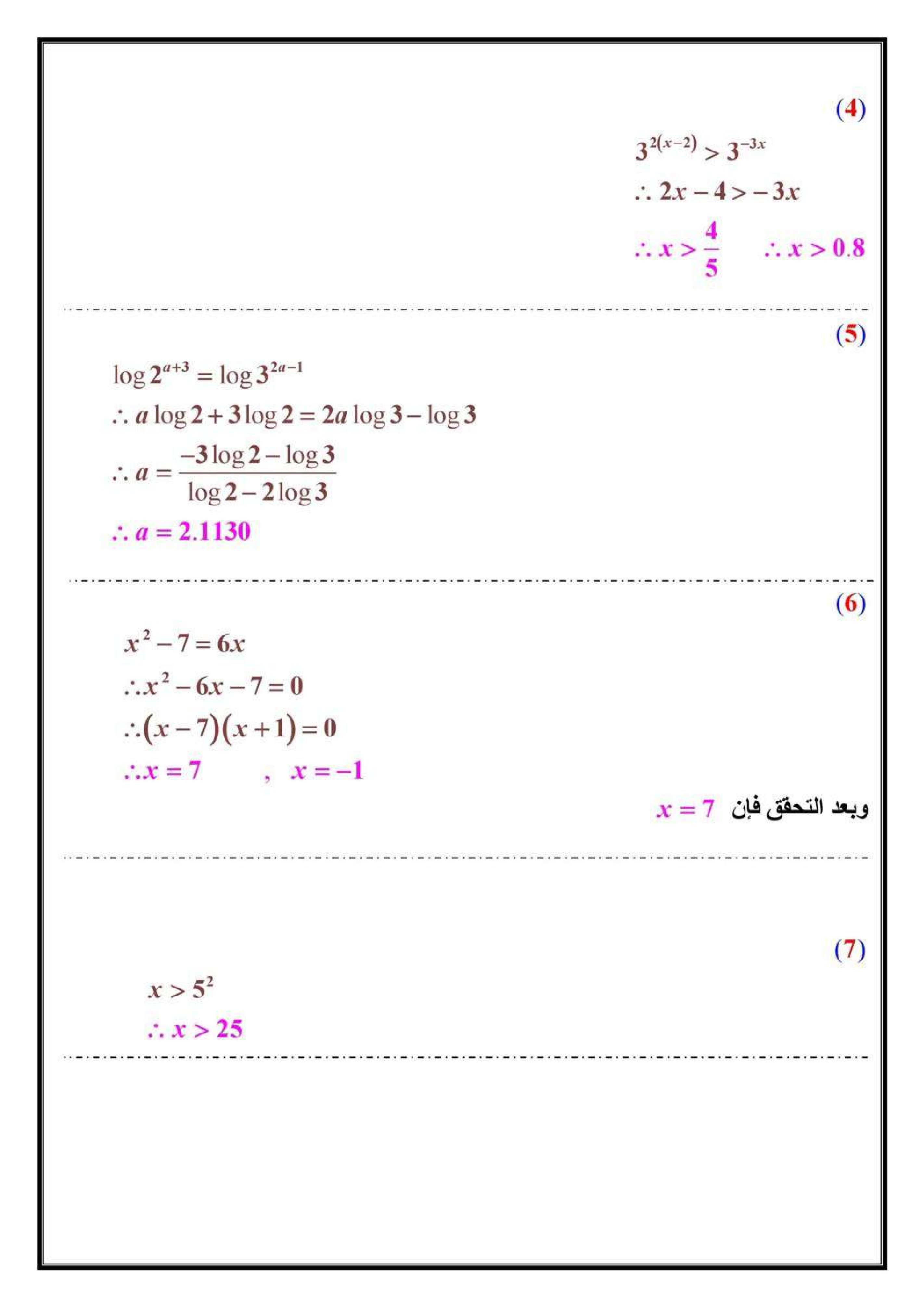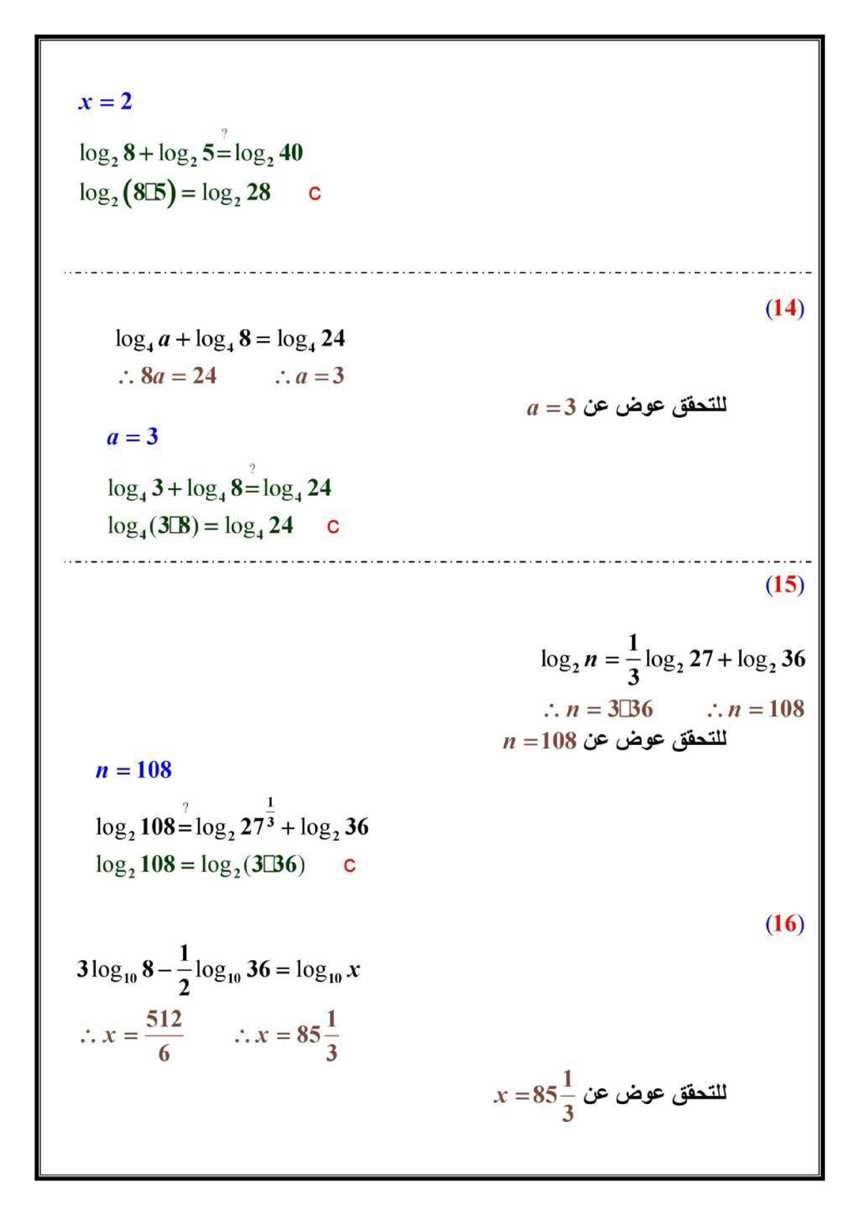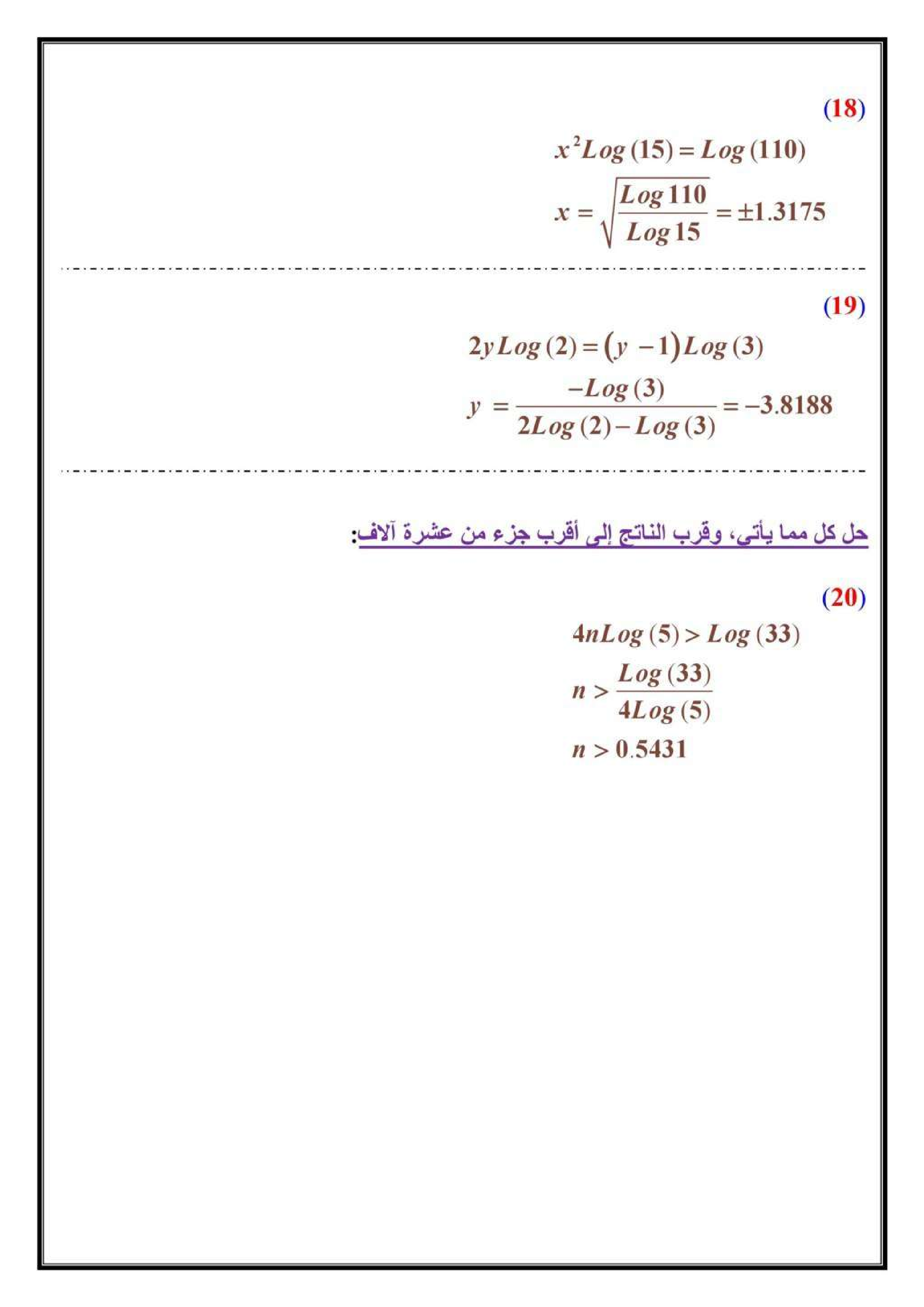 الفصل 2 - حل المعادلات والمتباينات اللوغاريتيمة